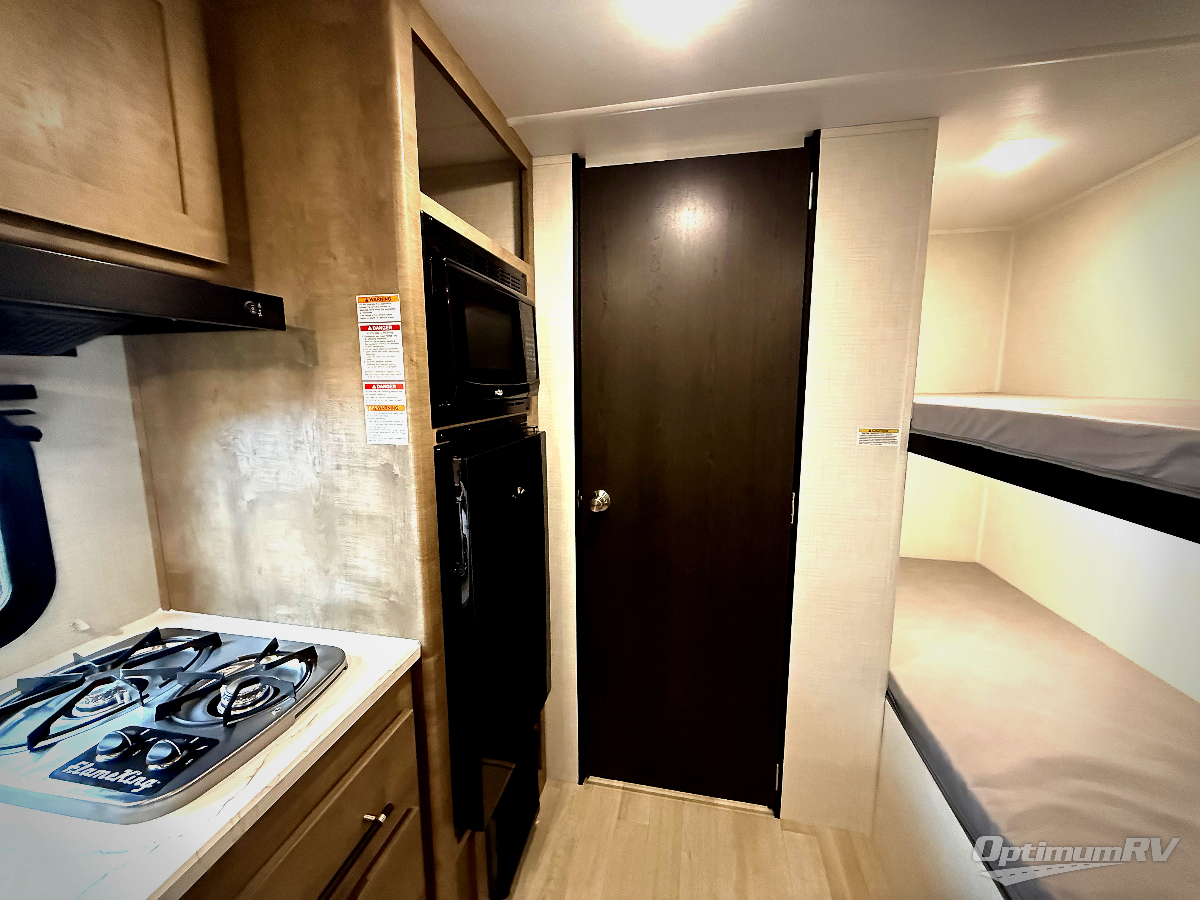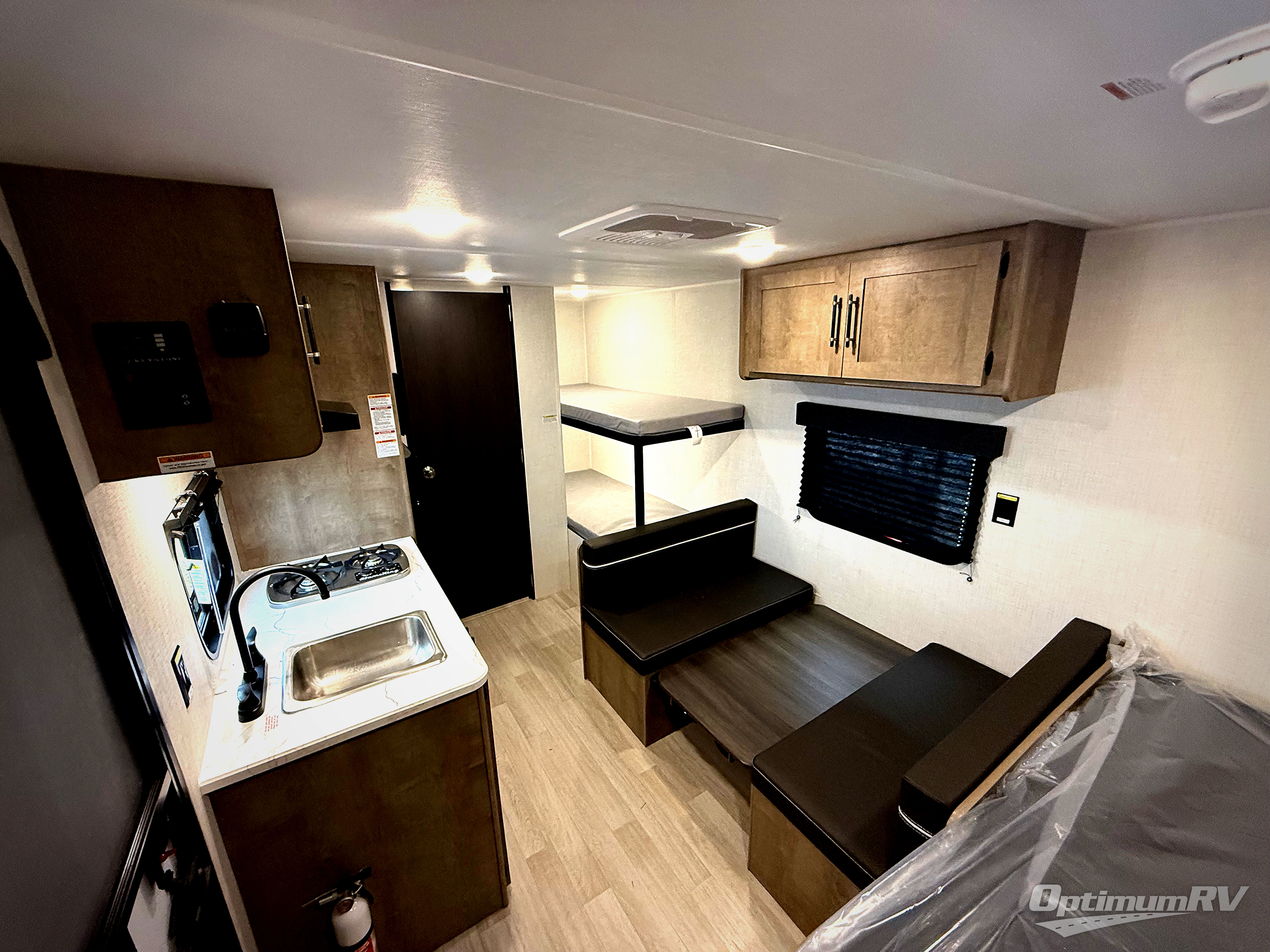 Get ready for outdoor fun with your favorite people when you have this trailer in tow! Once at your campsite, you can easily setup the 10' power awning, grab your camping chairs from the pass-thru storage, and relax or start playing. The cook will love the galley kitchen with the two burner cooktop, plus a refrigerator for cold items. If you like, you can eat inside at the booth dinette which doubles as sleeping space, and of course the kids will love the bunk beds next to the full bathroom. And you will sleep soundly on the front queen bed.