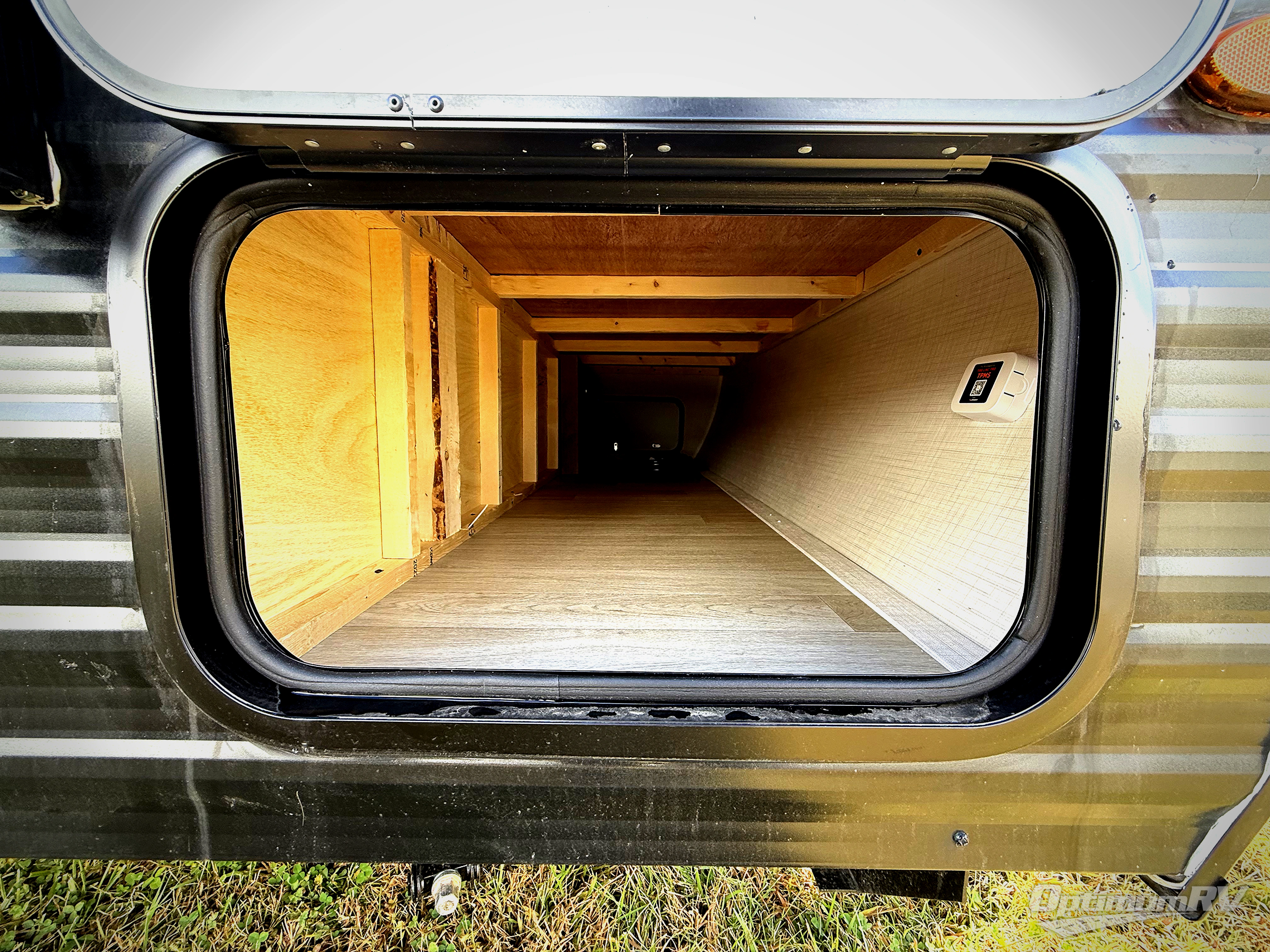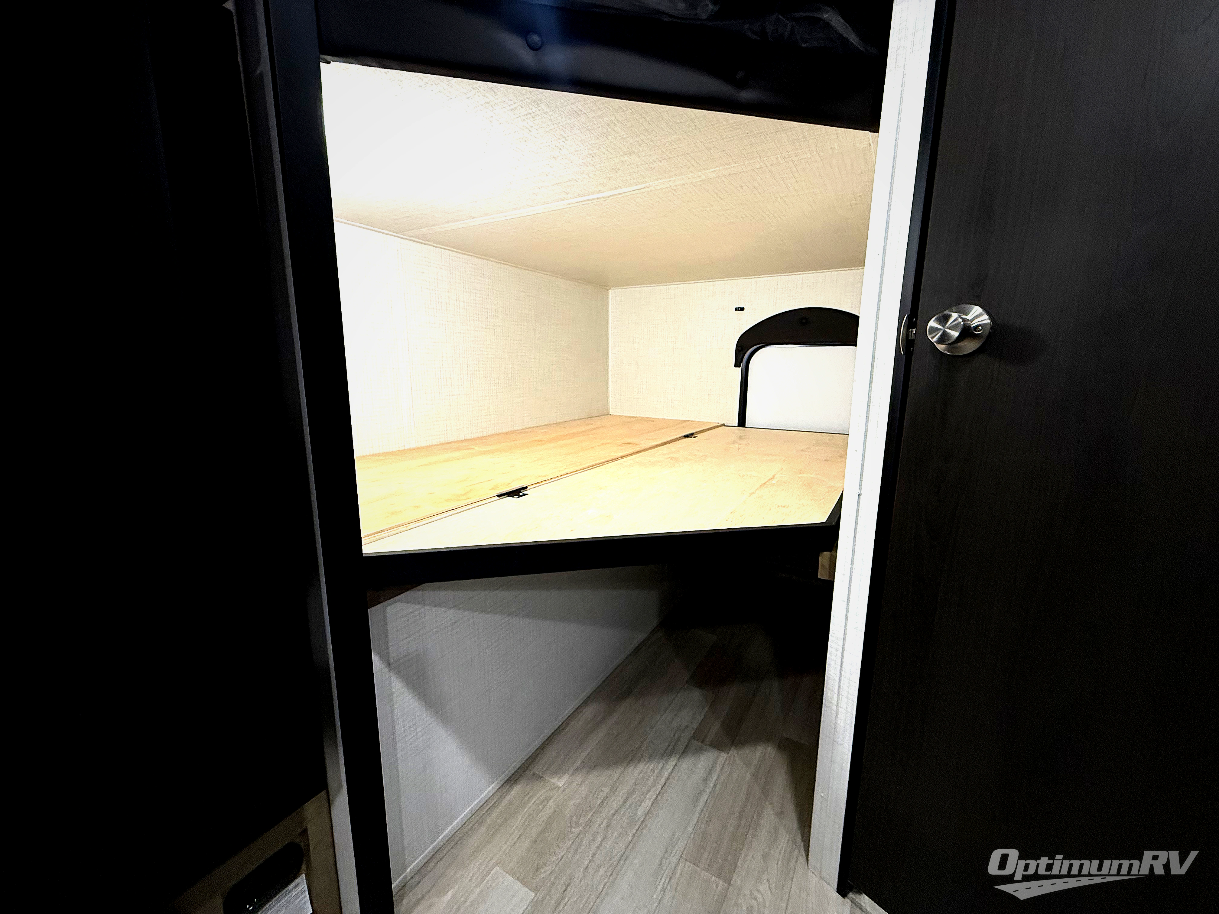 This cute Springdale Mini bunk model will easily sleep seven with the double-size bunks, booth dinette slide, and queen Murphy bed which features a fold-down sofa at the end. During the daytime, you can have the seating you need and want, and at night the sofa folds to become part of the front bed. The rear corner bath is convenient and features a tub/shower, toilet, and sink. The kitchen is fully equipped to allow you to cook as you travel. Enjoy them while under the 15' power awning. A handy pass-thru storage compartment up front offers ample space for camp equipment, and there is additional storage accessible beneath the bunk in back.