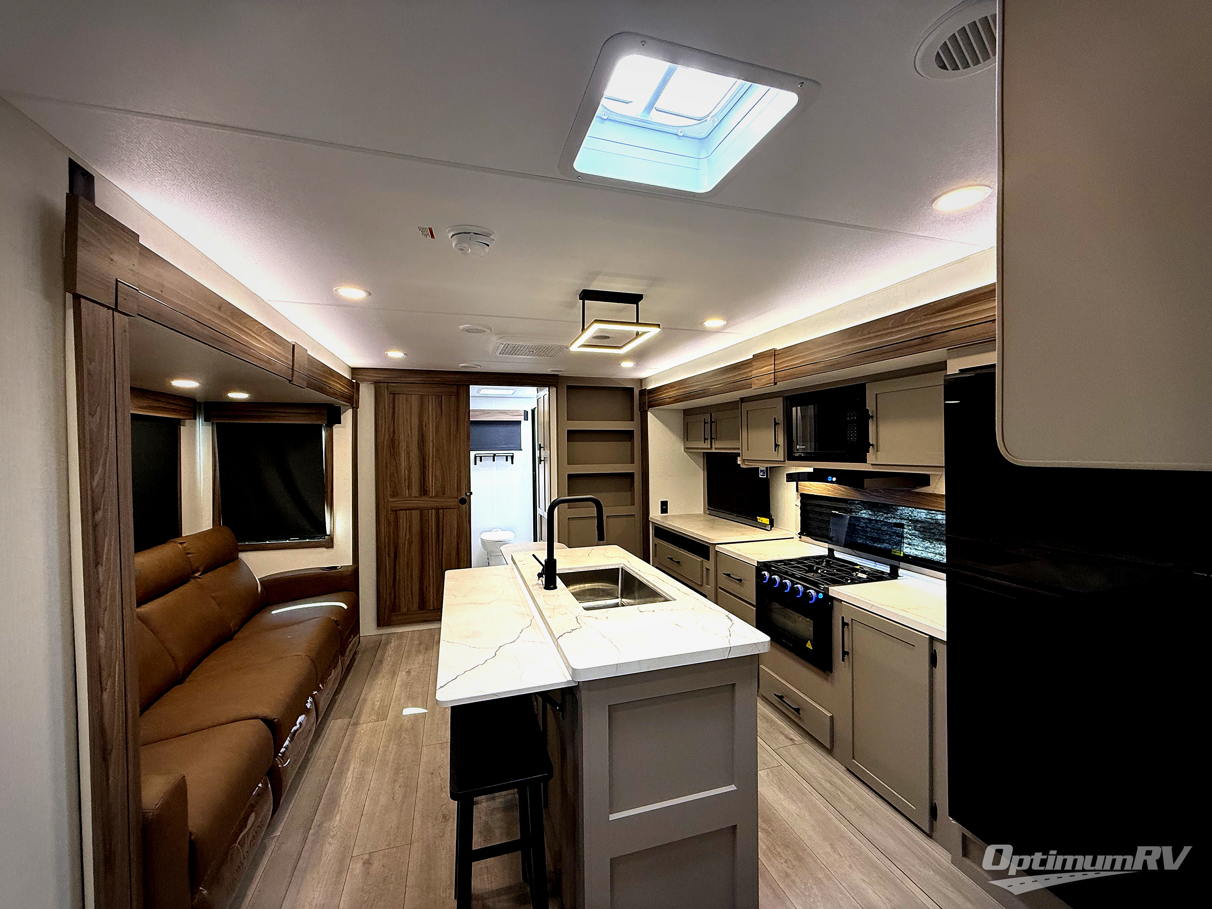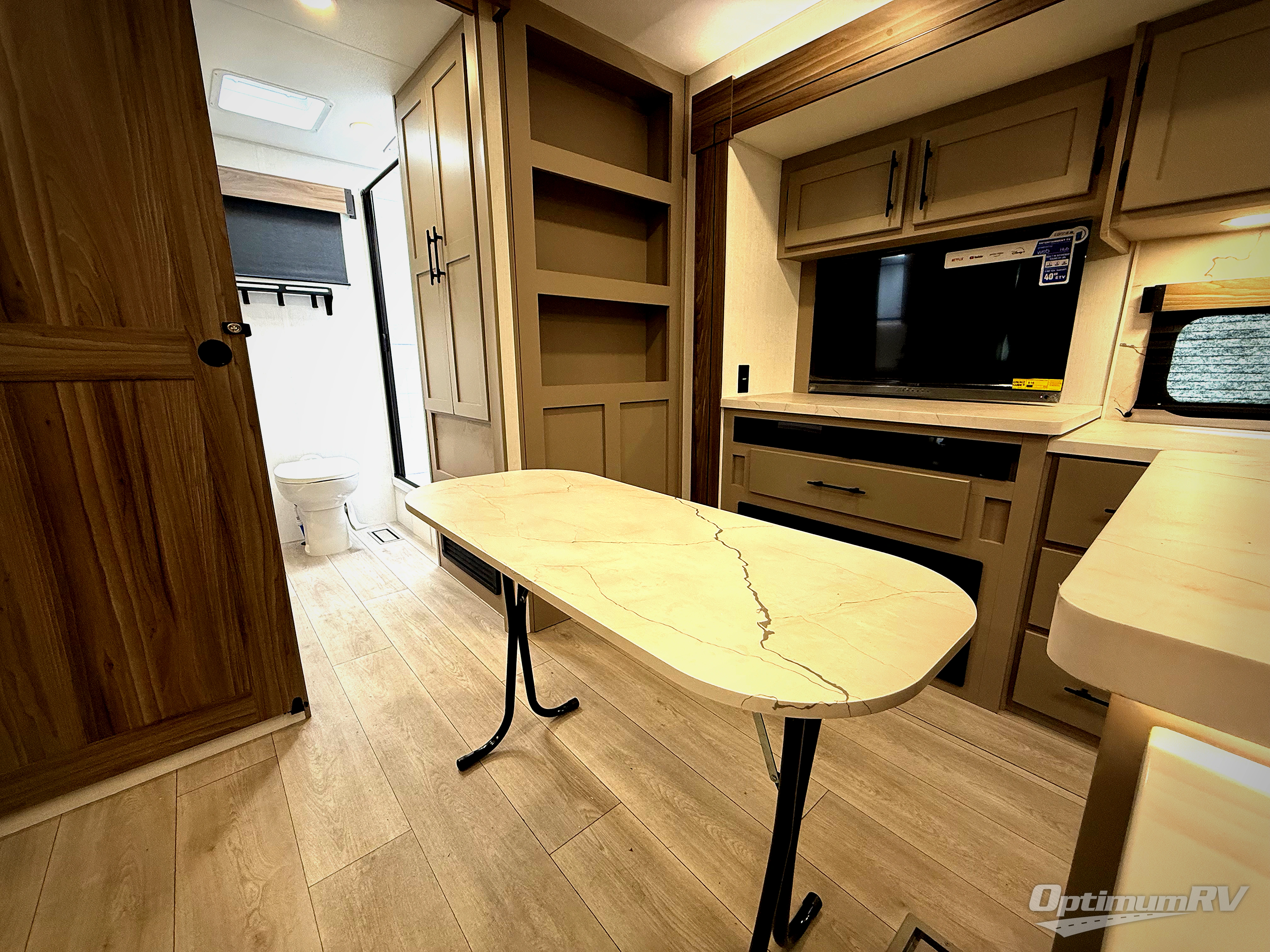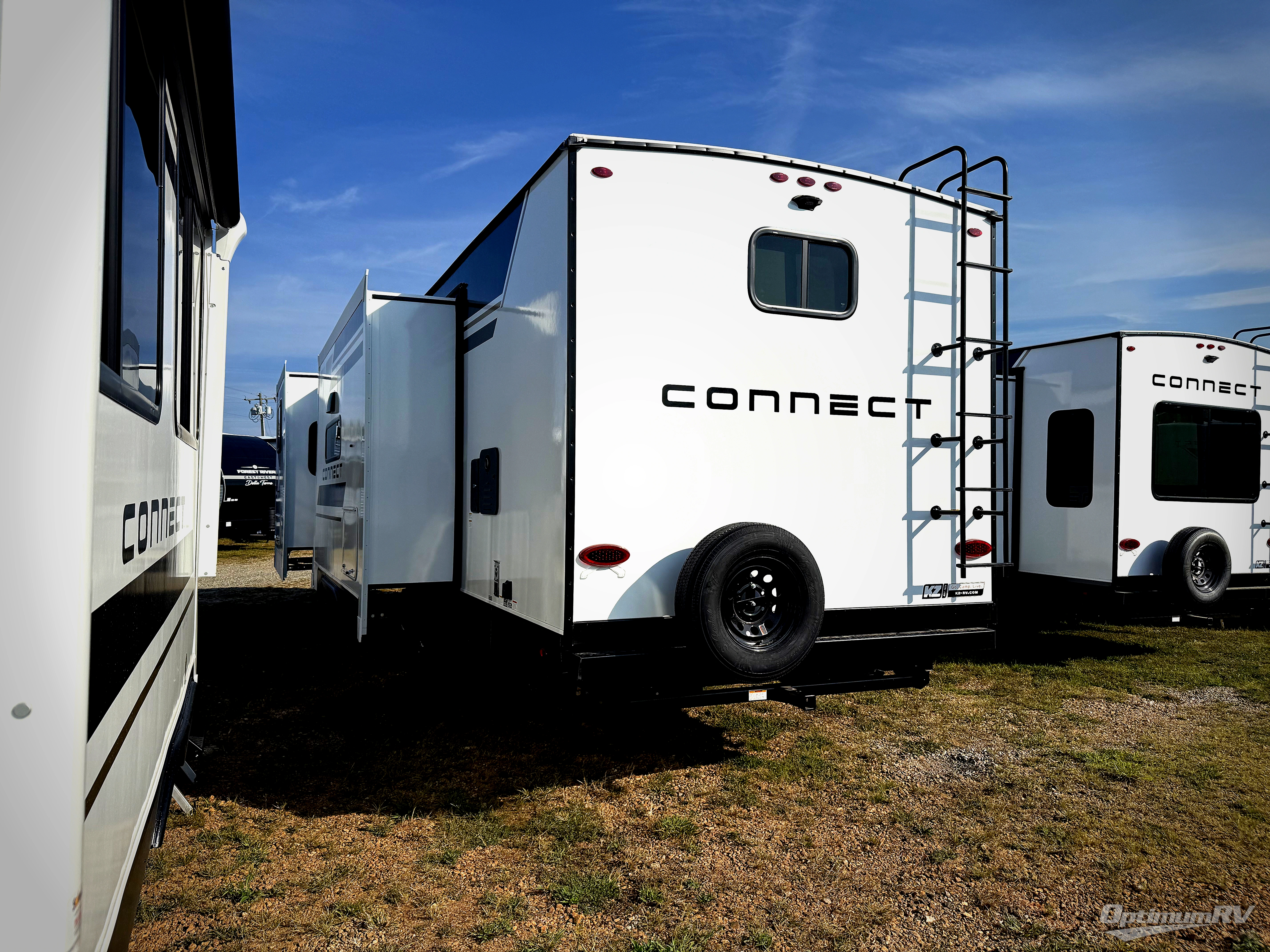 The perfect couple's trailer is found in this Connect! After you wake up each morning on the king bed slide, you can use the walk-in closet to get ready for the day. There is also a dresser here and a TV mount if you want the option to watch movies in bed. A three burner range and microwave oven in the full kitchen will let you make breakfast before heading out for the day, and the theater seating will provide a place to relax once you get back. The entertainment center with a fireplace will make this room feel more like home, and the kitchen island includes ample counter space with its flip-up top. The full rear bath includes dual bath sinks so you both can get ready at the same time, and the wardrobe with washer and dryer prep gives you the option to add these appliances.