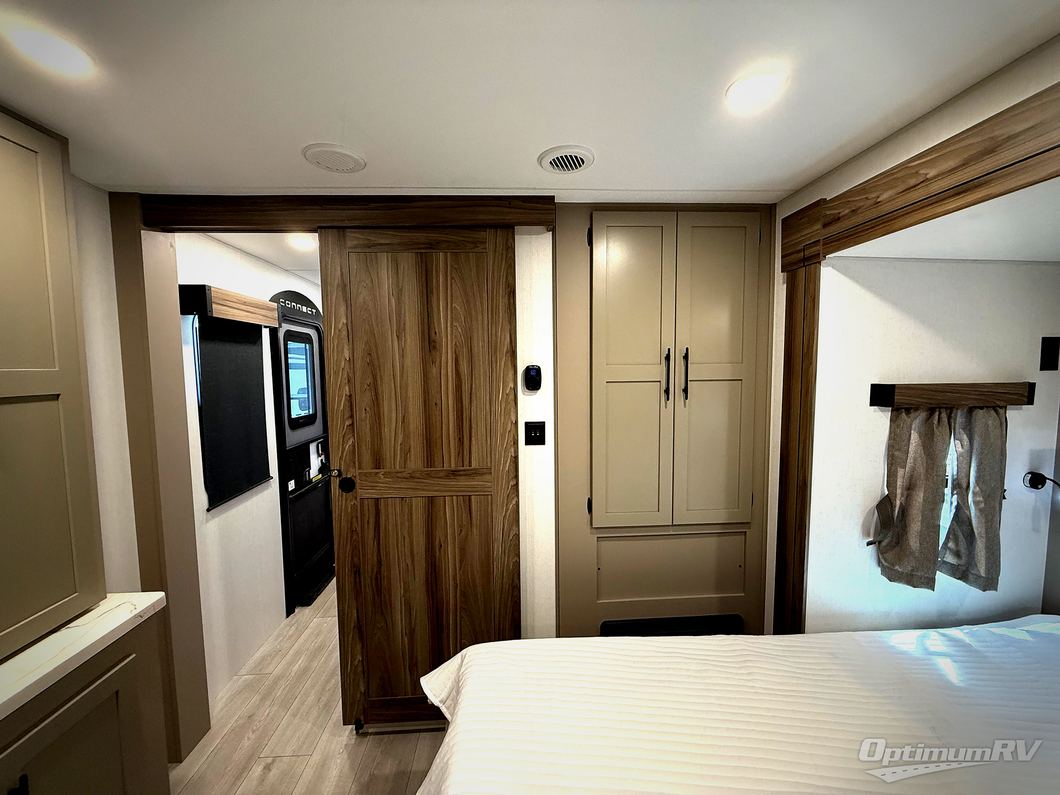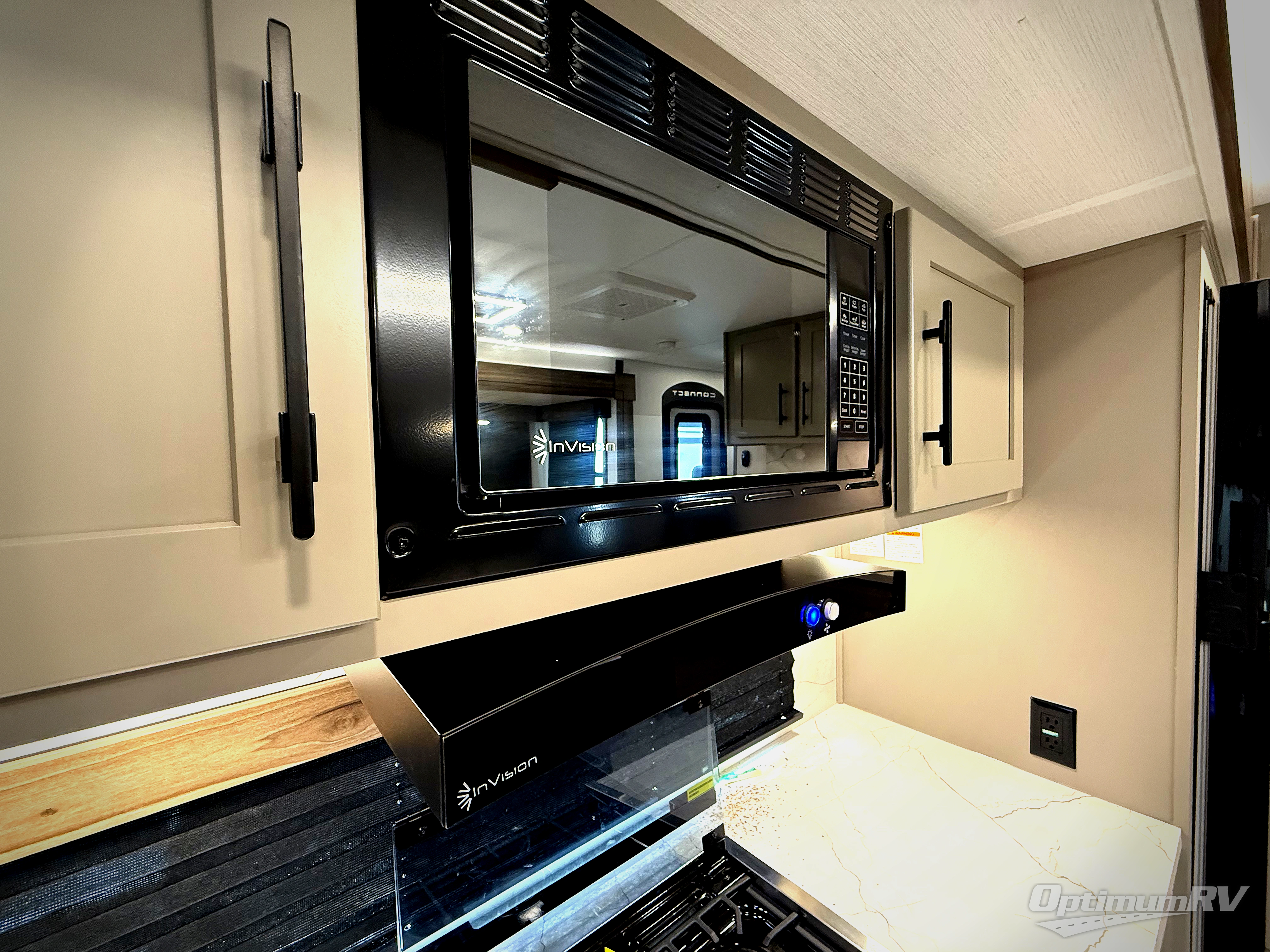 How about a nice afternoon of relaxing on the lake and then rinsing off in the 30" x 36" shower on this Connect travel trailer? After you get clean, you can grab a fresh change of clothes from the front walk-in closet and dresser in the private bedroom. The bedroom also has an area prepped for a washer and dryer and a king bed slide. Out in the main living area, you'll be able to prepare a meal without much effort at all since this trailer has a three-burner range, a microwave, a 10 cu. ft. 12V refrigerator, and a kitchen island for more prep space. You can even have your friends sit on the 70" sofa, theater seating, and booth dinette to chat with you while you finish the meal. You all will also benefit from the two electric awnings with LED lights on the exterior.