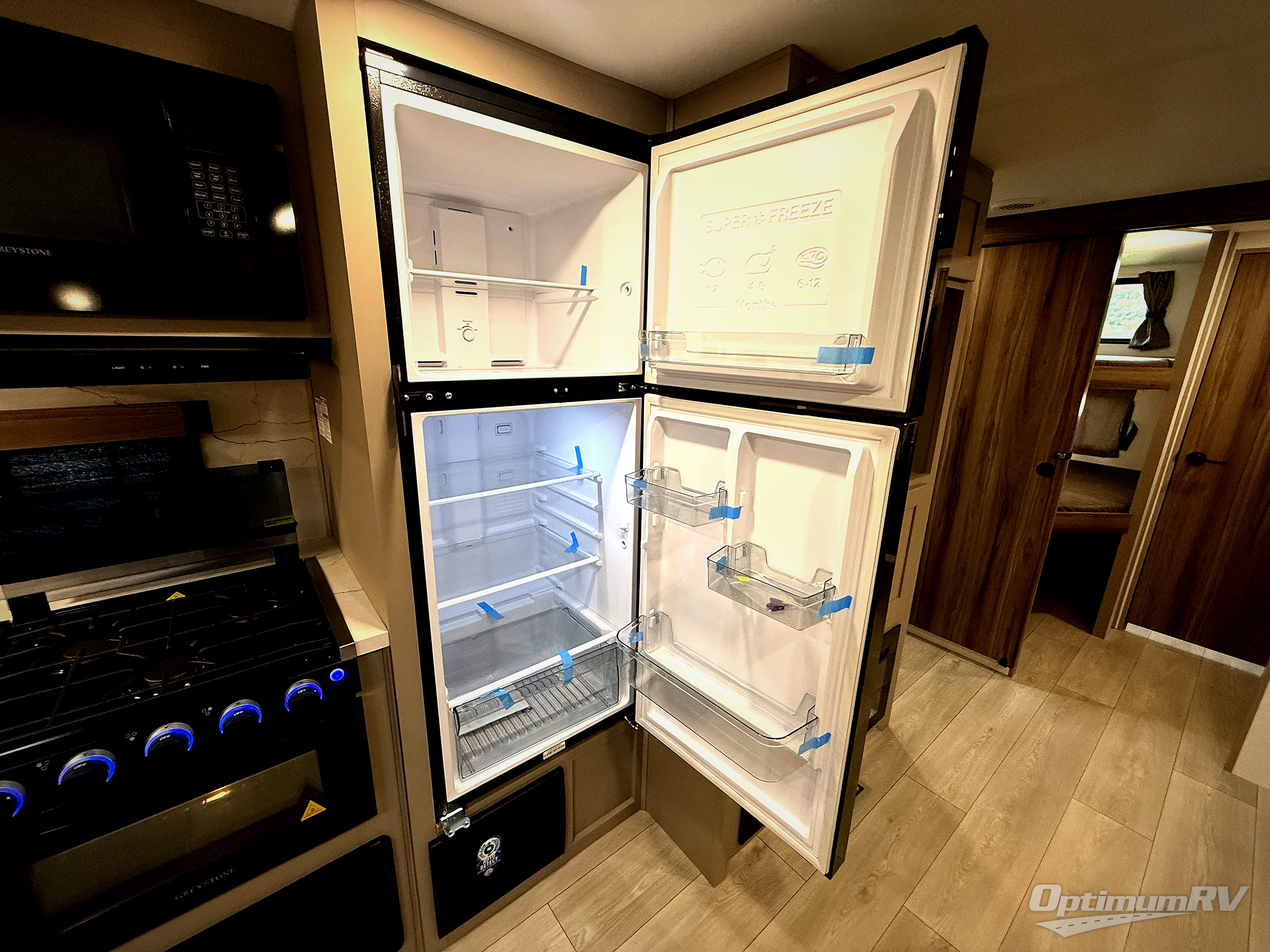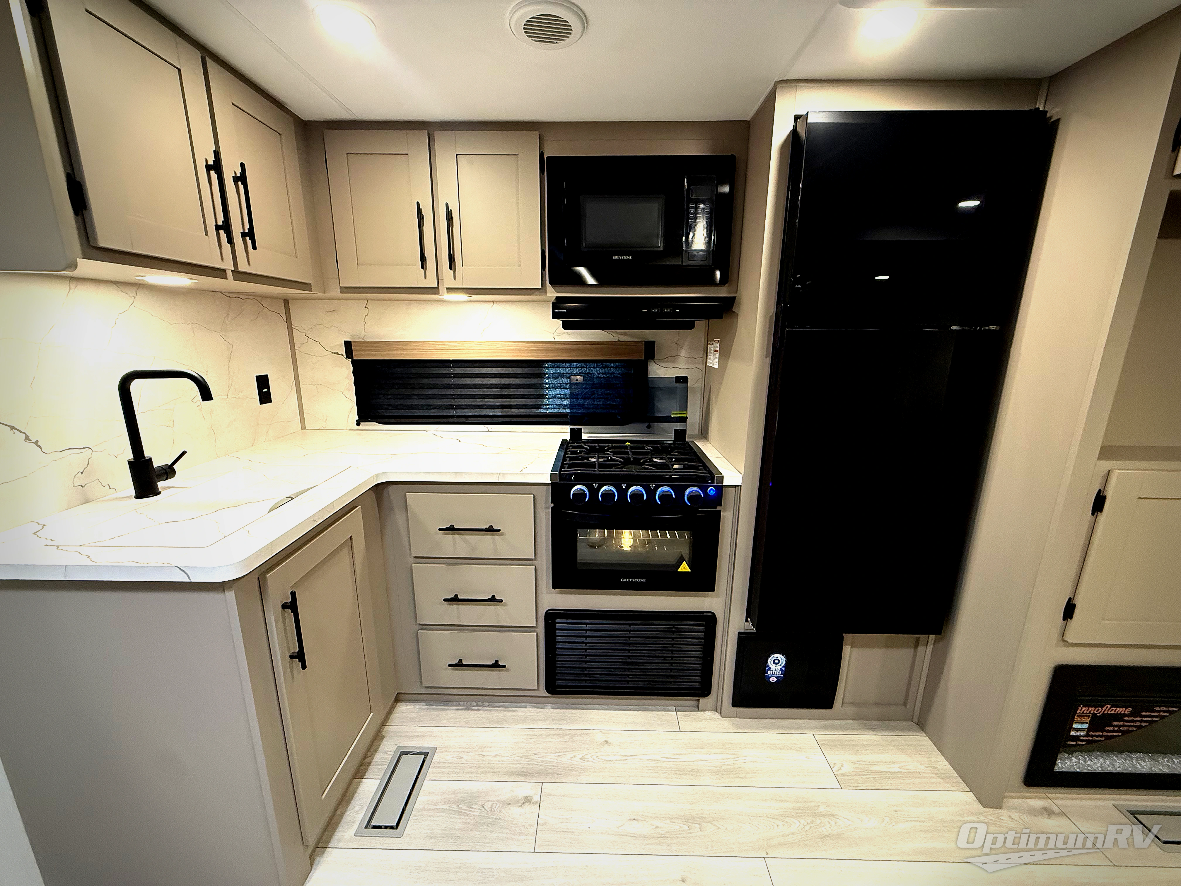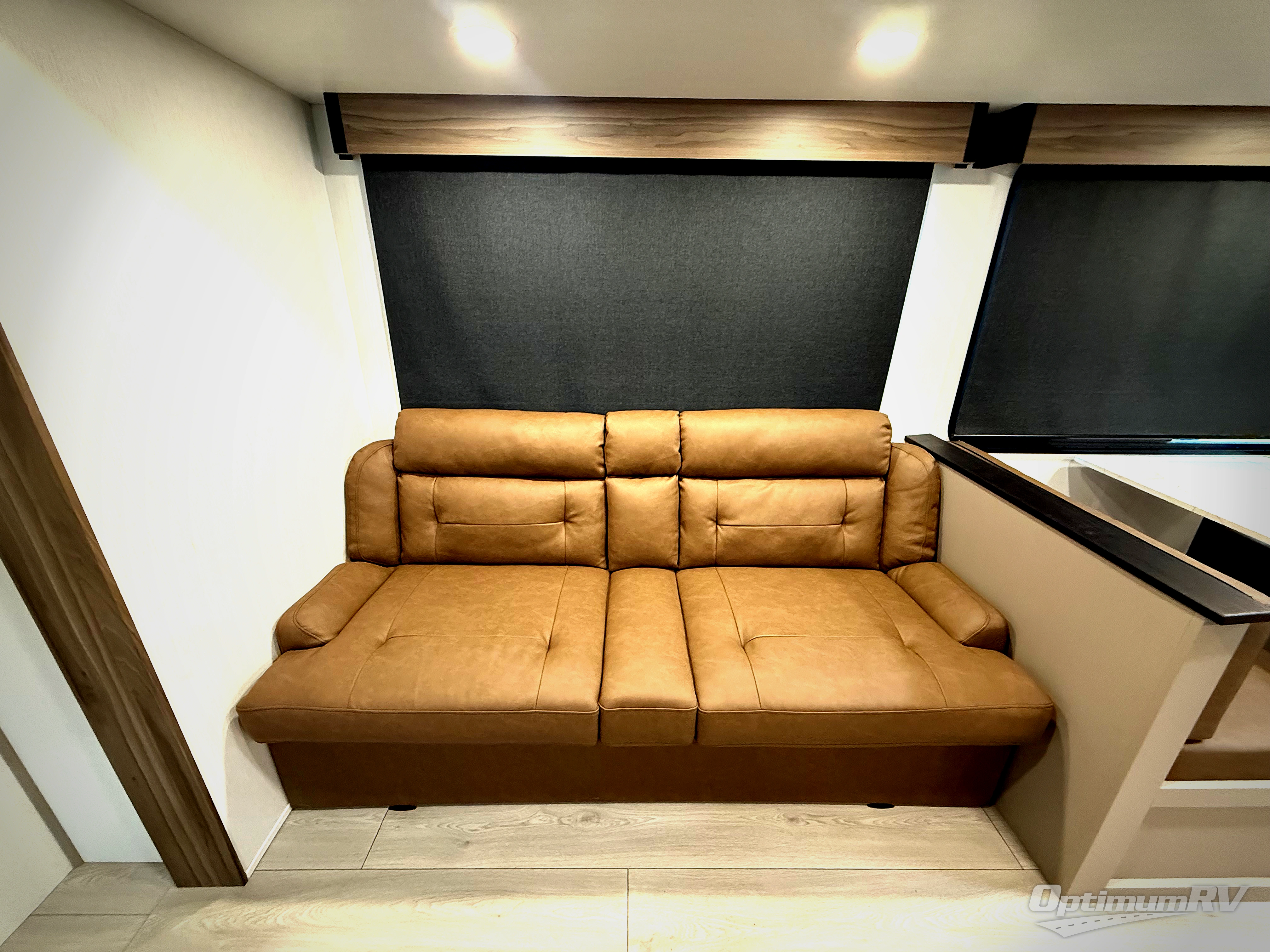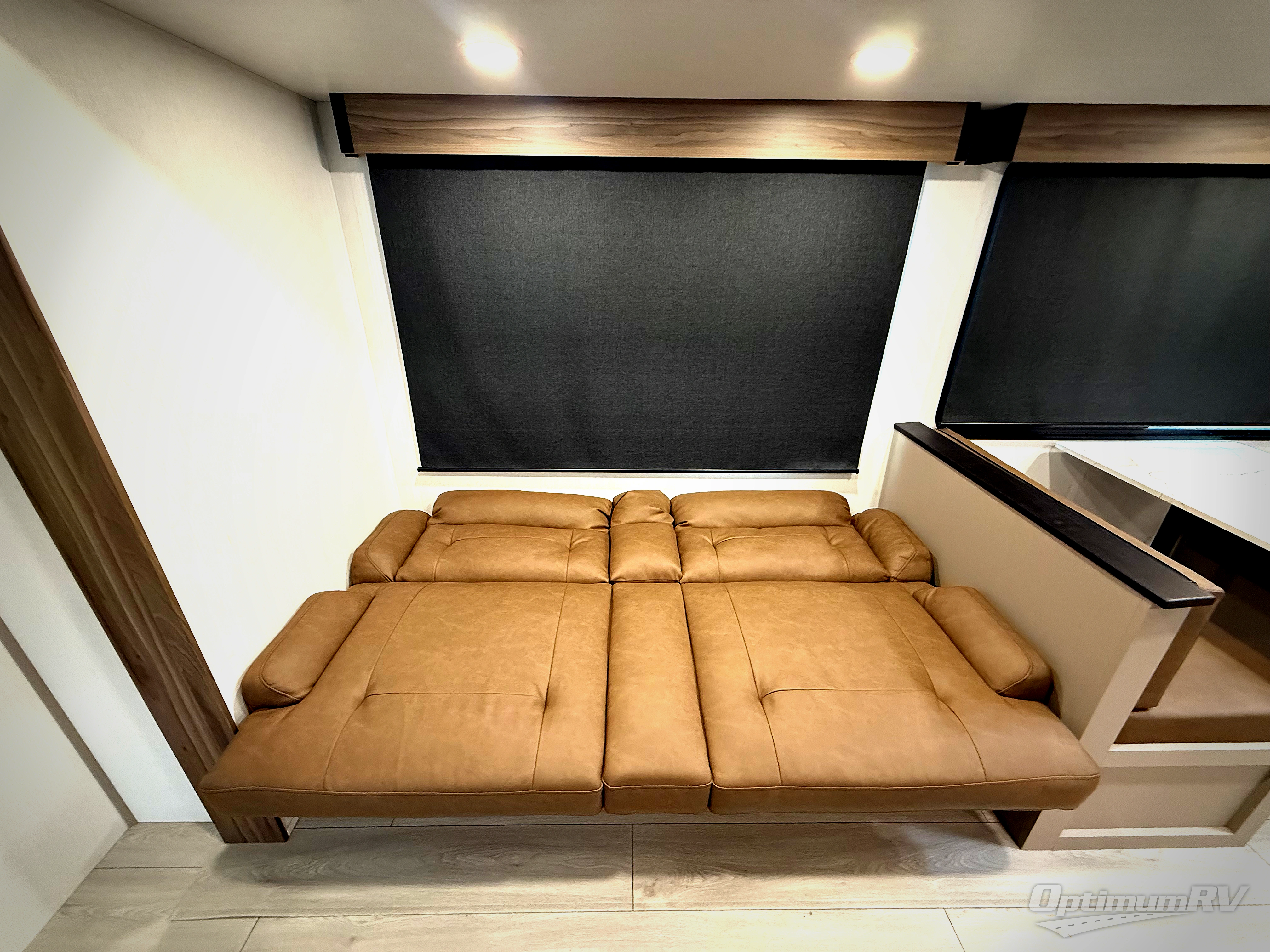 Your family will love this travel trailer. Sleep comfortably with your partner in the amazing queen bed situated in the front room, which has dual wardrobes perfect for storing your clothing. This unit is fitted with a full walk-through bathroom and a half bathroom in the rear part of the trailer, both ideal for refreshing yourself on a hot day. You can relax a little in the 70" sofa equipped with a 34" fireplace in front of it allowing you to enjoy a cozy atmosphere. You can also cook delicious meals in the incredible kitchen, fitted with a microwave, three cooktop burners, a walk-in pantry with coat hooks, a sink, a dinette, and a refrigerator, ideal for cooking any delicious dish. Finally, you will find an outdoor refrigerator and griddle excellent for cooking under the stars with your family, and a pass-through storage perfect for placing your stuff.
