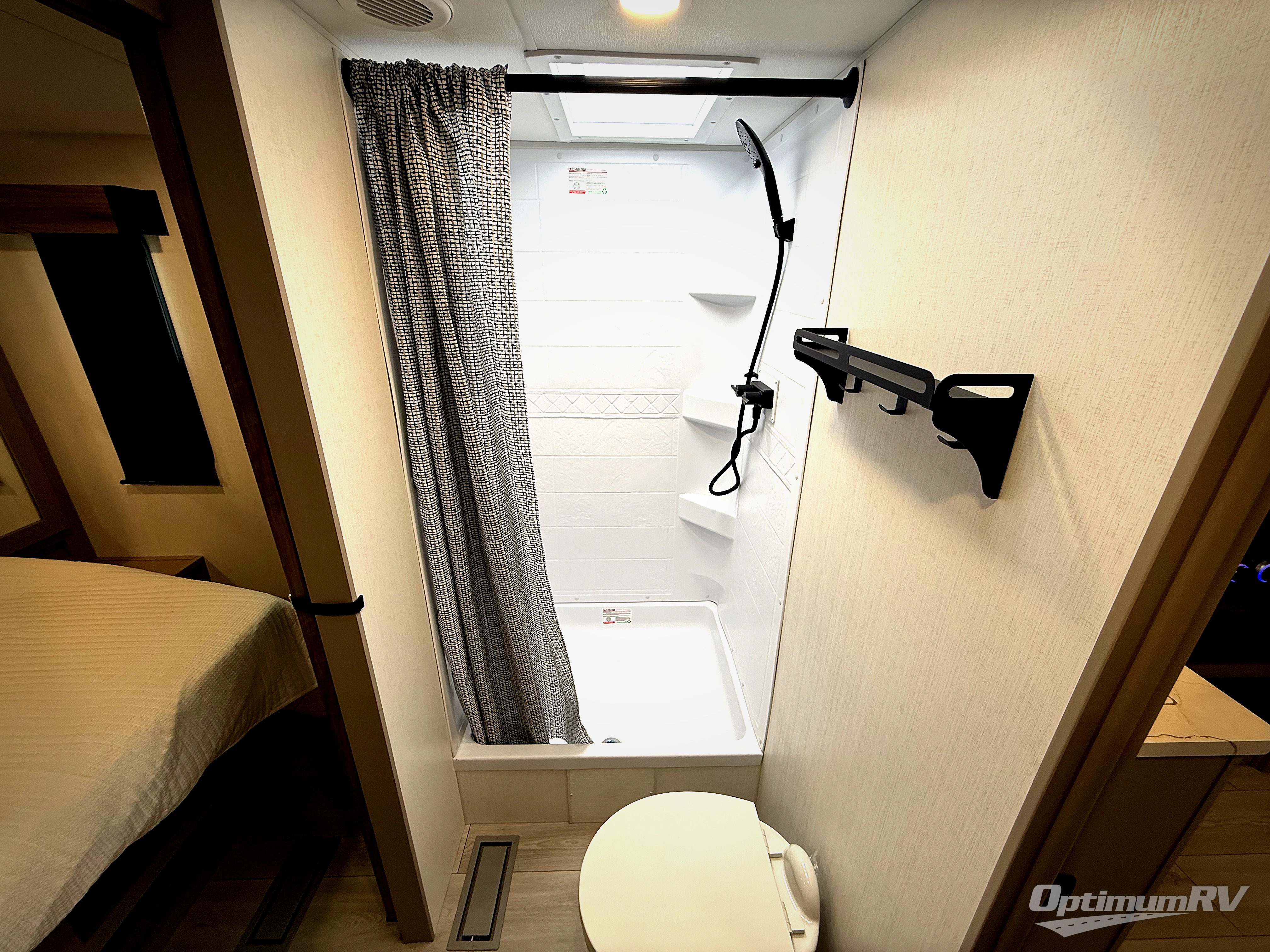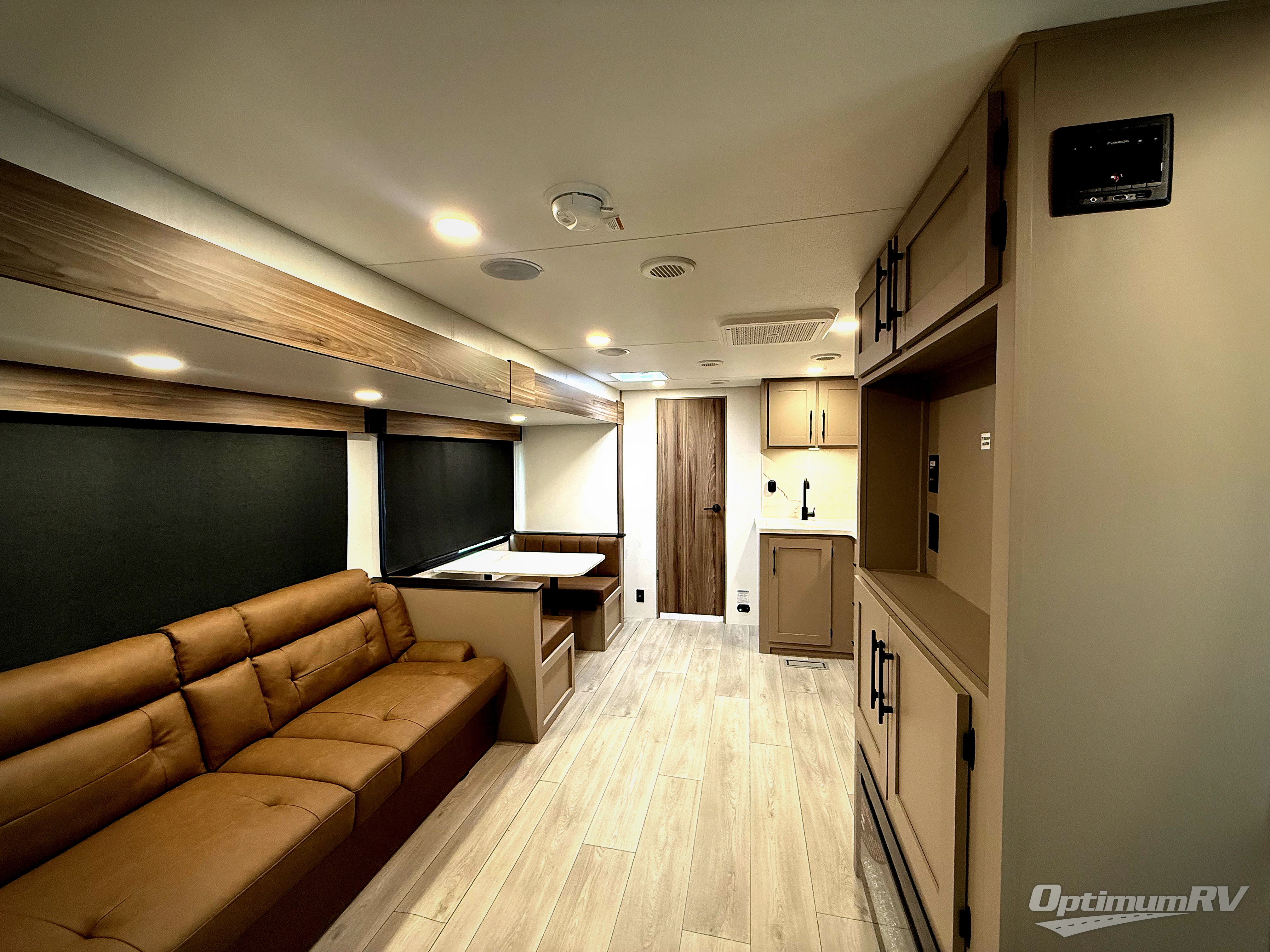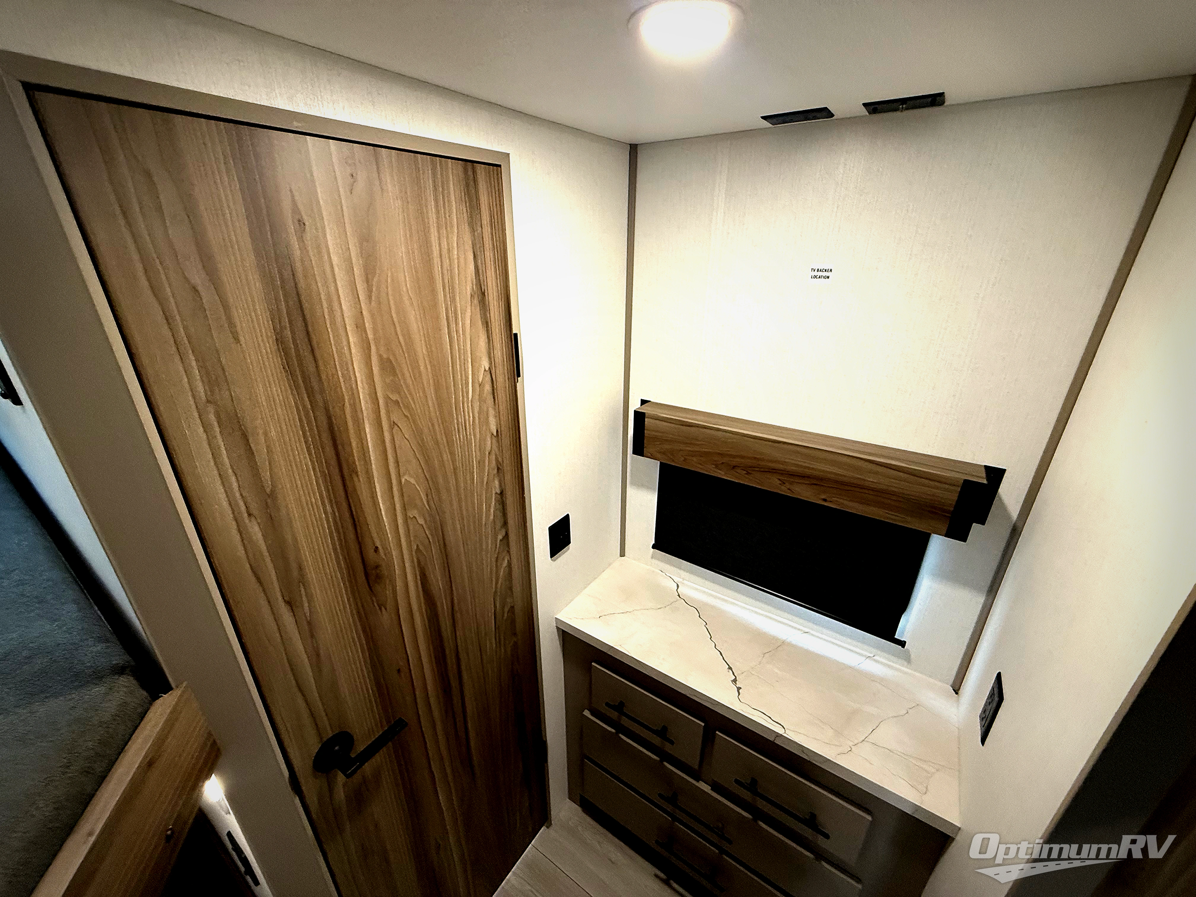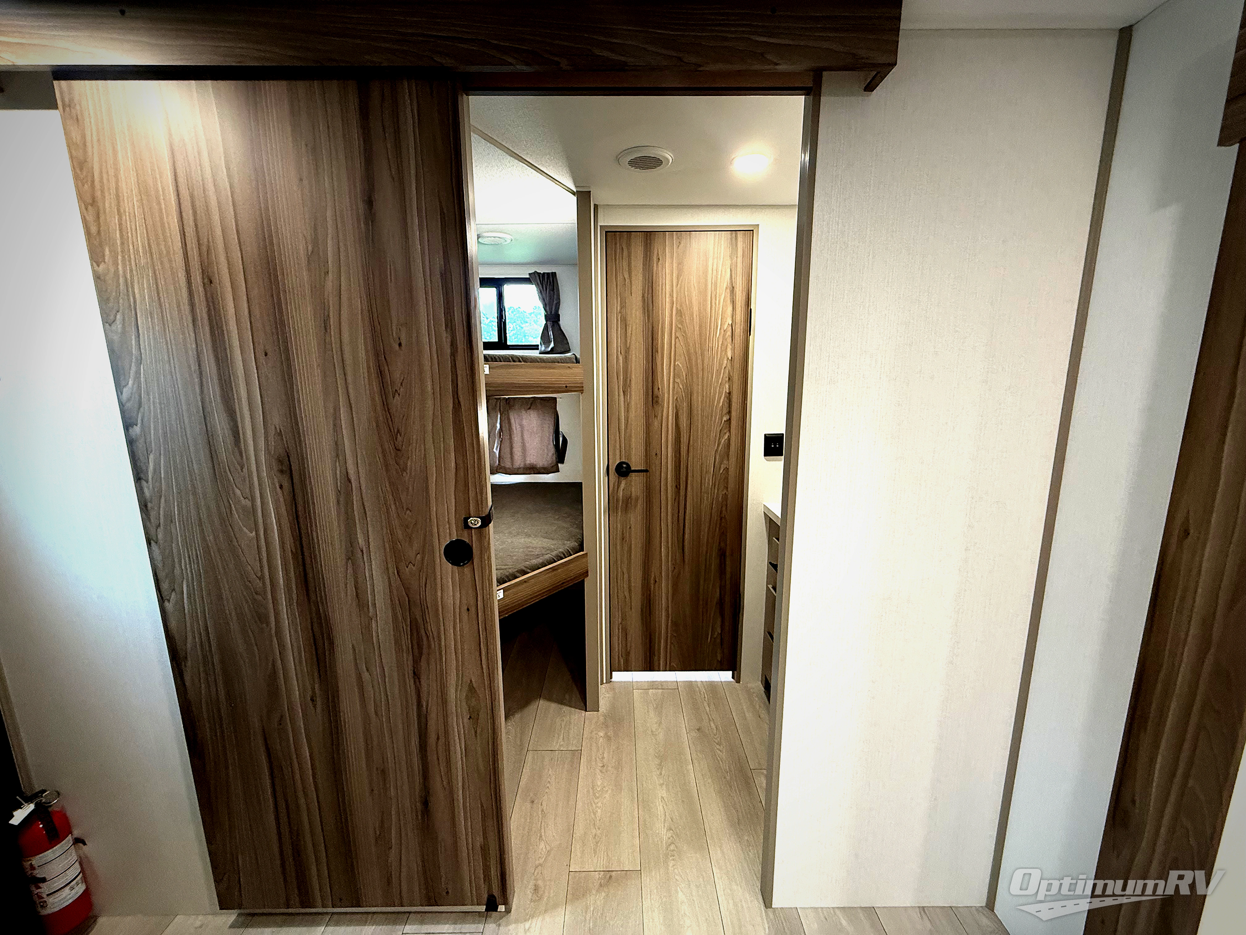 Your family will love this travel trailer. Sleep comfortably with your partner in the amazing queen bed situated in the front room, which has dual wardrobes perfect for storing your clothing. This unit is fitted with a full walk-through bathroom and a half bathroom in the rear part of the trailer, both ideal for refreshing yourself on a hot day. You can relax a little in the 70" sofa equipped with a 34" fireplace in front of it allowing you to enjoy a cozy atmosphere. You can also cook delicious meals in the incredible kitchen, fitted with a microwave, three cooktop burners, a walk-in pantry with coat hooks, a sink, a dinette, and a refrigerator, ideal for cooking any delicious dish. Finally, you will find an outdoor refrigerator and griddle excellent for cooking under the stars with your family, and a pass-through storage perfect for placing your stuff.