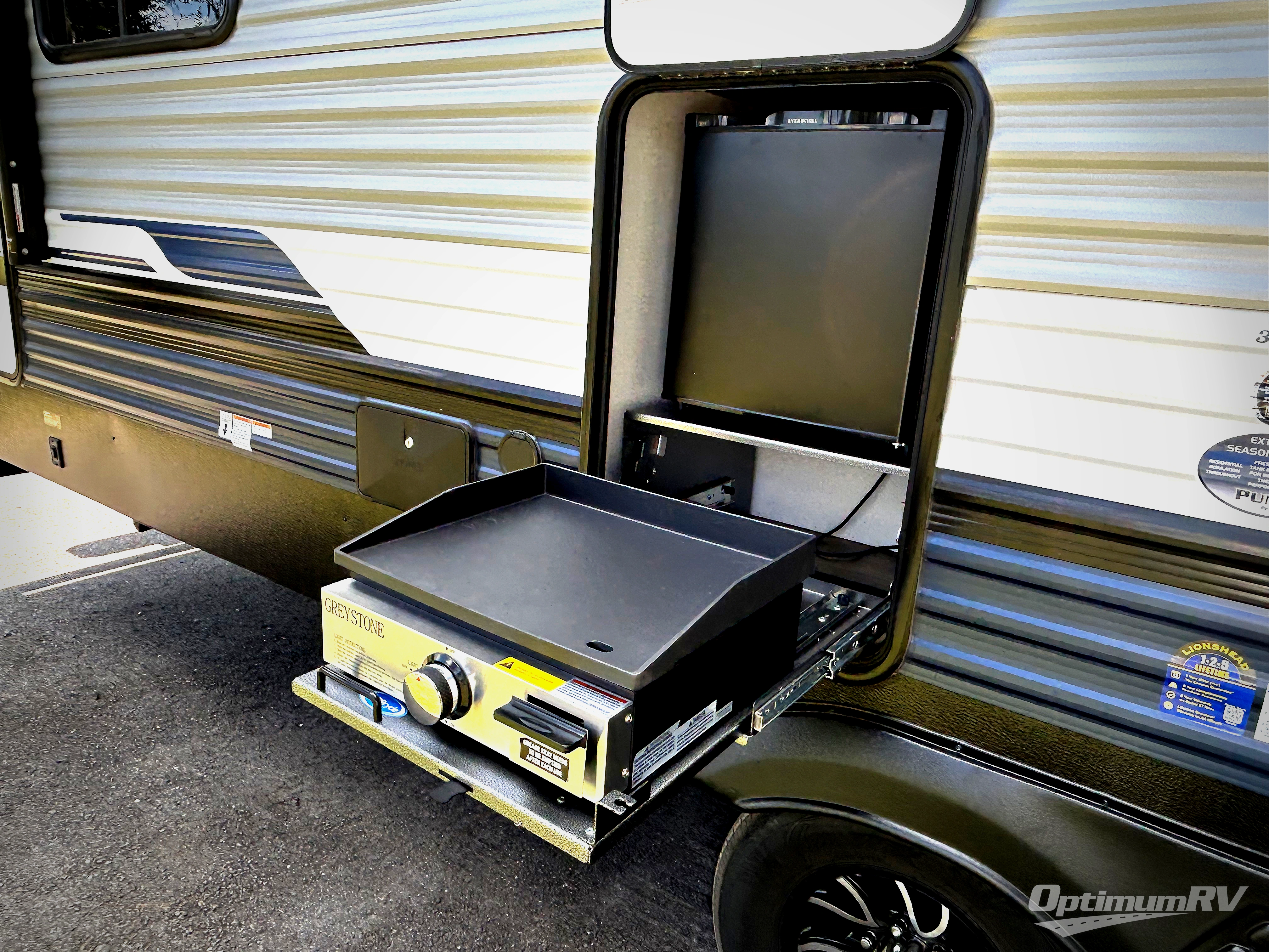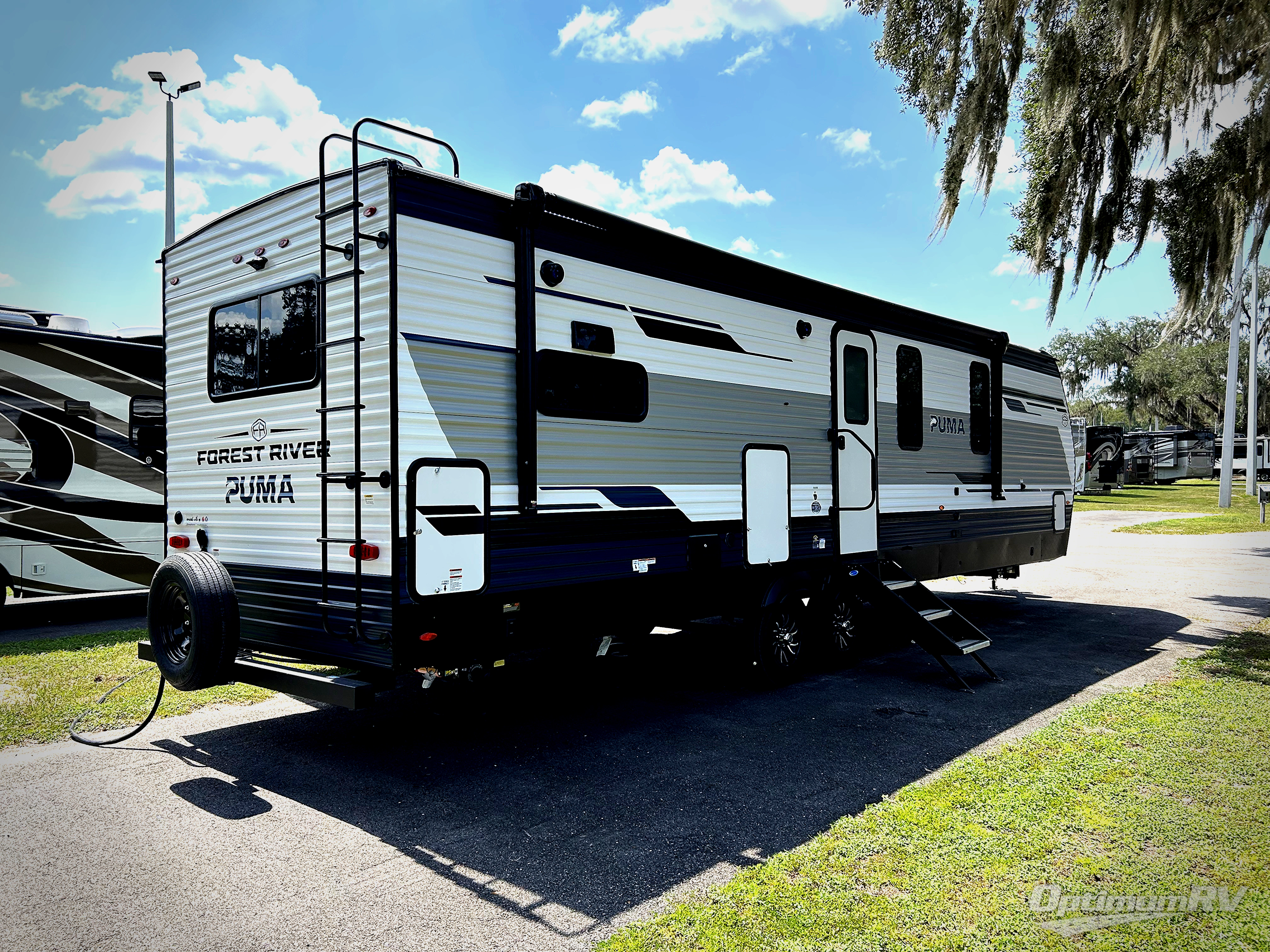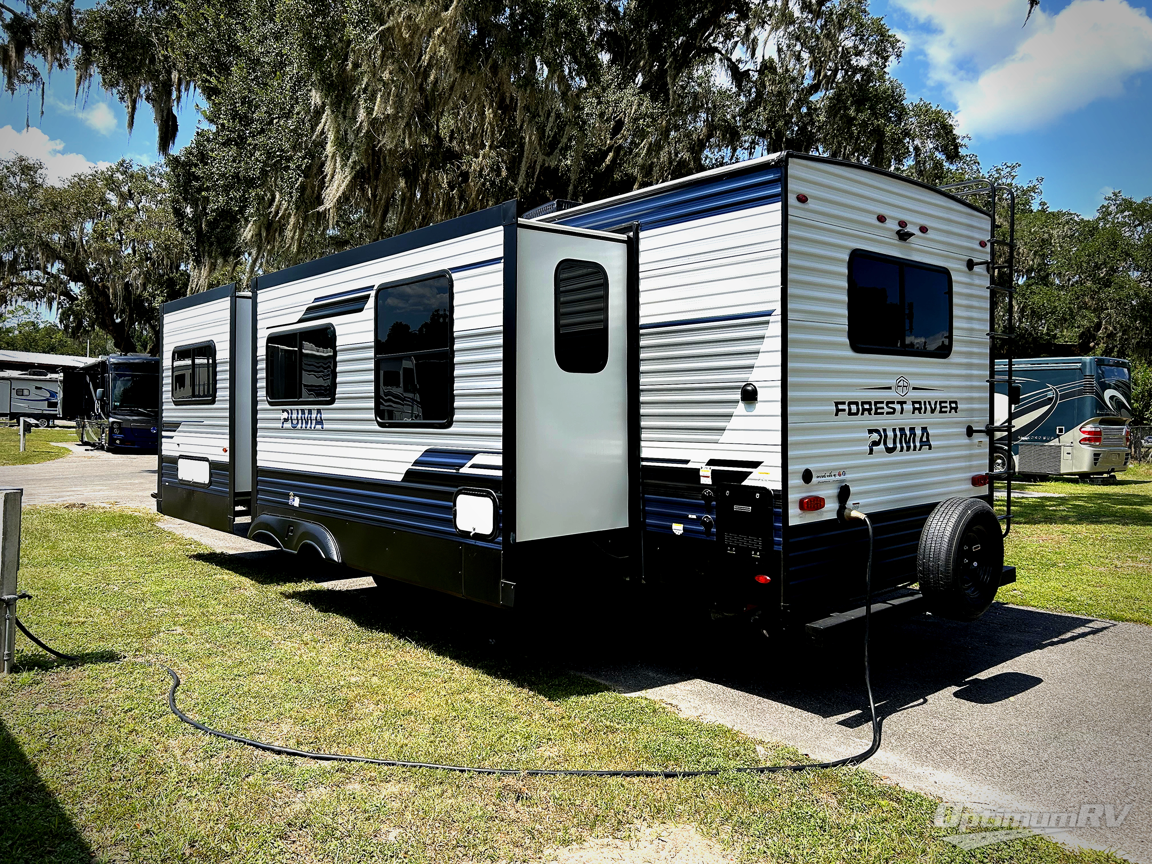 If you're looking for family-fun adventures then you need one of these Palomino Puma fifth wheels or travel trailers! They are built rugged, easy to tow, and jam packed with features. The Darco wrapped underbelly will protect your units vitals and the AlphaPly roofing membrane covers it. They also have new aluminum wheels and a powder coated steel I-beam frame. Inside, the Congoleum linoleum will be easy to keep clean, and the night roller shades will provide privacy when it's time to turn in. You'll also enjoy an electric awning with an LED light strip plus an AM/FM/Bluetooth stereo and two outside speakers to keep the party going!