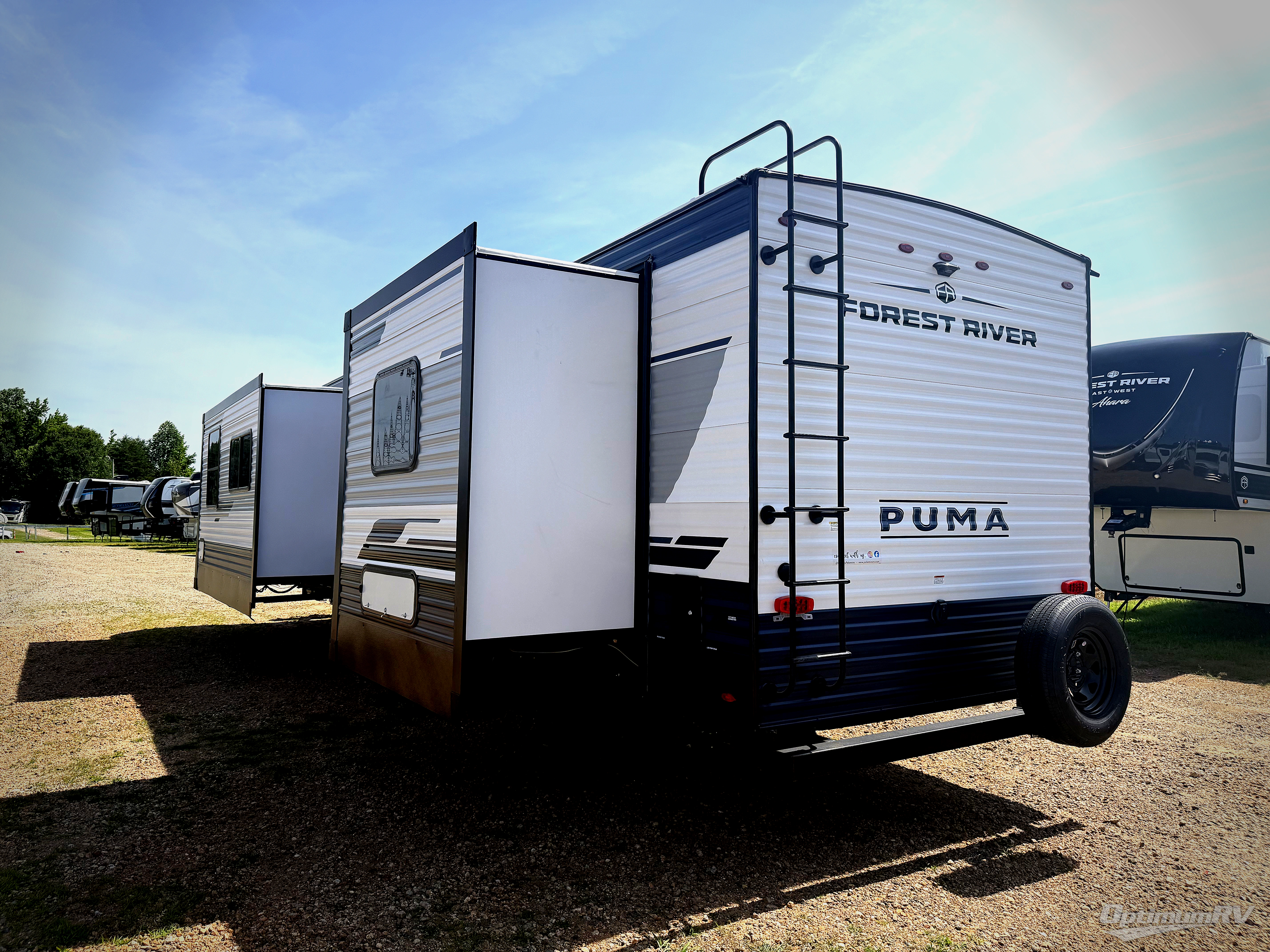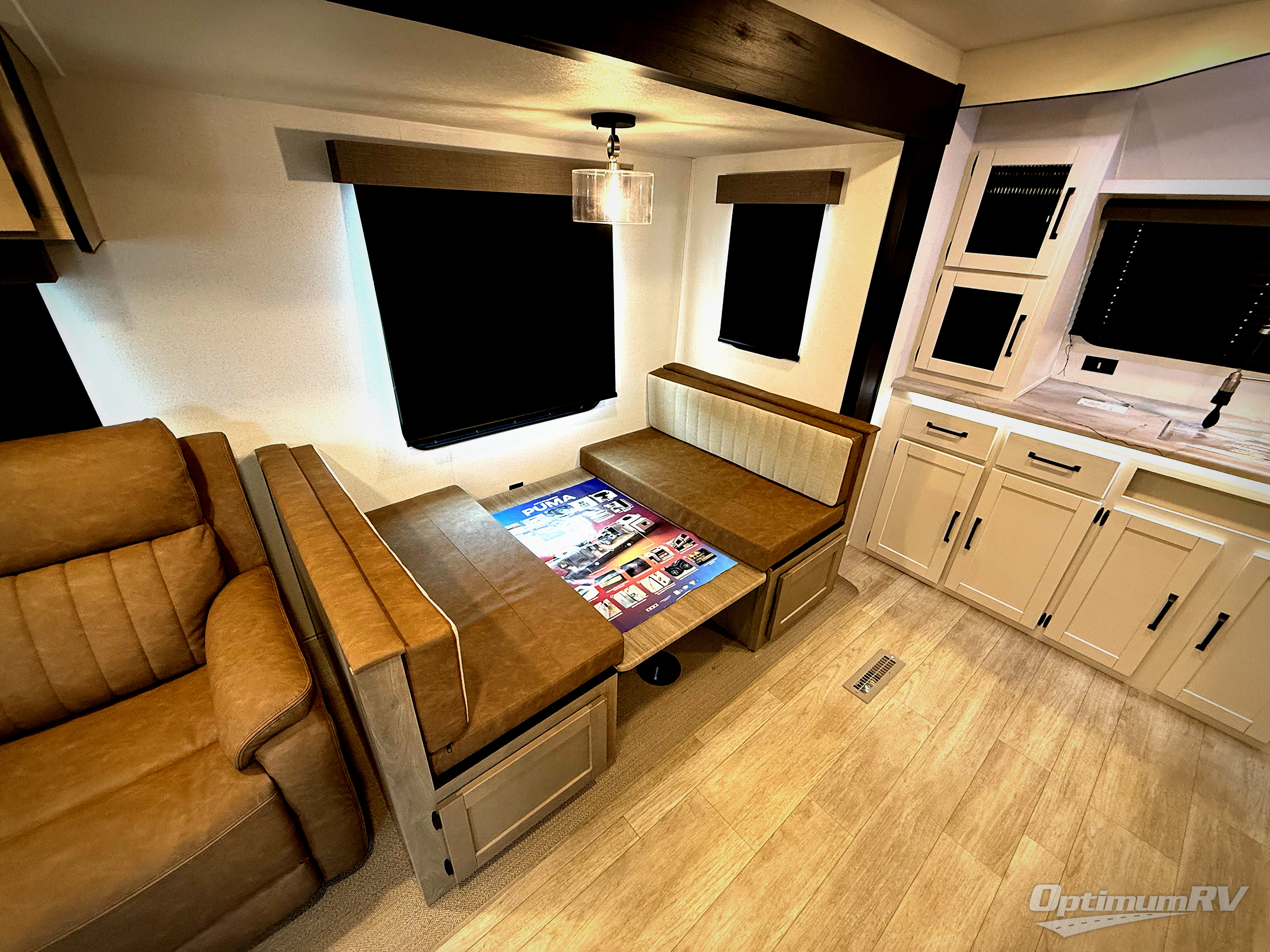If you're looking for family-fun adventures then you need one of these Palomino Puma fifth wheels or travel trailers! They are built rugged, easy to tow, and jam packed with features. The Darco wrapped underbelly will protect your units vitals and the AlphaPly roofing membrane covers it. They also have new aluminum wheels and a powder coated steel I-beam frame. Inside, the Congoleum linoleum will be easy to keep clean, and the night roller shades will provide privacy when it's time to turn in. You'll also enjoy an electric awning with an LED light strip plus an AM/FM/Bluetooth stereo and two outside speakers to keep the party going!