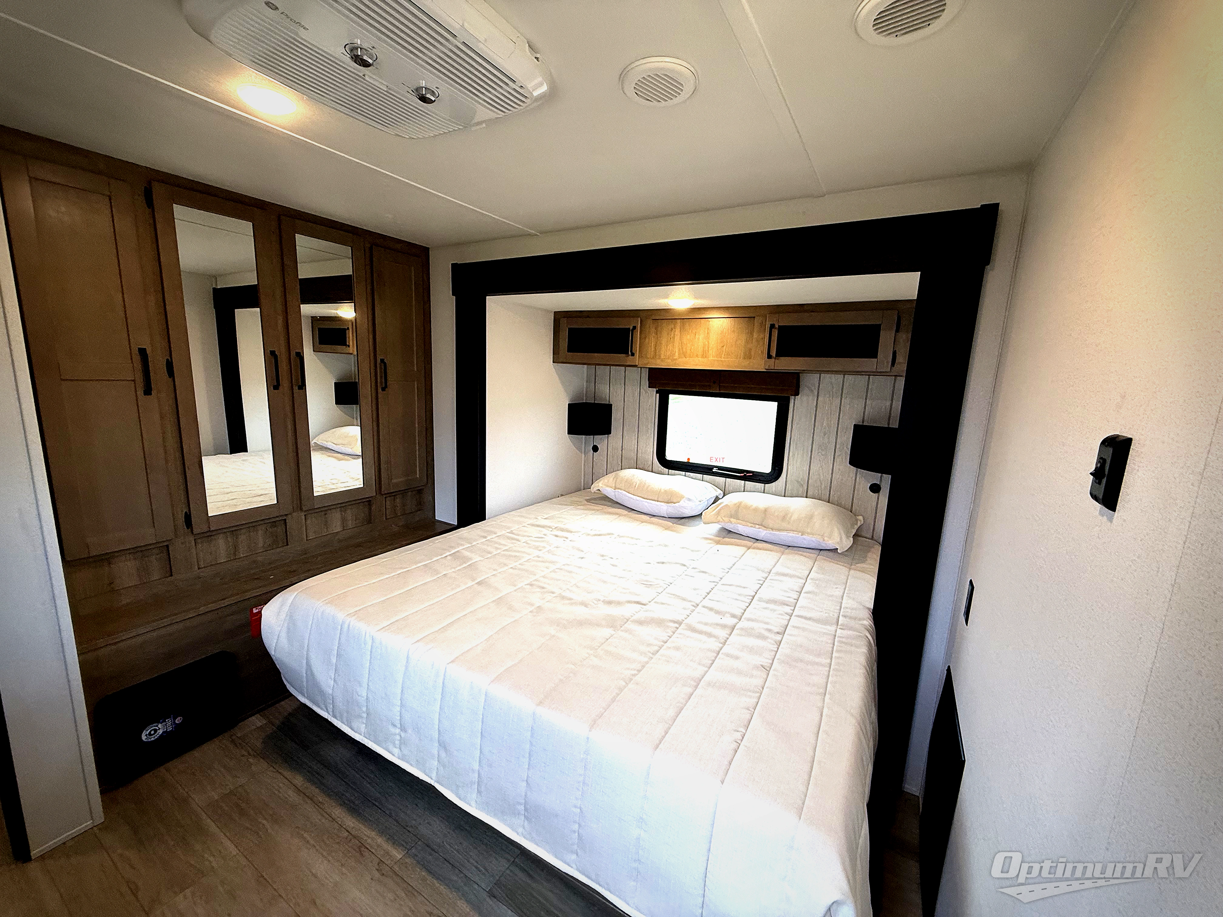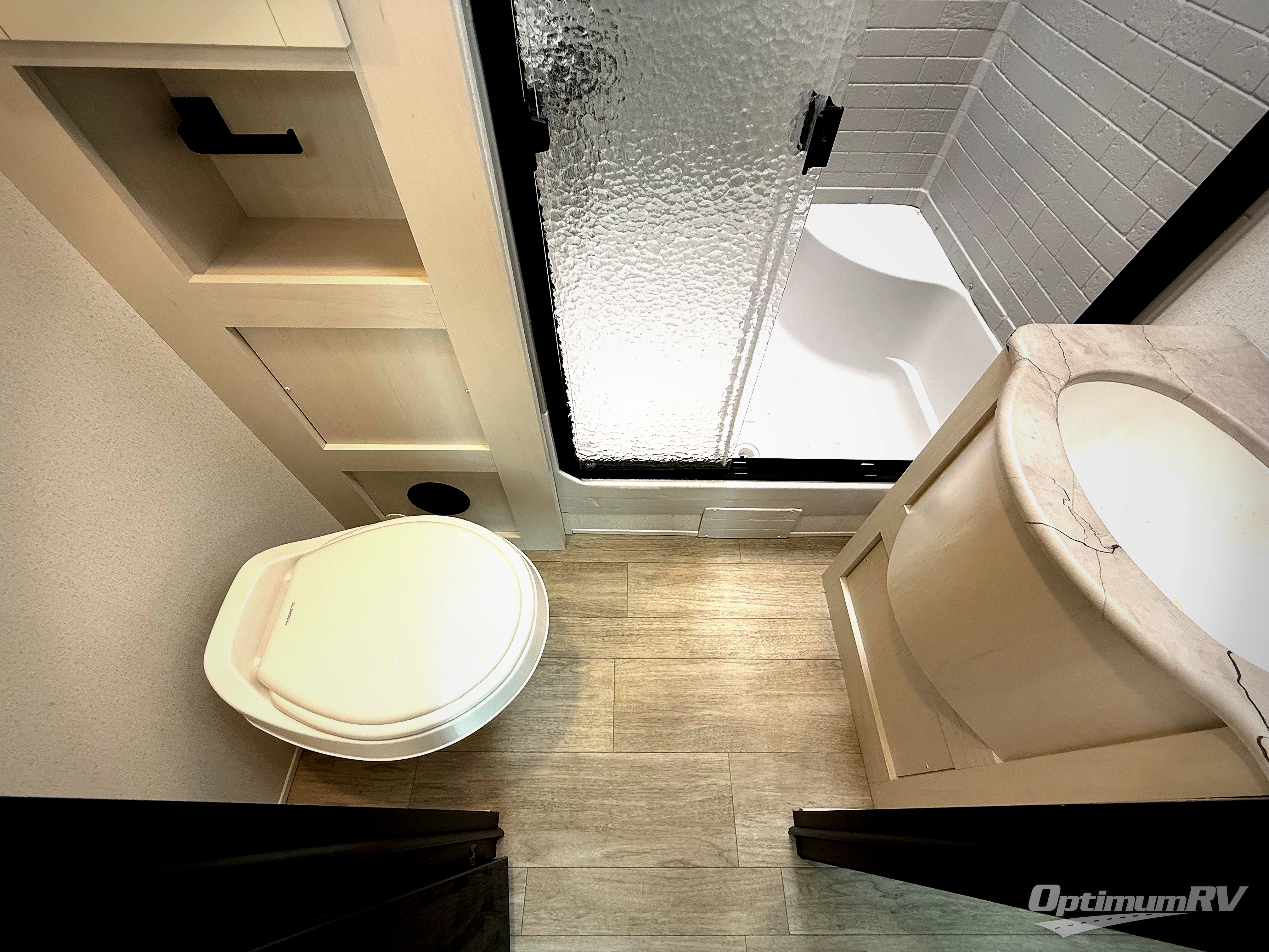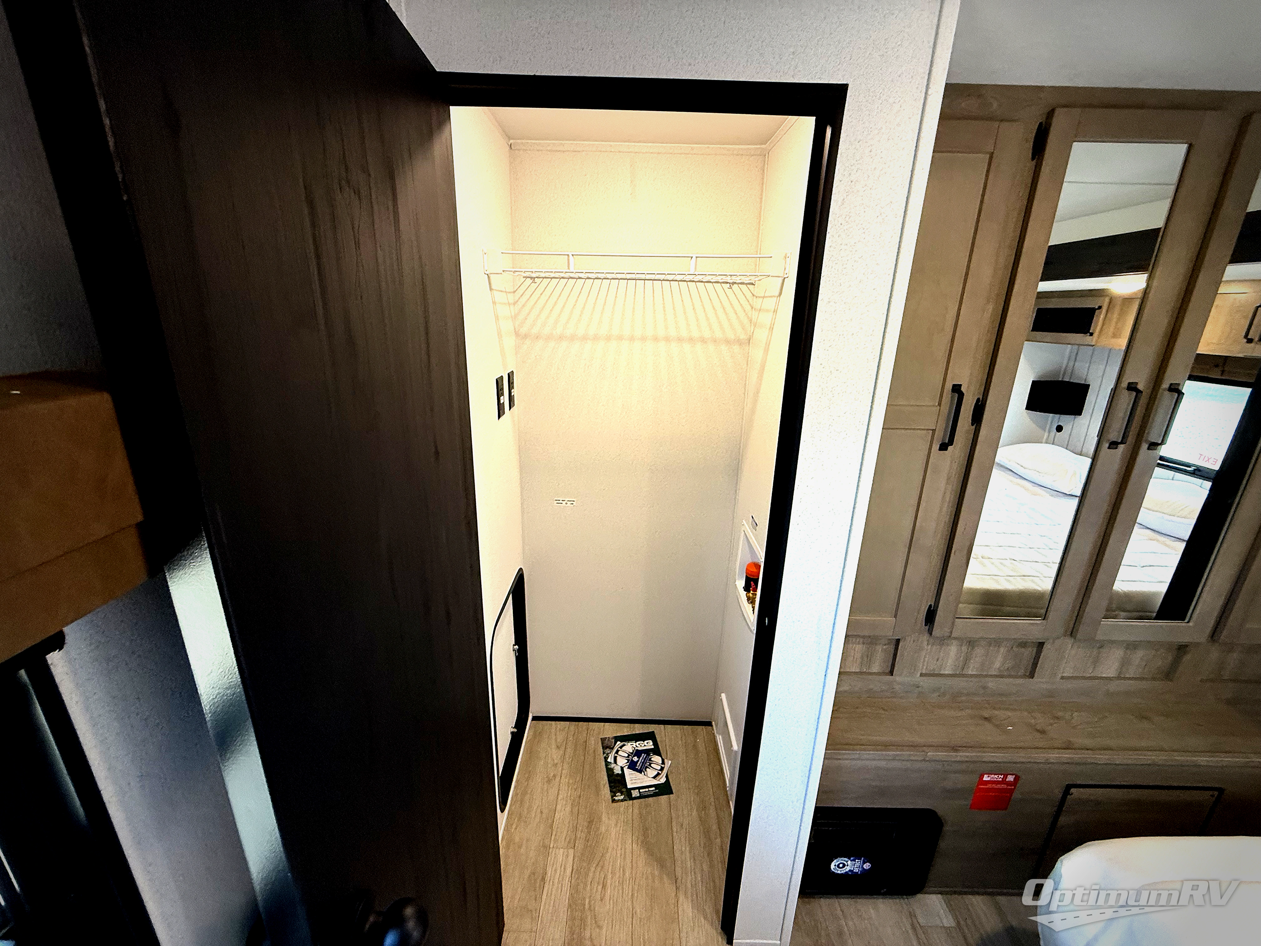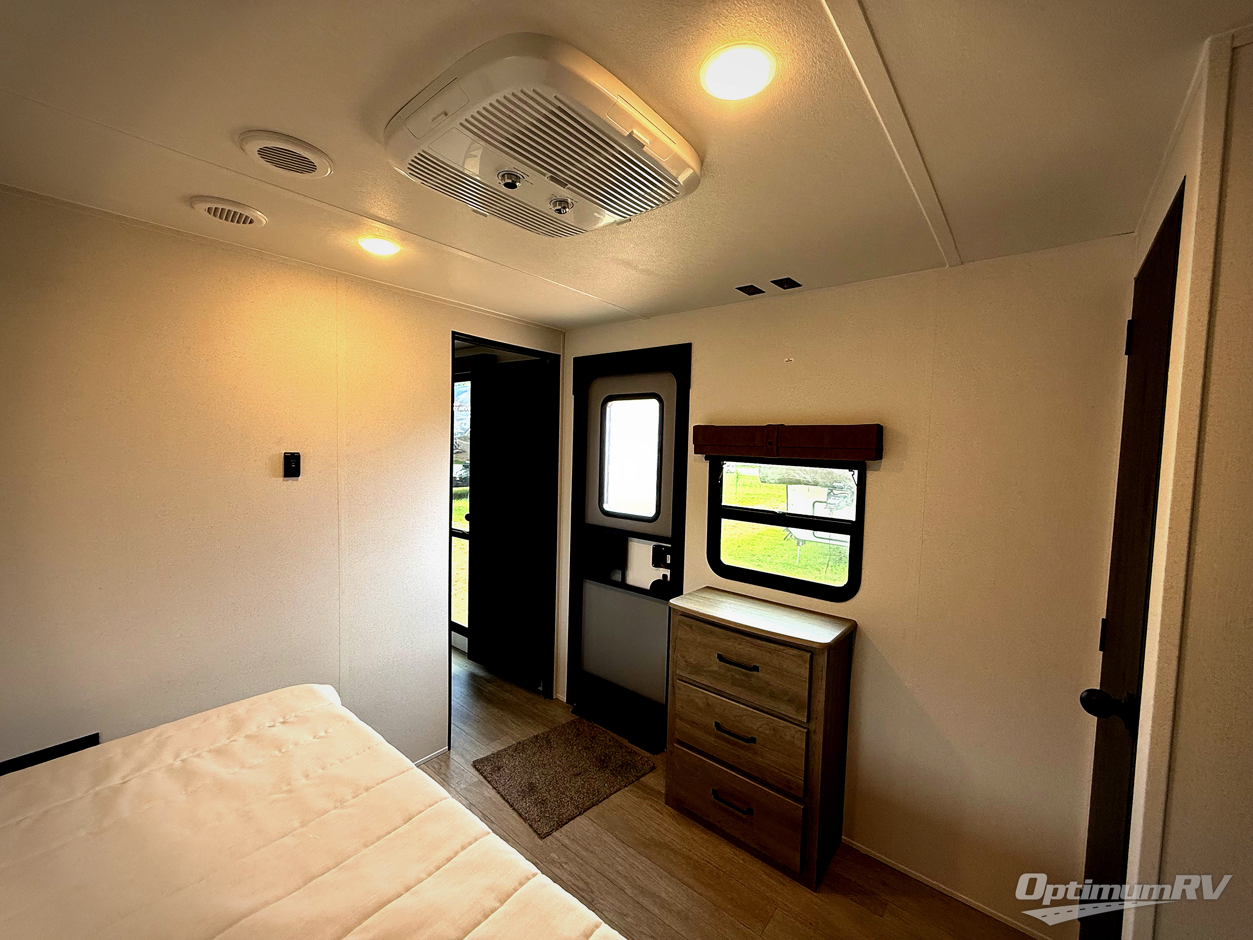 Experience a home away from home with this travel trailer! The front kitchen has everything you will need to prepare your best meals and you can enjoy them at the booth dinette. The rear private bedroom has a 72" x 80" king bed slide across from a dresser, a wardrobe, and a closet with washer and dryer prep. Freshen up in the full bathroom with the 32" x 40" shower and then enjoy a cup of coffee relaxing in one of the two recliners or on the sofa! Choose the optional outside micro kitchen with a griddle for even more convenience!