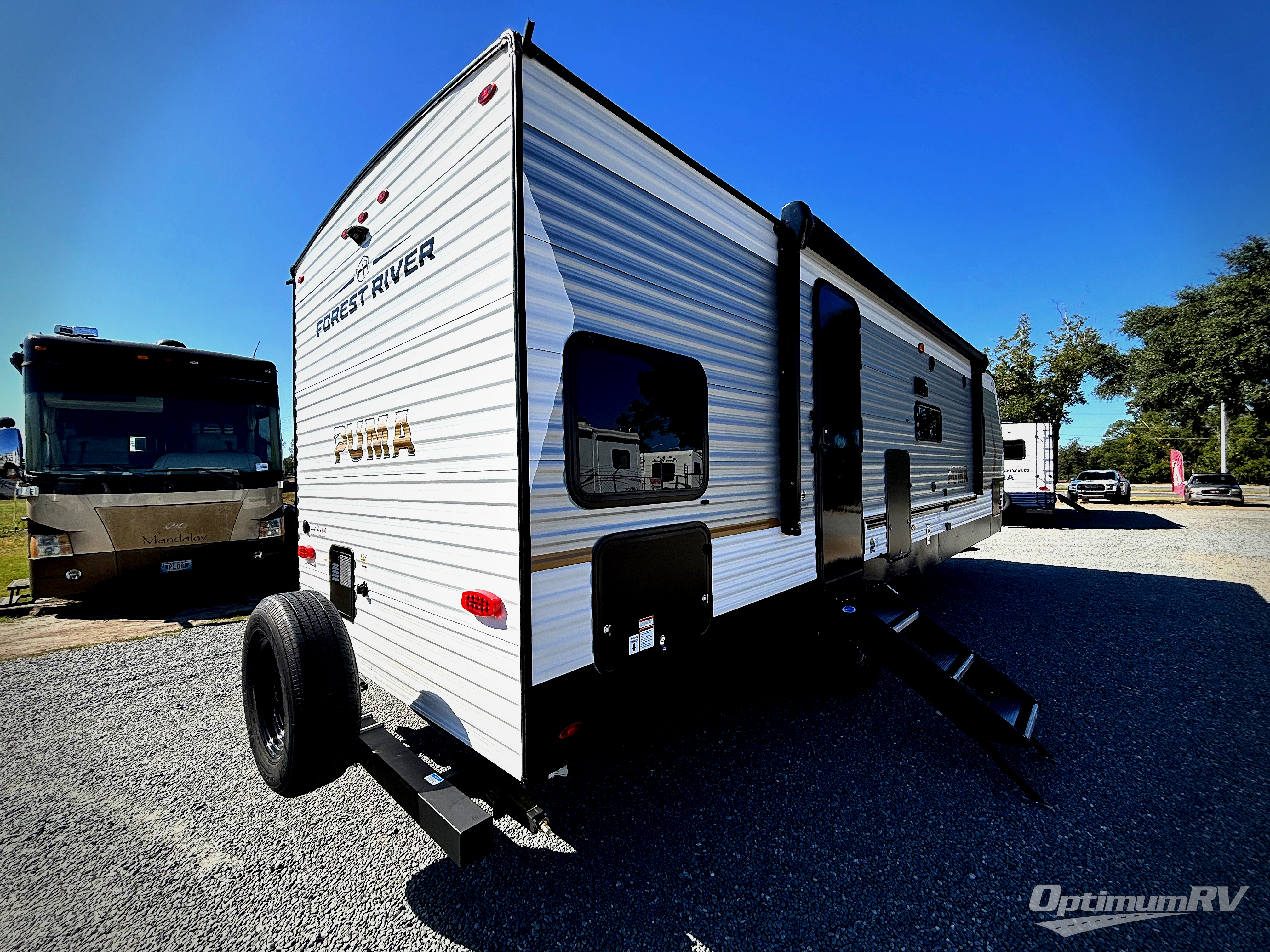 The Puma Camping Edition by Palomino offer an affordable travel trailer for rookie campers or seasoned RVers! They are built with 5/8" tongue and groove plywood flooring and a front diamond plate for added protection. There are also exterior clamp style door latches, back up camera prep, and 20 lb. LP bottles. Head inside to find Thermofoil countertops with a smooth drop edge, bedroom USB ports and outlets, and a GE appliance and kitchen package.