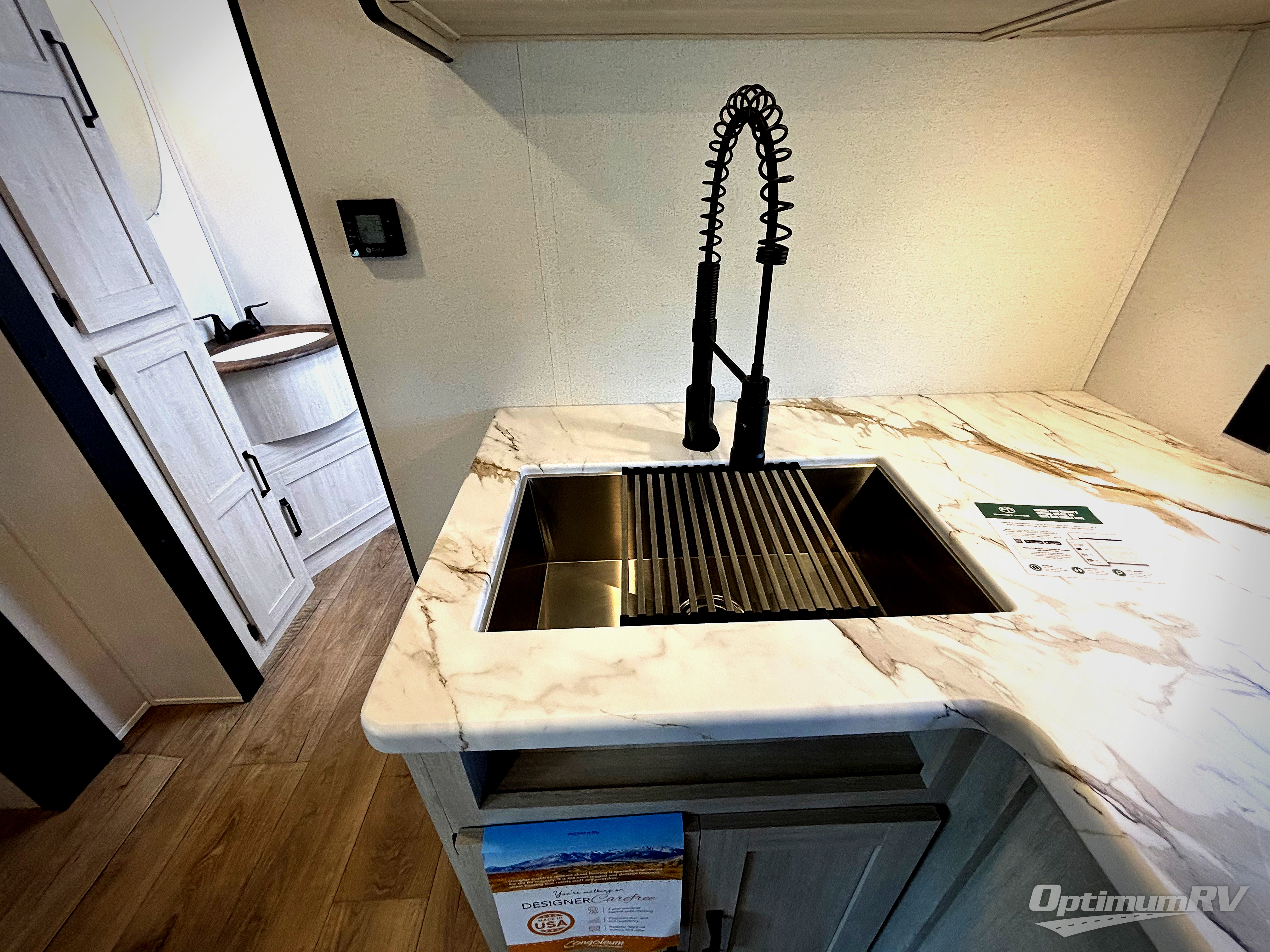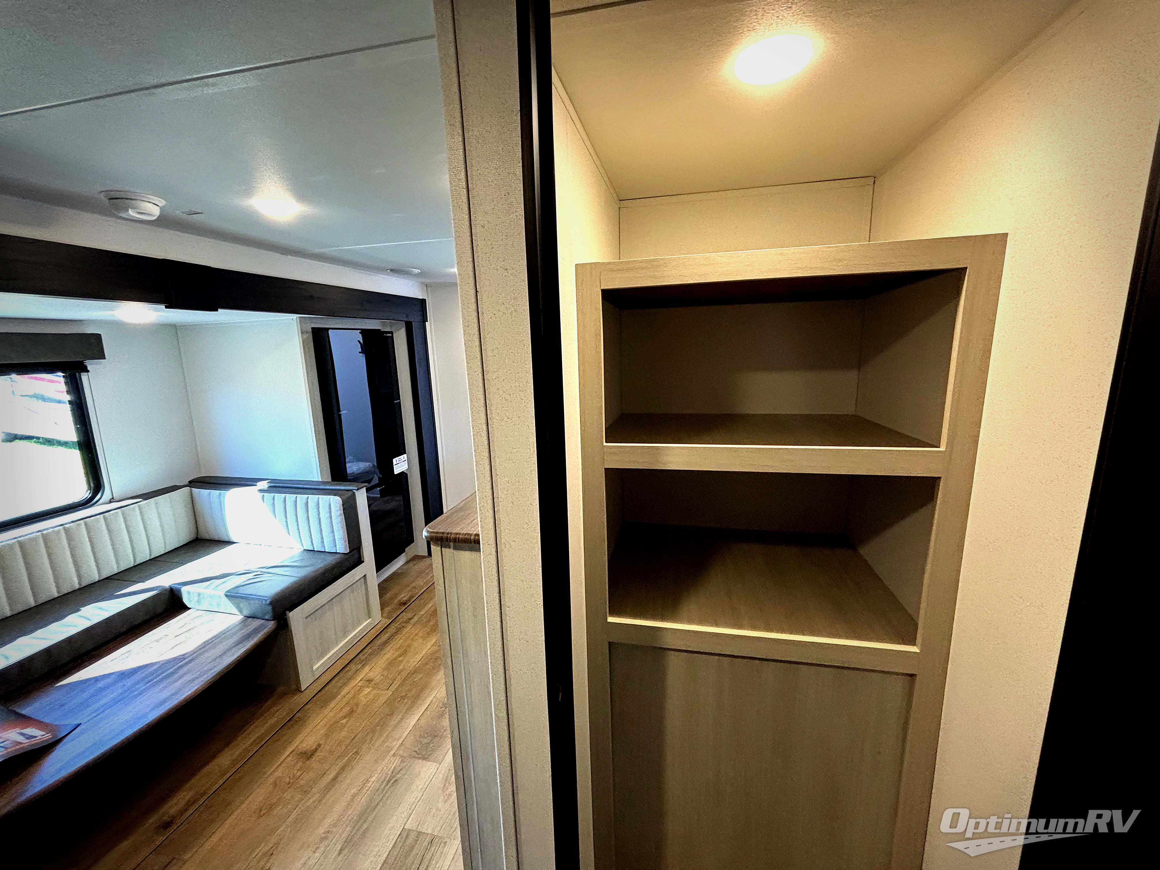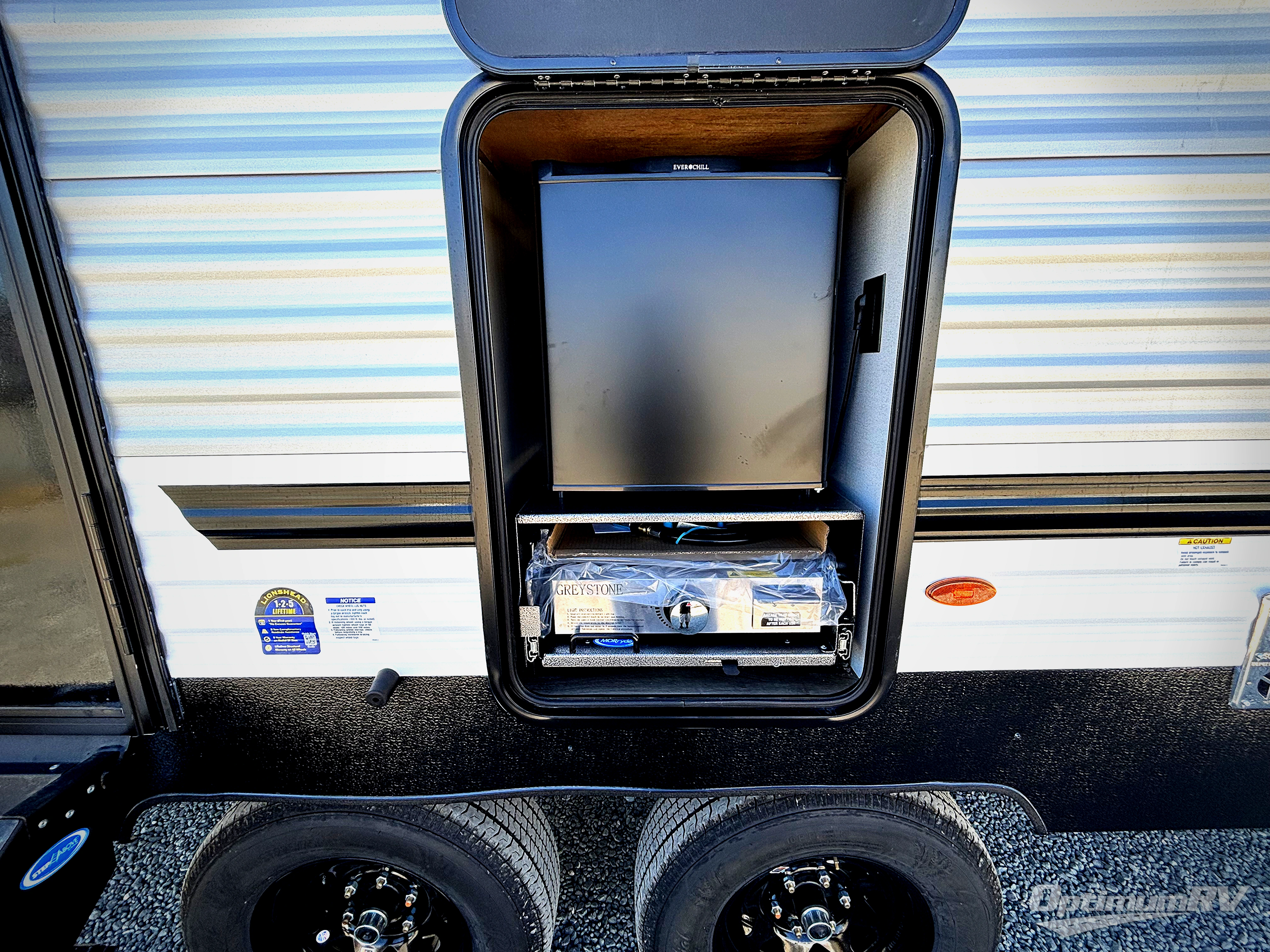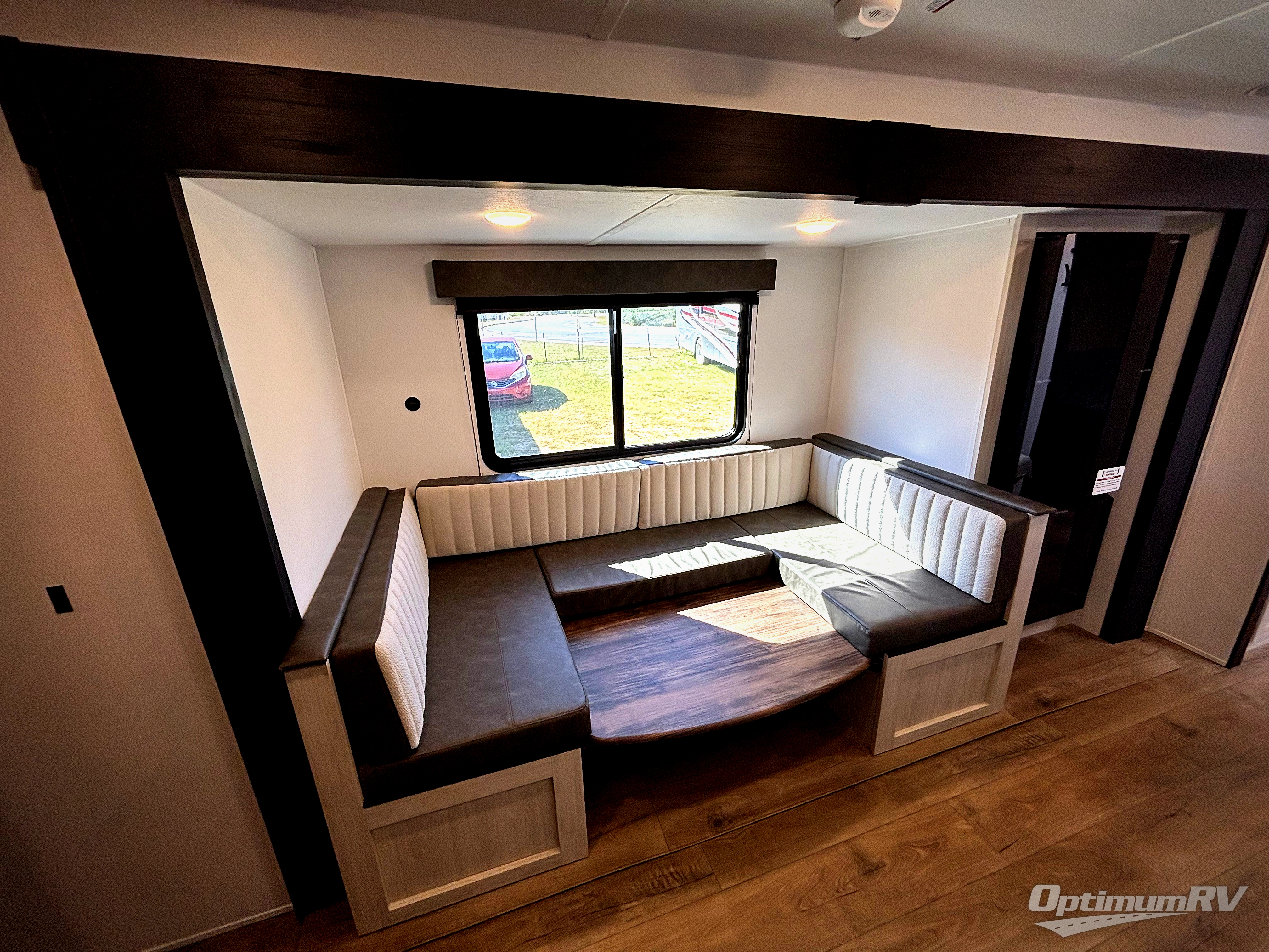 Your whole crew will love camping in this travel trailer since everyone can enjoy their own private space. The rear bunkhouses feature a private lower bunk room plus a private upper bunk room, each with their own door and a linen closet for storage space. The front master bedroom includes an RV queen bed, dual shirt closets, and easy access into the walk-thru bath. Head to the combined kitchen and living area to make dinner in the full kitchen, dine around the U-shaped dinette slide, and enjoy the fireplace! Outside, an optional mini kitchen with a griddle can be added if you choose, and you'll find outside storage compartments to keep all your gear secure!
