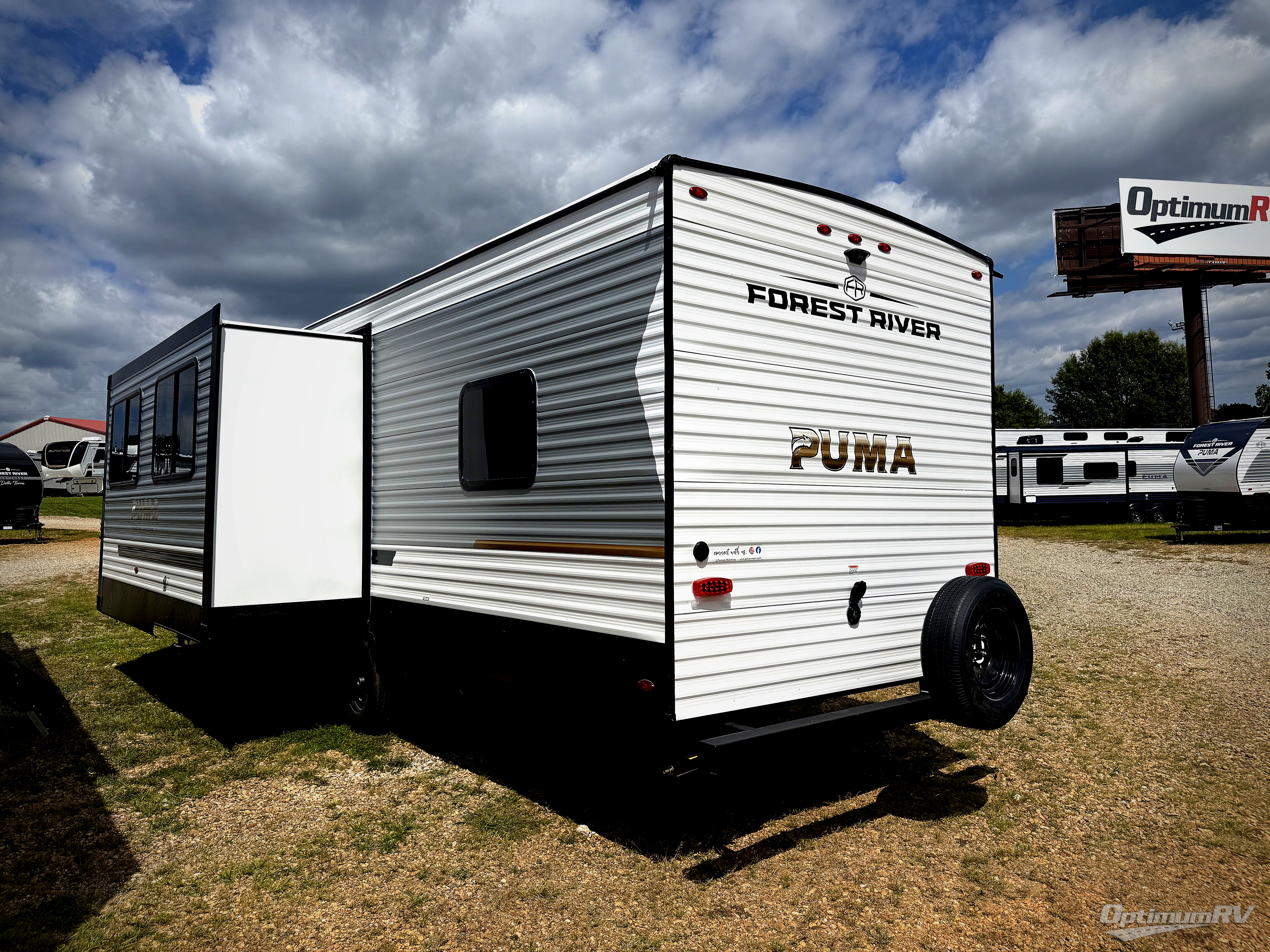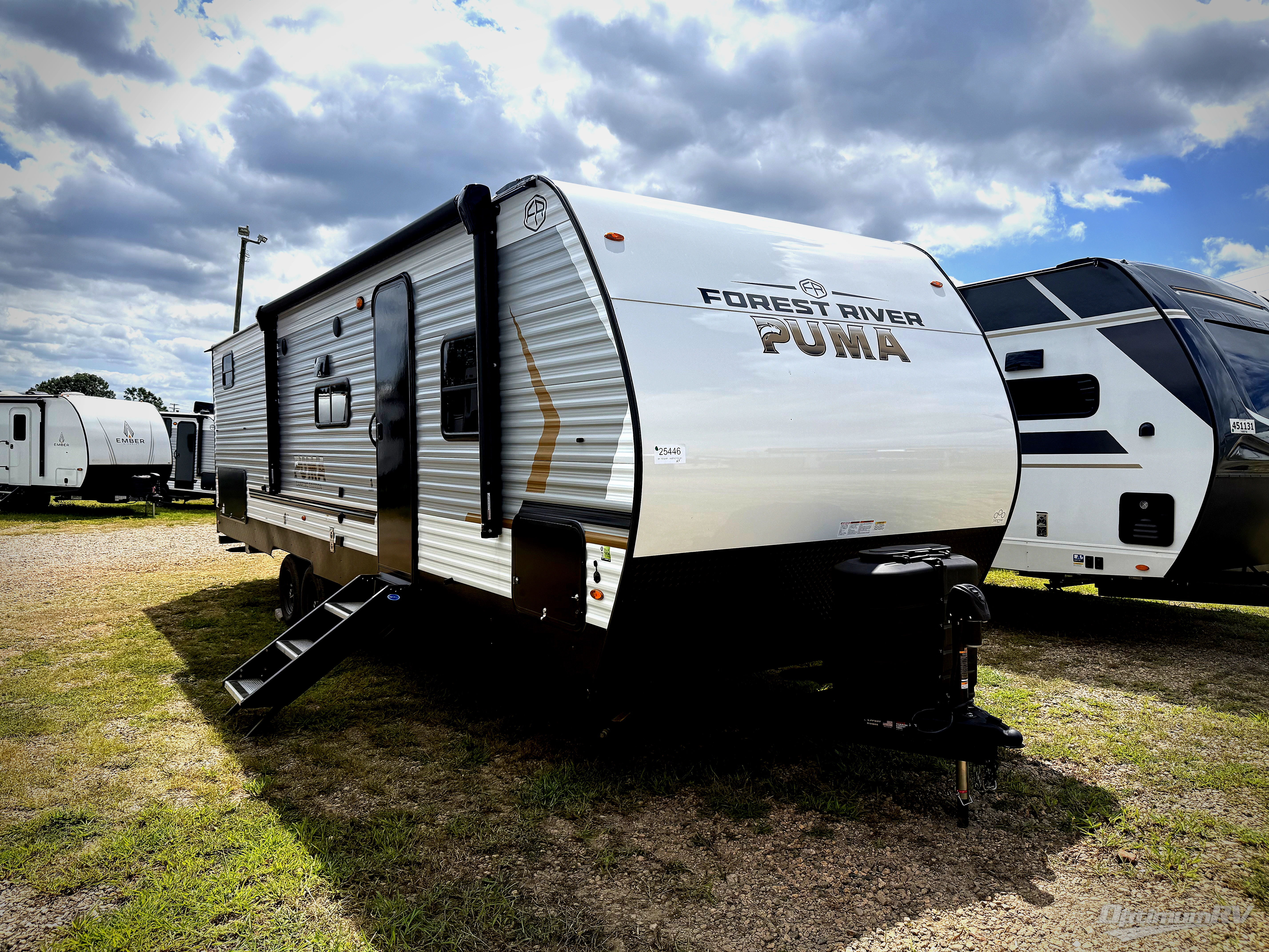 The Puma Camping Edition by Palomino offer an affordable travel trailer for rookie campers or seasoned RVers! They are built with 5/8" tongue and groove plywood flooring and a front diamond plate for added protection. There are also exterior clamp style door latches, back up camera prep, and 20 lb. LP bottles. Head inside to find Thermofoil countertops with a smooth drop edge, bedroom USB ports and outlets, and a GE appliance and kitchen package.