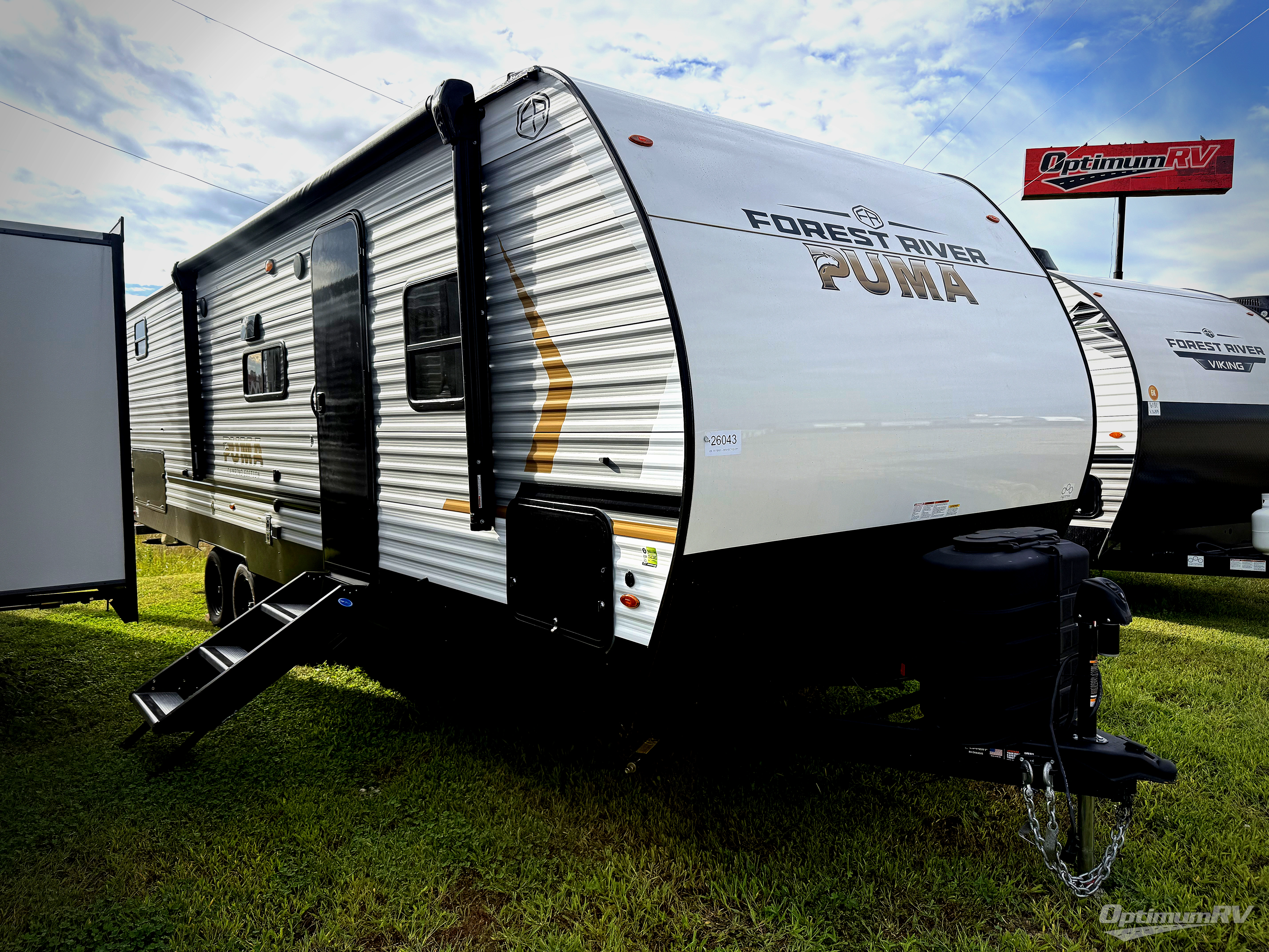 The Puma Camping Edition by Palomino offer an affordable travel trailer for rookie campers or seasoned RVers! They are built with 5/8" tongue and groove plywood flooring and a front diamond plate for added protection. There are also exterior clamp style door latches, back up camera prep, and 20 lb. LP bottles. Head inside to find Thermofoil countertops with a smooth drop edge, bedroom USB ports and outlets, and a GE appliance and kitchen package.