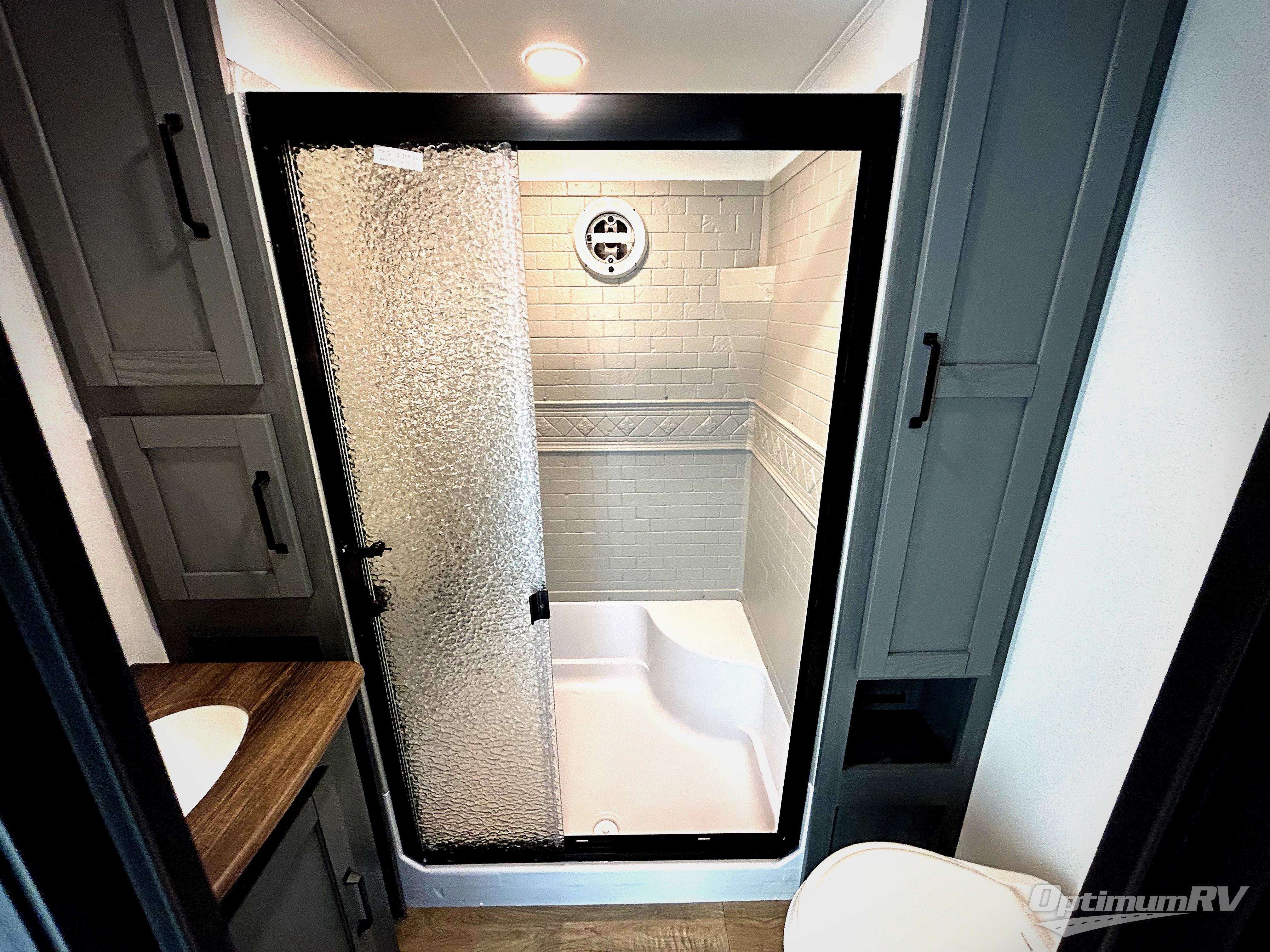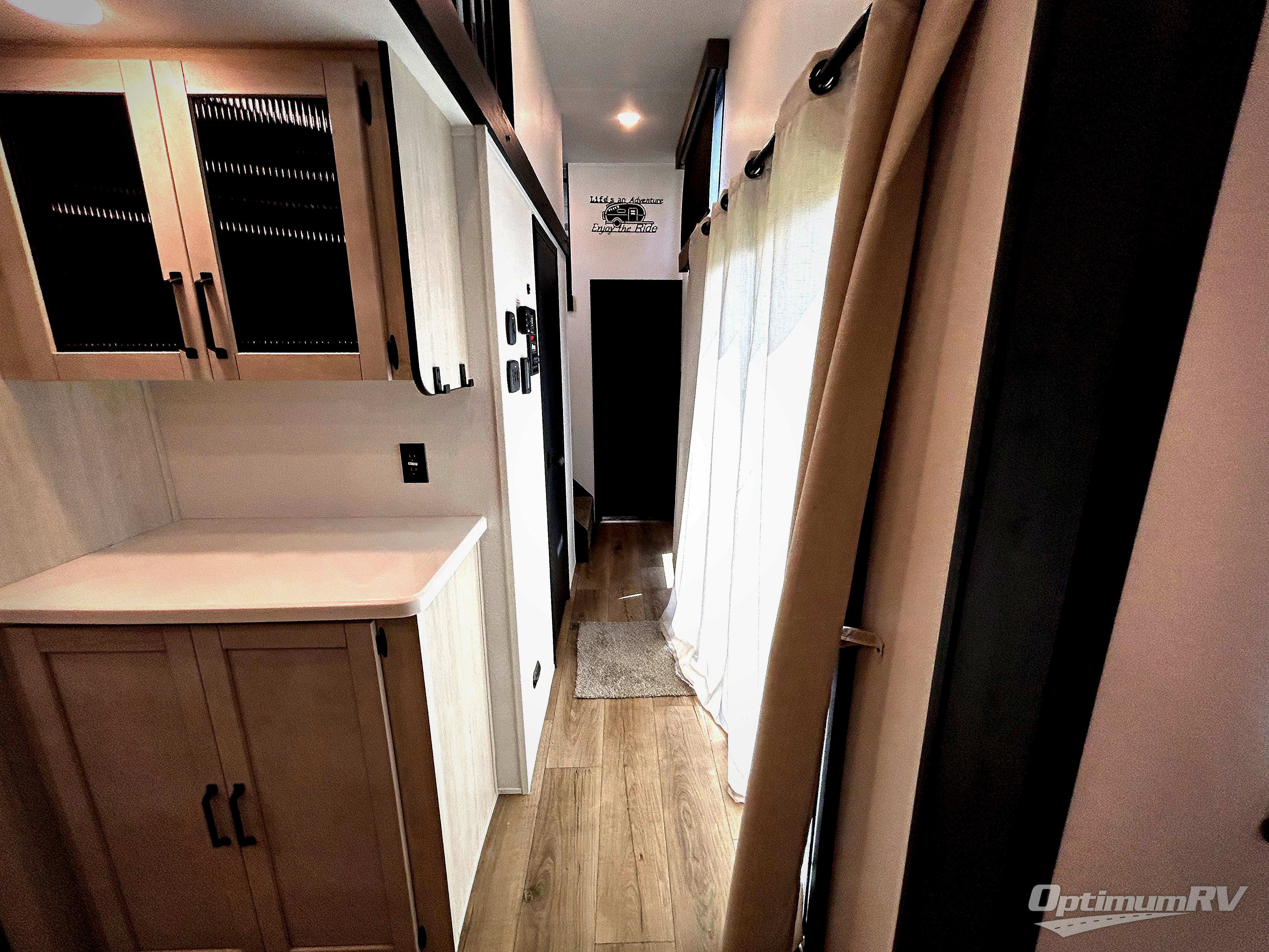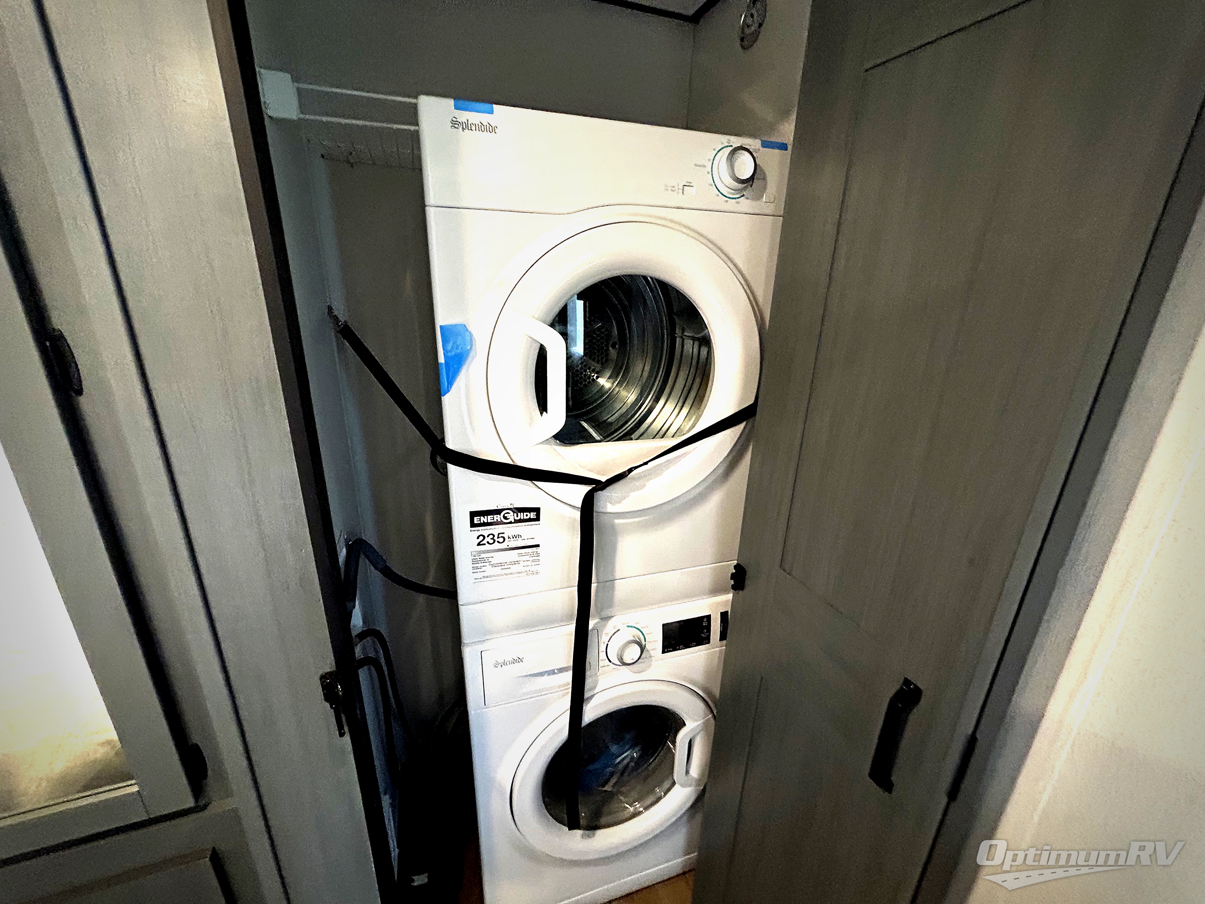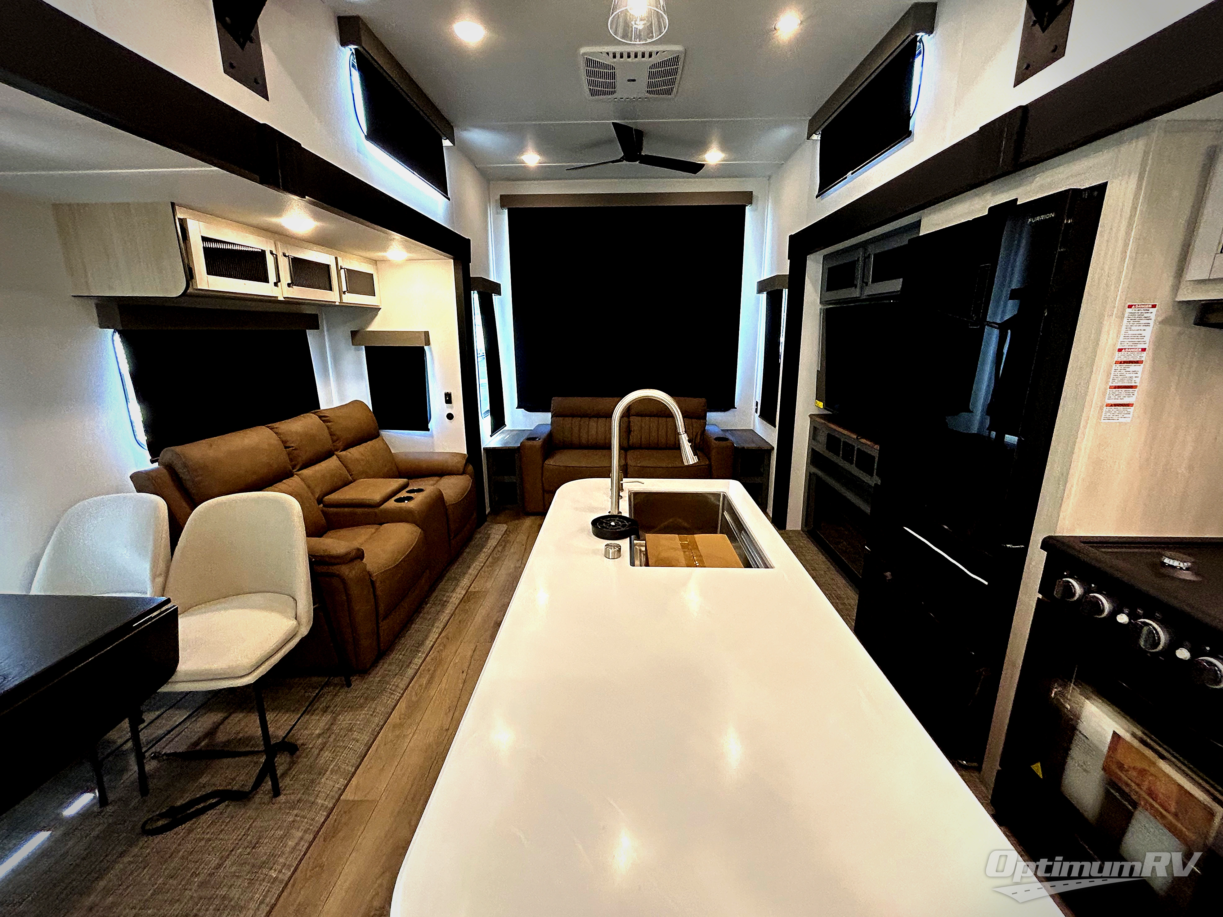 Wherever your destination may be, you can be sure to enjoy it to the fullest with this trailer in tow! With two entry doors, you can enter in through the front private bedroom or the main living area. The bedroom includes a king bed slide out, a desktop if you need to work from home, and a wardrobe/closet to keep your clothes organized. There is also a closet with the option to add washer and dryer prep. Just outside this room are steps that lead to the large loft area with a 58" x 58" bunk mat and a cabinet on one side, plus two 32" x 80" bunk mats on the other. There is also a front cabinet and a wardrobe/closet for plenty of storage space. Once you've headed back downstairs, you can relax on the dual recliners, rear sofa, or free-standing table with a bench and two seats. And the chef of your group will love the kitchen with its residential style refrigerator and pantry, kitchen island, and four burner cooktop!