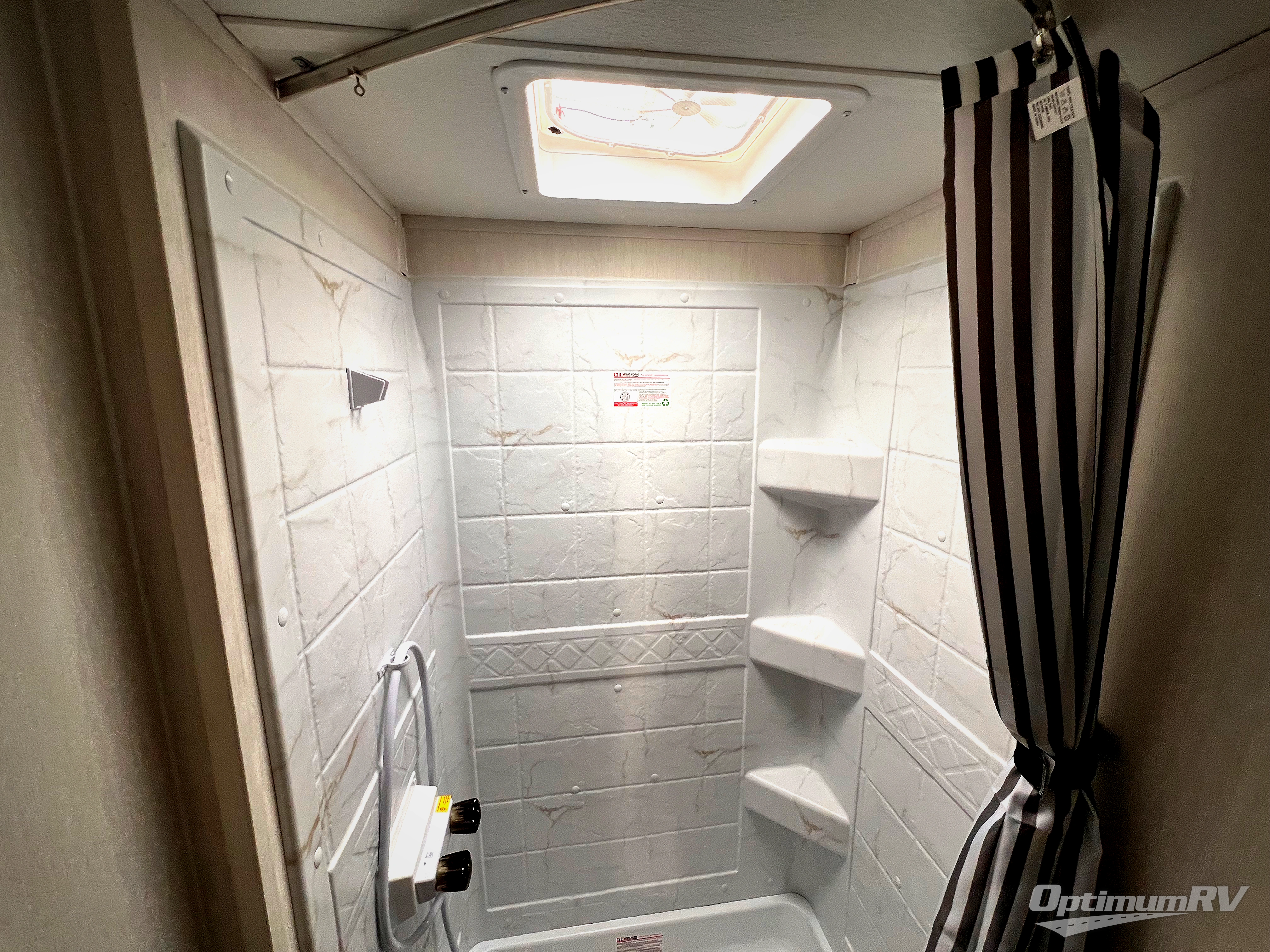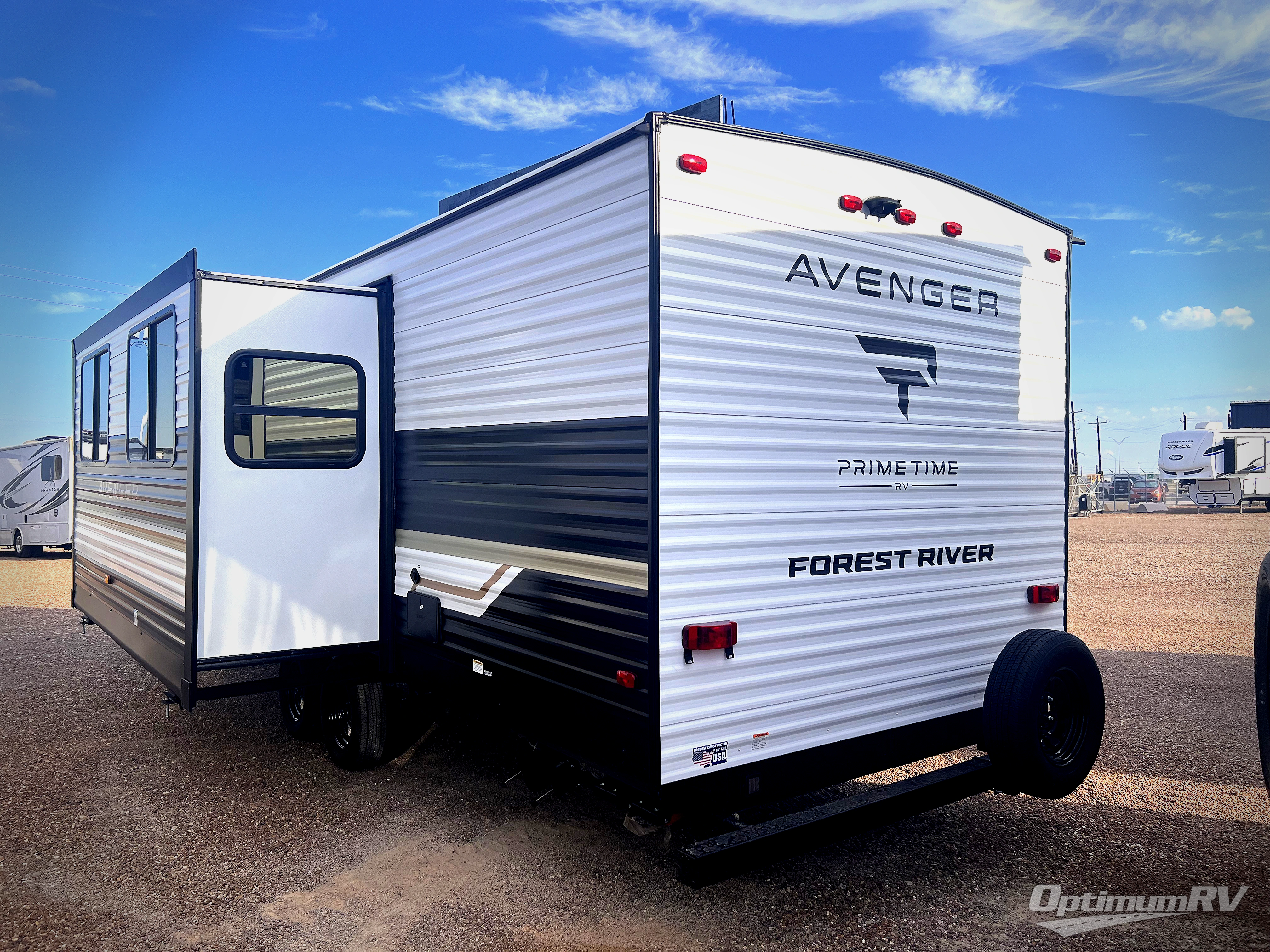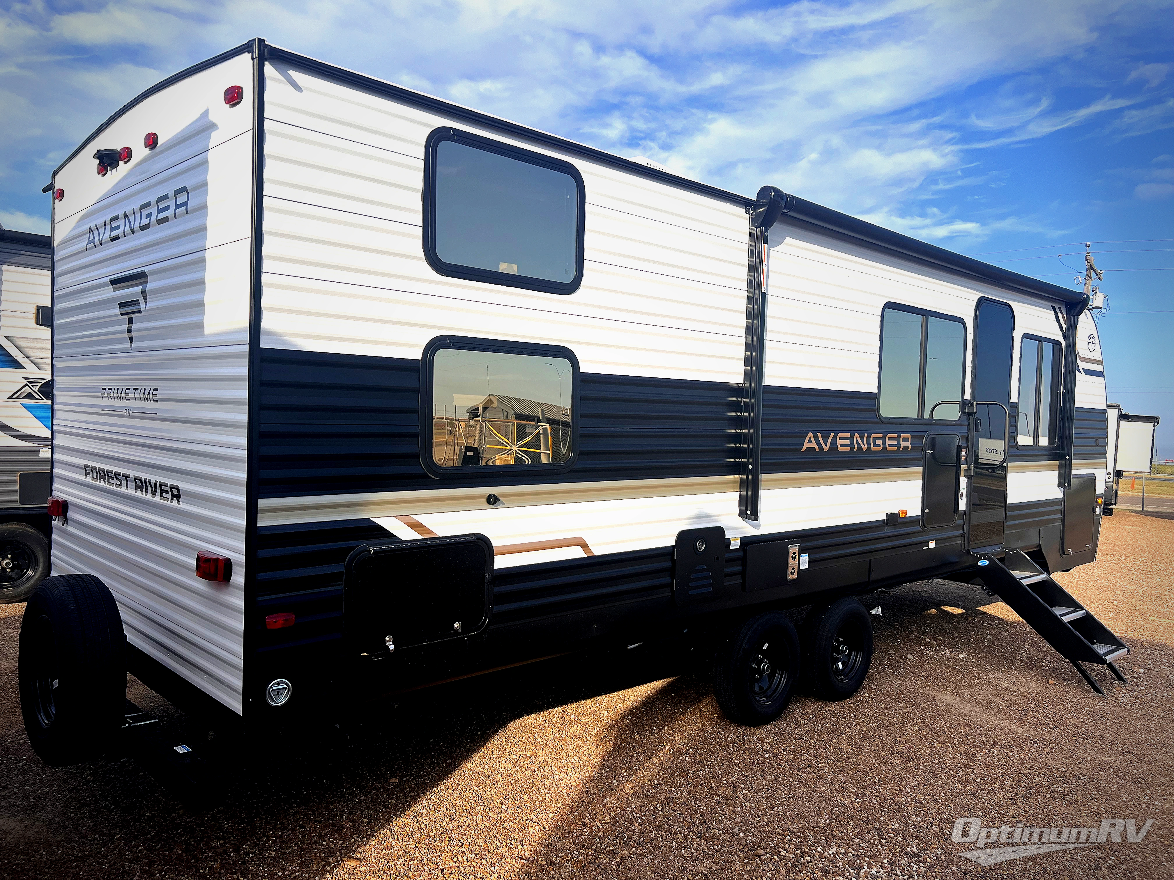 With any Avenger travel trailer by Prime Time RV, you will find innovation, a solid build, and comfort at every turn. Each model is built with Tuff Coat on the exterior metal, a fully enclosed underbelly, and a PVC roof membrane to help extend the life of your trailer. You will also find automotive name badging on the exterior, along with an exterior shower, front rail LED light strips, plus an XL padded entry grab handle to name a few conveniences. There are plenty of storage spaces inside, as well as Congoleum flooring and woven PVC marine grade slide out flooring, a designer shower surround, and seamless pressed countertops. You are sure to appreciate the onboard water filtration system, tankless water heater, plus 30K BTU furnace and 15K ducted A/C to help keep you comfortable.
