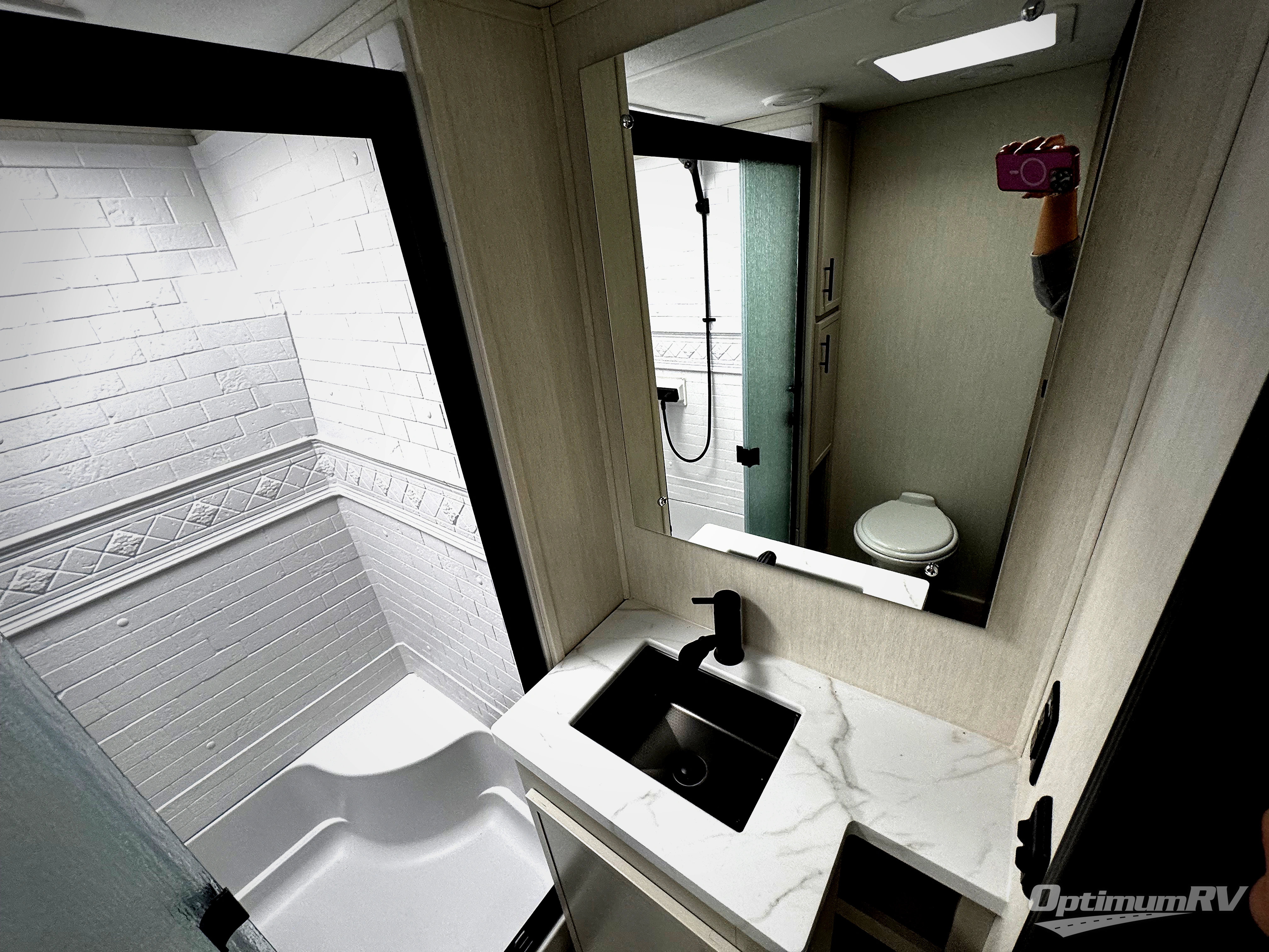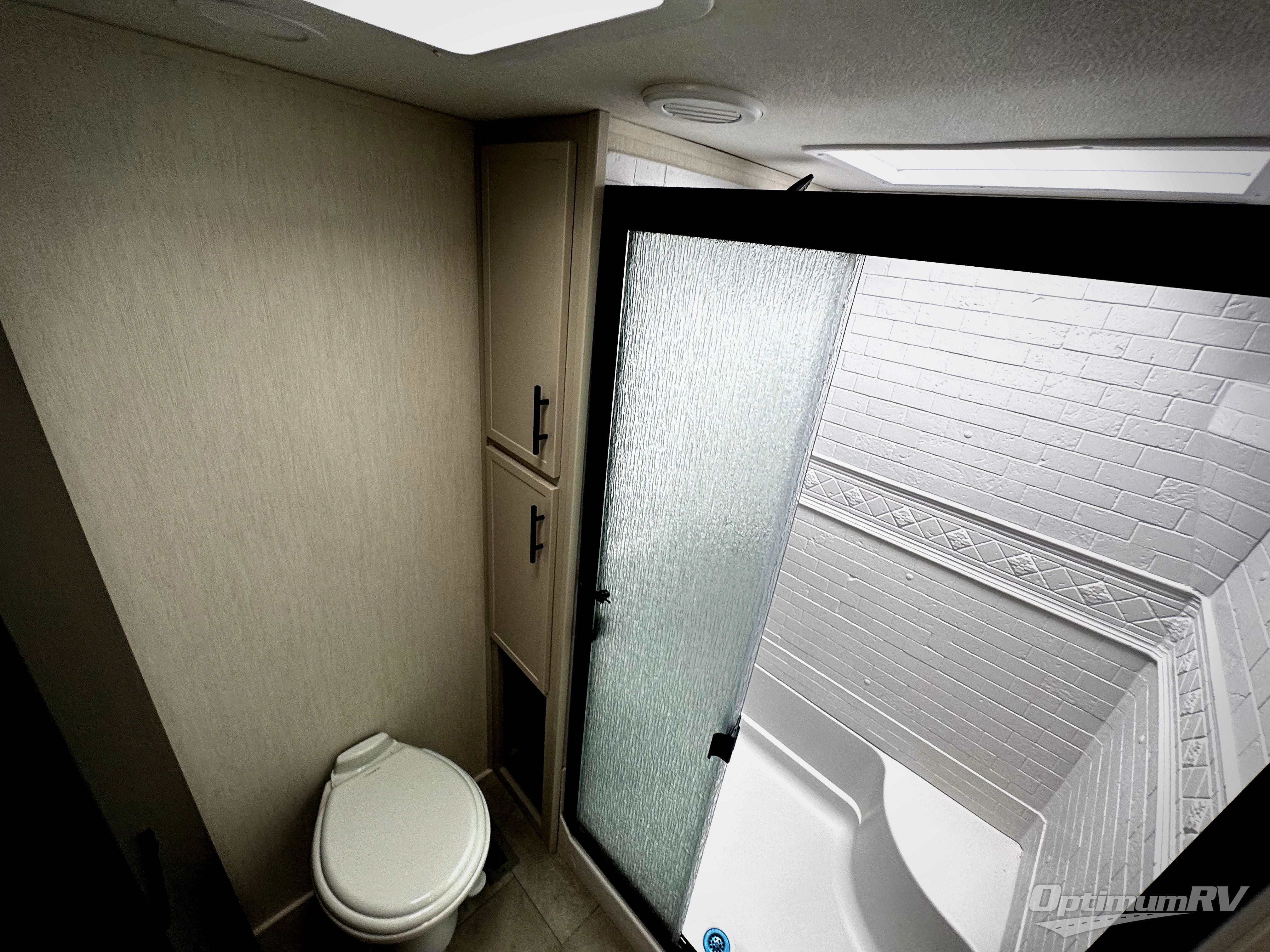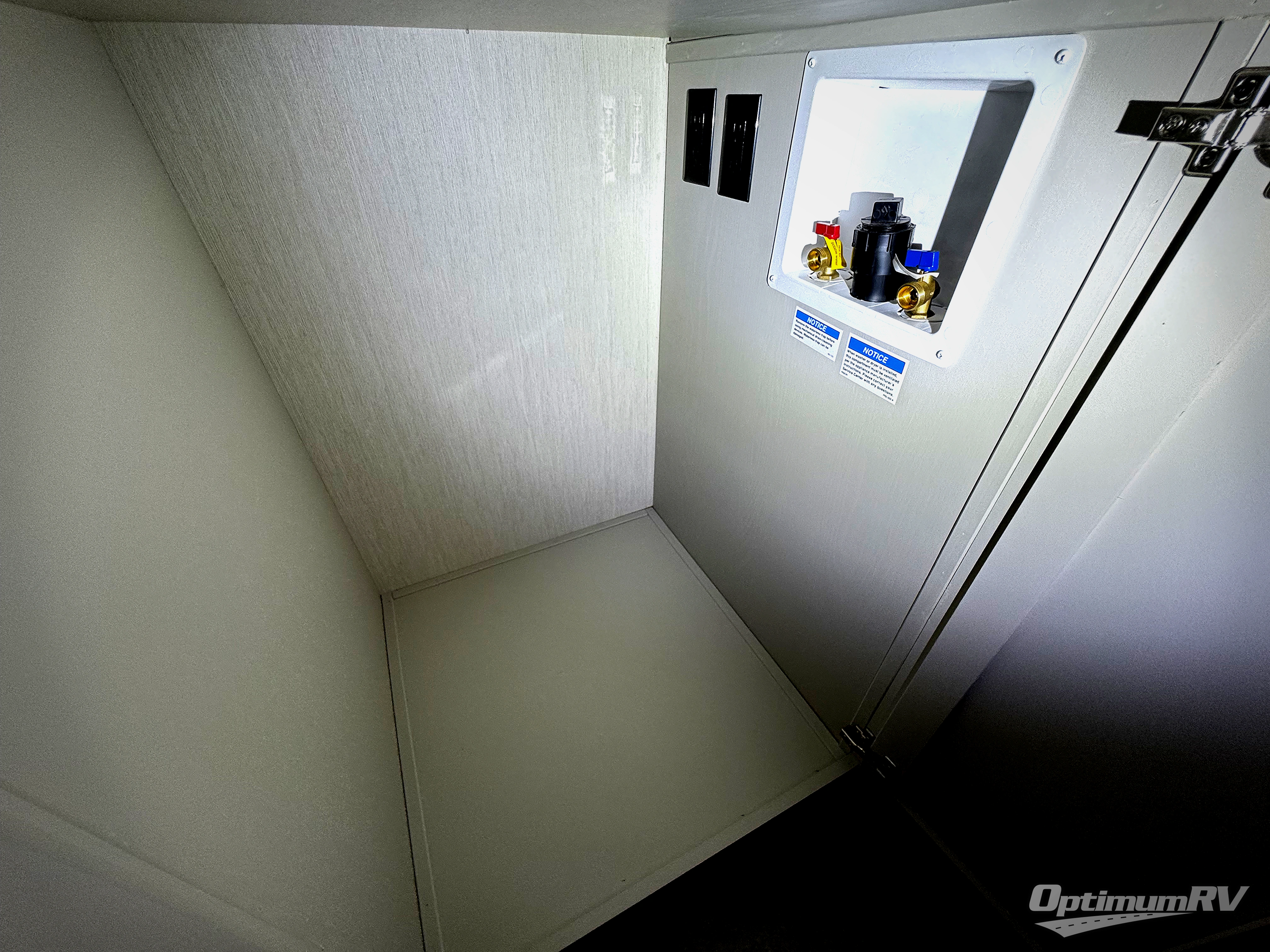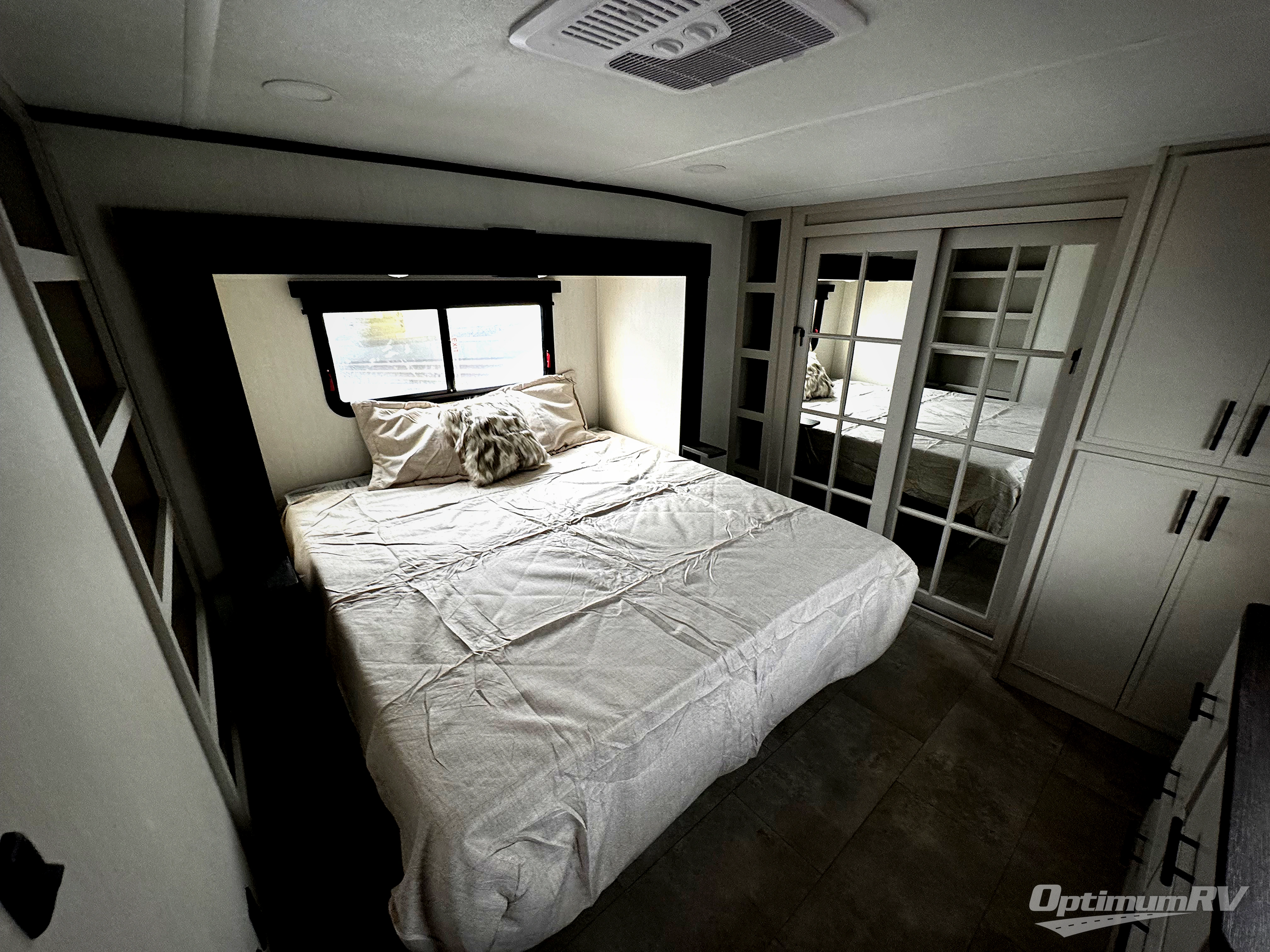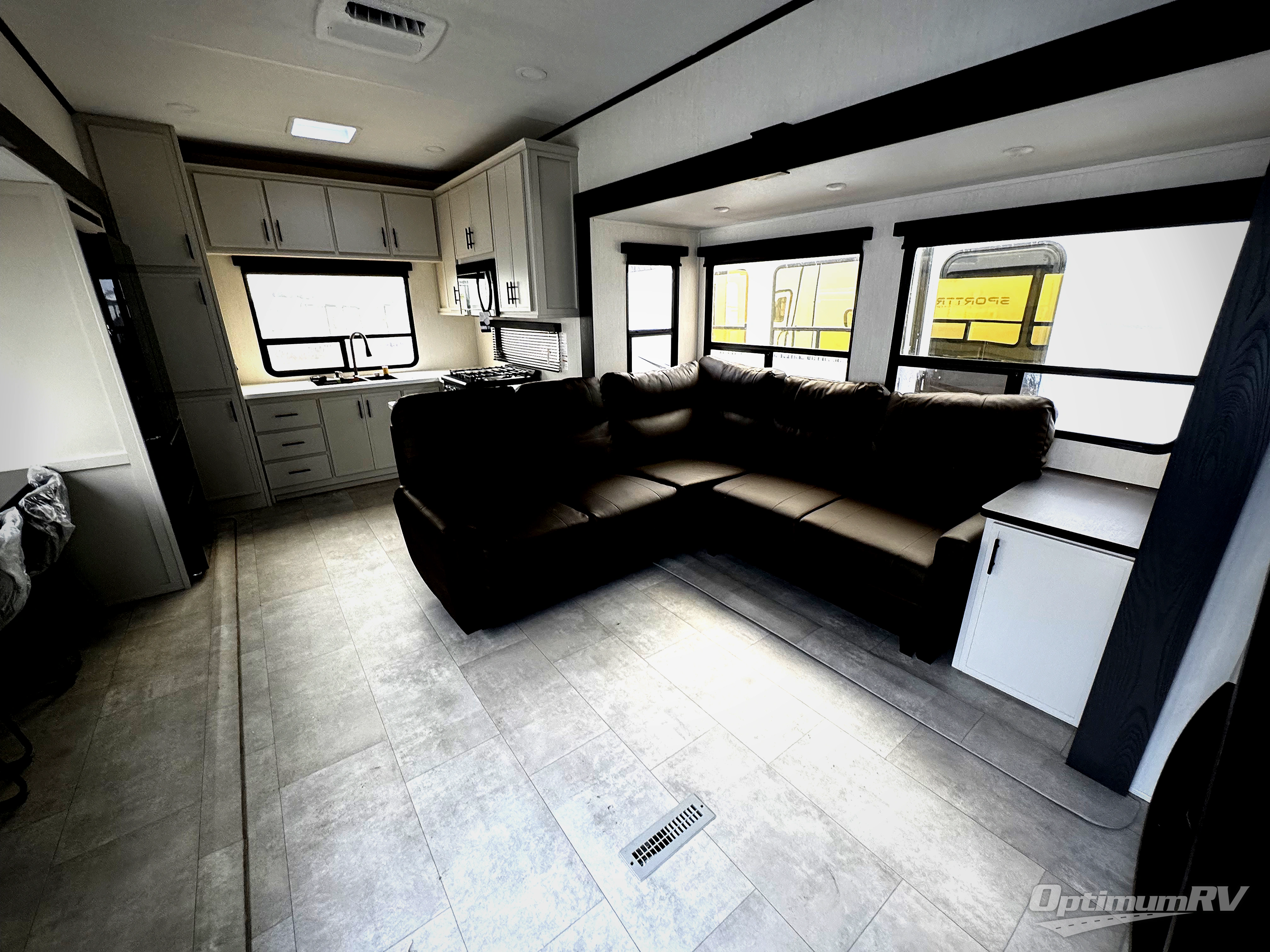 If you enjoy camping with family or friends, this fifth wheel is sure to meet all of your needs! The front bedroom includes a King bed slide out for more space and comfort, plus a front wardrobe/washer and dryer prep. And the full bath is right next door for easy nighttime use. The living room is made spacious thanks to the dual opposing slides, and you'll find a sectional sleeper sofa here, as well as a hybrid desk/dinette, perfect for a quick meal and to catch up with some emails. And don't overlook the rear kitchen with ample counter space, a four burner range, an accessory sink and a French door 12V refrigerator!