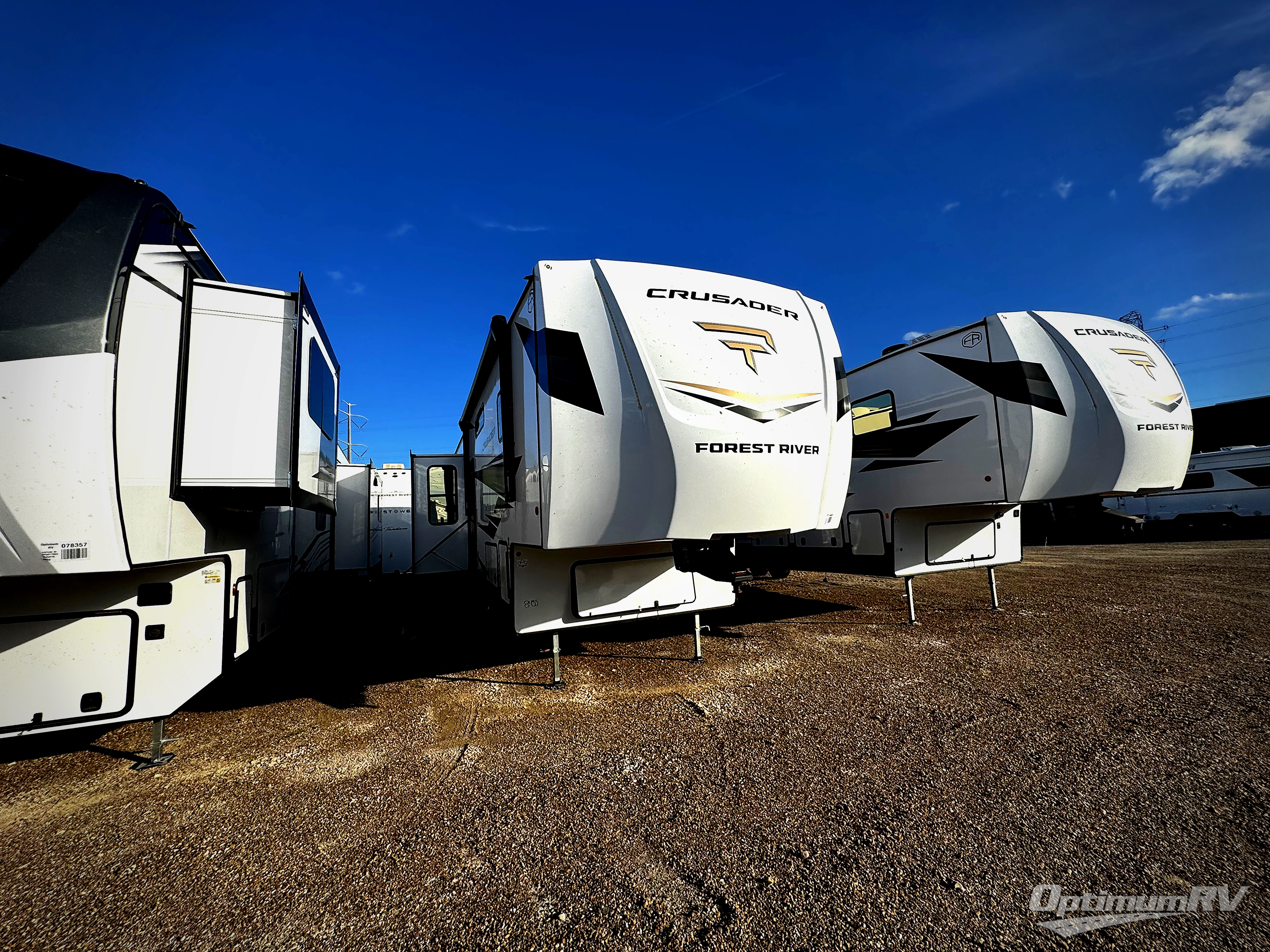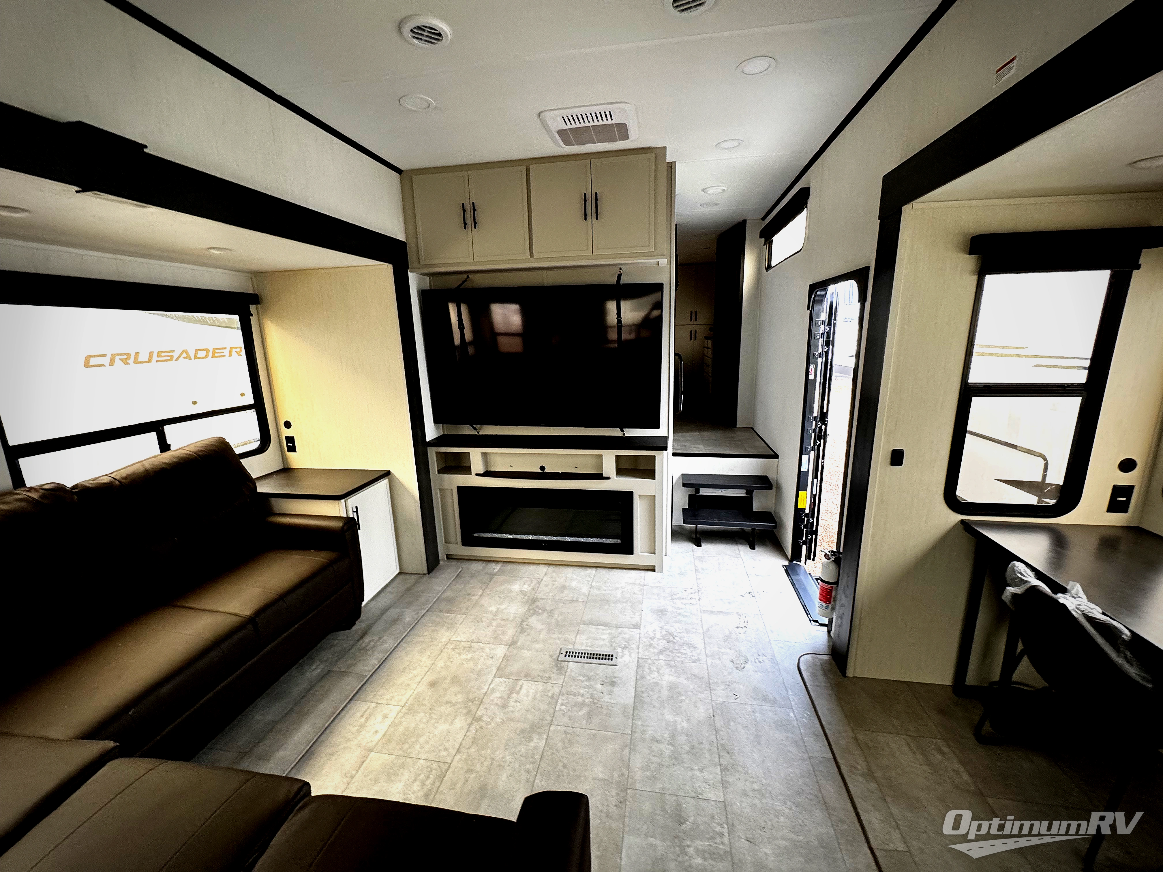 With any Crusader fifth wheel by Prime Time, you will enjoy outstanding quality and premium features! The Dexter E-Z Flex rubberized suspension equalizer will help make towing smoother than ever, and the high gloss gel coated exterior fiberglass is sure to be eye-catching. There are also thick insulated pass-through storage baggage doors outside, along with a 102" wide body, and hassle-free one-touch auto leveling. Inside, you'll find real wood cabinet doors, carpet-less slide rooms, blackout roller shades, and stain resistant, easy clean furniture. The Crusader fifth wheels are built with Eternabond construction, a one-piece PVC roof membrane, radiant foil insulation, plus rack and pinion slide systems.