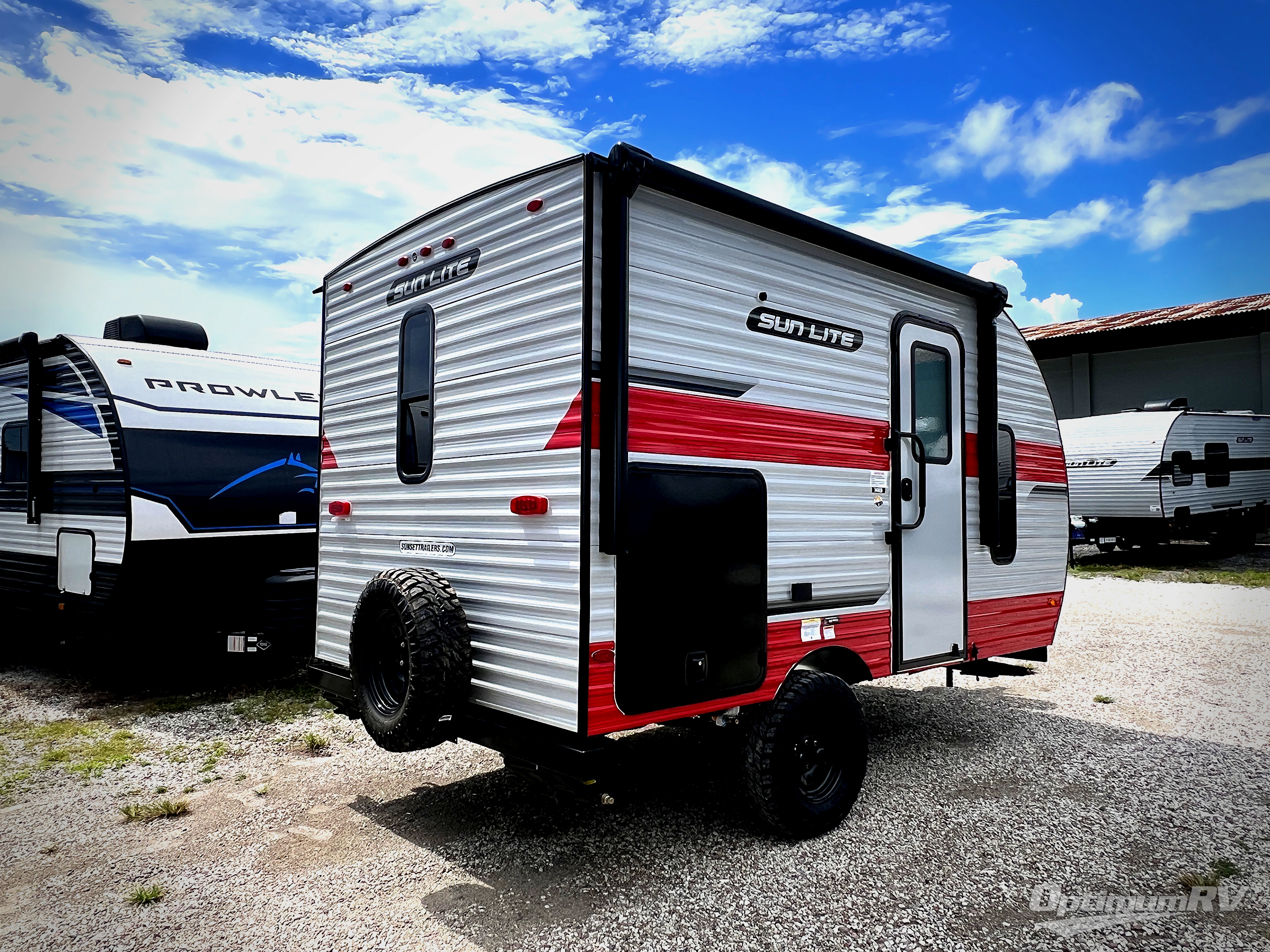 You can trust the build and enjoy your experience with any one of these Sunset Park RV Sun Lite travel trailers! Their aerodynamic profile is not only easy to haul, but also saves on fuel. They are built to withstand years of traveling even though they are lightweight with a diamond plate rock guard, a one piece PVC roof membrane, Dexter Spring-Leaf axles, and tinted safety glass windows. Some comfort standards you are sure to enjoy are the two-burner stove top range with hood, light and fan, plus the refrigerator and microwave, and an outside shower to help keep the dirt outdoors where it belongs.
