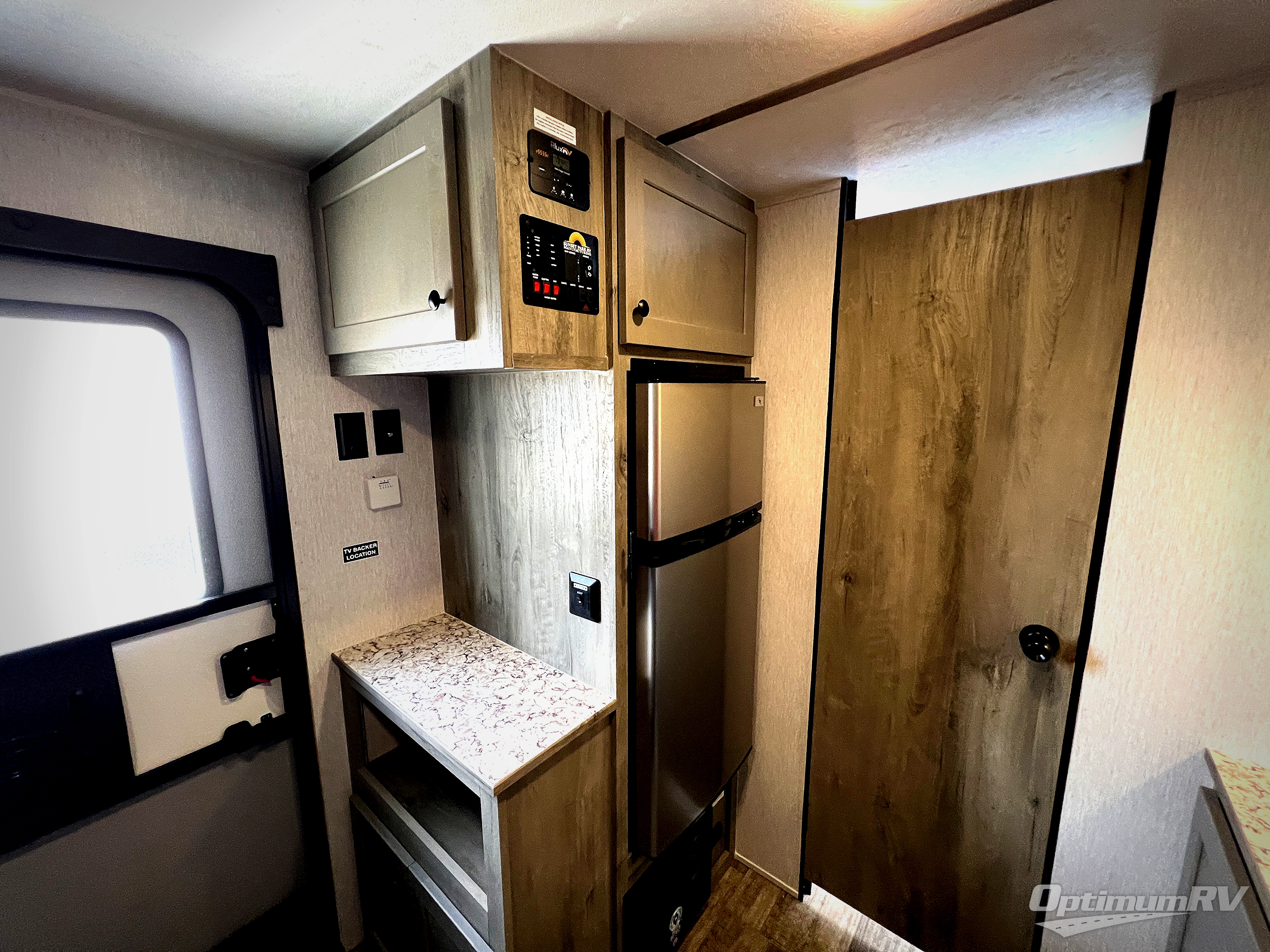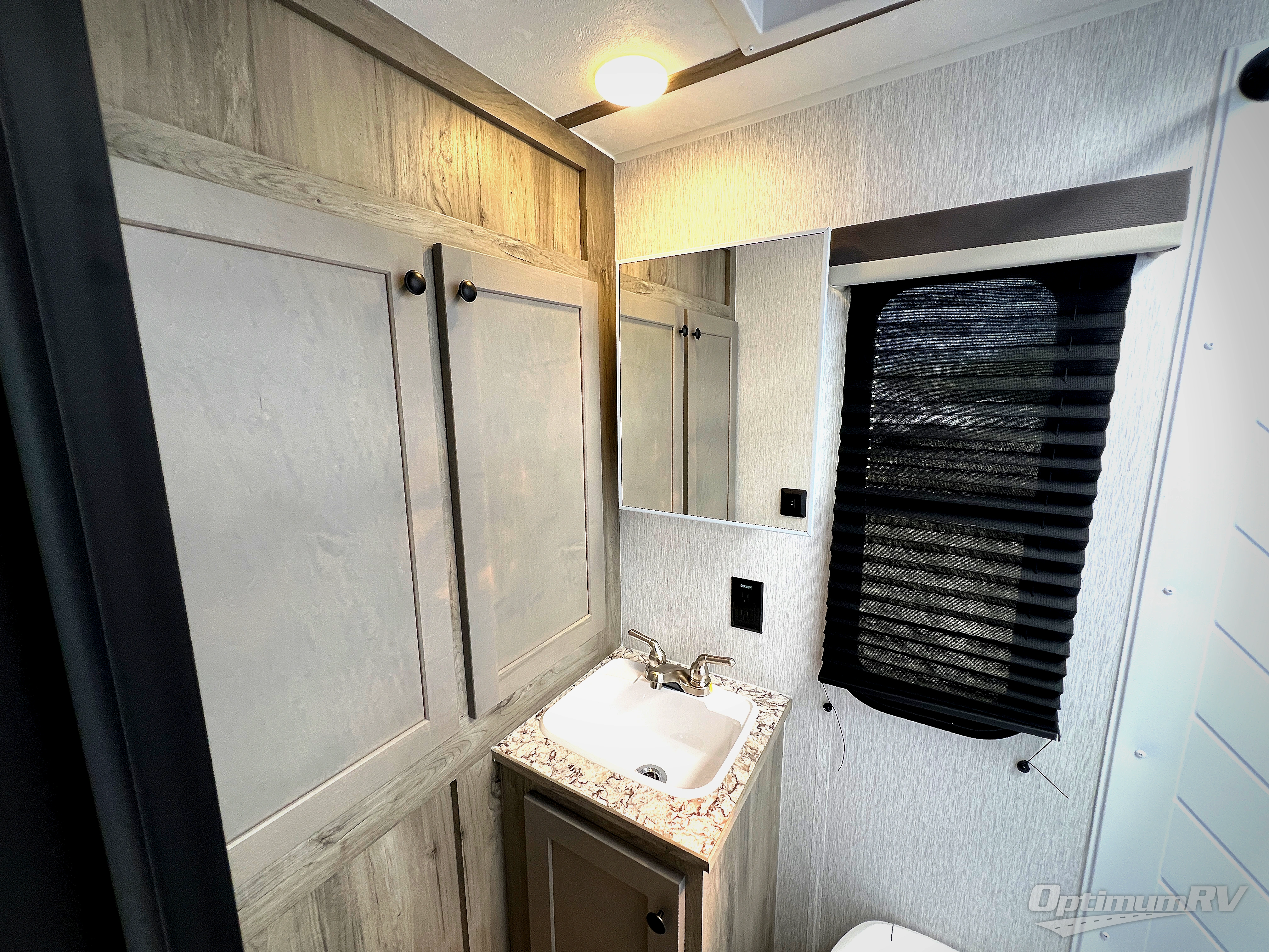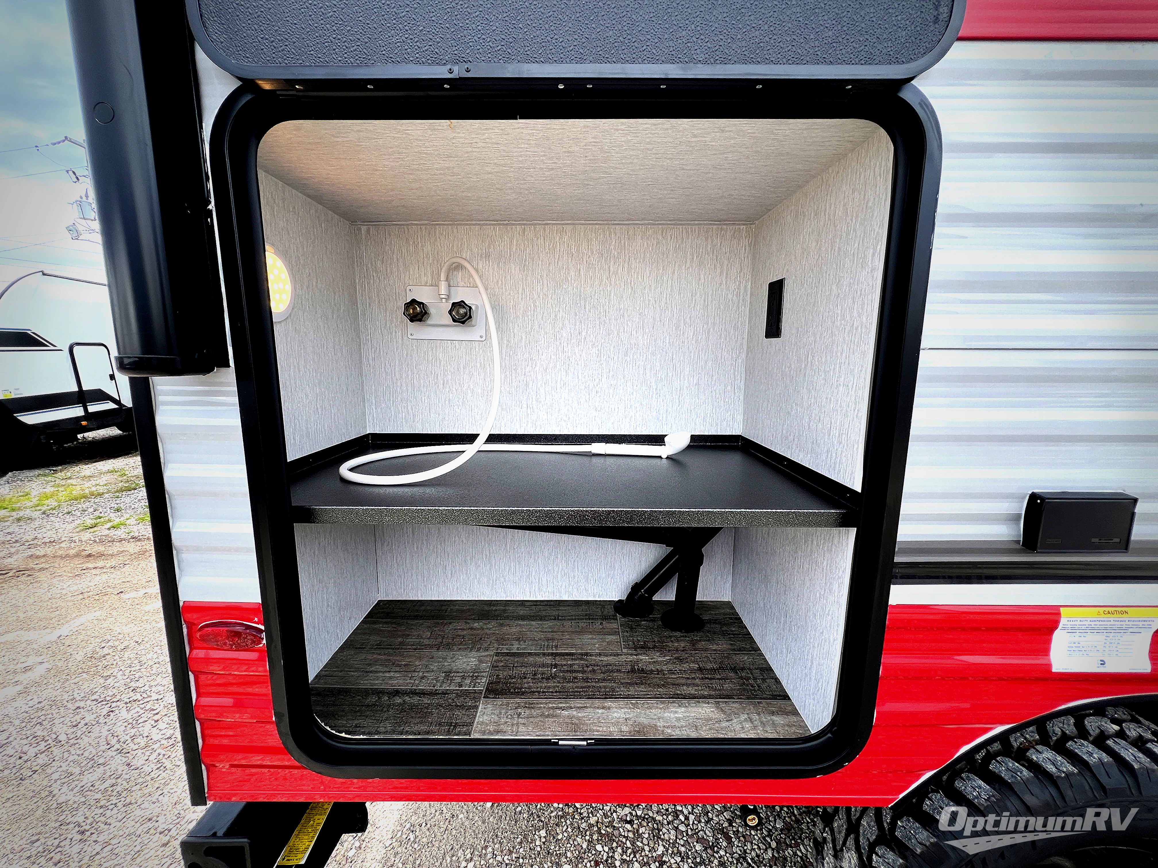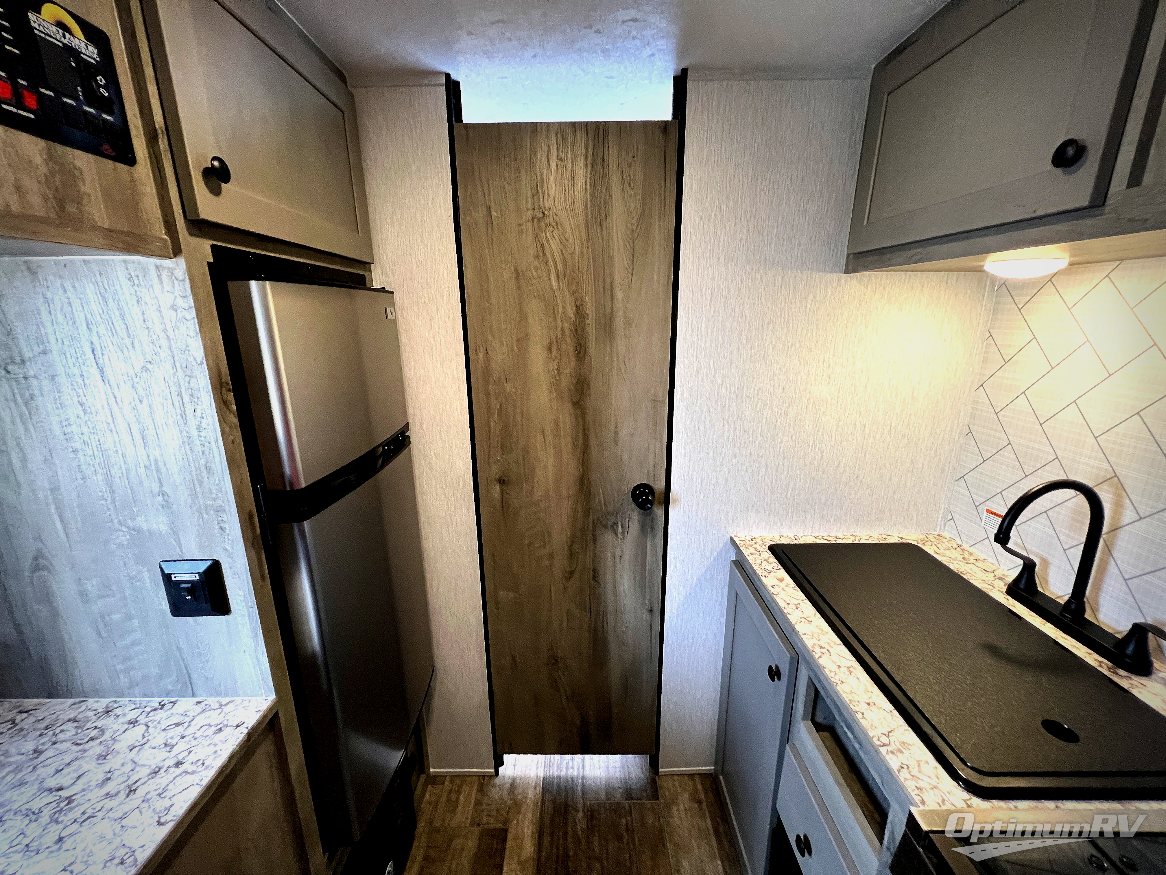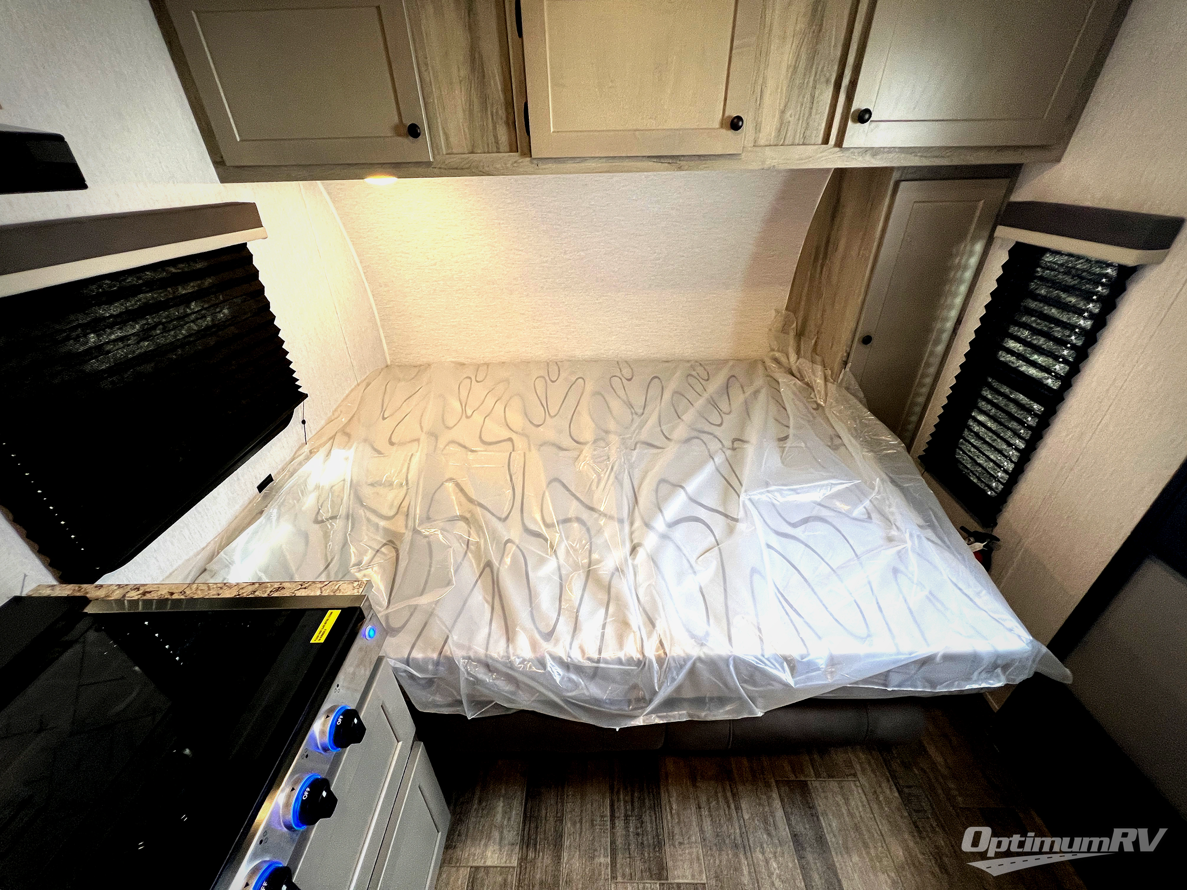 This compact travel trailer will be perfect for trips to the lake. Since there is a front Murphy bed, you won't have to sleep on an air mattress, and the convenient rear full bathroom lets you freshen up each day. Breakfast can be made on either the three burner cooktop, warmed up in the microwave oven, or even at the outside kitchen. When you're ready to wind down at night, you can grab a book and head to the sofa for a relaxing evening!