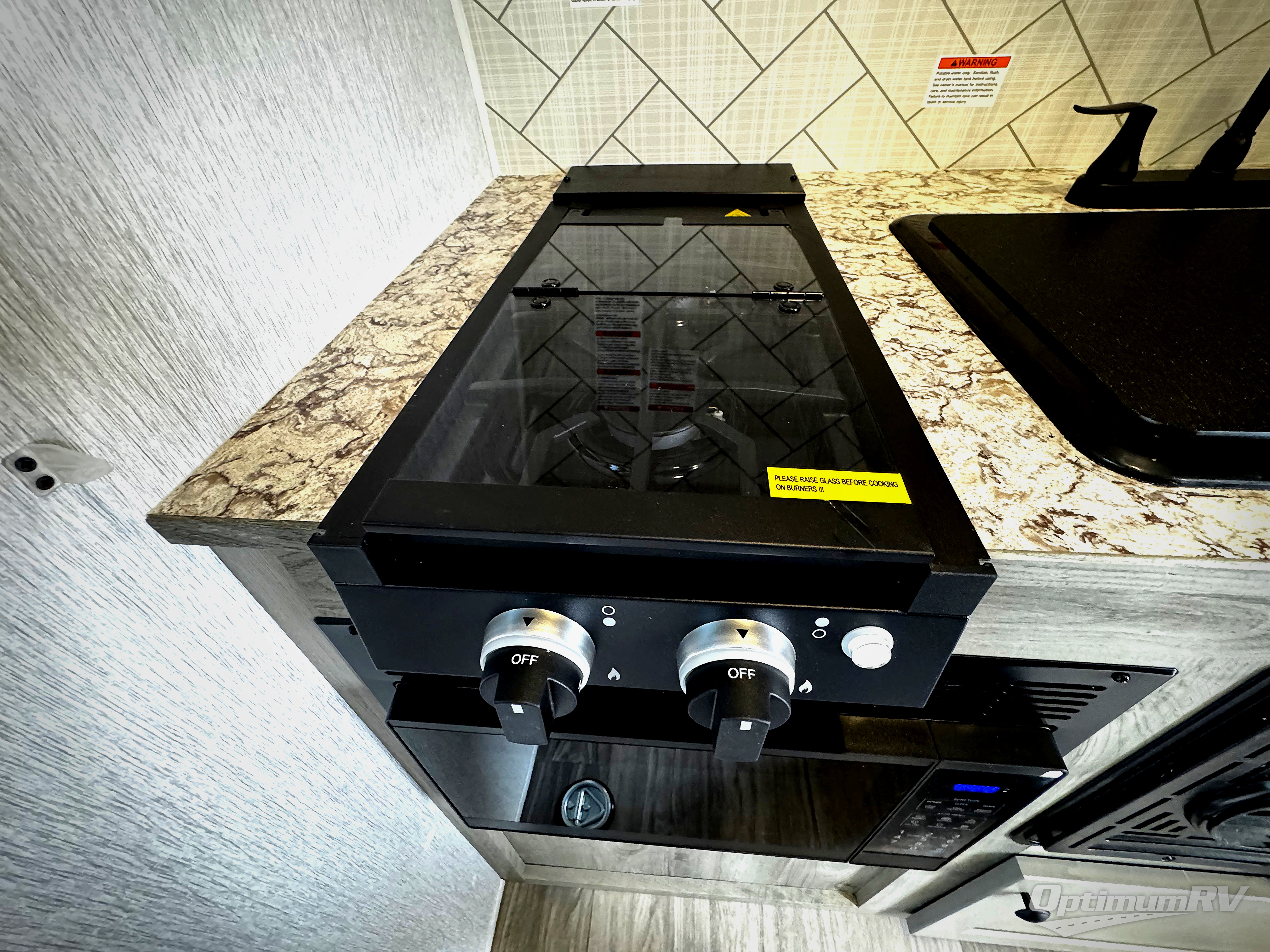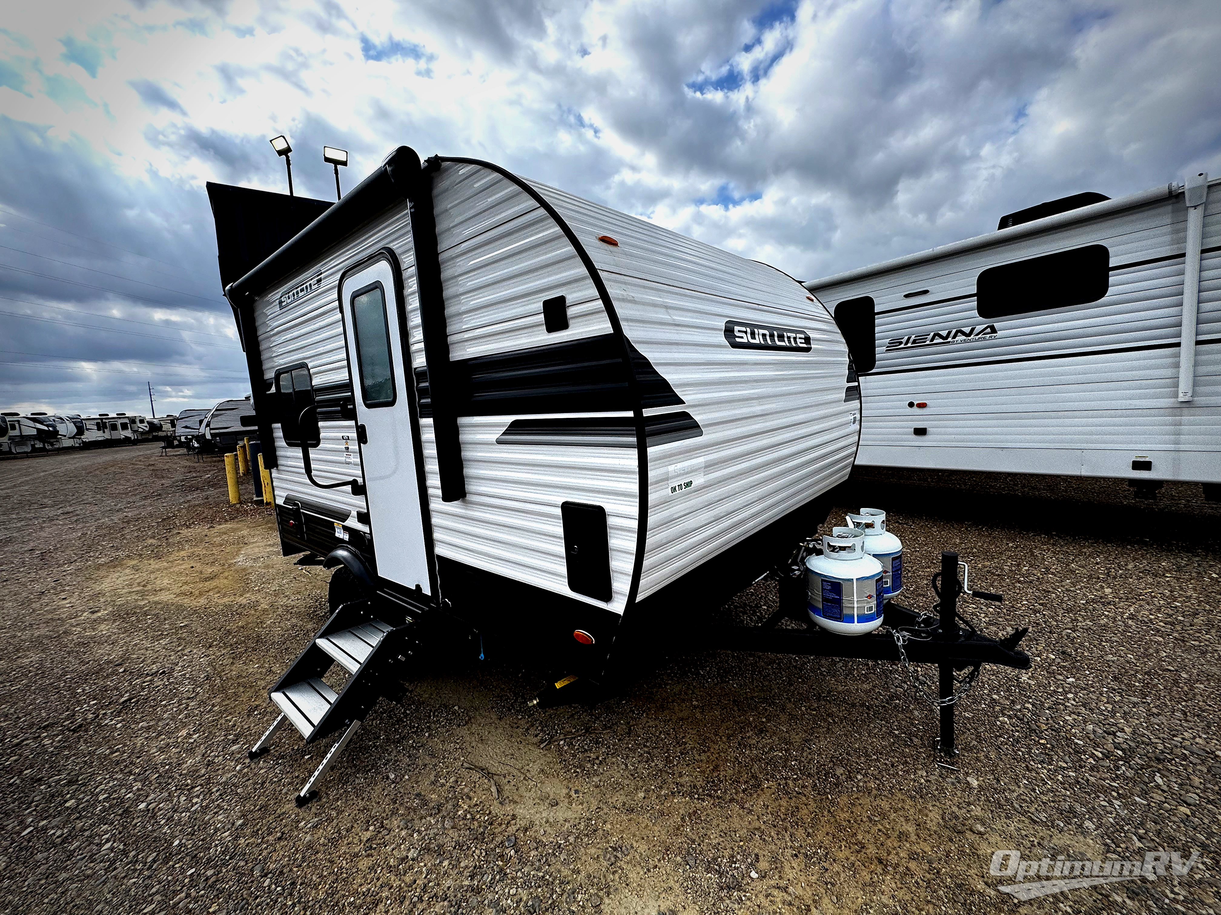 You can trust the build and enjoy your experience with any one of these Sunset Park RV Sun Lite travel trailers or toy haulers! Their aerodynamic profile is not only easy to haul, but also saves on fuel. They are built to withstand years of traveling even though they are lightweight with a diamond plate rock guard, a one piece PVC roof membrane, Dexter Spring-Leaf axles, and tinted safety glass windows. Some comfort standards you are sure to enjoy are the two-burner stove top range with hood, light and fan, plus the refrigerator and microwave, and an outside shower to help keep the dirt outdoors where it belongs.