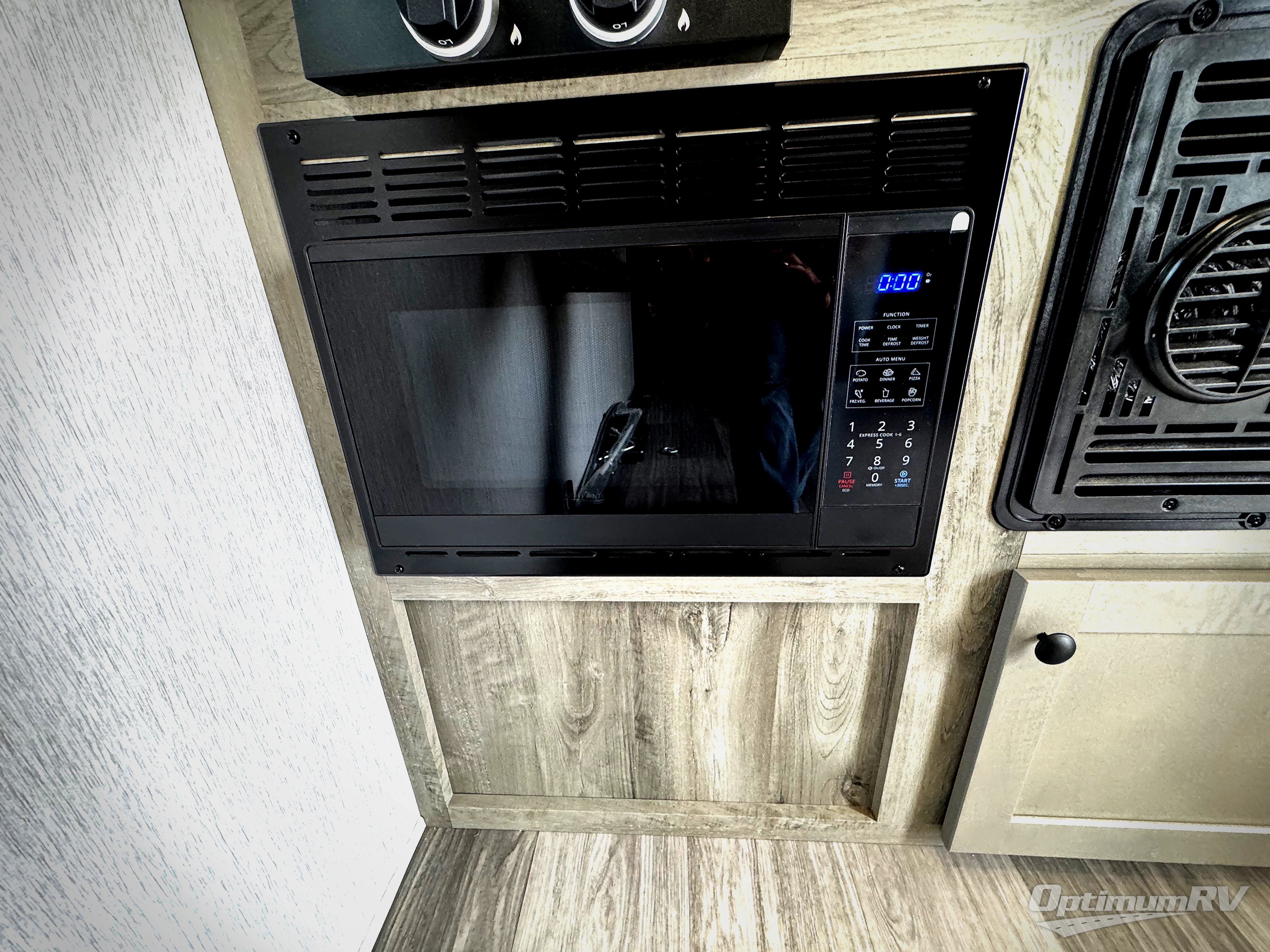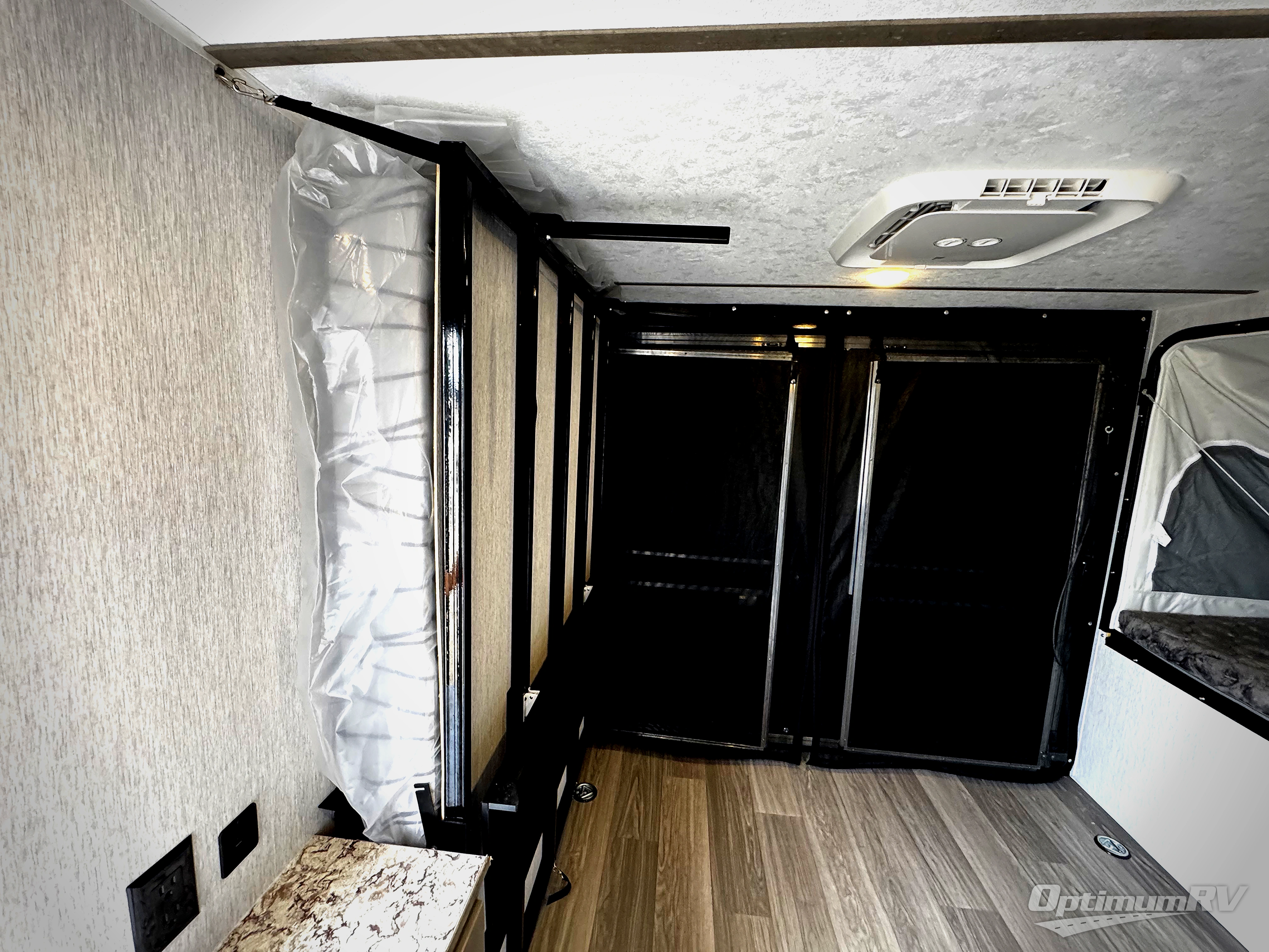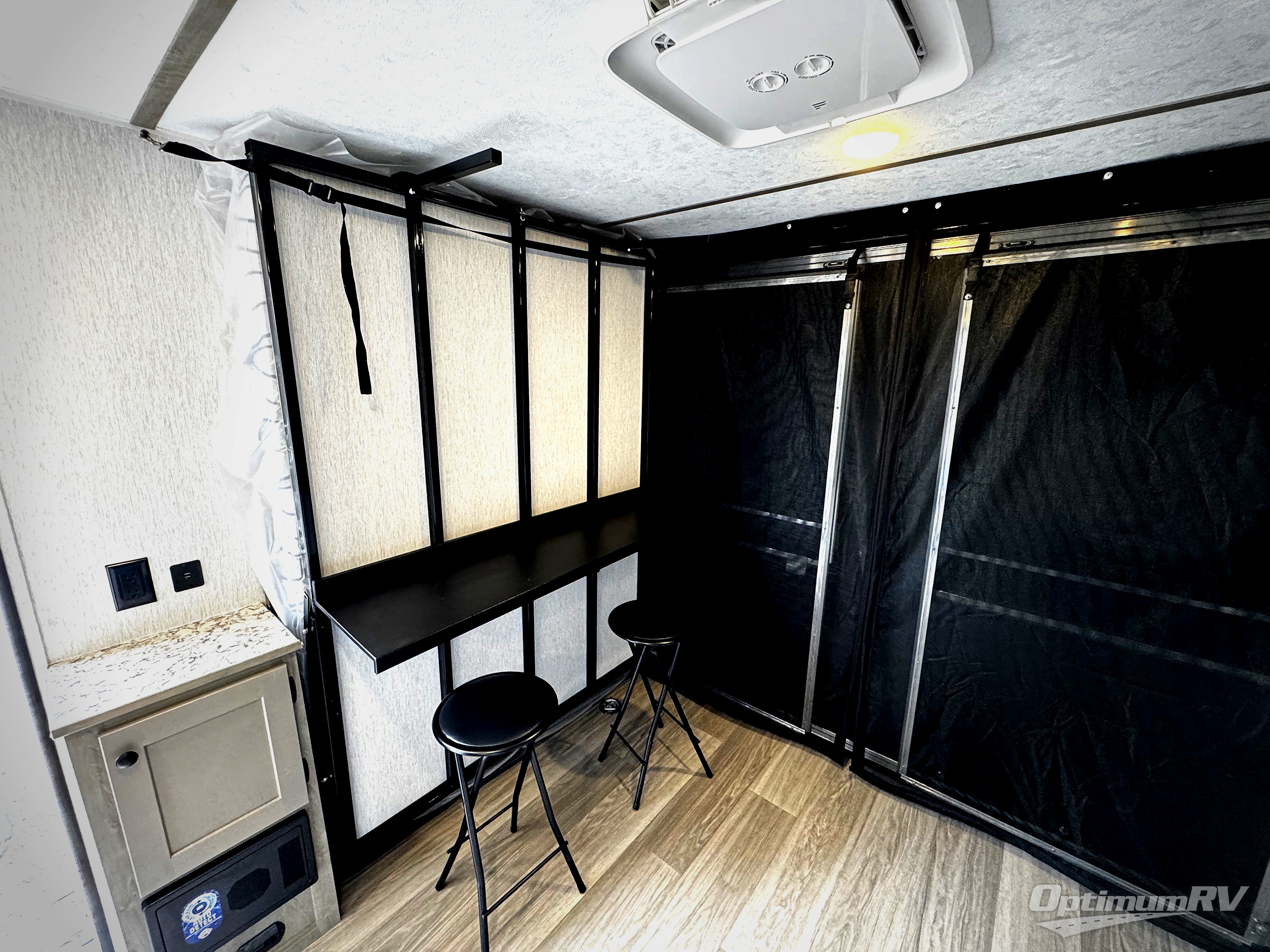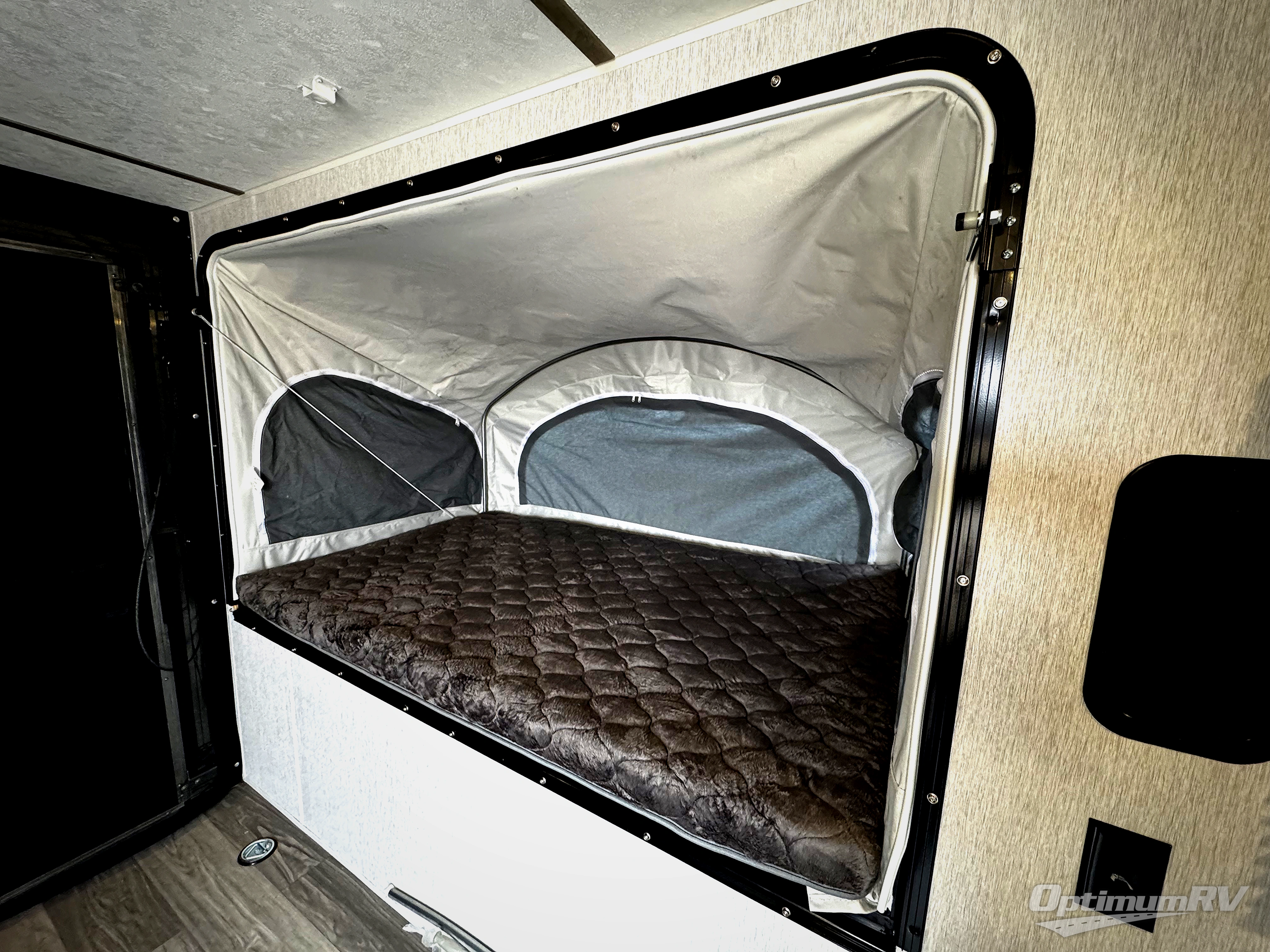 Get ready for a great camping experience where you can take along your favorite ride-on toys, kayaks, or other items that you may not normally have room to load as this toy hauler features a 6' 9" cargo width and 10' 11" cargo length. Once unloaded, set up with the rear bed that will make for a great night's rest. The front of this unit is shared with the wet bath and kitchen. Here, you can make meals on the two burner stove or in the microwave oven, and there is a refrigerator for perishables. This unit also includes the Rush Toy Hauler Package with a ramp door, dual cargo loading lights, a magnetic rear bug screen, and four D-rings to secure your toys.