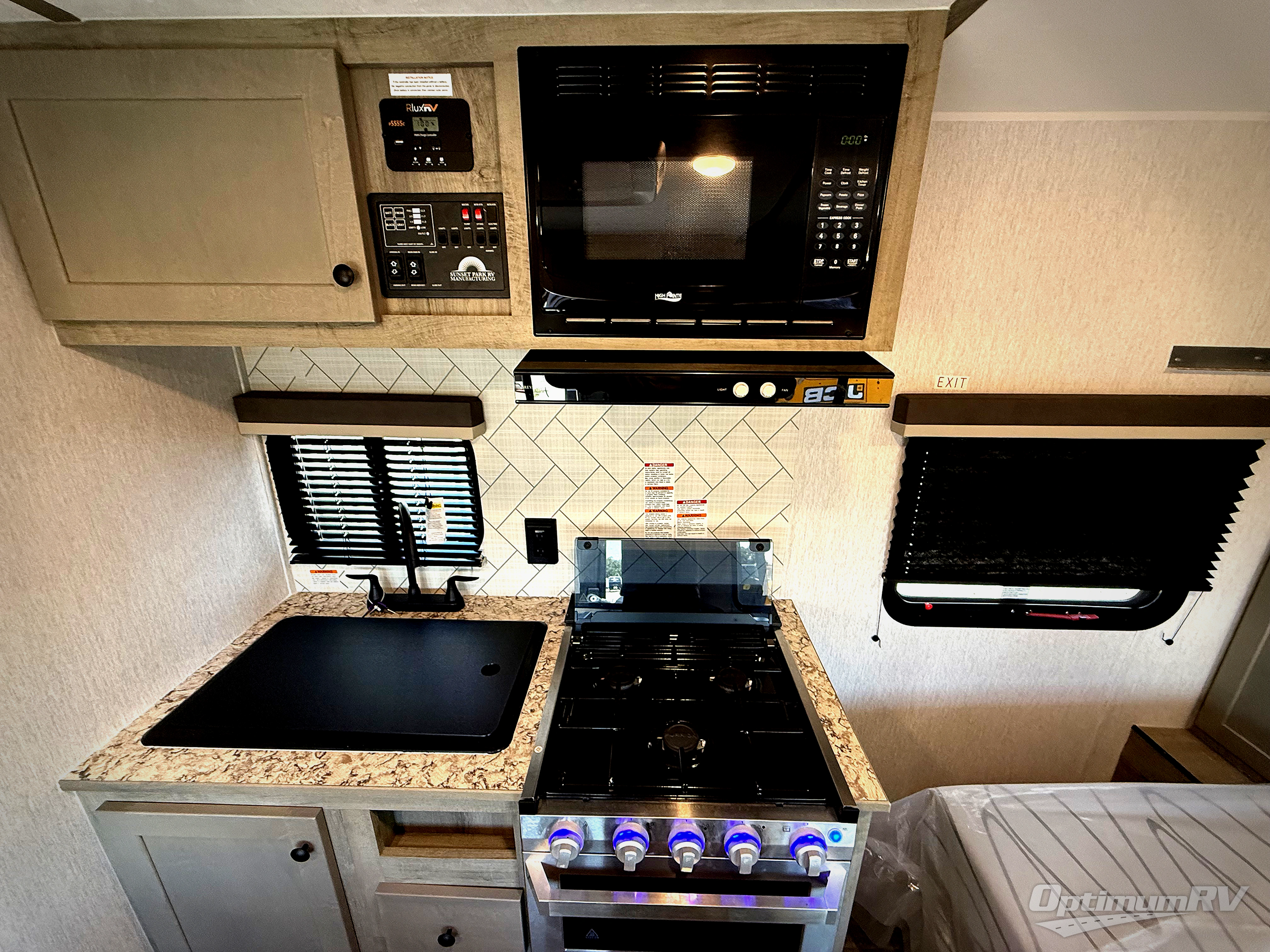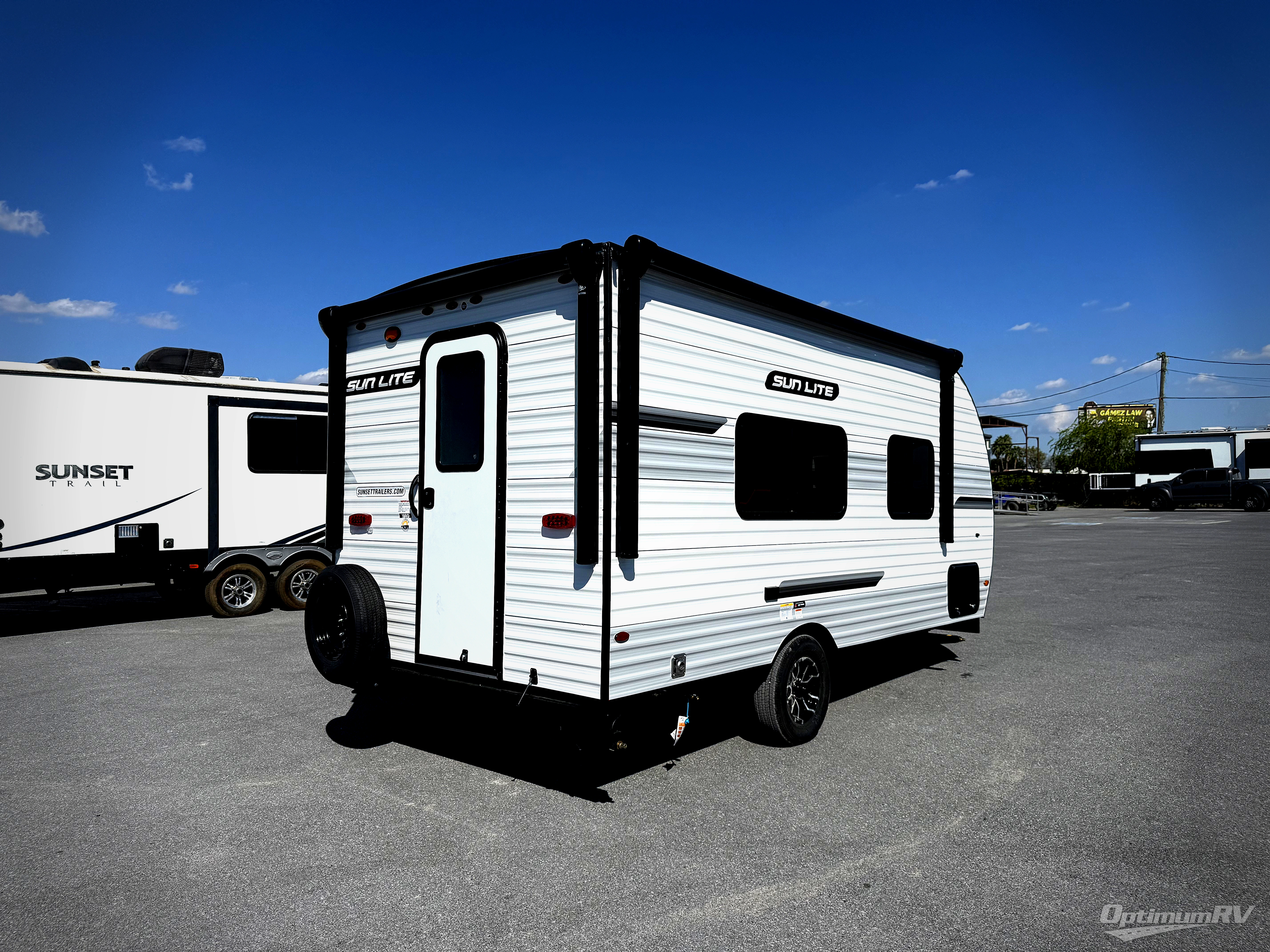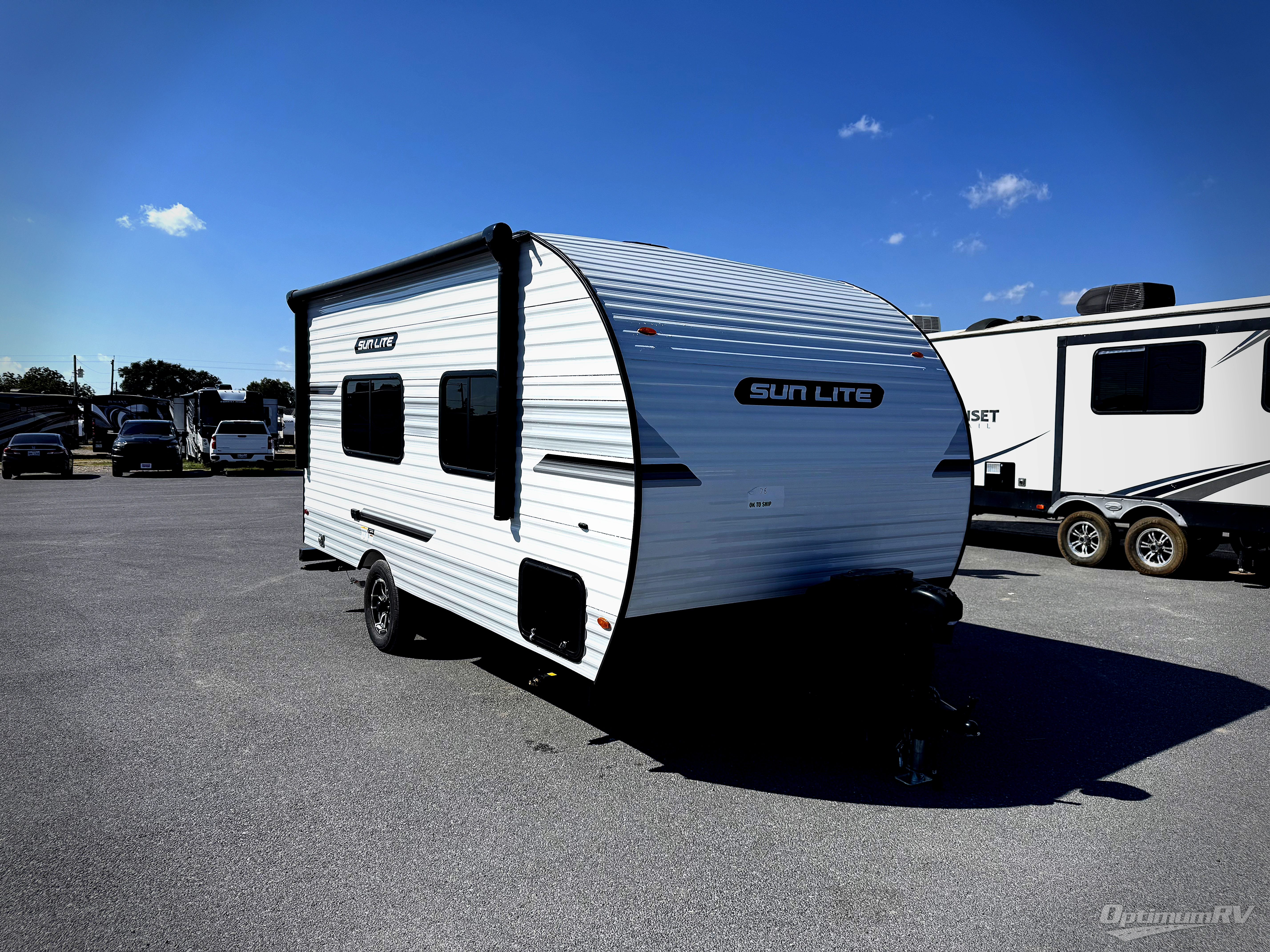 You can trust the build and enjoy your experience with any one of these Sunset Park RV Sun Lite travel trailers! Their aerodynamic profile is not only easy to haul, but also saves on fuel. They are built to withstand years of traveling even though they are lightweight with a diamond plate rock guard, a one piece PVC roof membrane, Dexter Spring-Leaf axles, and tinted safety glass windows. Some comfort standards you are sure to enjoy are the two-burner stove top range with hood, light and fan, plus the refrigerator and microwave, and an outside shower to help keep the dirt outdoors where it belongs.