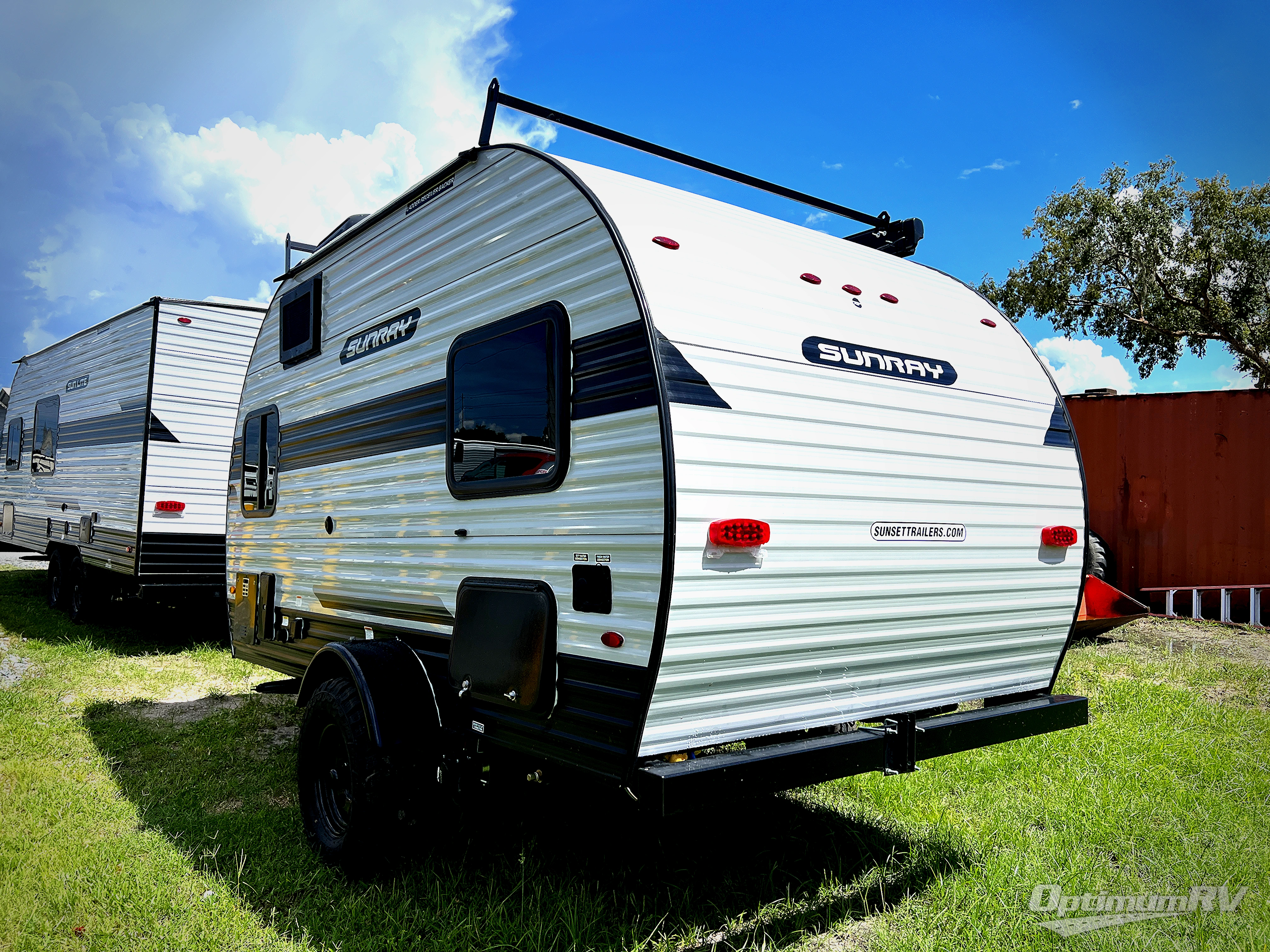 The Sunray travel trailer from Sunset Park RV is an investment that you'll be able to enjoy for many years to come! These compact trailers are effortless to tow, so you won't need fancy equipment to have fun at the campsite. The Sunray is built upon a powder-coated steel chassis, and it has a diamond plate rock guard to keep the front end protected from debris. You'll find radial tires, a spare tire with carrier, and .024" aluminum siding on each model. You'll be able to remain comfortable when staying indoors thanks to the A/C and furnace. Another way that your camping experience will be elevated is with the Confidence Package which comes with a 6” lift with off-road tires, black steel rims, a roof rack, and more!