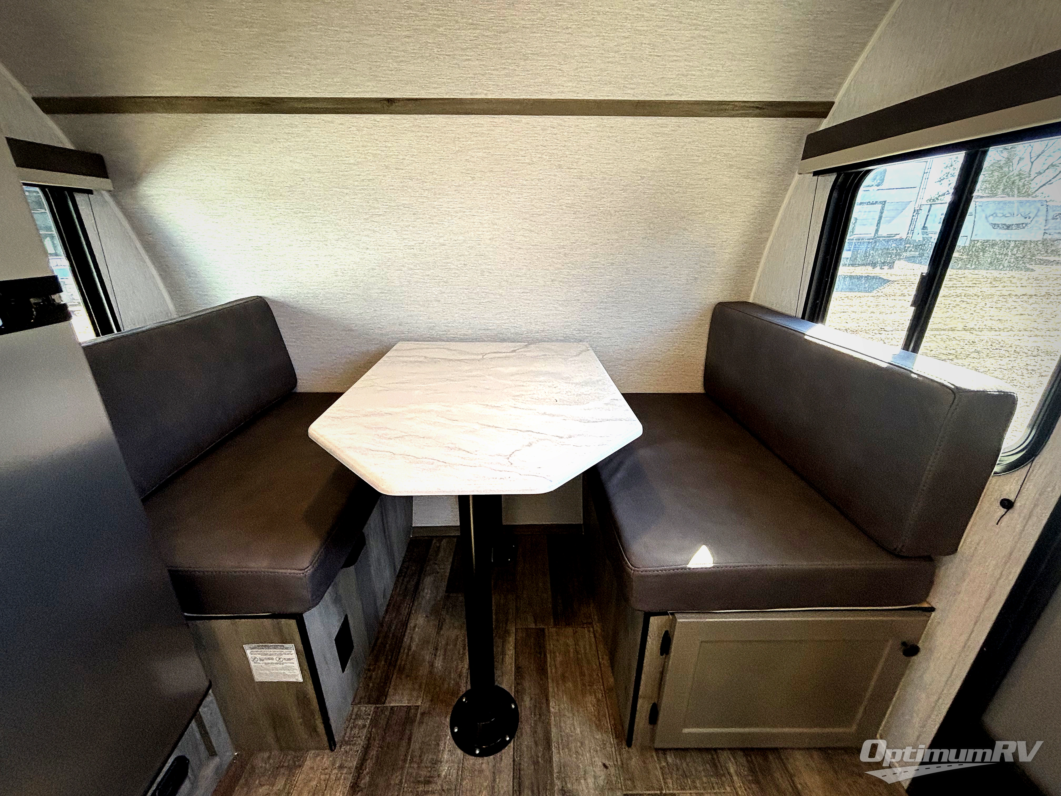 This Sunray travel trailer is the largest and most accommodating because it comes with a wet bath so that you can even take a shower in your trailer! There is a small kitchen on the interior that comes with a two-burner stove top, a refrigerator, and a microwave so that you can cook dinner without having to start a fire, and since it is indoors, you will be able to keep the bugs away while you prepare something delicious to eat. If you need to rinse off some gear, the outside shower will be especially useful, and if you need to charge your devices, use the USB ports. You will also find a Winegard HDTV antenna on this model. Add the available Classic option for 14" tires instead of the off-road version, color matching rims with Moon Caps, and Retro decor and Diner-Style countertops.
