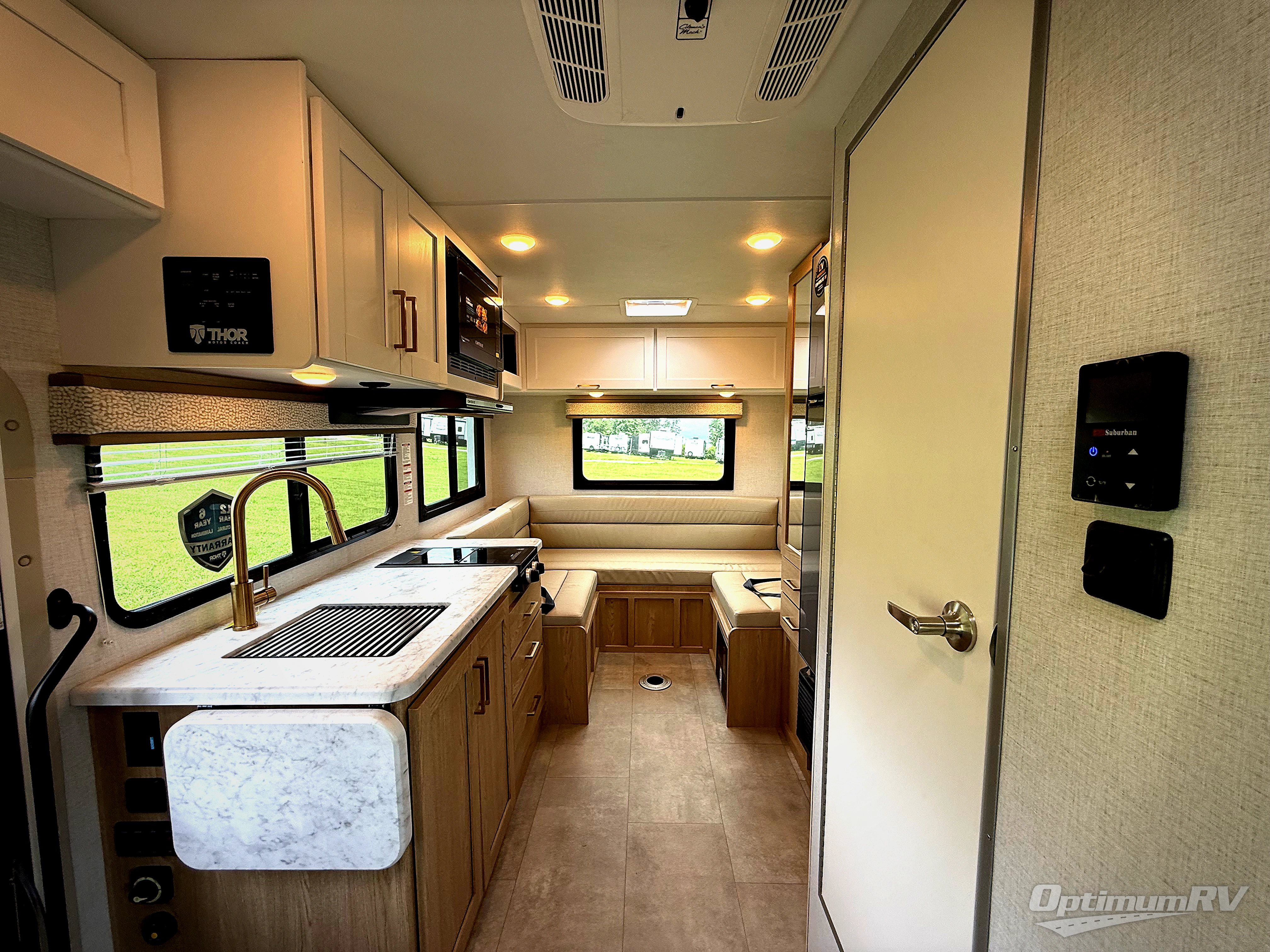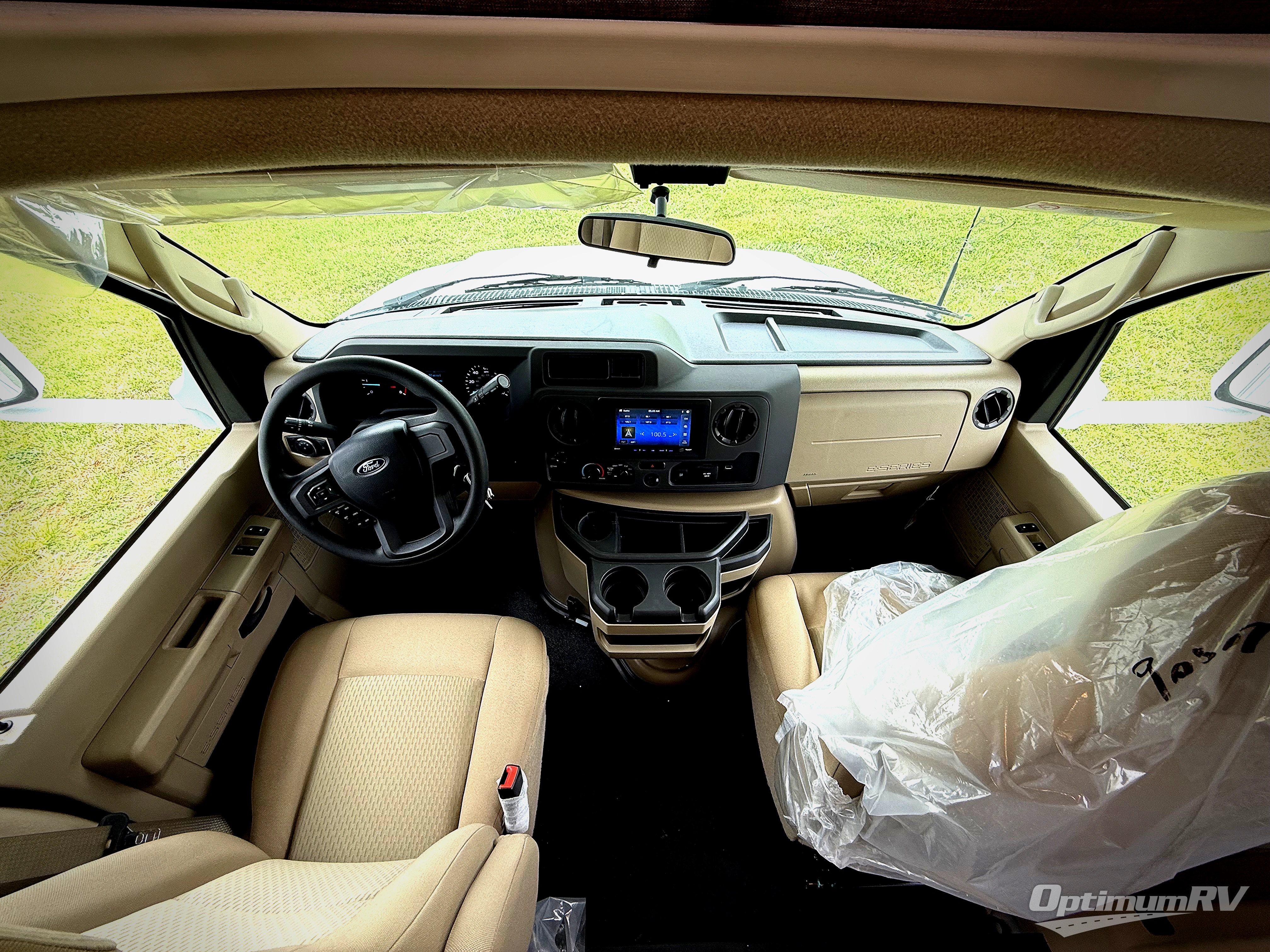 With any Chateau ESpec Class C gas motorhome by Thor Motor Coach, you will find convenient amenities, a modern interior, and a reliable Ford E-Series chassis, with an optional Chevy chassis on select models to power your adventures. There is welded tubular aluminum roof and sidewall cage construction, a one-piece fiberglass front cap, and a premium one-piece domed roof membrane for added strength. Residential vinyl flooring will be easy to keep clean, and you'll love the sleek look of the Hampton Collection two-toned cabinets. These motorhomes also include a 50 State 4.0 kW dual gas/LP generator and a 30-amp shoreline power cord to keep you going, along with a tankless water heater and 13,500 roof front A/C to ensure your comfort!