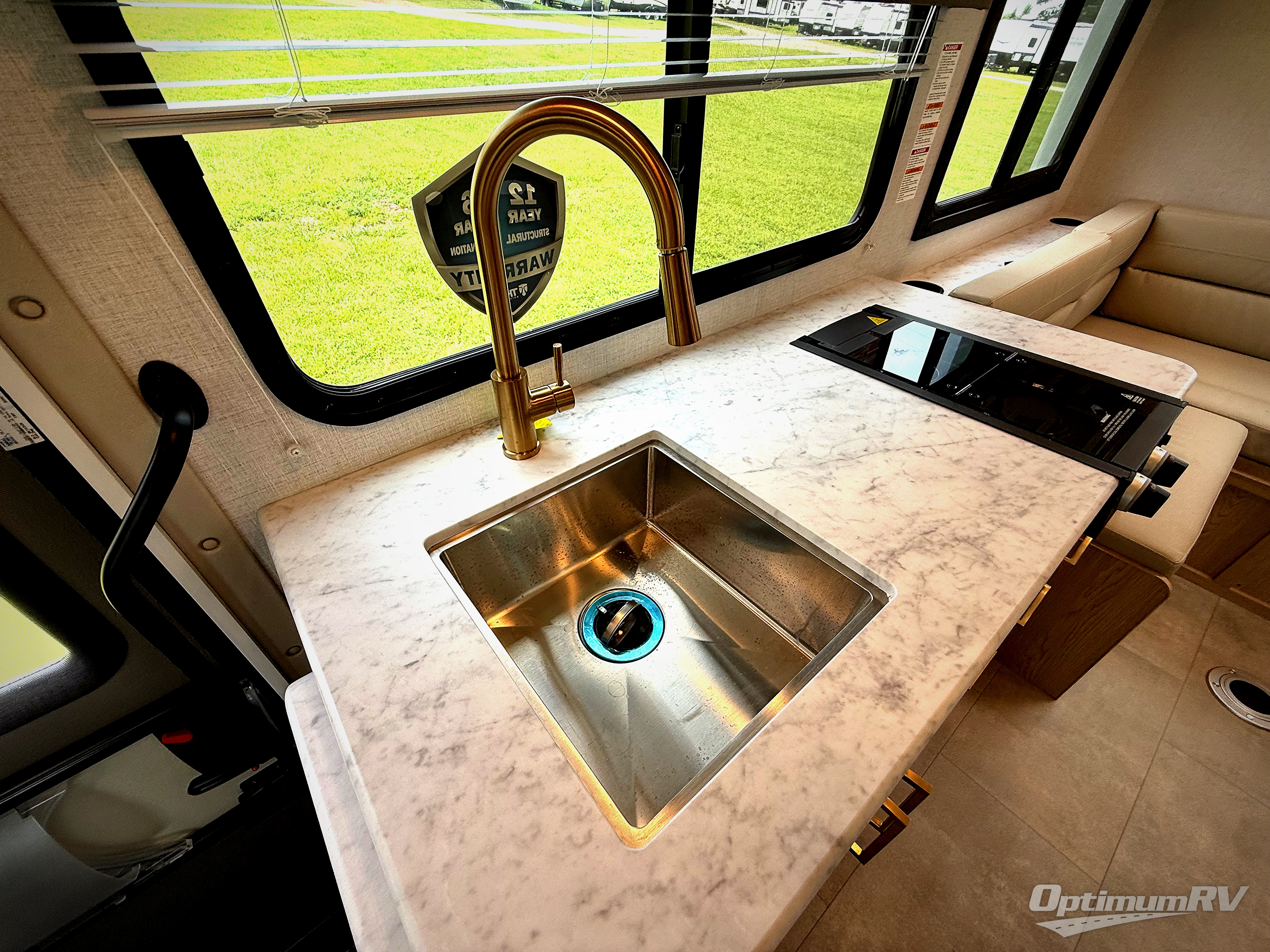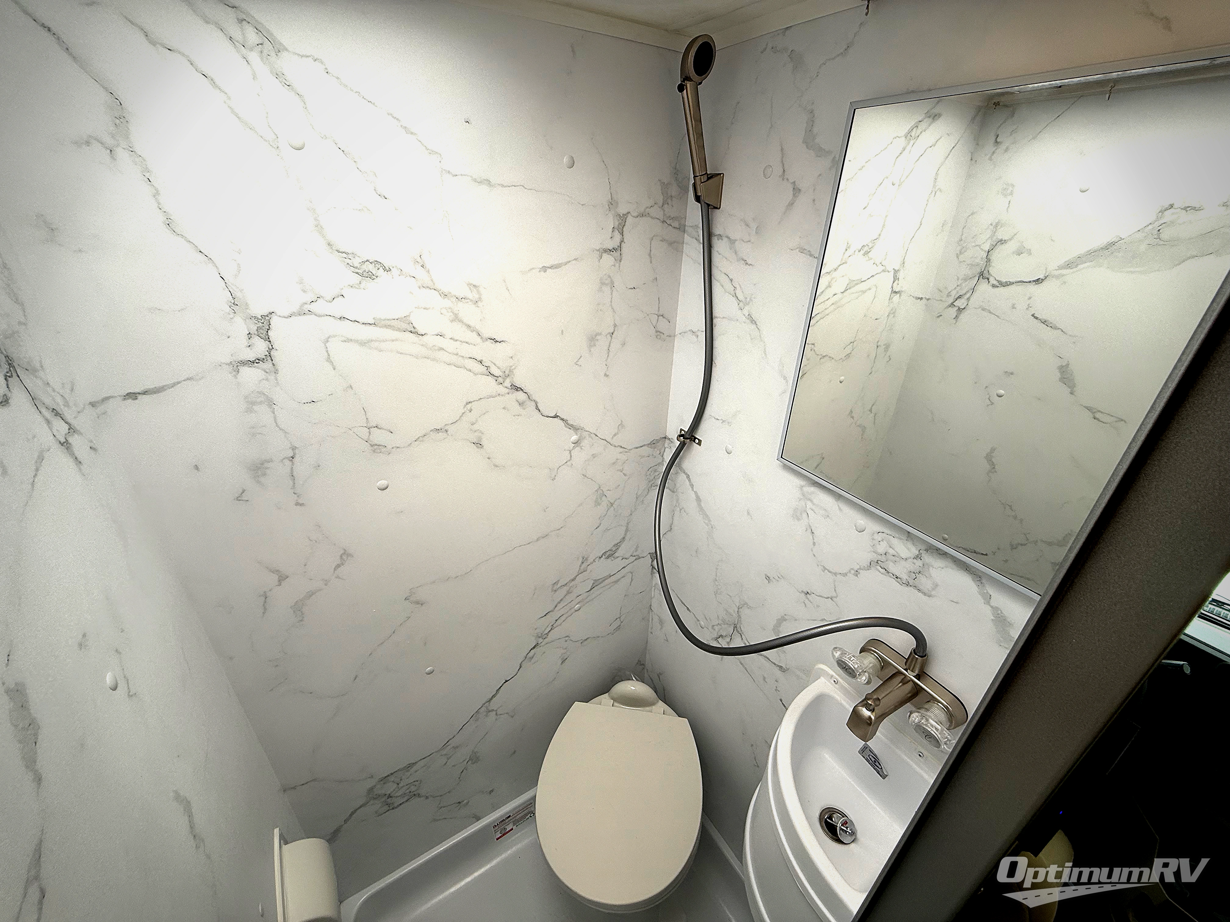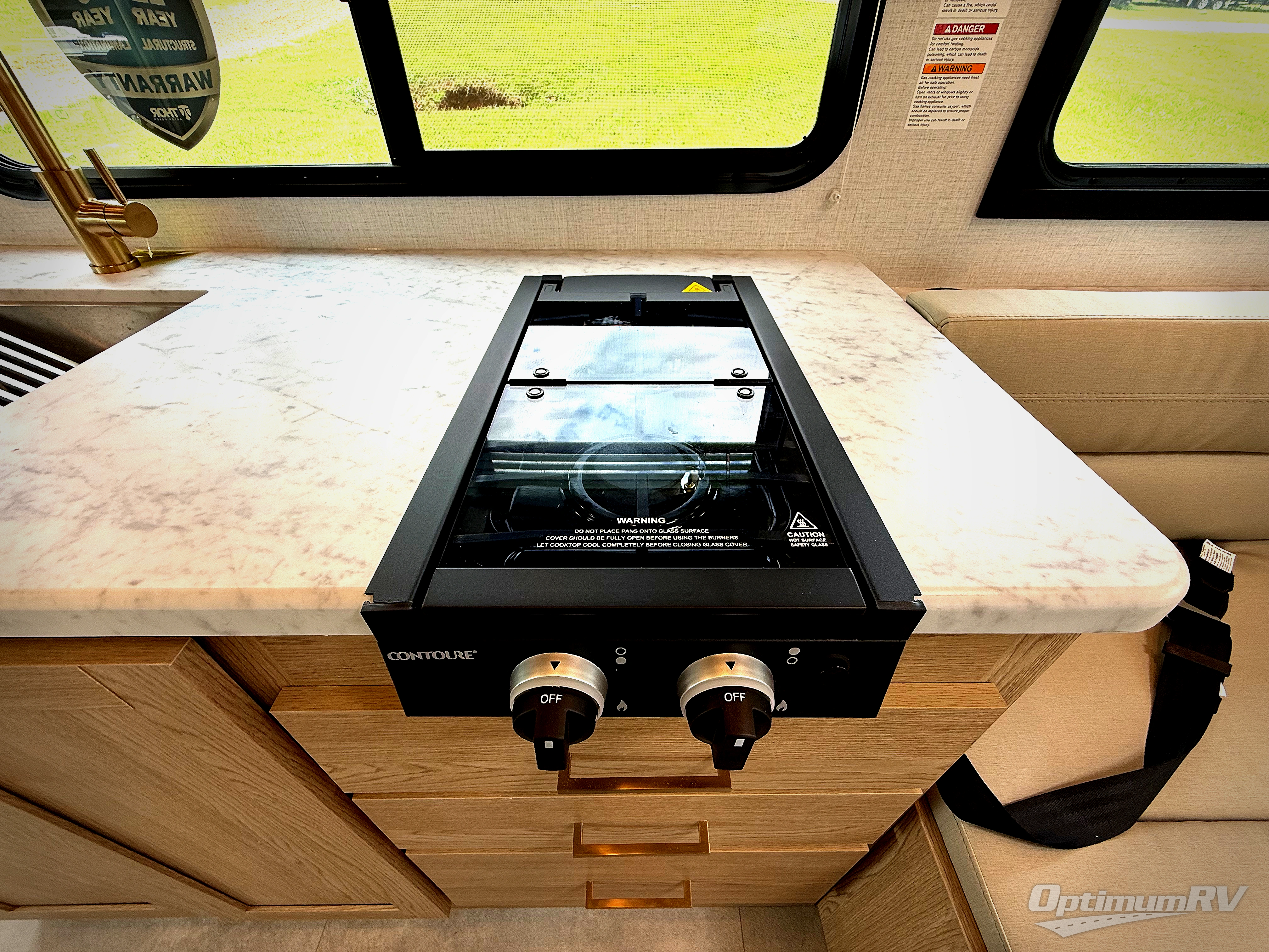 This compact, yet cozy coach is perfect for trips to the campground each weekend! Once you've reached your destination, you can set up the 11' power awning, unload the exterior storage compartments, and relax in your camp chairs. The two burner gas cooktop and convection microwave with an air fryer will let you make meals each day, and there is a 12V refrigerator to keep food fresh. A flip-up counter is another great feature that will give you more prep space! You can freshen up in the wet bath, grab your night clothes from the closet, then convert the U-shaped dinette into a 54" x 77" bed for a great night's rest!