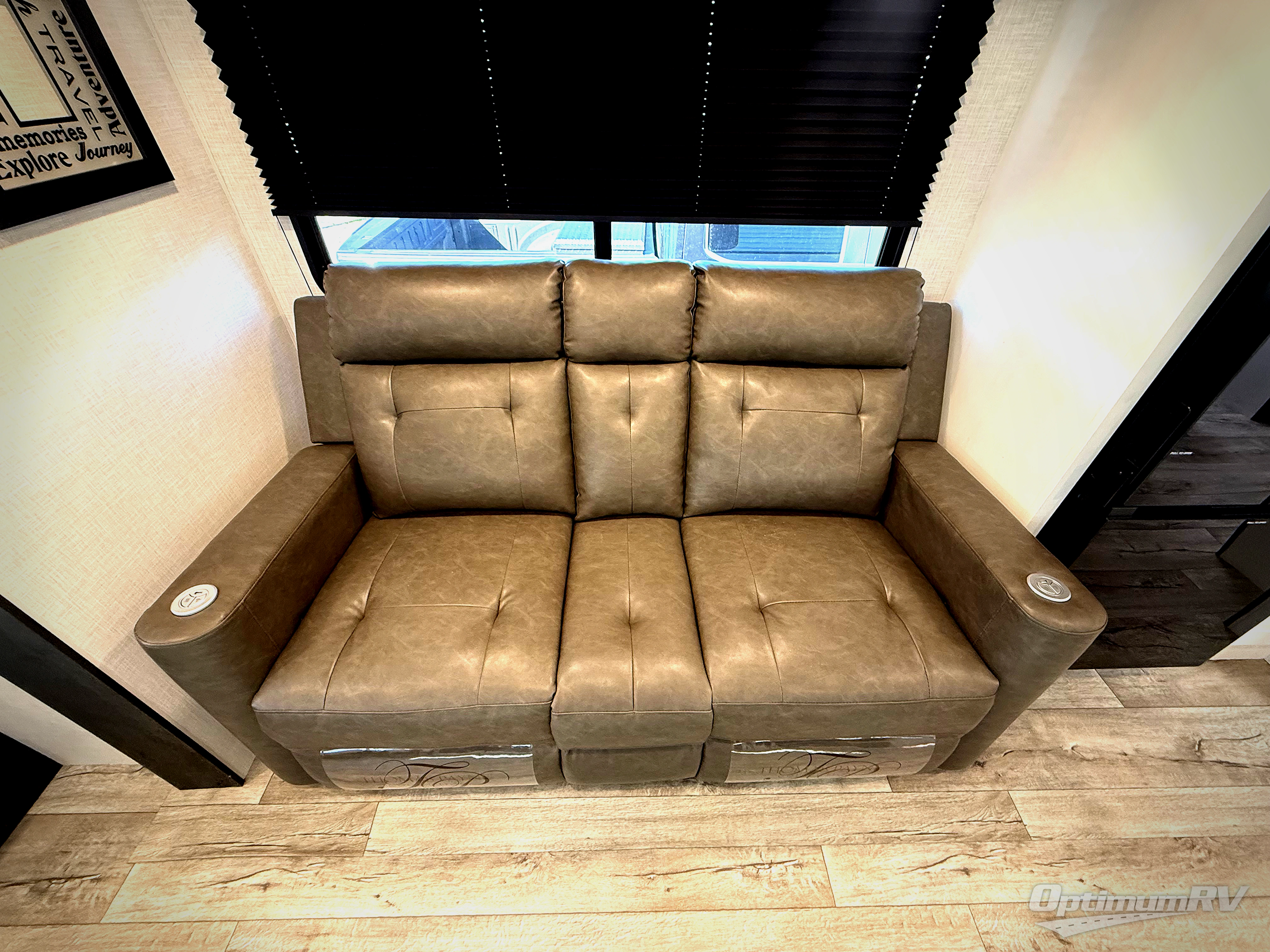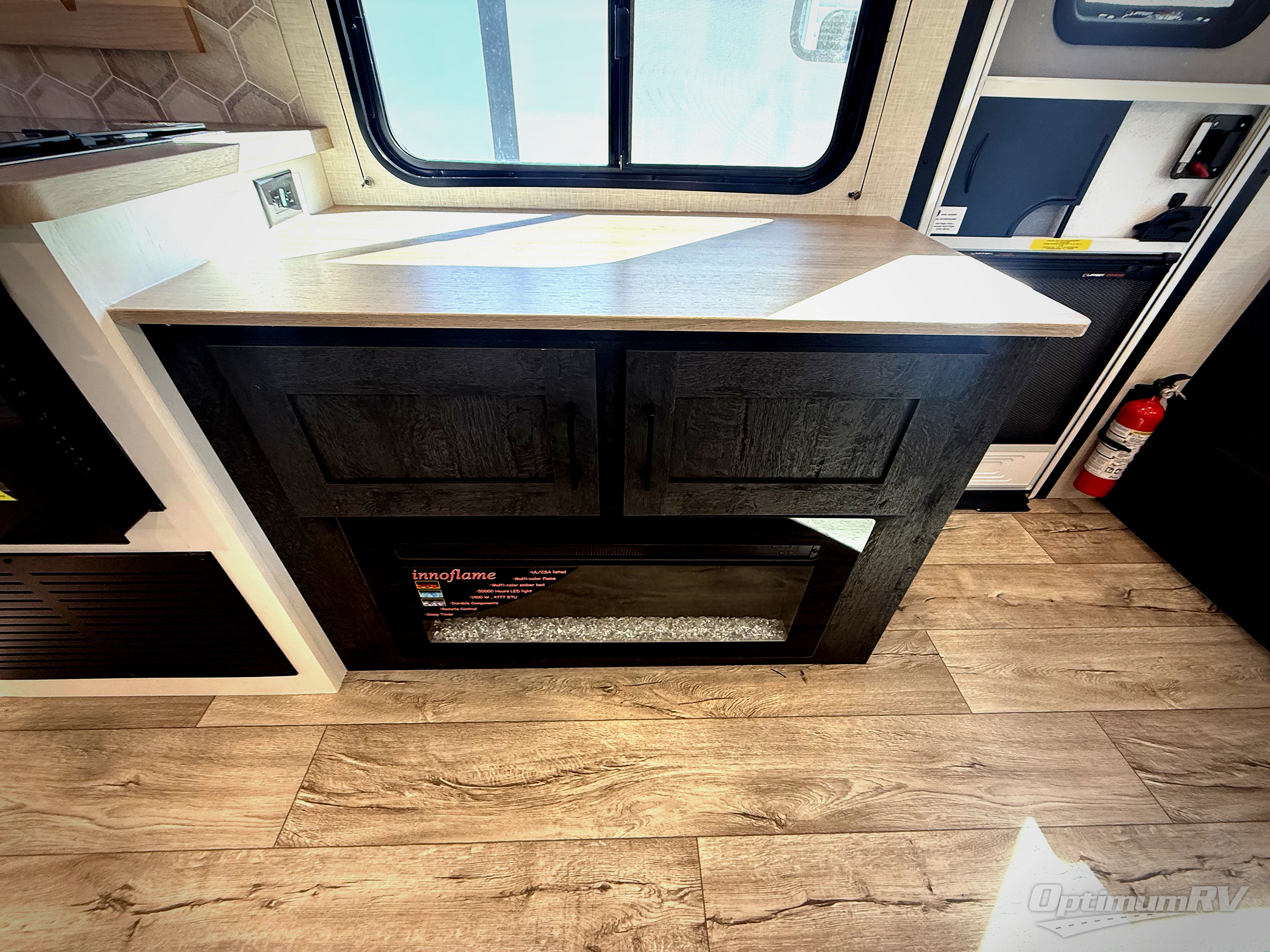 This fantastic trailer is packed with features that will make your travels comfortable, convenient, and unforgettable. In its luxurious interior you will find the U-shaped dinette perfect for meals or socializing, while the 70” sofa provides ample space for relaxation. The fireplace adds a cozy touch, creating a warm and inviting atmosphere. For the entertainment and leisure, the 40” TV is perfect for family movie nights or enjoying your favorite shows on the go. The entertainment system is designed to keep you entertained and relaxed. Moving to the kitchen area, the three-burner cooktop and pantry provide everything you need to prepare delicious meals on the go and the 12V refrigerator keeps your food and drinks fresh, ensuring you have everything you need for a comfortable trip. Convenience is found in the amazing walk-through bath offering easy access while the front bedroom is a serene retreat featuring a spacious queen bed, overhead cabinets, and wardrobes. Additional features like the two entry/exit doors provide added flexibility and ease of use, while the exterior awning furnish shade and protection from the elements.
