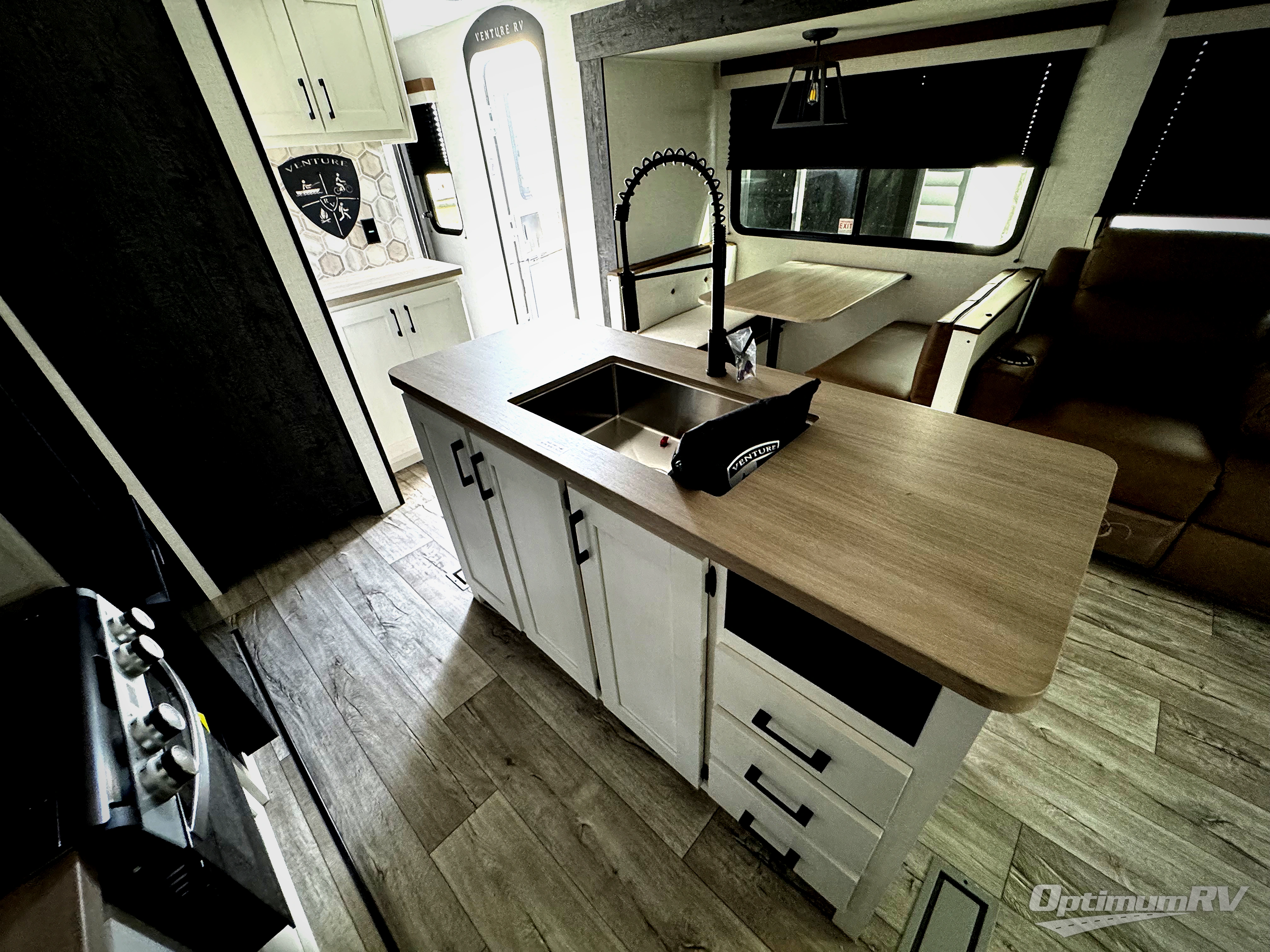 With any Sienna travel trailer by Venture RV, you will enjoy a lightweight unit, convenient amenities, and a durable construction that includes a BAL NXG-bolted frame. There is also a heated and enclosed one-piece underbelly, residential fiberglass insulation, and a reflective PVC roof membrane within the Weather-Shield Package to help extend your camping season. Outside, the BAL 5.0 power stabilizer jacks and power tongue jack will have you set up in no-time, and the Venture RV bottle opener/dog tie down will make it easy to bring your furry friends along. Head inside to enjoy the modern farmhouse design, along with Beauflor throughout with no carpet, custom backsplash, large underbed storage, and a bath skylight to name a few comforts!