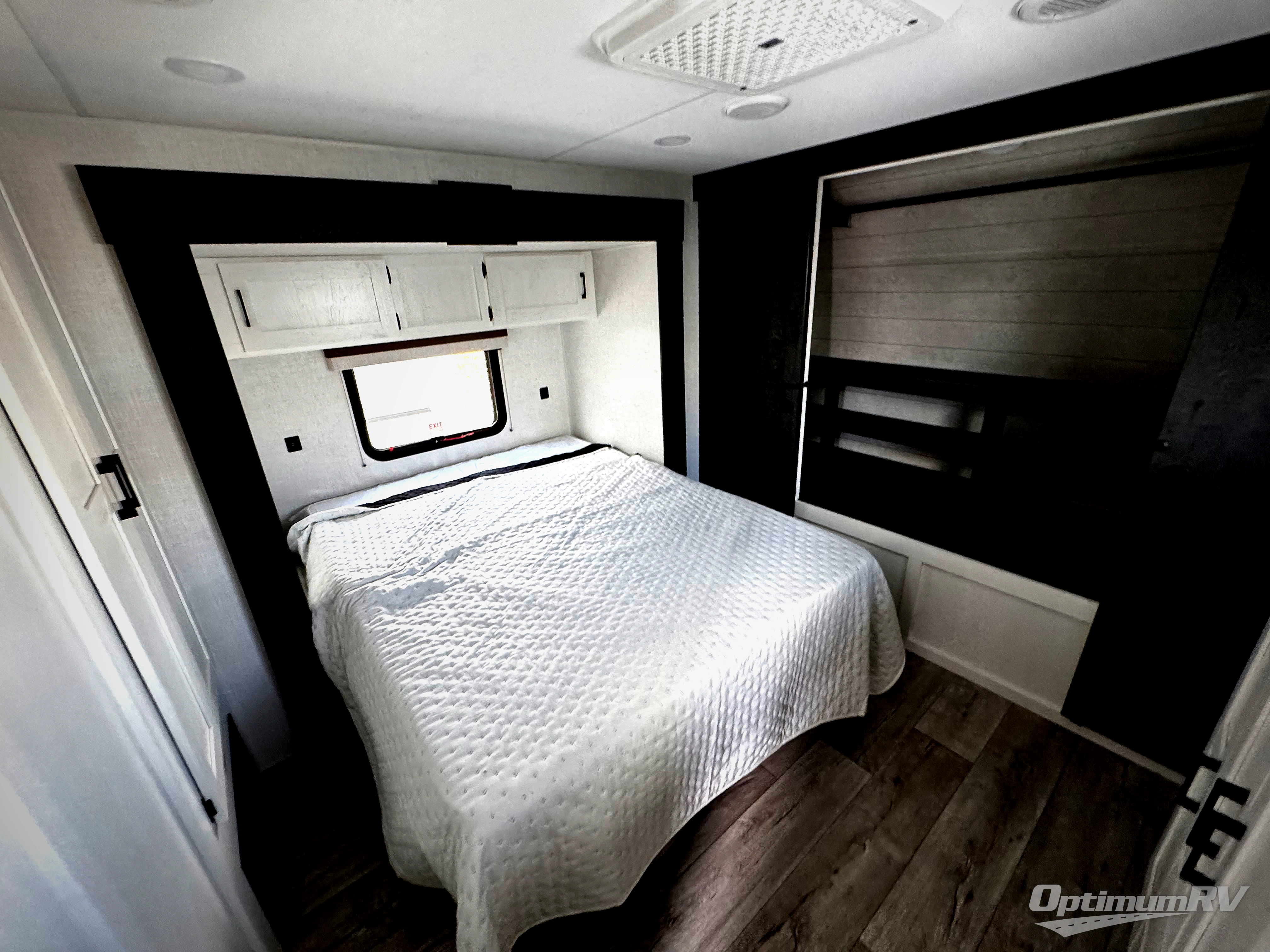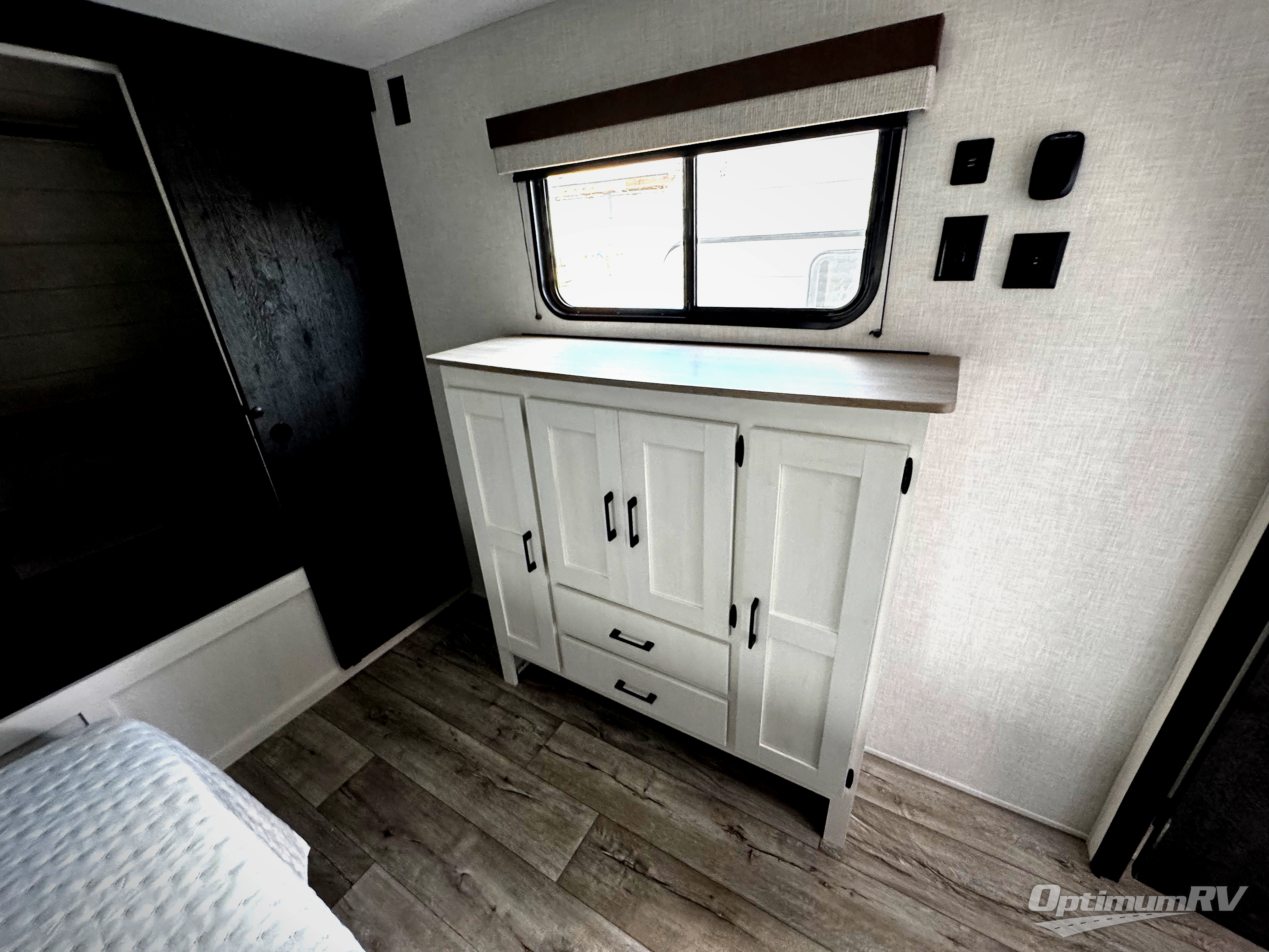 This travel trailer will feel just like home thanks to its spacious interior, large front private bedroom, and kitchen island. There are plenty of places to seating space, including a rear 70" sofa plus theater seating and a Sit N' Slide table within one of the slides. The opposing slide here includes the entertainment center and some of the kitchen appliances. You will also appreciate two pantries, one with washer and dryer prep if you want to add those appliances. A full bath lets you stay clean throughout your trip without having to use the campground's facilities, and the front bedroom is sure to make you feel at home. There is a Sleep Tight queen bed slide, a large front closet, plus a dresser and a second closet for ample storage space!