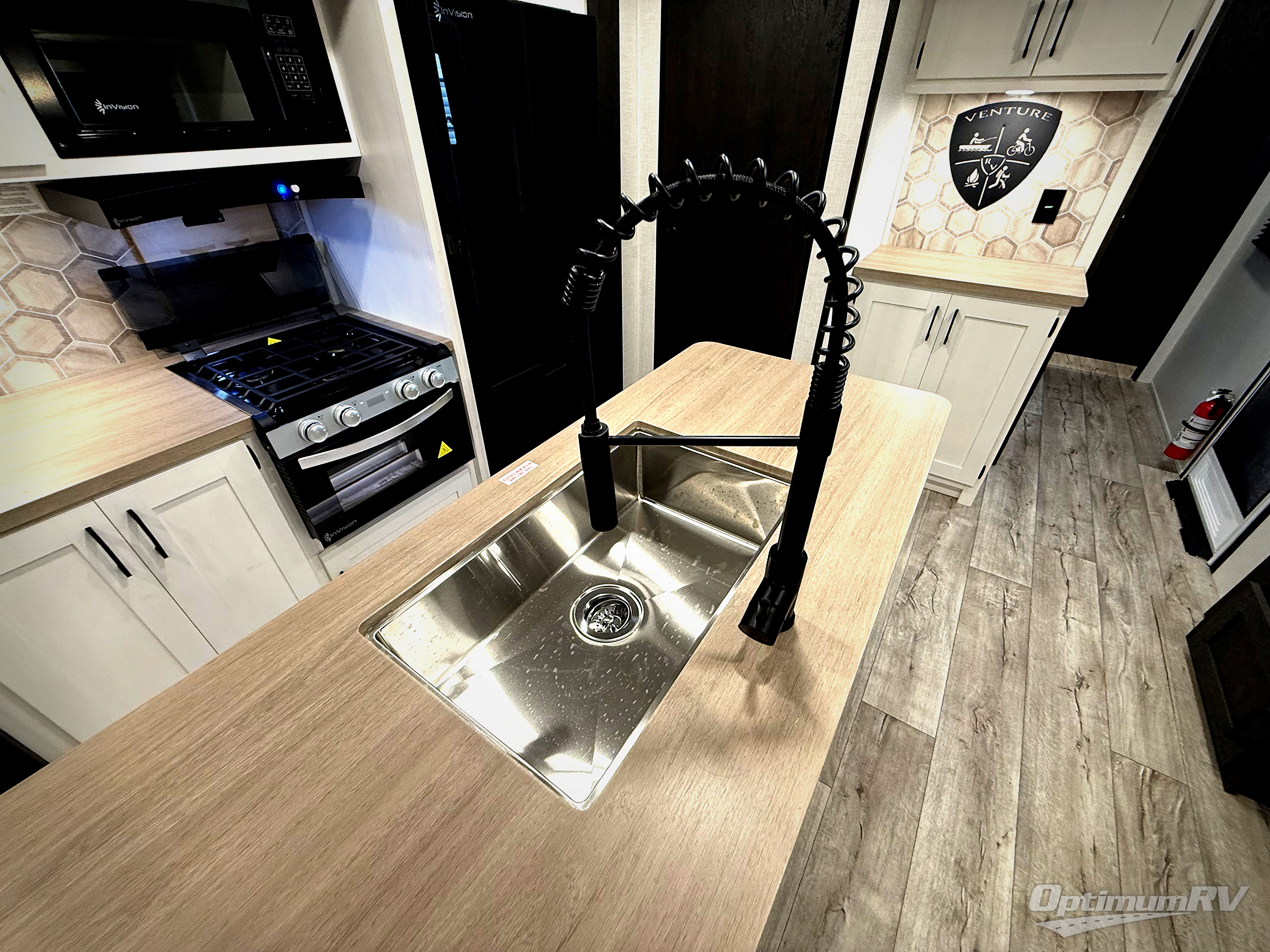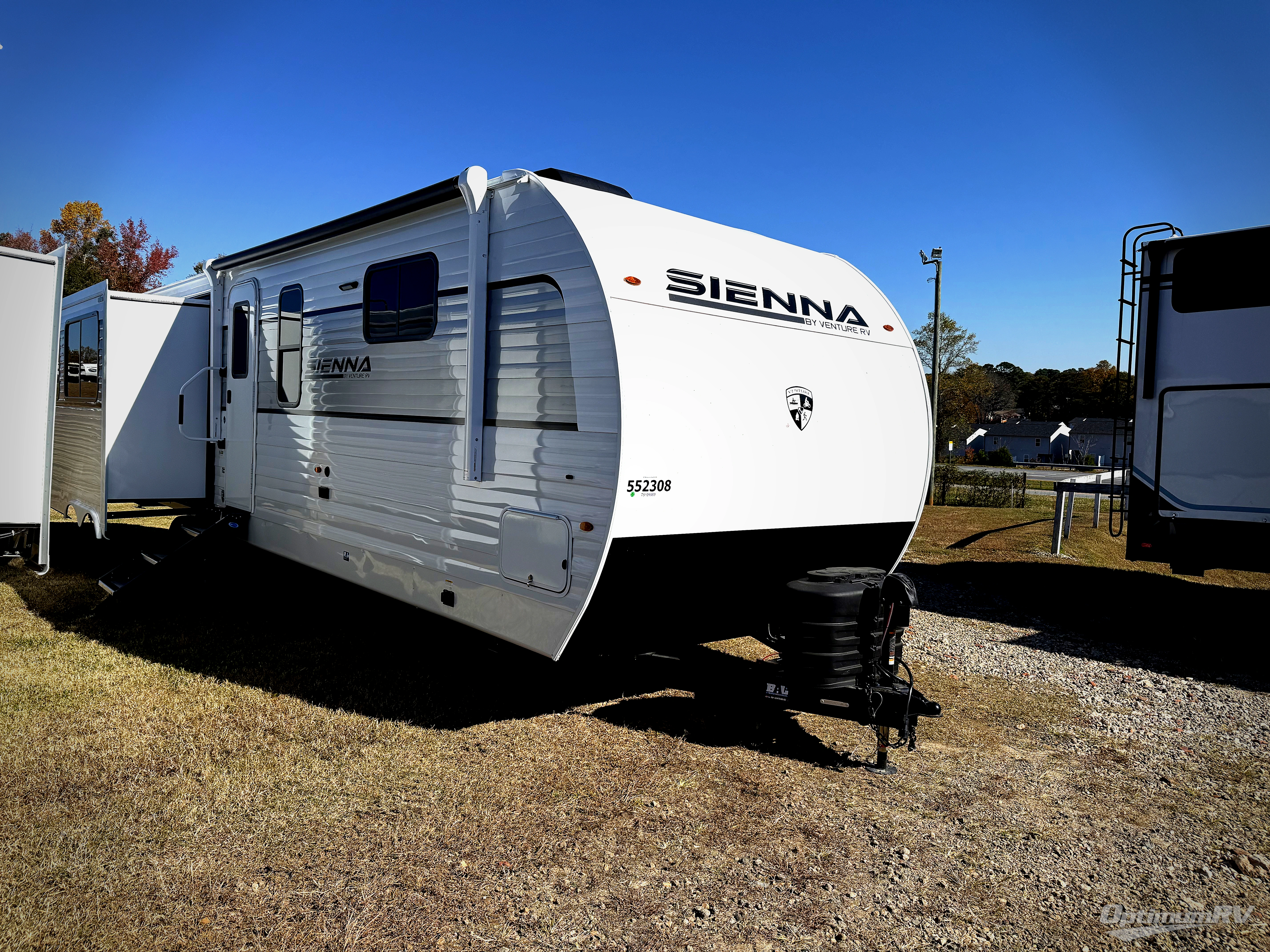 With any Sienna travel trailer by Venture RV, you will enjoy a lightweight unit, convenient amenities, and a durable construction that includes a BAL NXG-bolted frame. There is also a heated and enclosed one-piece underbelly, residential fiberglass insulation, and a reflective PVC roof membrane within the Weather-Shield Package to help extend your camping season. Outside, the BAL 5.0 power stabilizer jacks and power tongue jack will have you set up in no-time, and the Venture RV bottle opener/dog tie down will make it easy to bring your furry friends along. Head inside to enjoy the modern farmhouse design, along with Beauflor throughout with no carpet, custom backsplash, large underbed storage, and a bath skylight to name a few comforts!