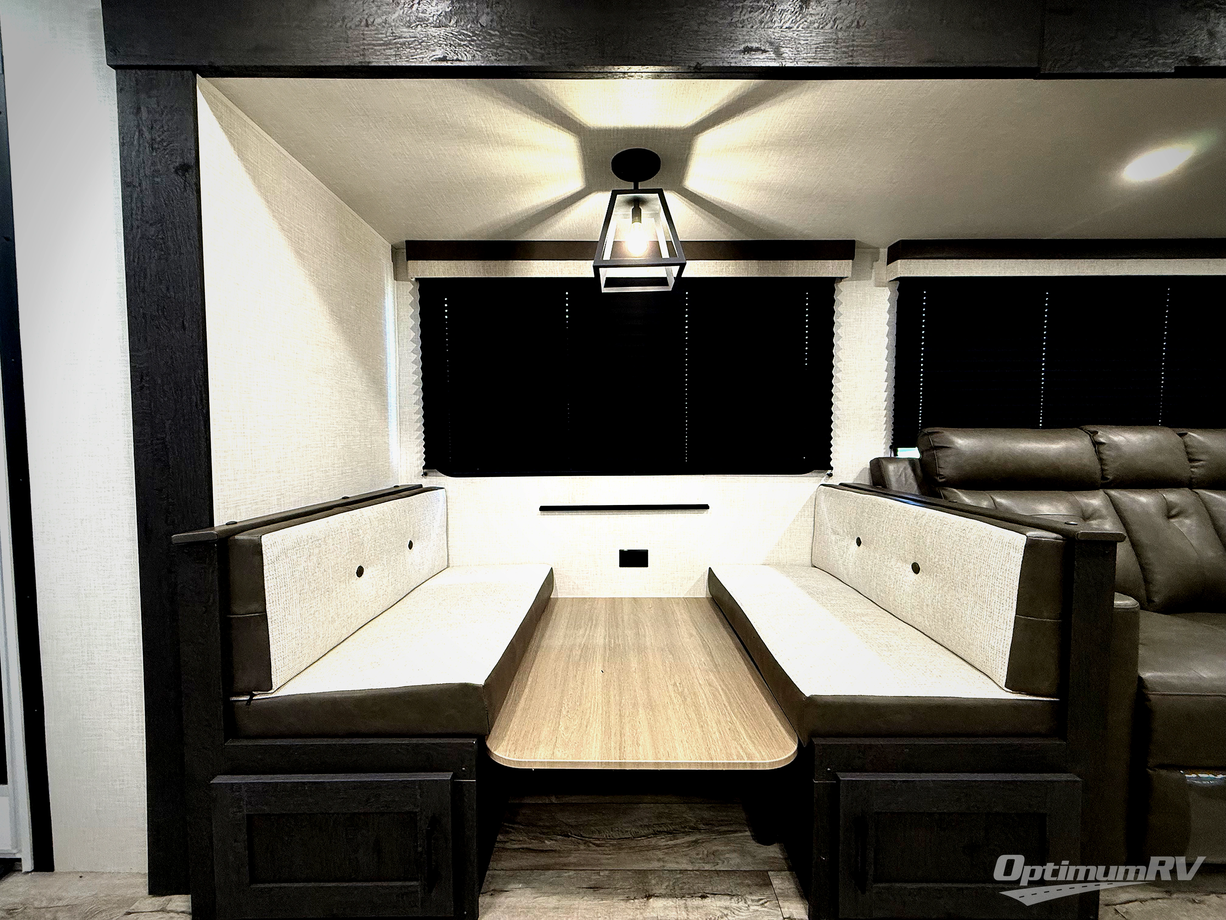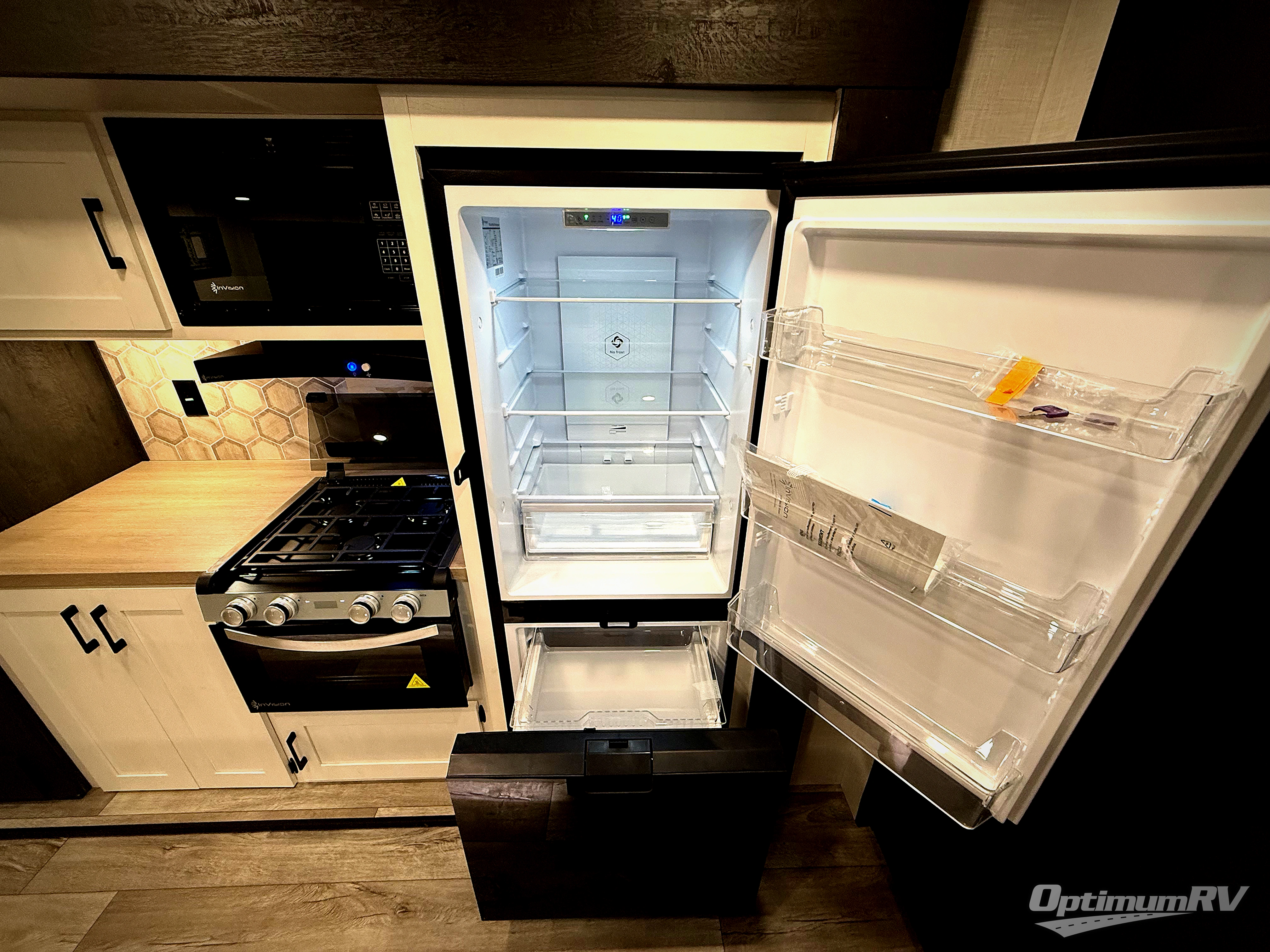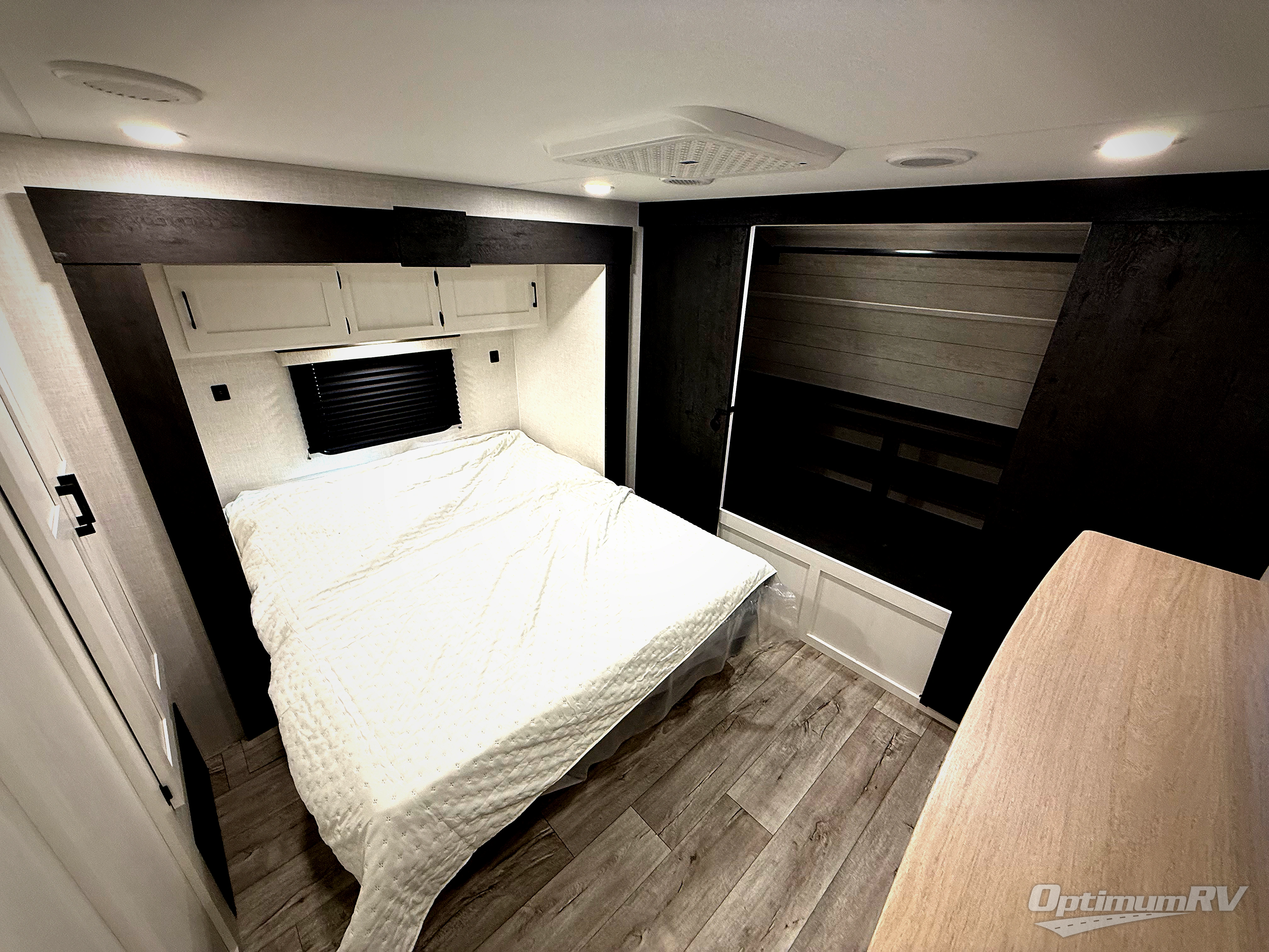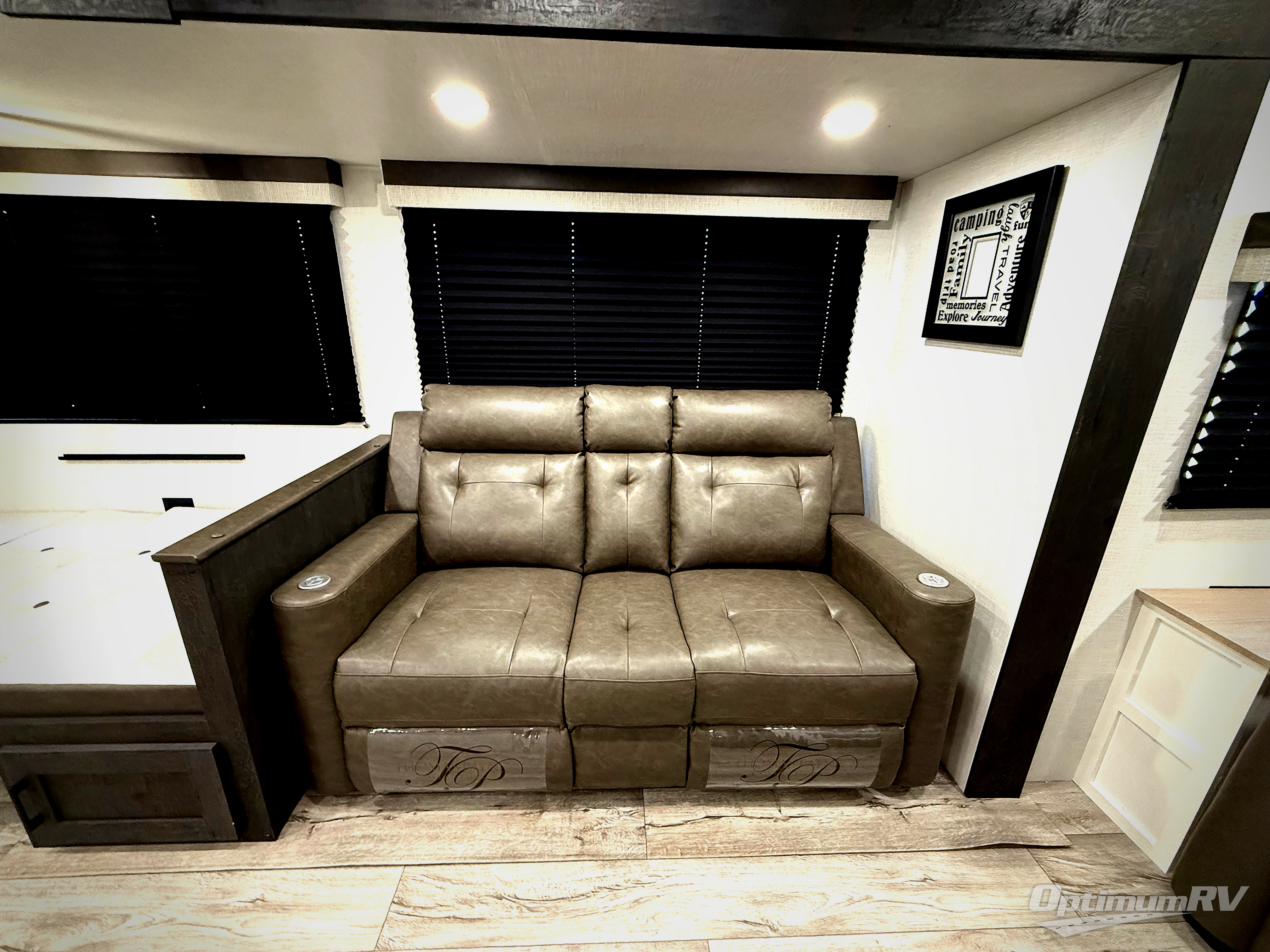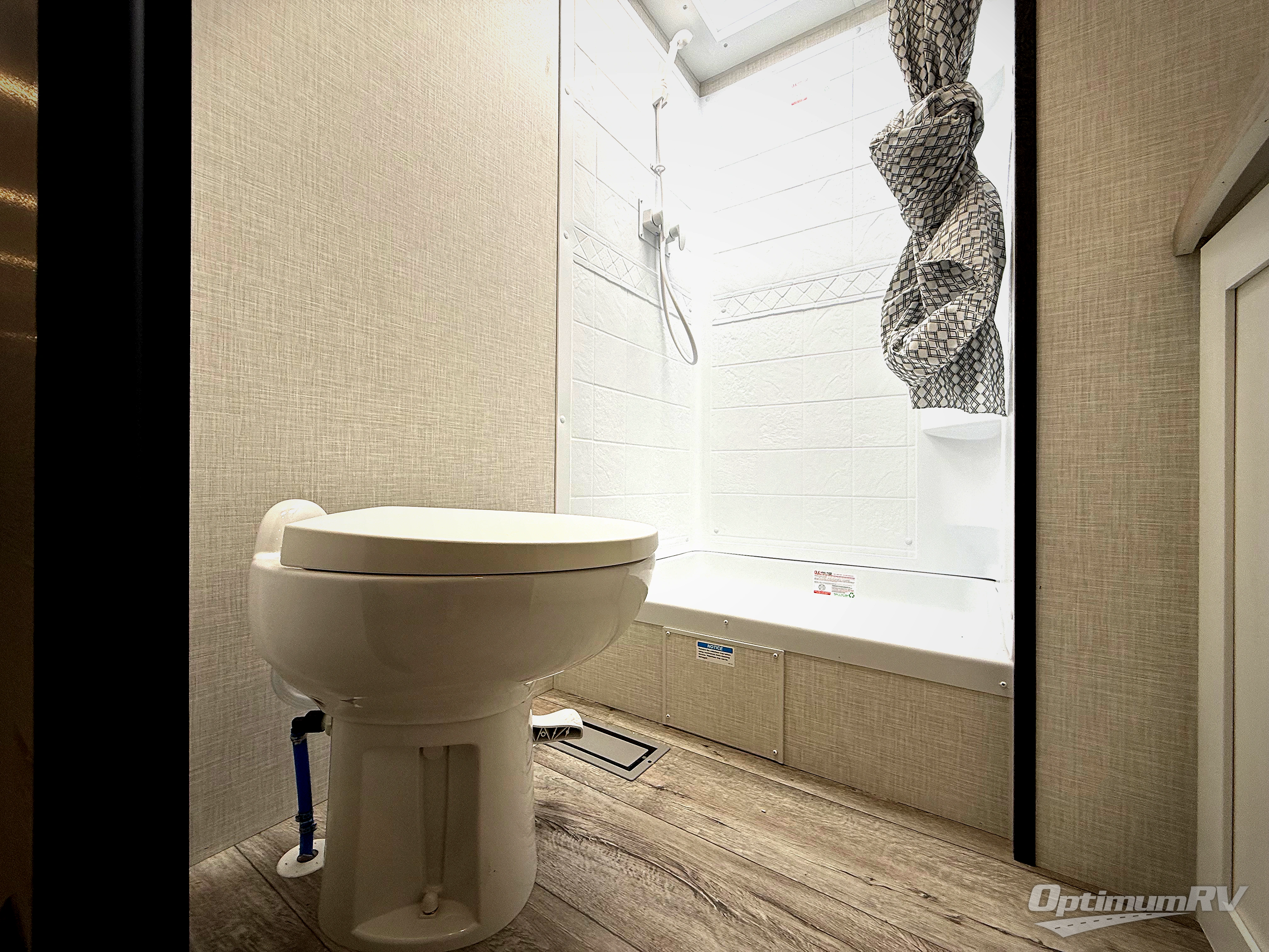 This travel trailer will feel just like home thanks to its spacious interior, large front private bedroom, and kitchen island. There are plenty of places to seating space, including a rear 70" sofa plus theater seating and a Sit N' Slide table within one of the slides. The opposing slide here includes the entertainment center and some of the kitchen appliances. You will also appreciate two pantries, one with washer and dryer prep if you want to add those appliances. A full bath lets you stay clean throughout your trip without having to use the campground's facilities, and the front bedroom is sure to make you feel at home. There is a Sleep Tight queen bed slide, a large front closet, plus a dresser and a second closet for ample storage space!