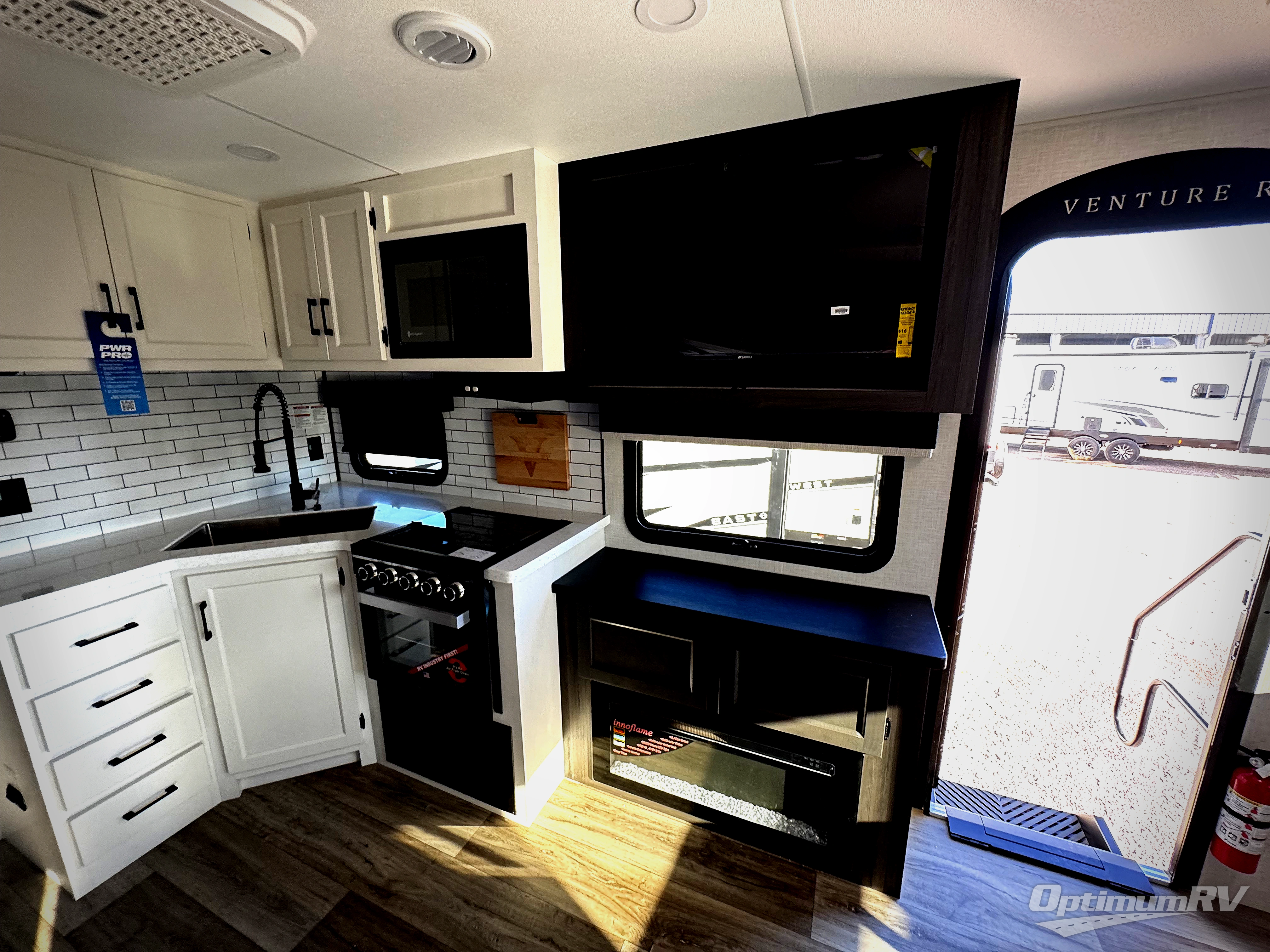 An elegant design and new features come with every one of these Venture RV SportTrek Touring Edition travel trailers! The NXG Huck bolt frame holds these units together and a walkable roof covers them. Heads will turn down the highway and at the campsite with an upgraded graphics package and a painted fiberglass front cap with integrated LED light. The exterior pass-through storage area has slam latch baggage doors with magnetic catches so you don't have to worry about them closing on you and a motion activated light to see your items clearly even at night. Luxury abounds throughout these units, especially with the mandatory Interior Luxury package which comes with solid surface kitchen countertops, designer valances with fabric nightshades, and Beauflor wood plank flooring that is easy to clean. Come find your favorite model today!