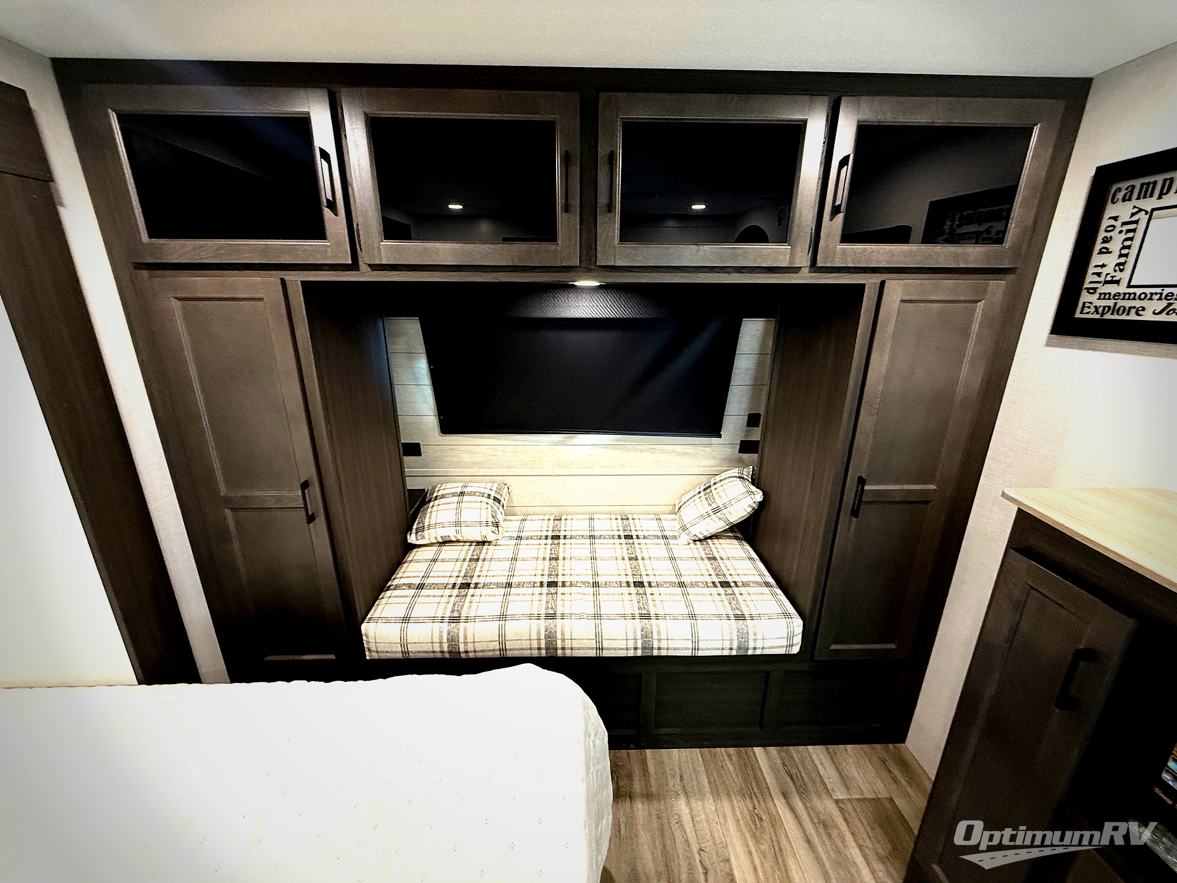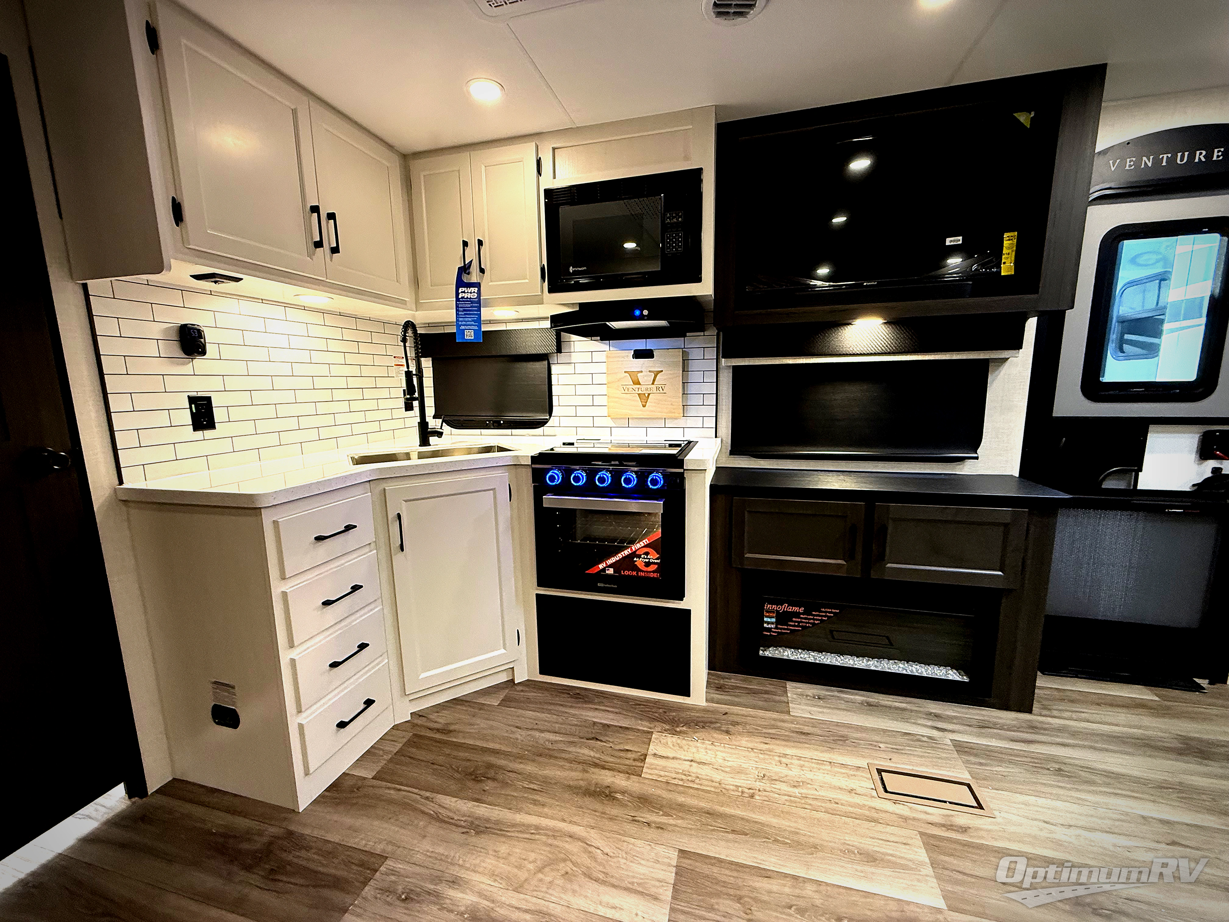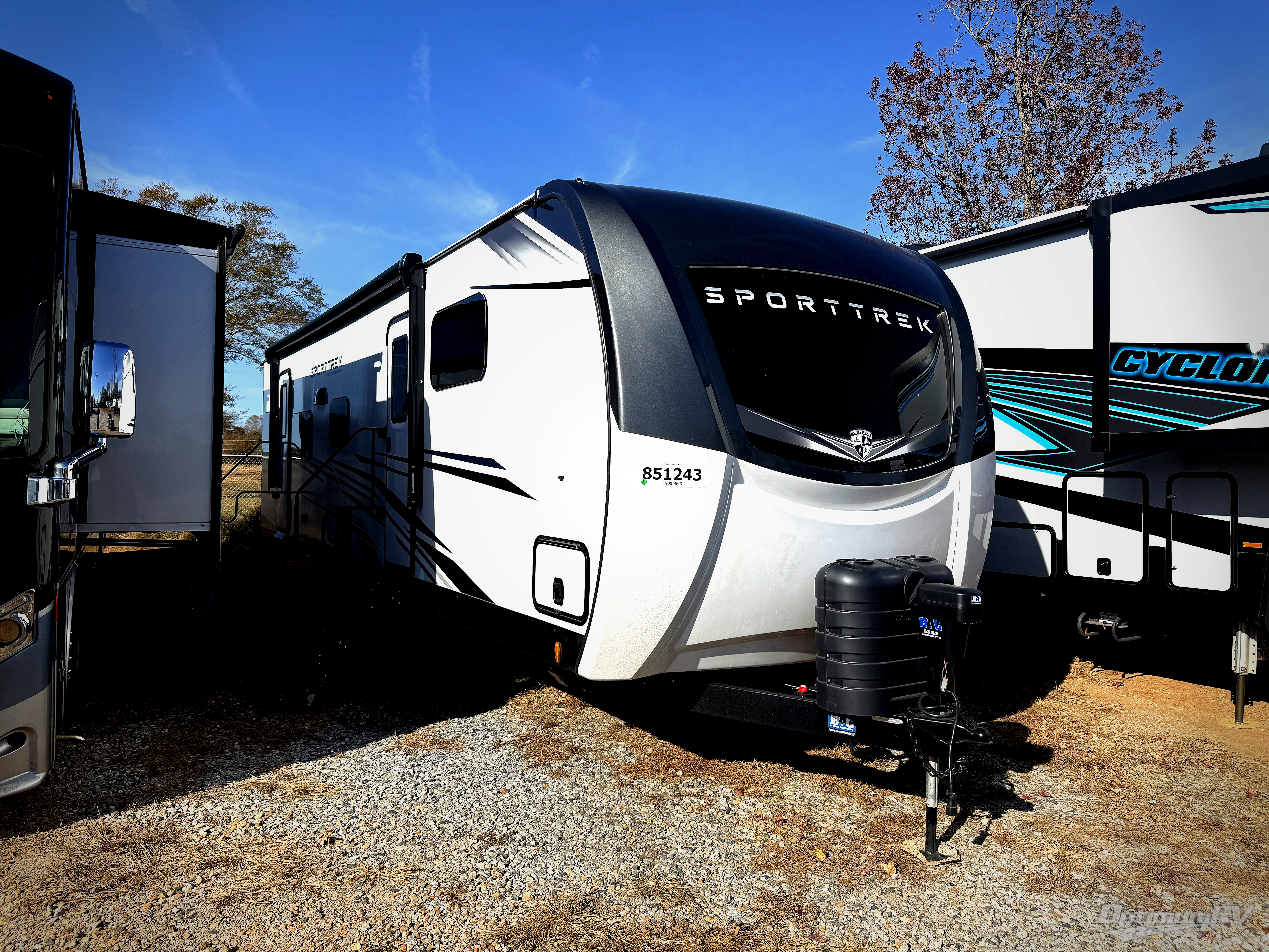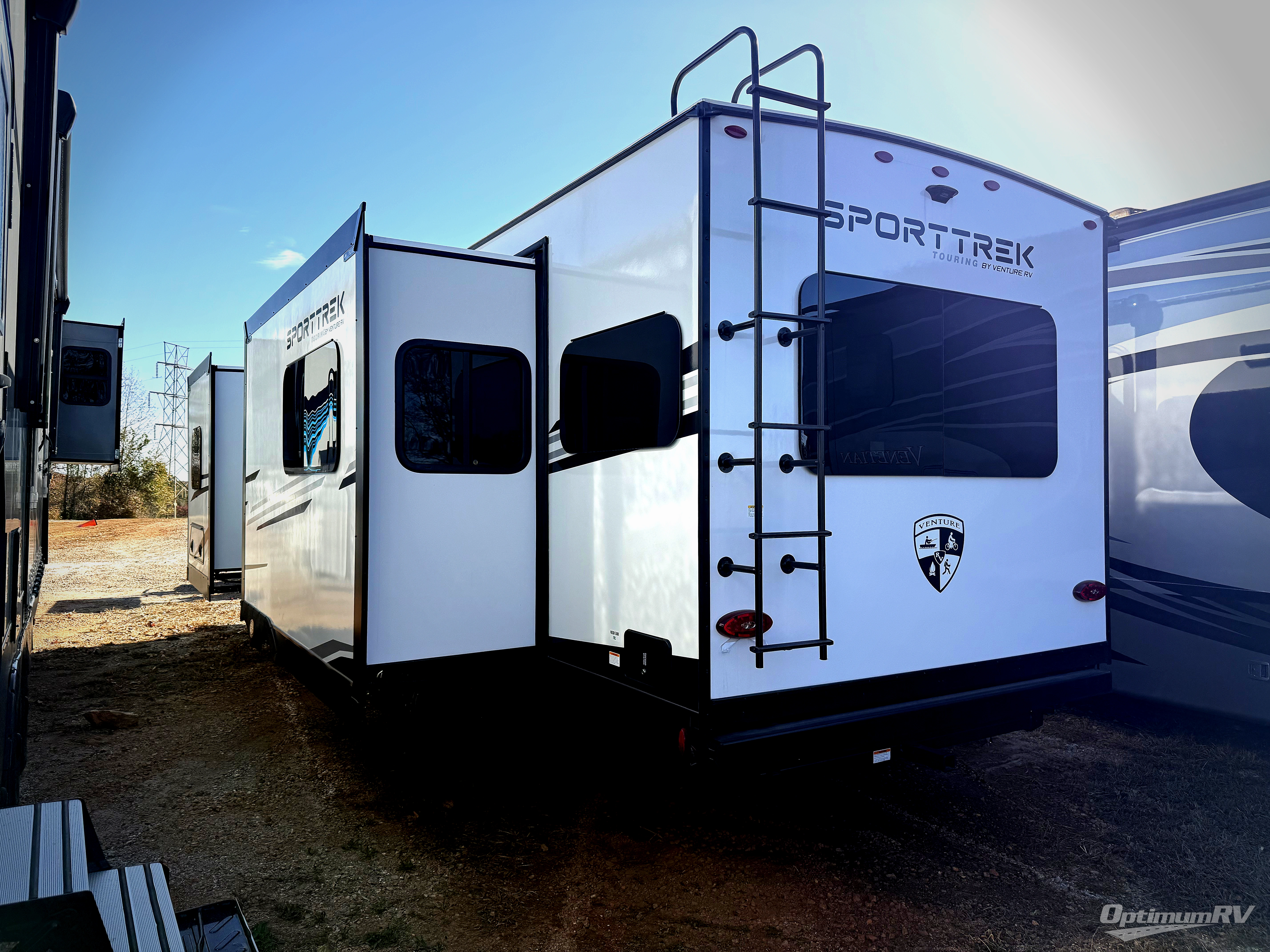 An elegant design and new features come with every one of these Venture RV SportTrek Touring Edition travel trailers! The NXG Huck bolt frame holds these units together and a walkable roof covers them. Heads will turn down the highway and at the campsite with an upgraded graphics package and a painted fiberglass front cap with integrated LED light. The exterior pass-through storage area has slam latch baggage doors with magnetic catches so you don't have to worry about them closing on you and a motion activated light to see your items clearly even at night. Luxury abounds throughout these units, especially with the mandatory Interior Luxury package which comes with solid surface kitchen countertops, designer valances with fabric nightshades, and Beauflor wood plank flooring that is easy to clean. Come find your favorite model today!