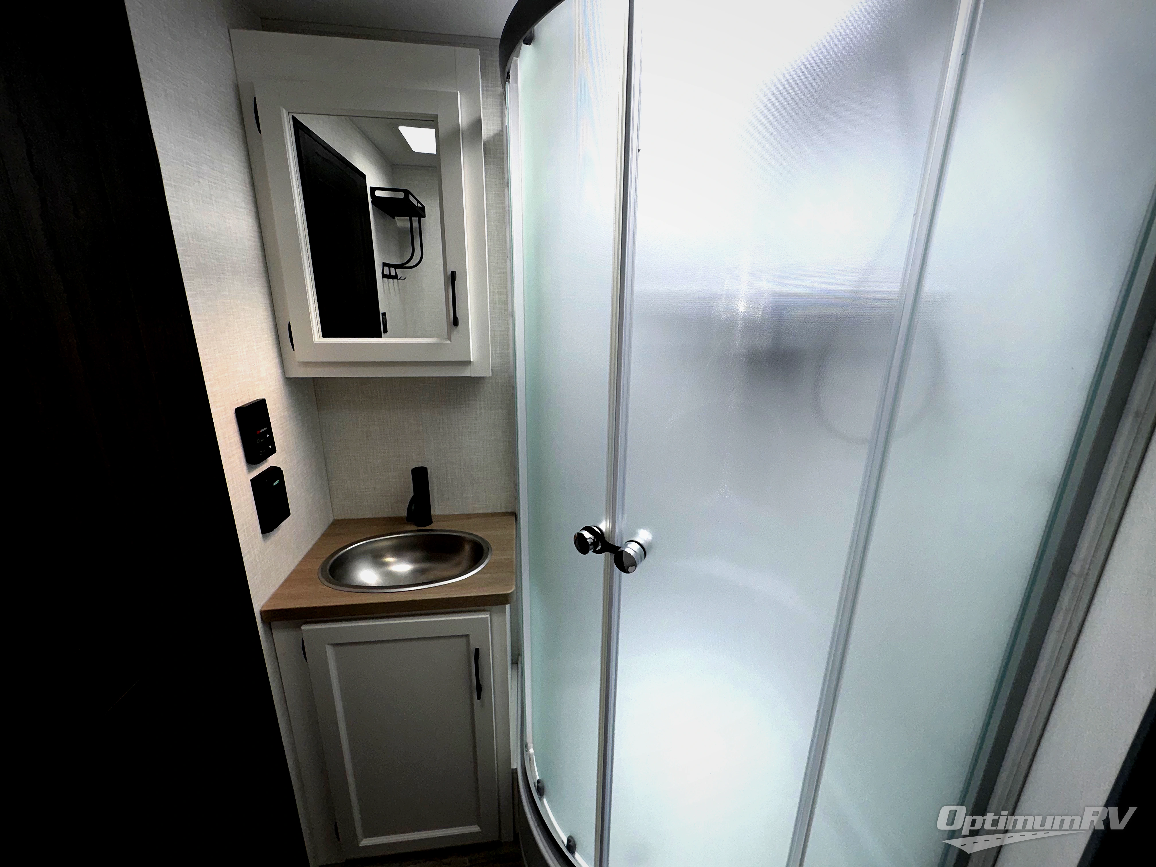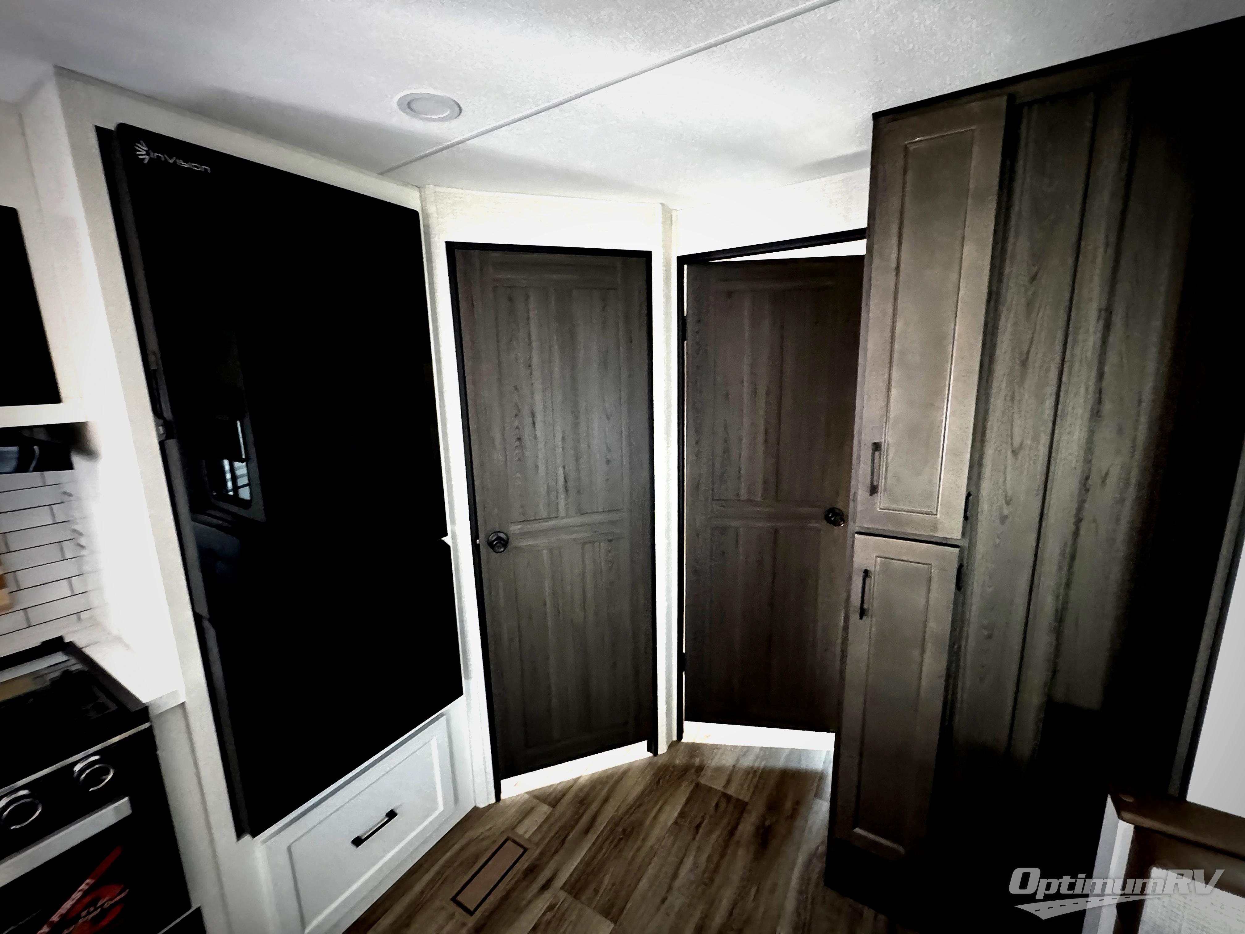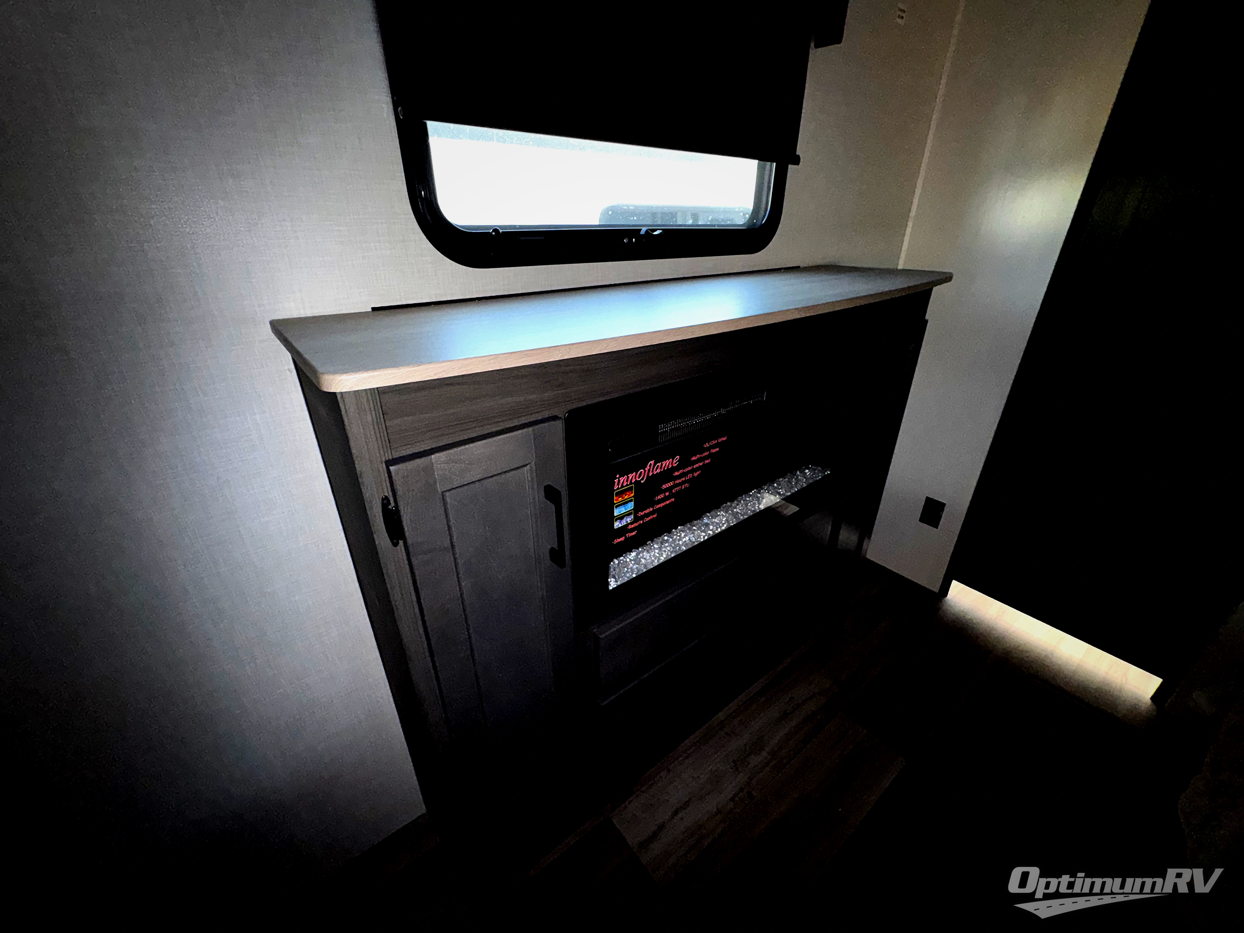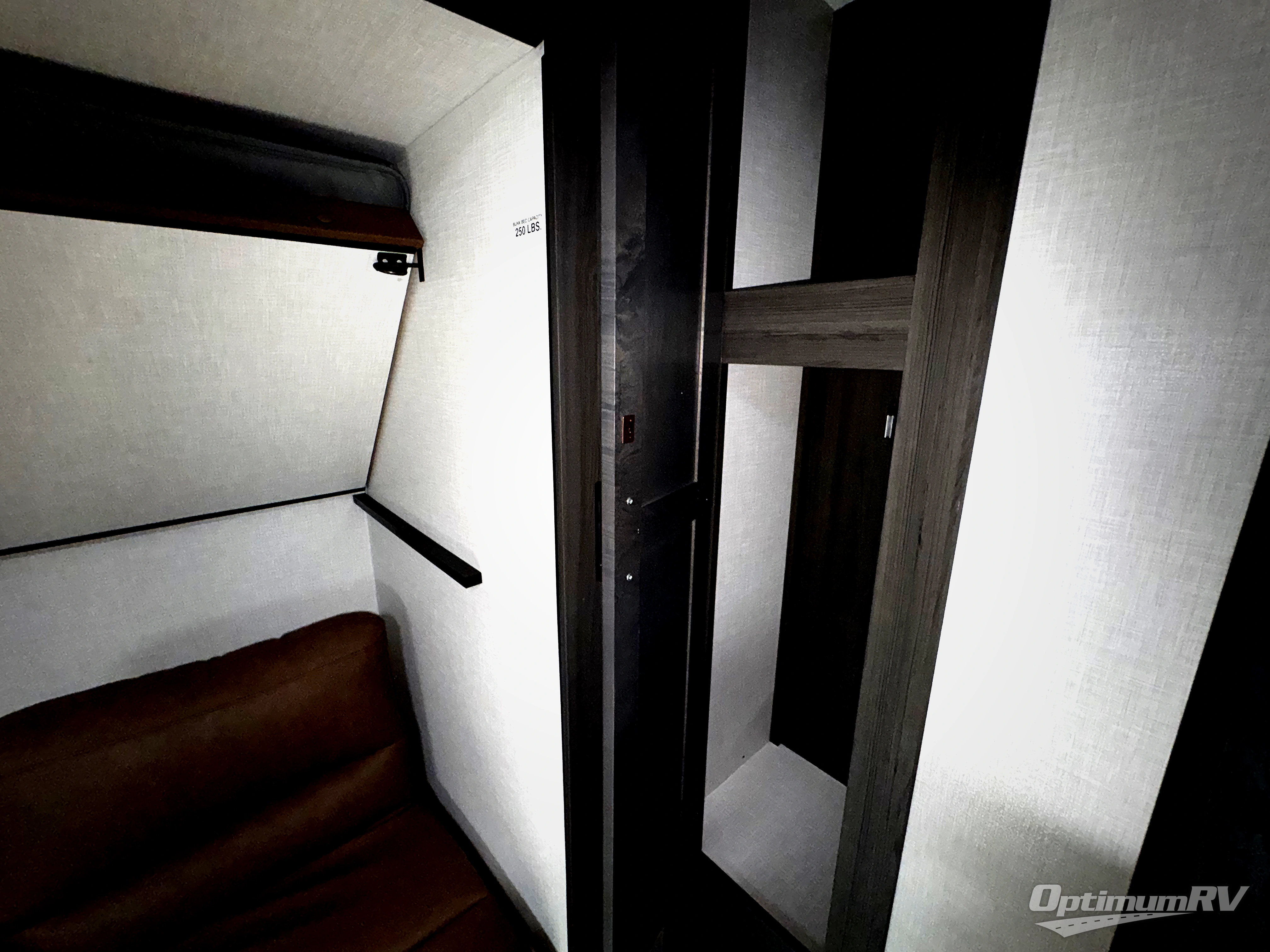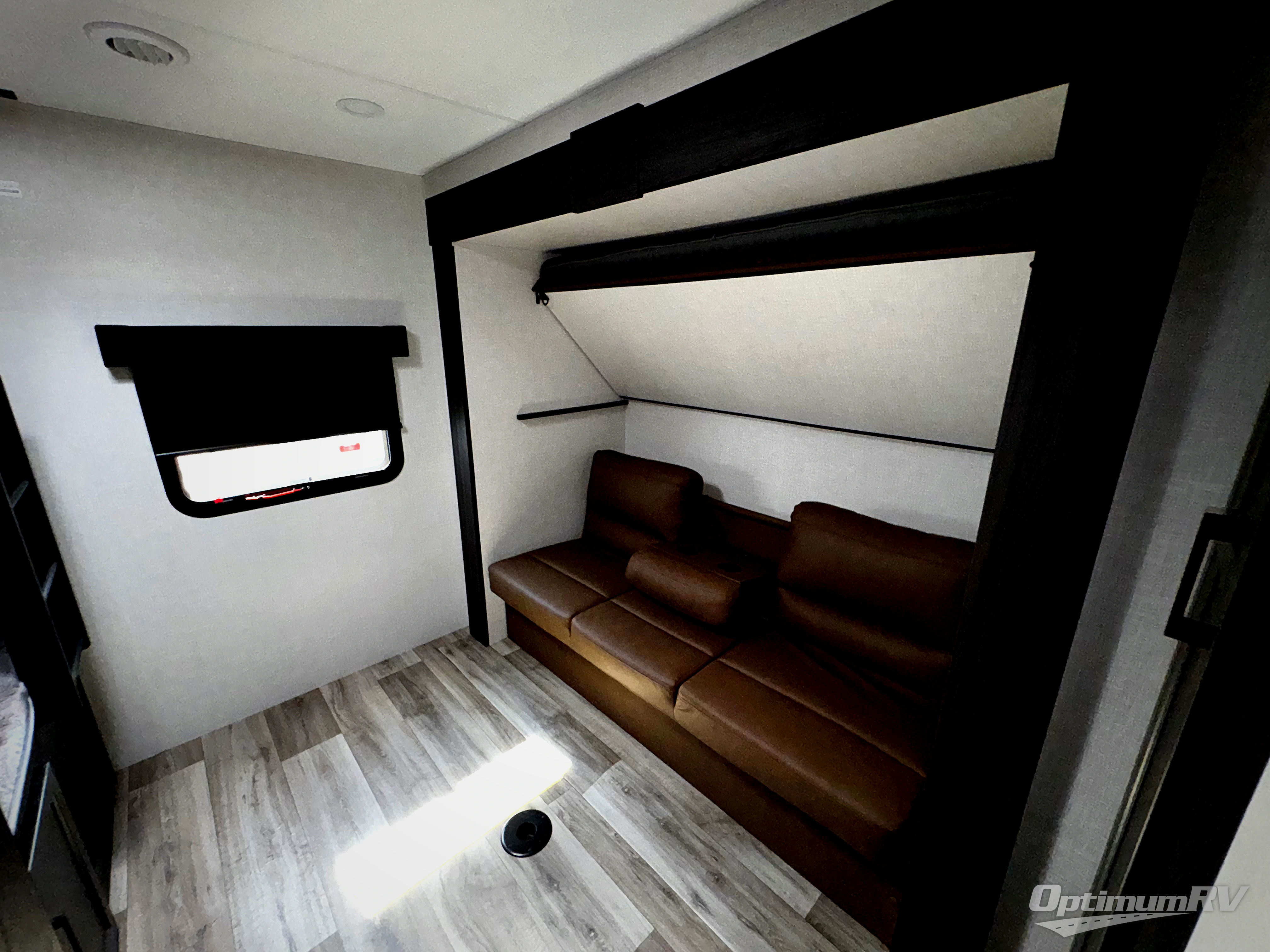 The whole family can camp together in this travel trailer! It features a rear private bunkhouse with a 28" x 70" top bunk above a 40" x 70" bottom bunk, a closet, and a 28" x 73" flip up top bunk above a 70" sofa with table slide. One of the dual entry doors leads directly into the half bathroom with fold-out aluminum steps so you can get back to having fun faster. The chef can prepare their best meals for the crew either indoors with the three burner cooktop or at the exterior campfire café with a 40" TV/DVD/speakers to entertain them while they cook. Everyone can gather together at the Sit N' Slide table and 70" tri-fold sofa across from the entertainment center with a fireplace for a cozy evening. The dual entry bathroom is easy to access, especially for those staying in the front private bedroom. You even have a coat closet next to the main entrance to limit the clutter!