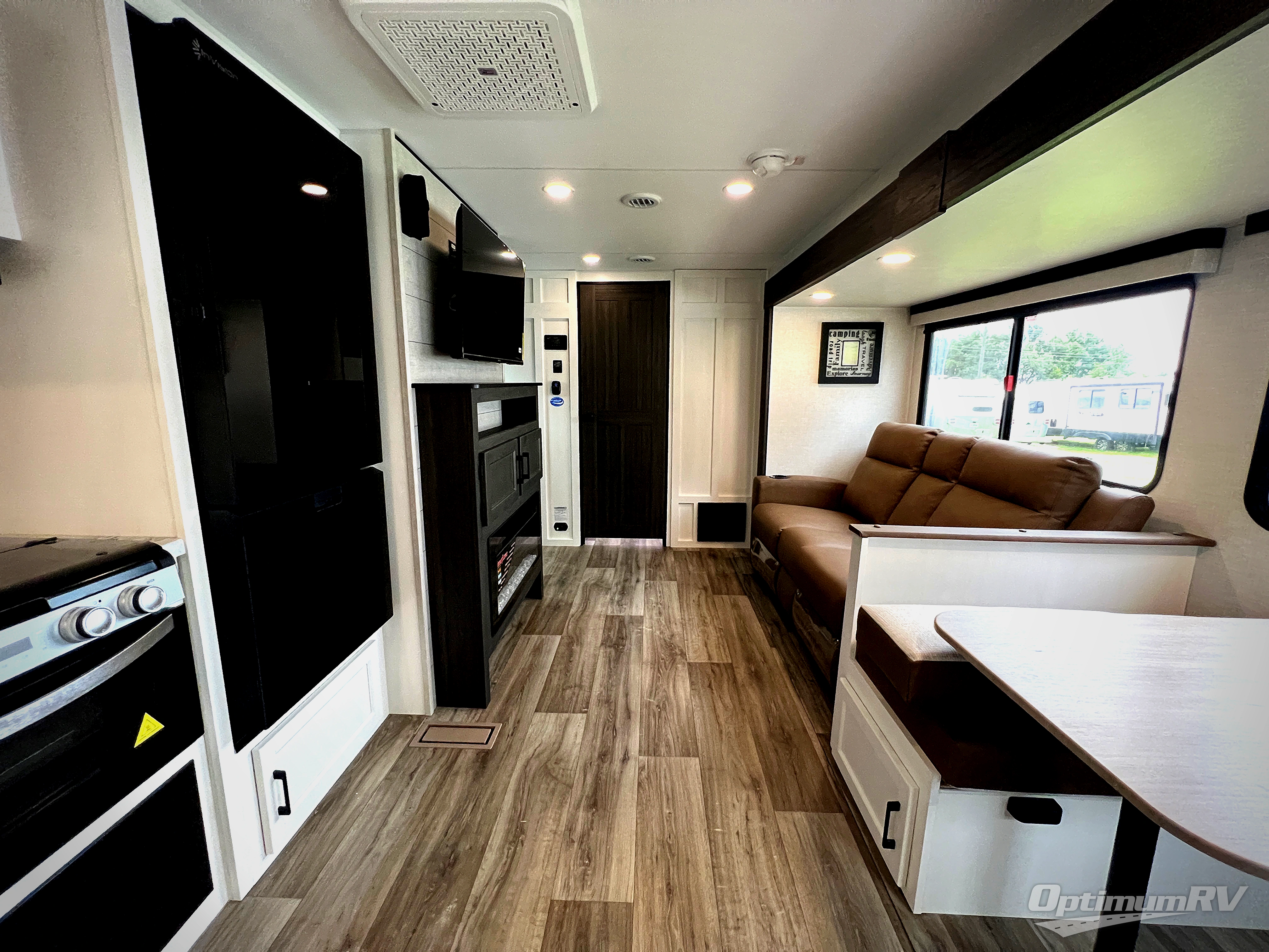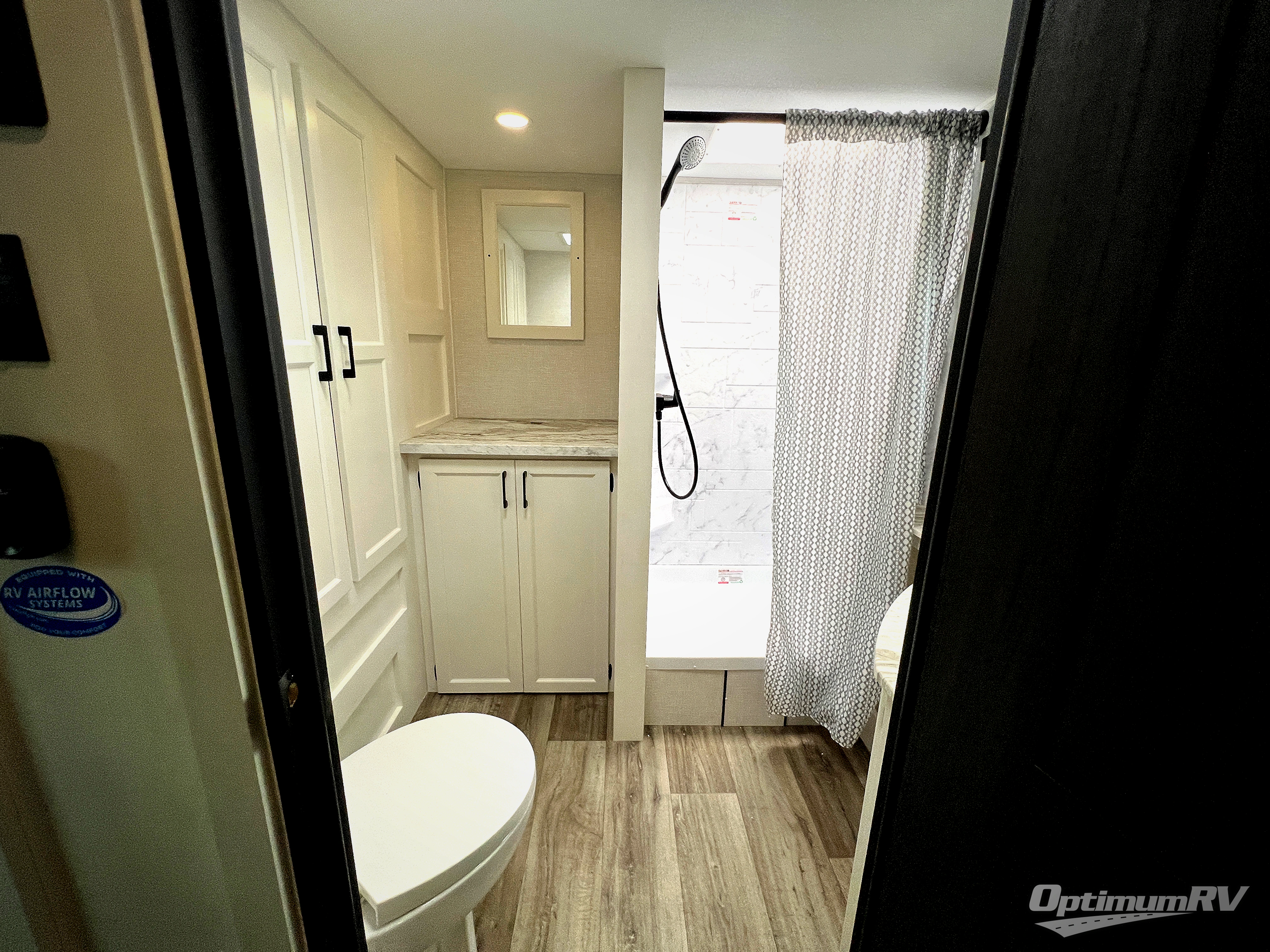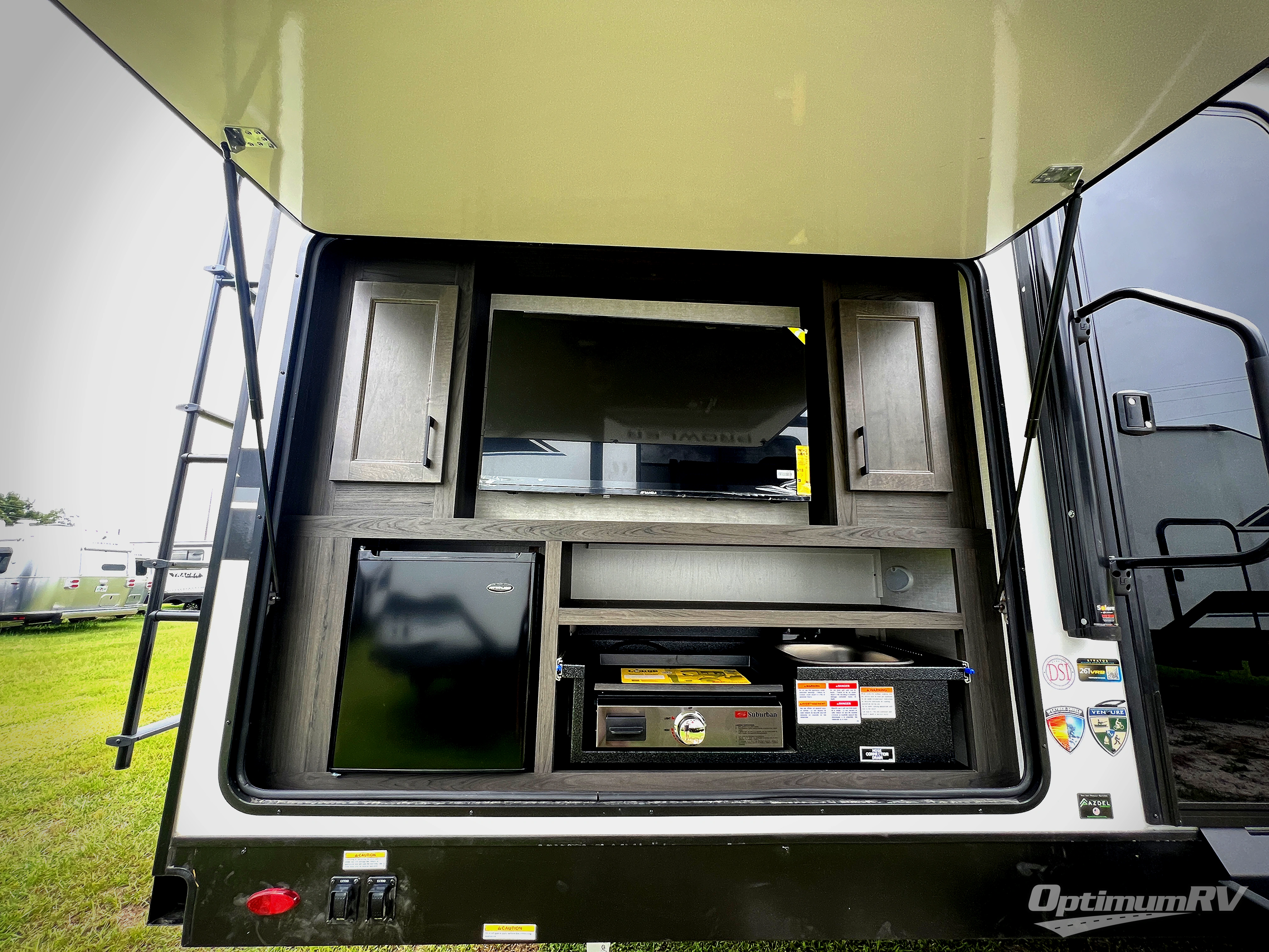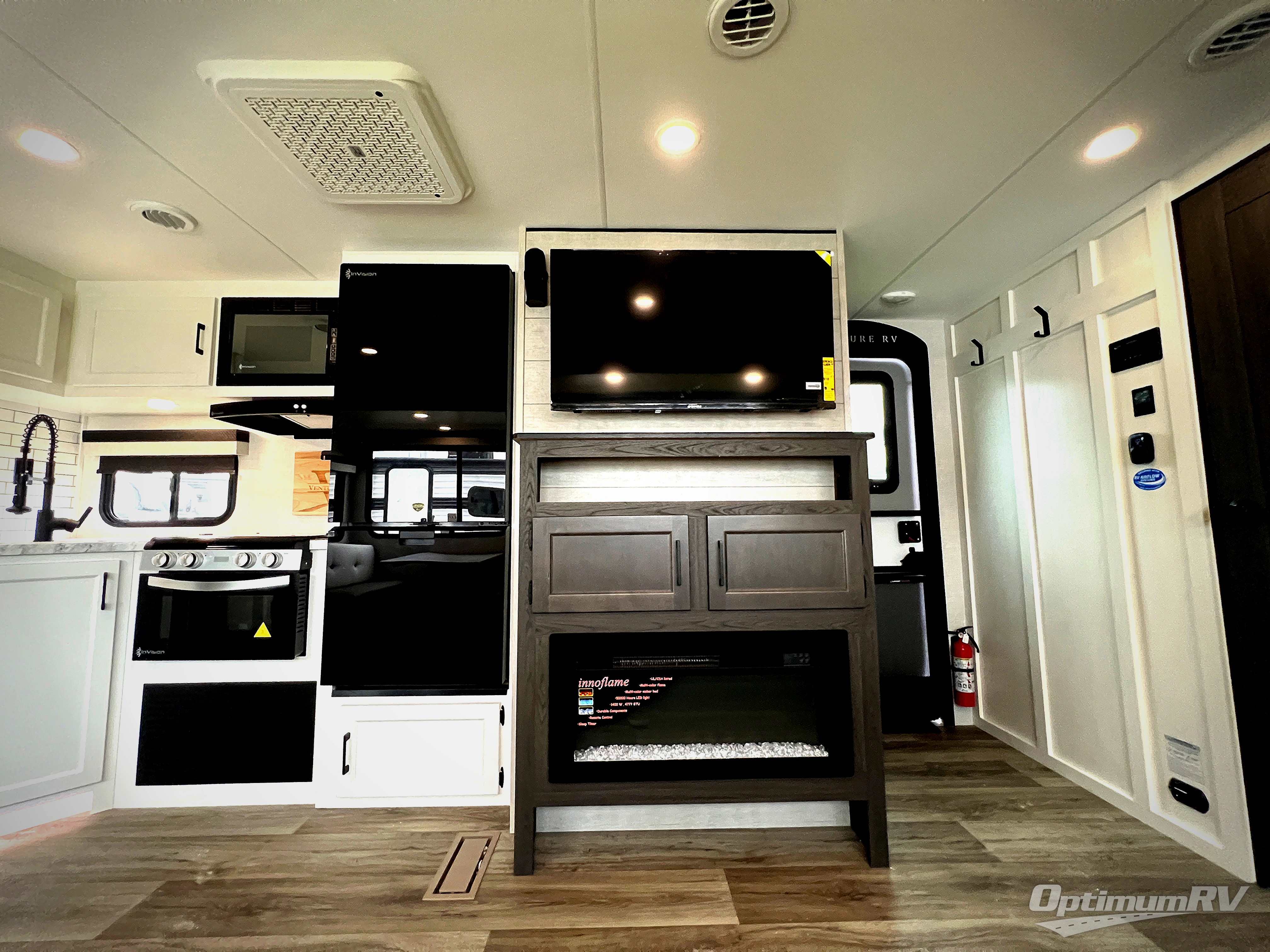 You're going to feel right at home in this Stratus single slide unit! There is not only a fully equipped kitchen with a three burner cooktop, but also an outside campfire café with a griddle, refrigerator, sink, and even an exterior 40" TV for your entertainment. As you enter the unit, you will notice to the right a walk-in pantry with coat hooks, and to the left is the full rear bathroom with a 30" x 36" shower, a three door linen closet, and a cabinet prepped to add an optional washer and dryer. If mother nature rains on your parade then relax inside on either the 70" sofa or the sit n' slide table dinette across from the entertainment center.