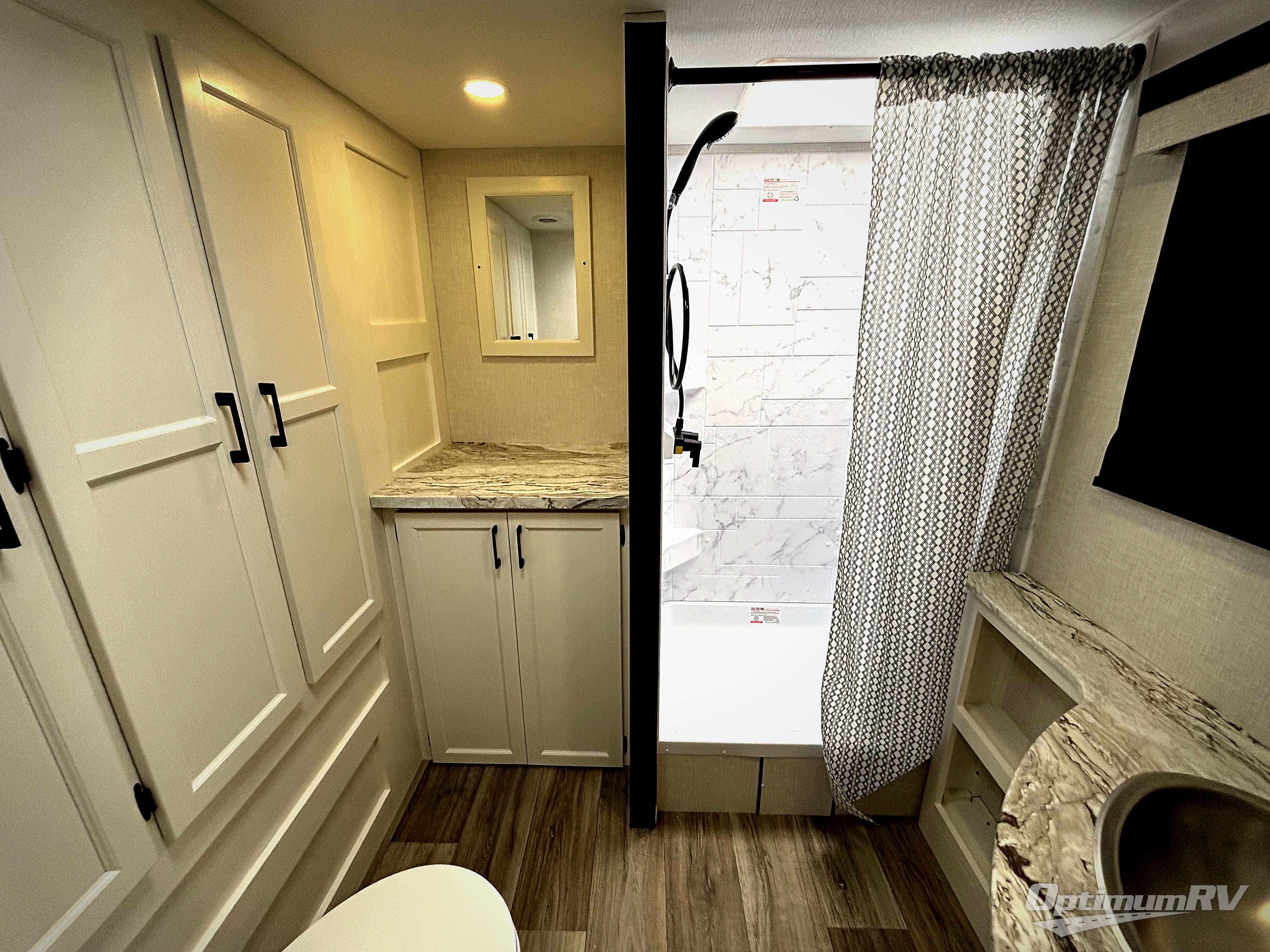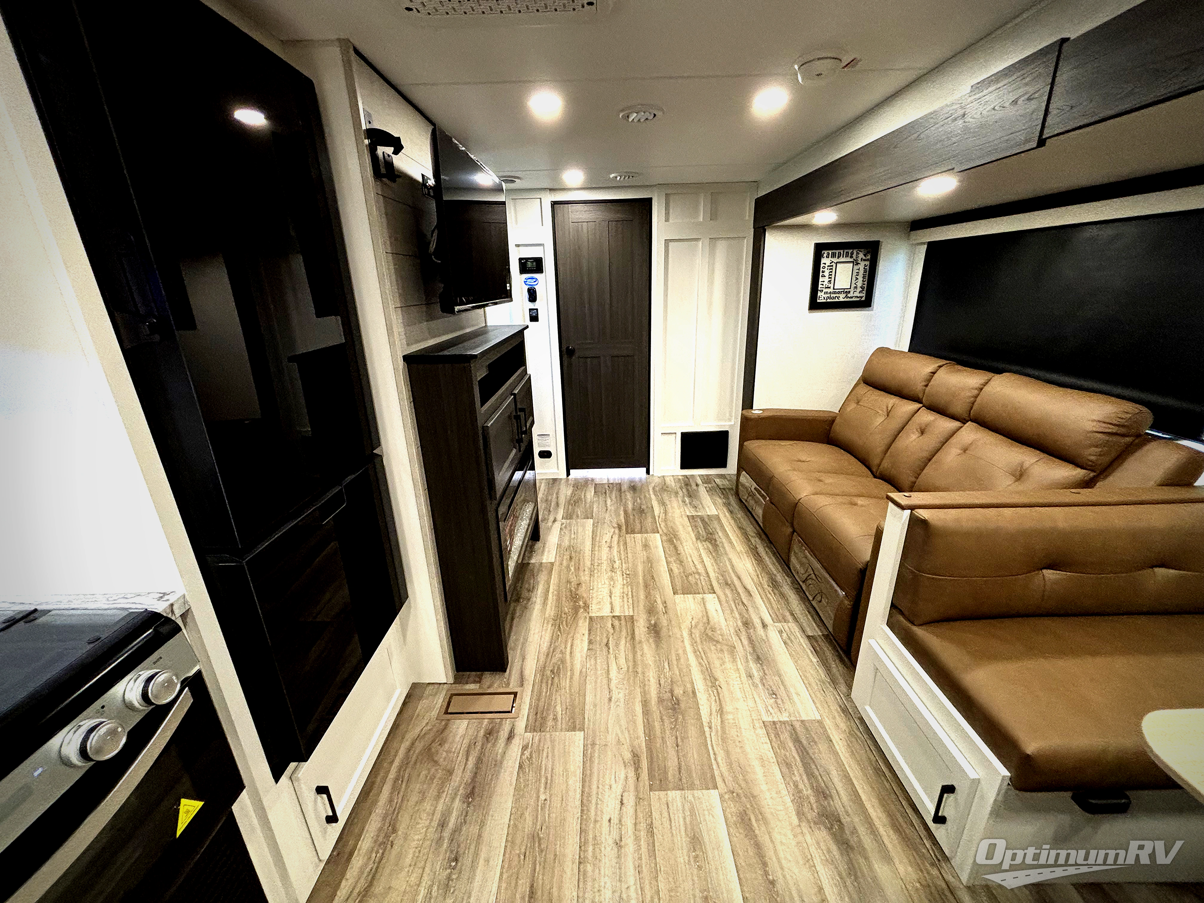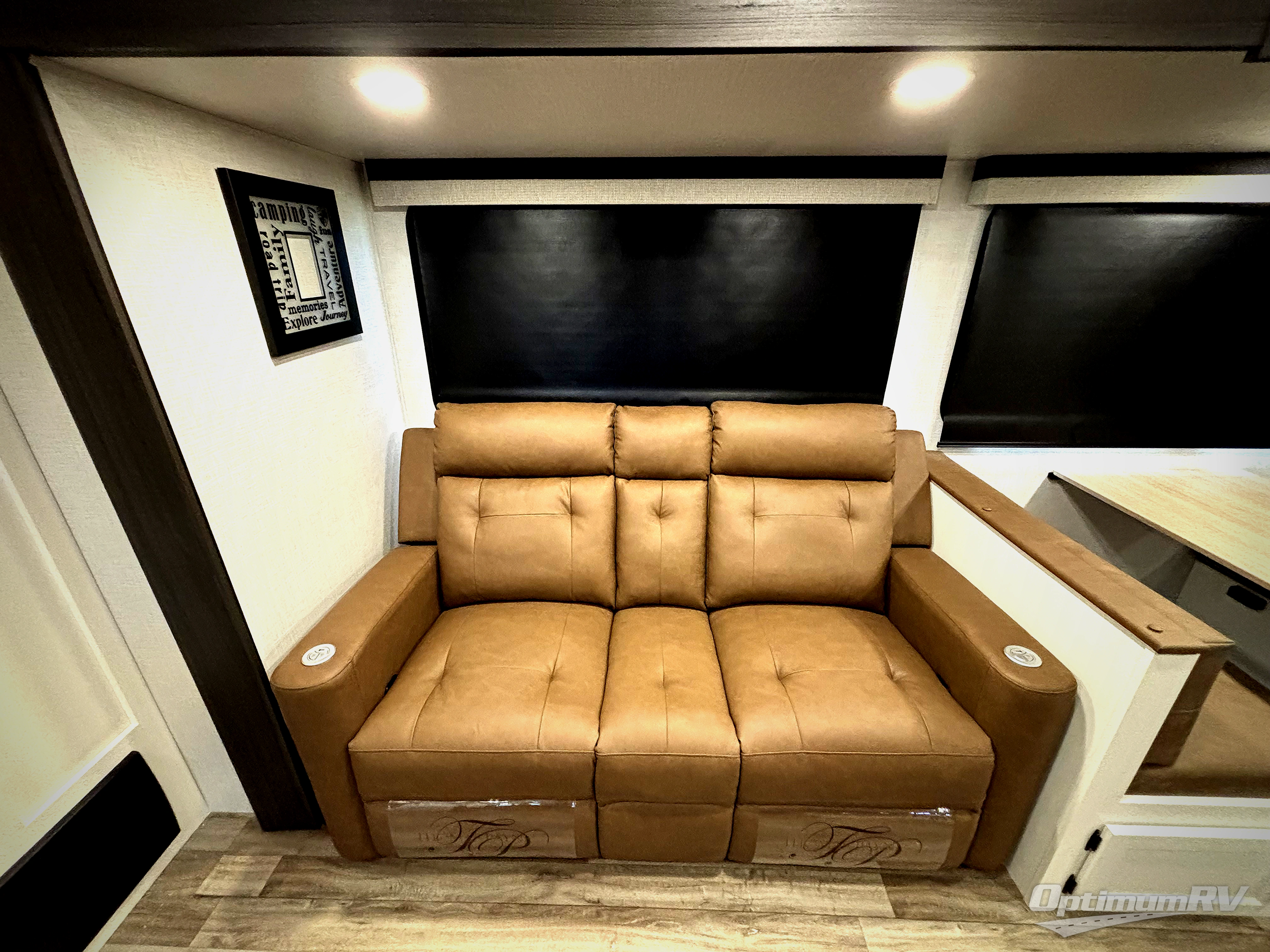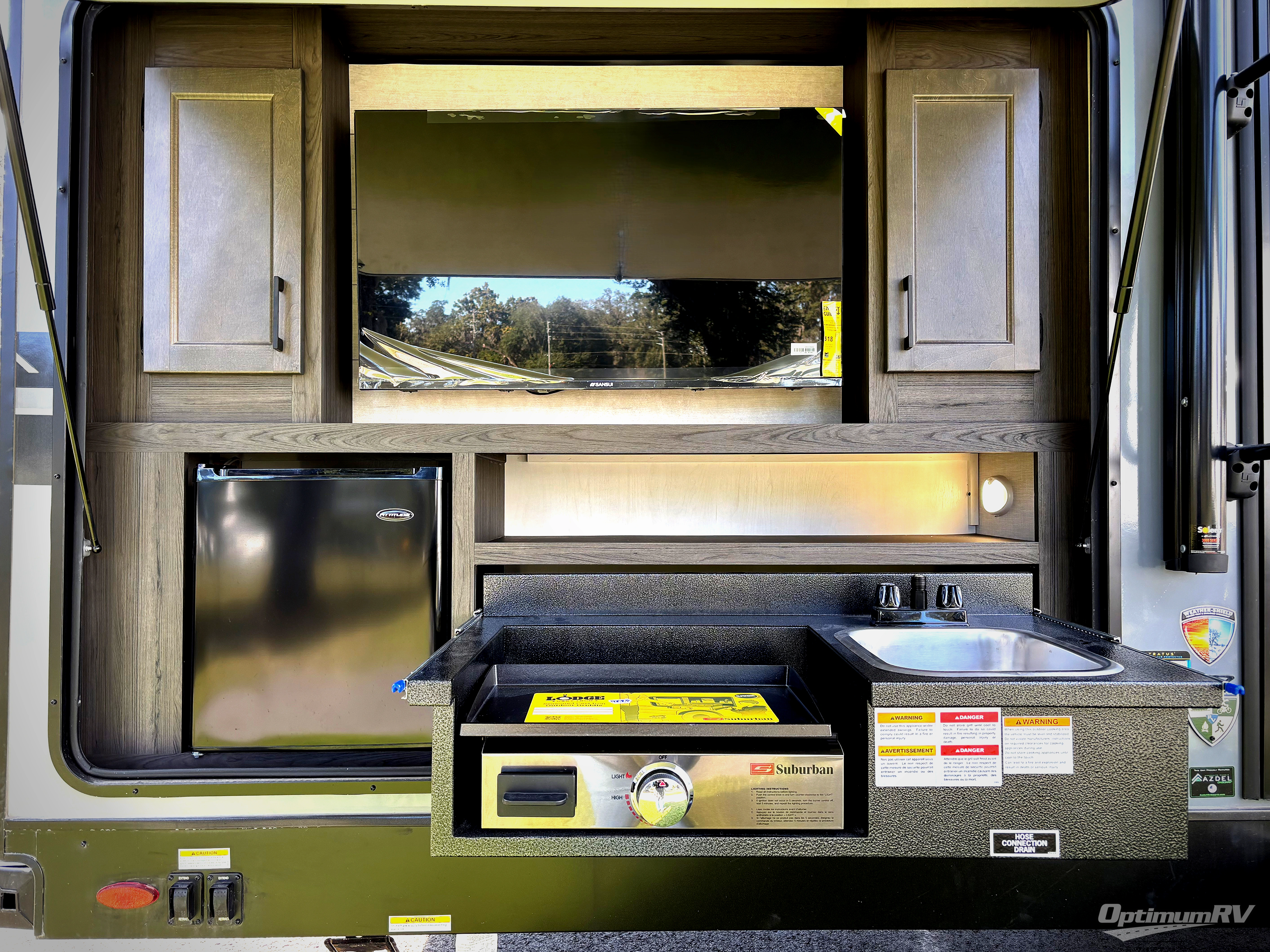 You're going to feel right at home in this Stratus single slide unit! There is not only a fully equipped kitchen with a three burner cooktop, but also an outside campfire café with a griddle, refrigerator, sink, and even an exterior 40" TV for your entertainment. As you enter the unit, you will notice to the right a walk-in pantry with coat hooks, and to the left is the full rear bathroom with a 30" x 36" shower, a three door linen closet, and a cabinet prepped to add an optional washer and dryer. If mother nature rains on your parade then relax inside on either the 70" sofa or the sit n' slide table dinette across from the entertainment center.