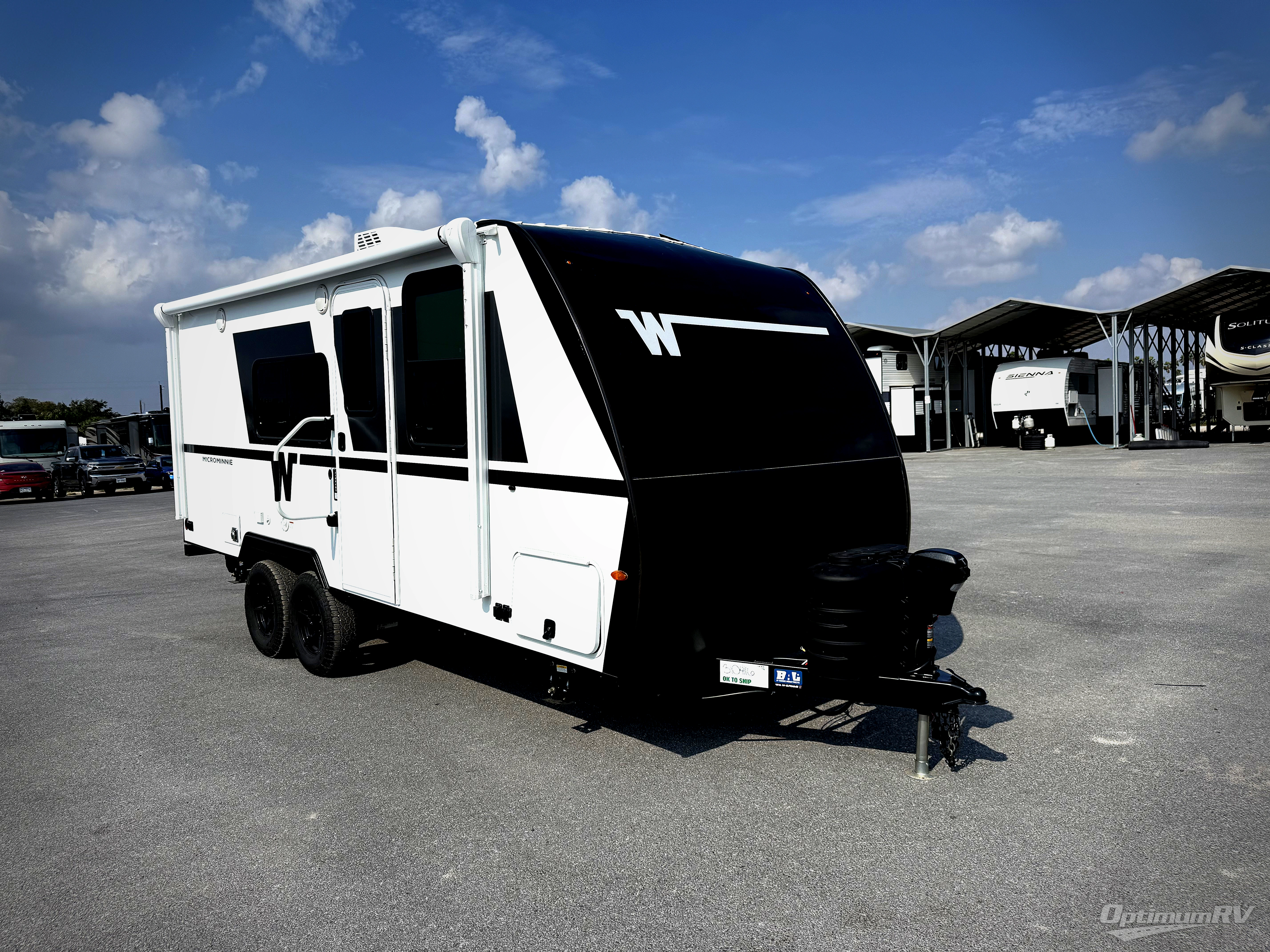 Start out on your boundless journey in one of these Winnebago Micro Minnie travel trailers! Towing is made simple with the 7' width to keep your Micro Minnie in your rear-view mirror. They don't lack in features either although they are compact in size. The spacious galley including a sink, refrigerator, a cooktop, and even a convection microwave oven allows you to cook without compromise. You will not only enjoy the entertainment found indoors with a Smart TV, a JBL premium sound system and Aura Cube high performance mechless media center, but outdoors you will also enjoy the JBL premium speakers and a power awning with LED lighting. Each model also comes with flexible exterior storage to make packing quick and easy, a 200-watt solar panel for off-grid camping, and Dexter TORFLEX torsion stub axles for smooth towing!
