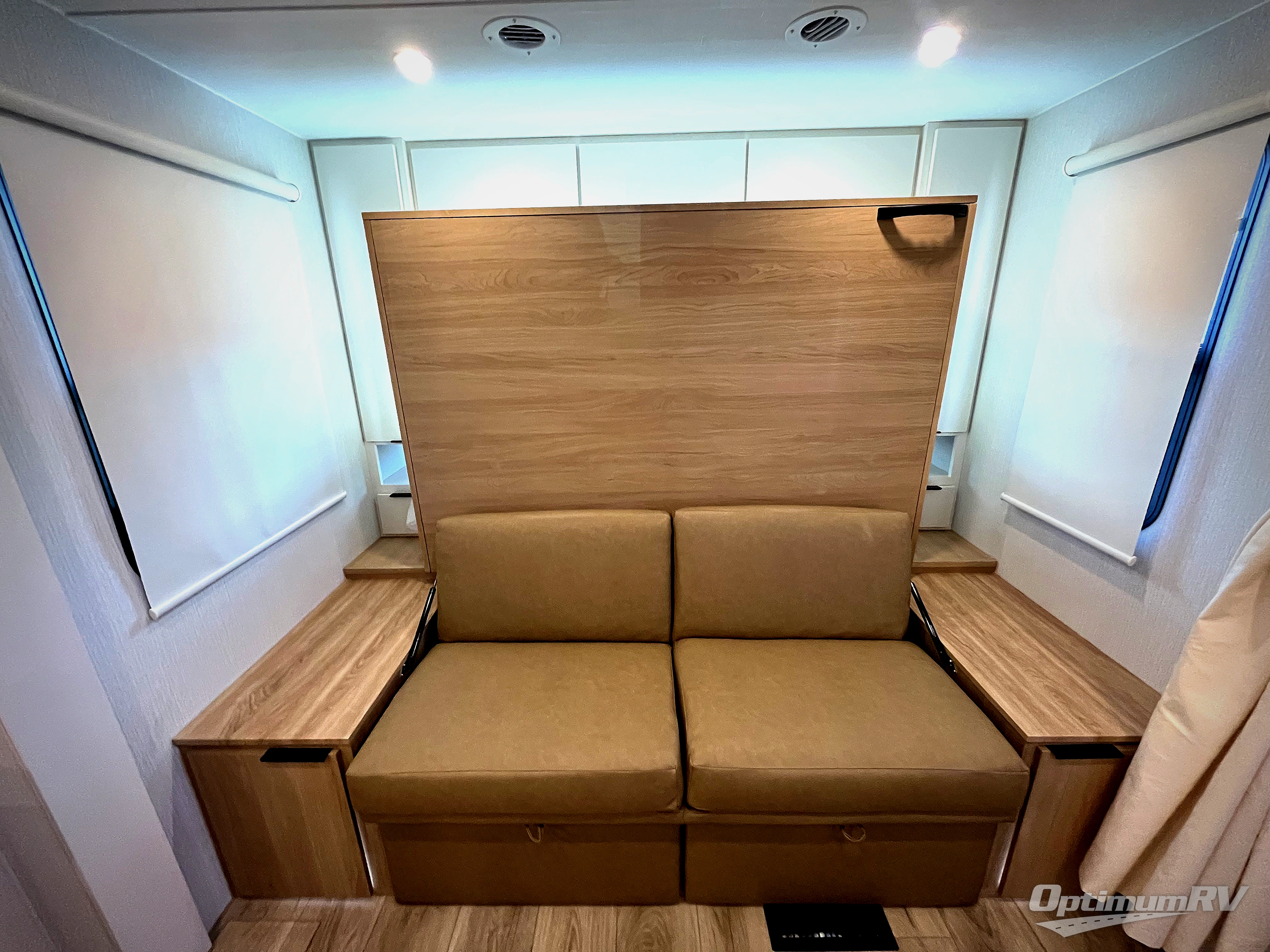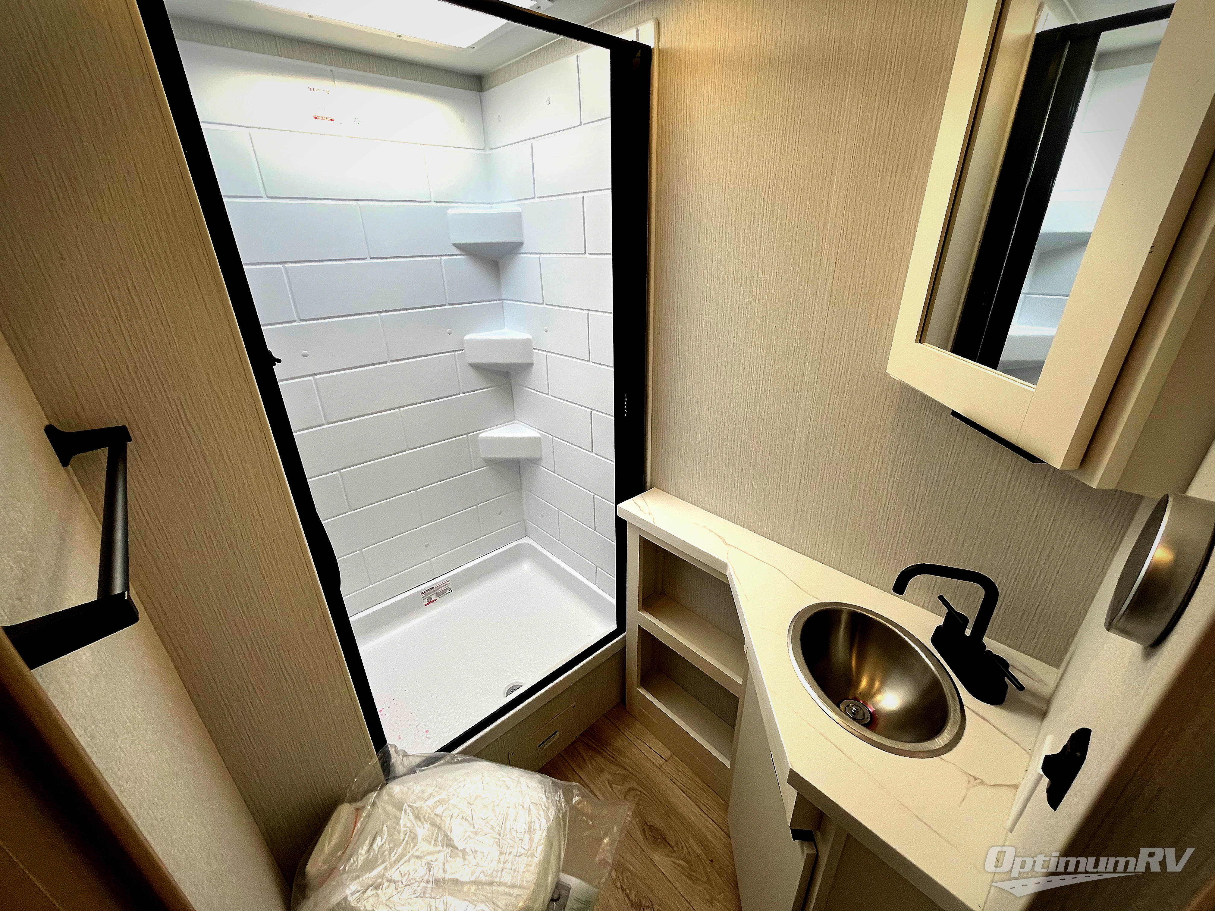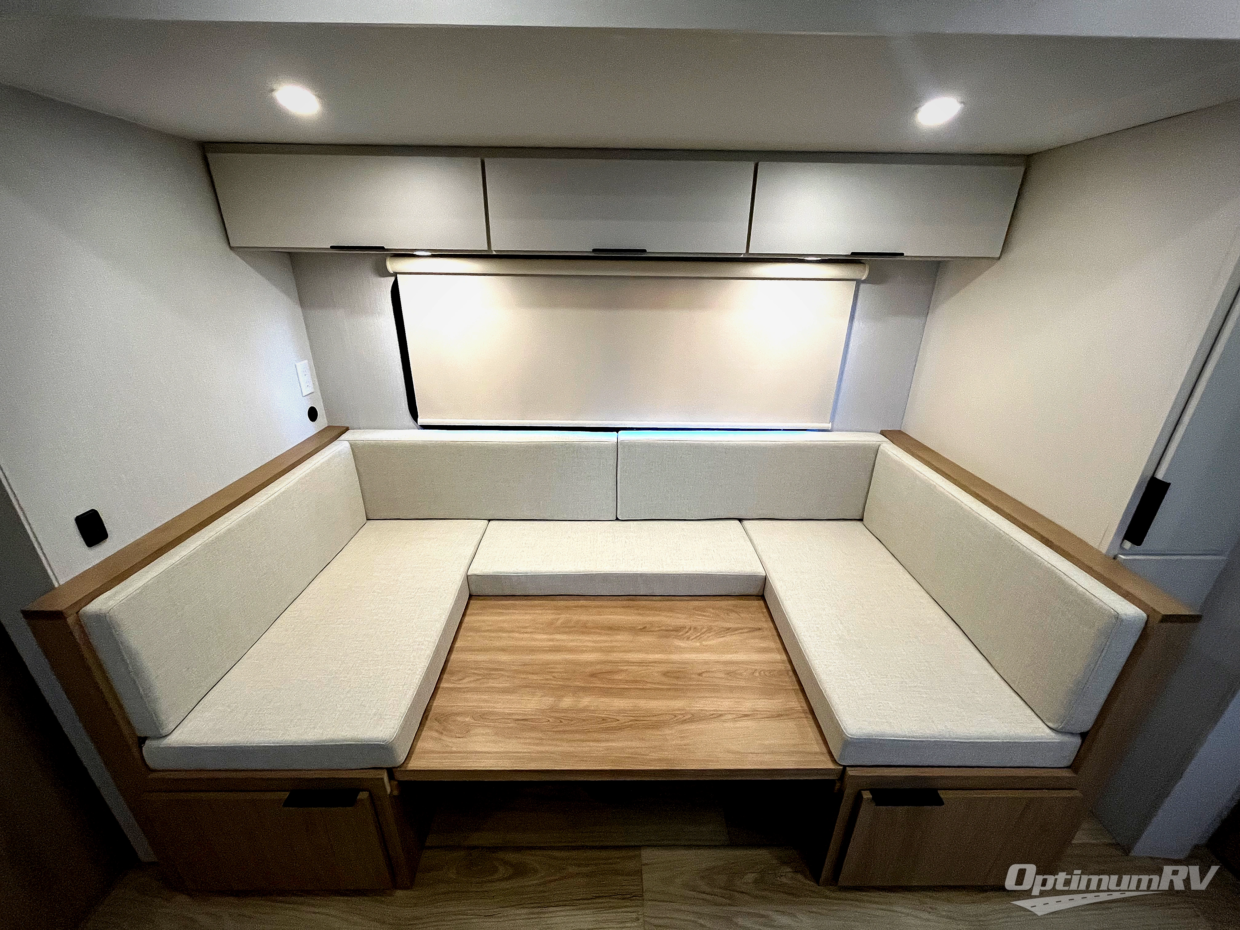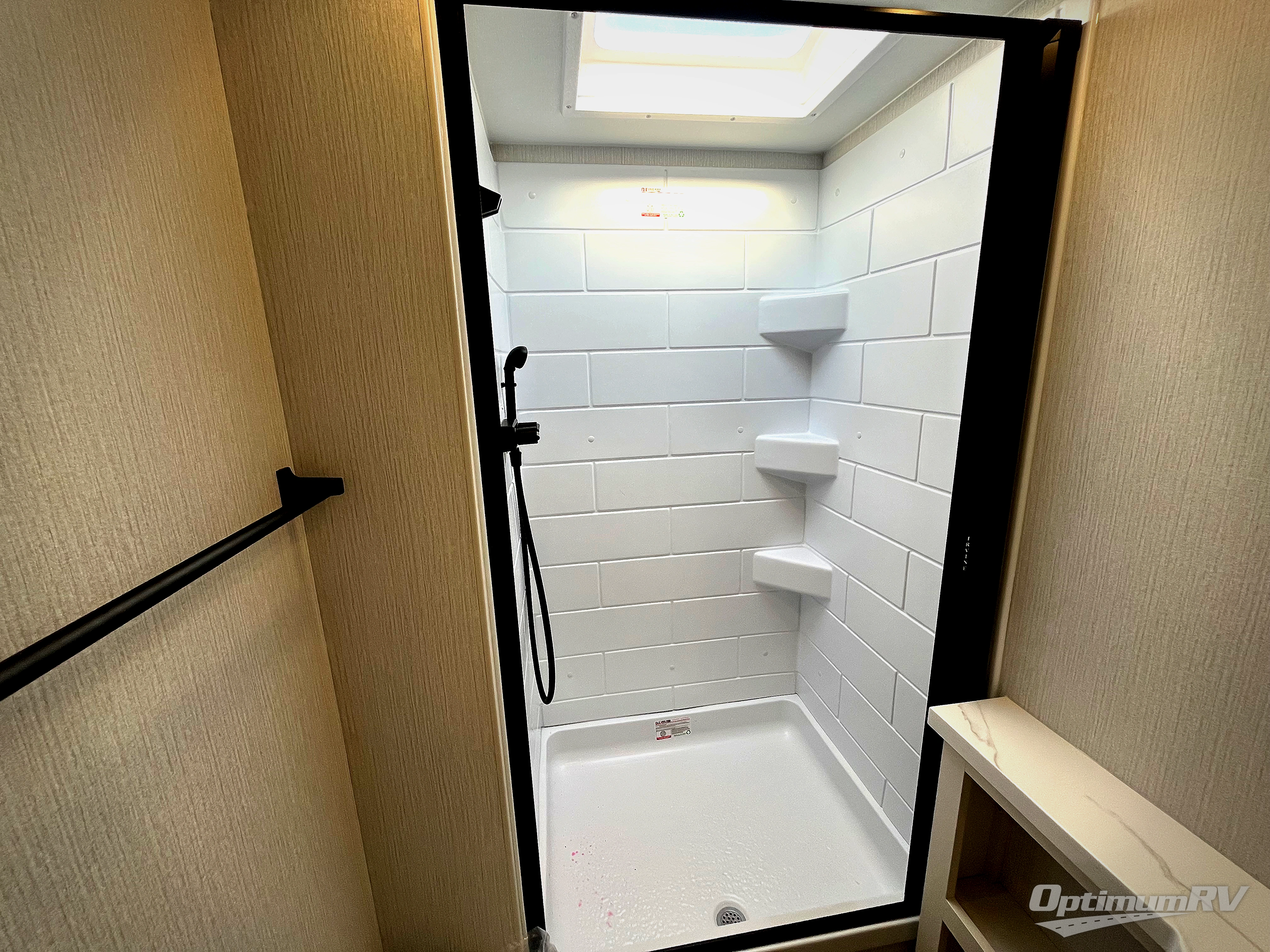 With any Thrive travel trailer by Winnebago, you can camp with functionality, comfort, and convenience! The tinted and frameless front window will be the first thing that catches your eye, and the fiberglass sidewalls with Azdel Onboard provide a durable trailer made to last. There is also an exterior ladder, along with front radius profile lights, power stabilizer jacks, and a powered awning with LED lighting to name a few exterior features. You will stay powered up by the 30-amp power cord and 200-watt solar panel, plus there is a tankless water heater for endless hot showers. Inside, you'll love the custom Winnebago furniture, carpetless side outs, molded fiberglass countertops, and residential recessed ceiling lights to keep your space well lit!