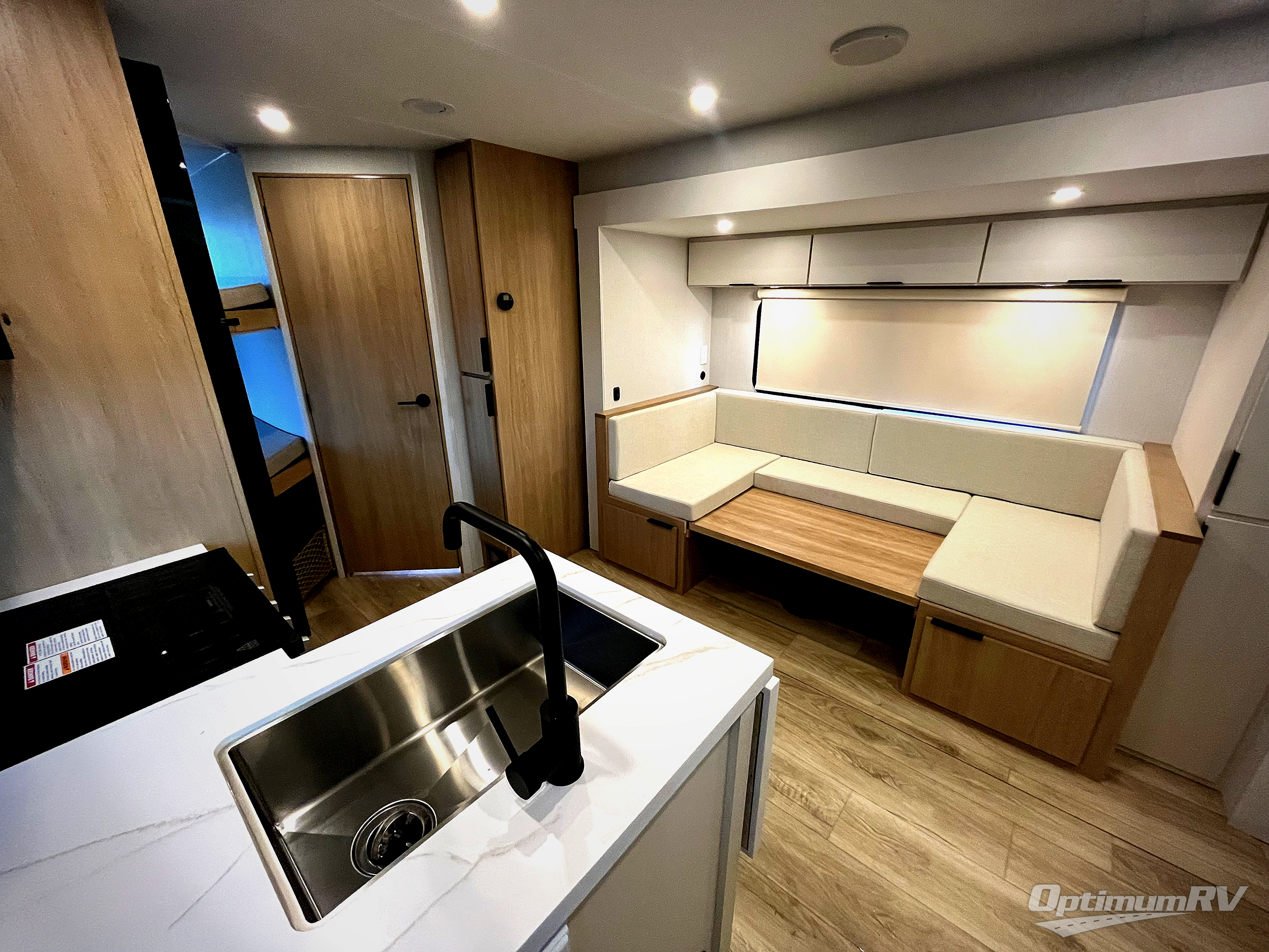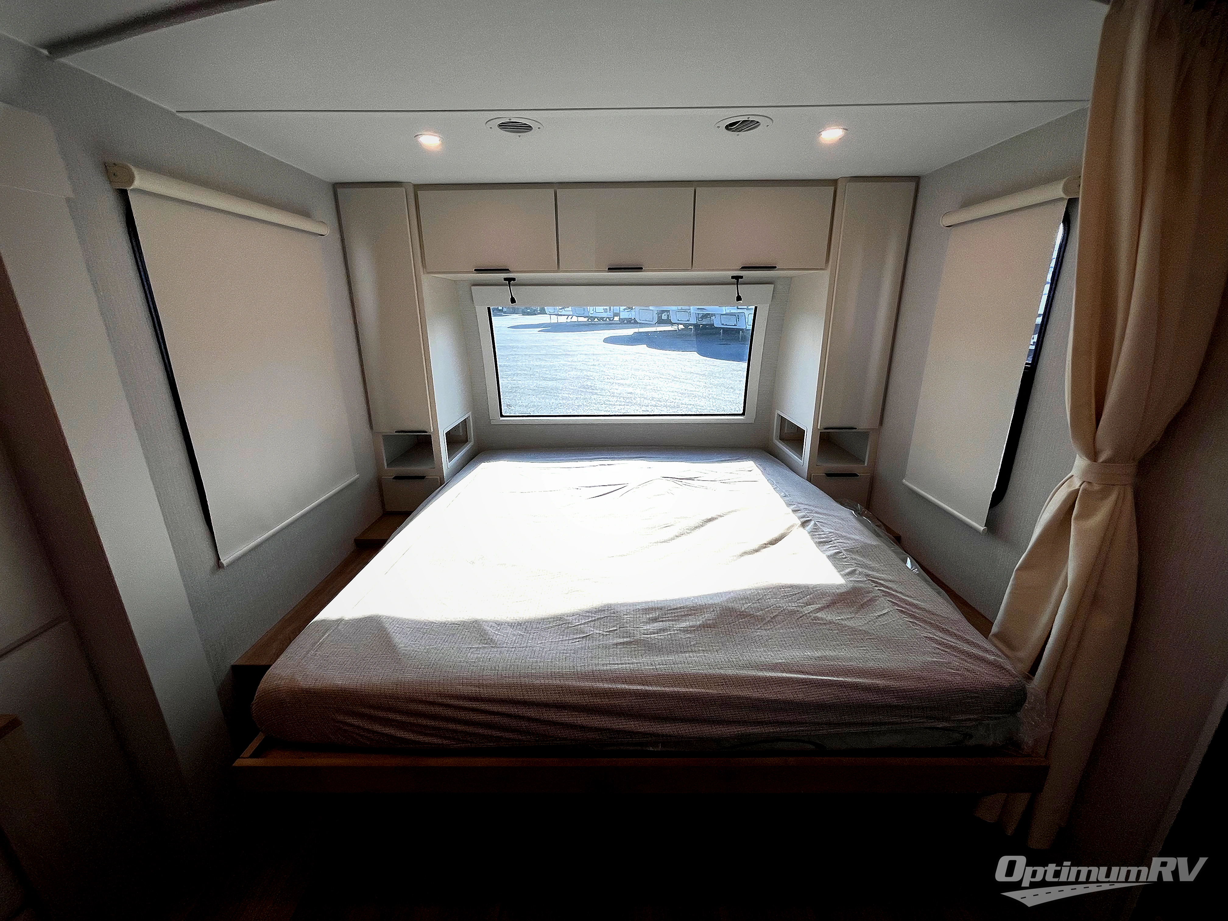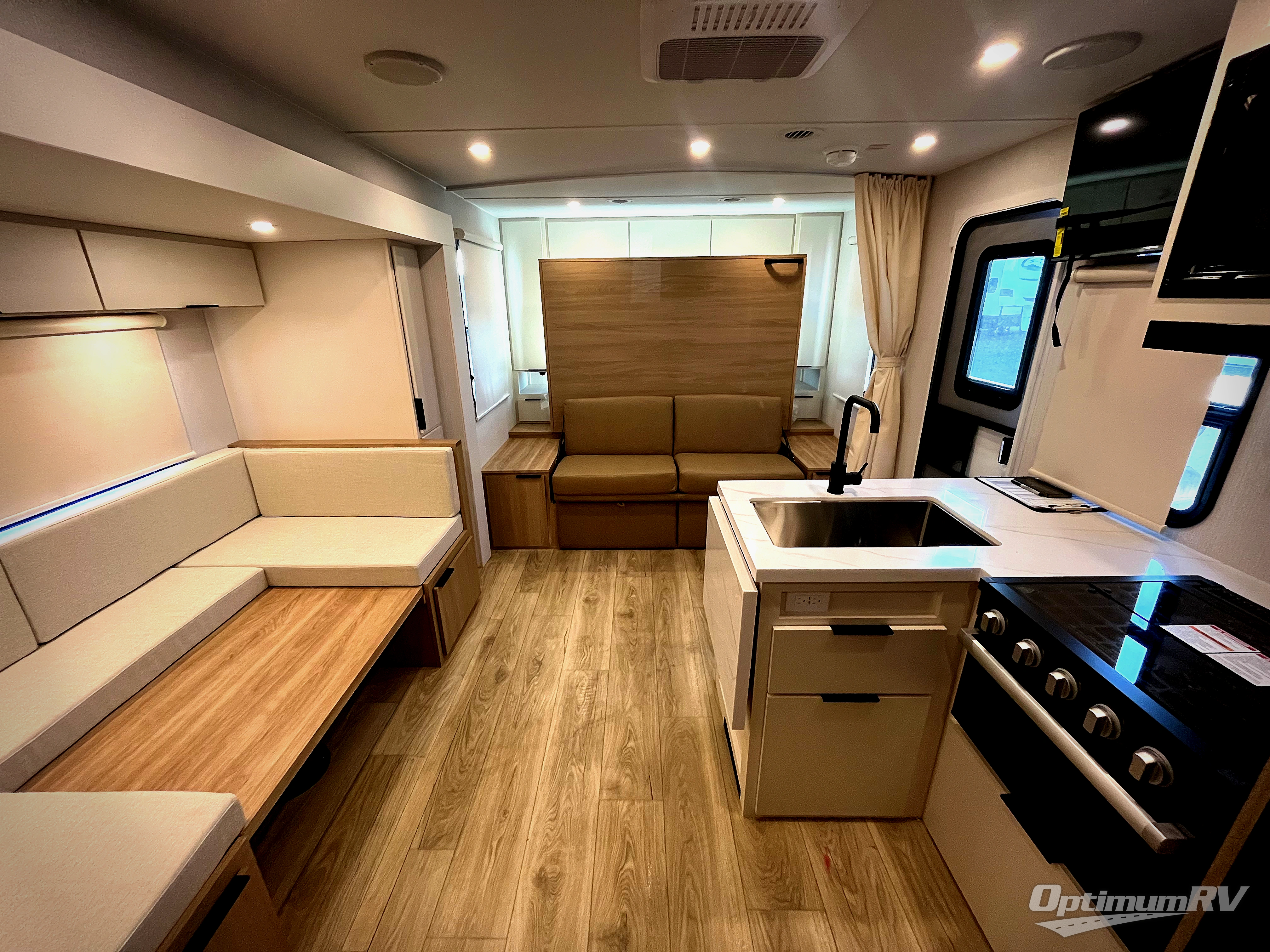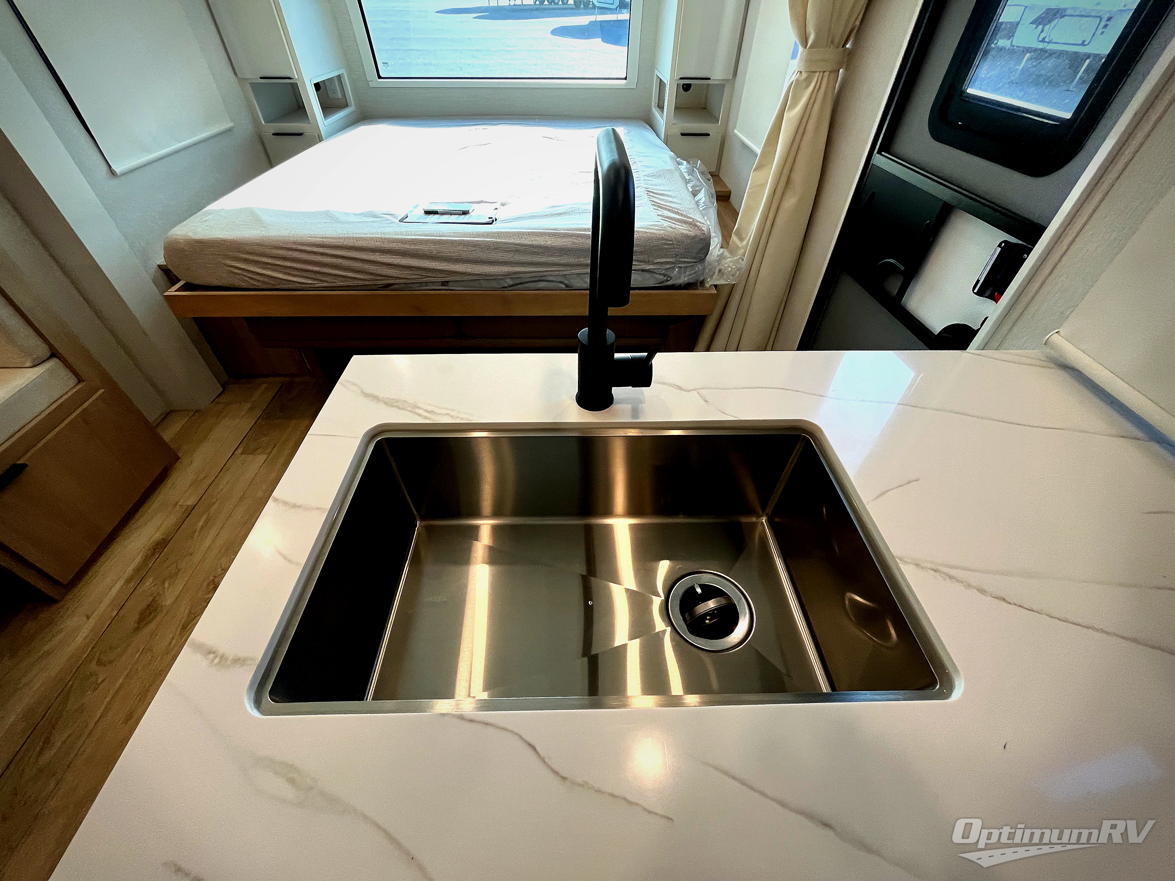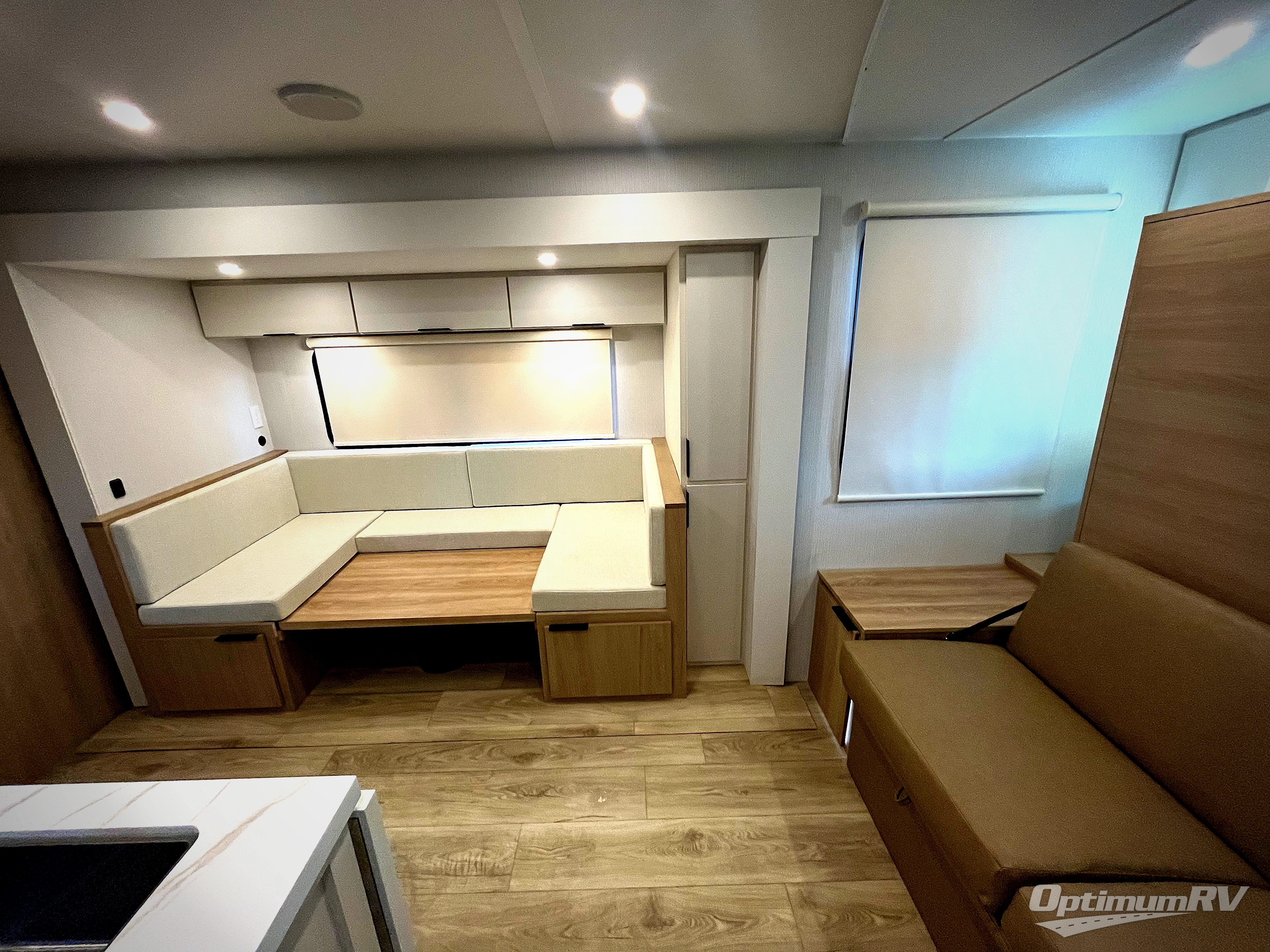With any Thrive travel trailer by Winnebago, you can camp with functionality, comfort, and convenience! The tinted and frameless front window will be the first thing that catches your eye, and the fiberglass sidewalls with Azdel Onboard provide a durable trailer made to last. There is also an exterior ladder, along with front radius profile lights, power stabilizer jacks, and a powered awning with LED lighting to name a few exterior features. You will stay powered up by the 30-amp power cord and 200-watt solar panel, plus there is a tankless water heater for endless hot showers. Inside, you'll love the custom Winnebago furniture, carpetless side outs, molded fiberglass countertops, and residential recessed ceiling lights to keep your space well lit!