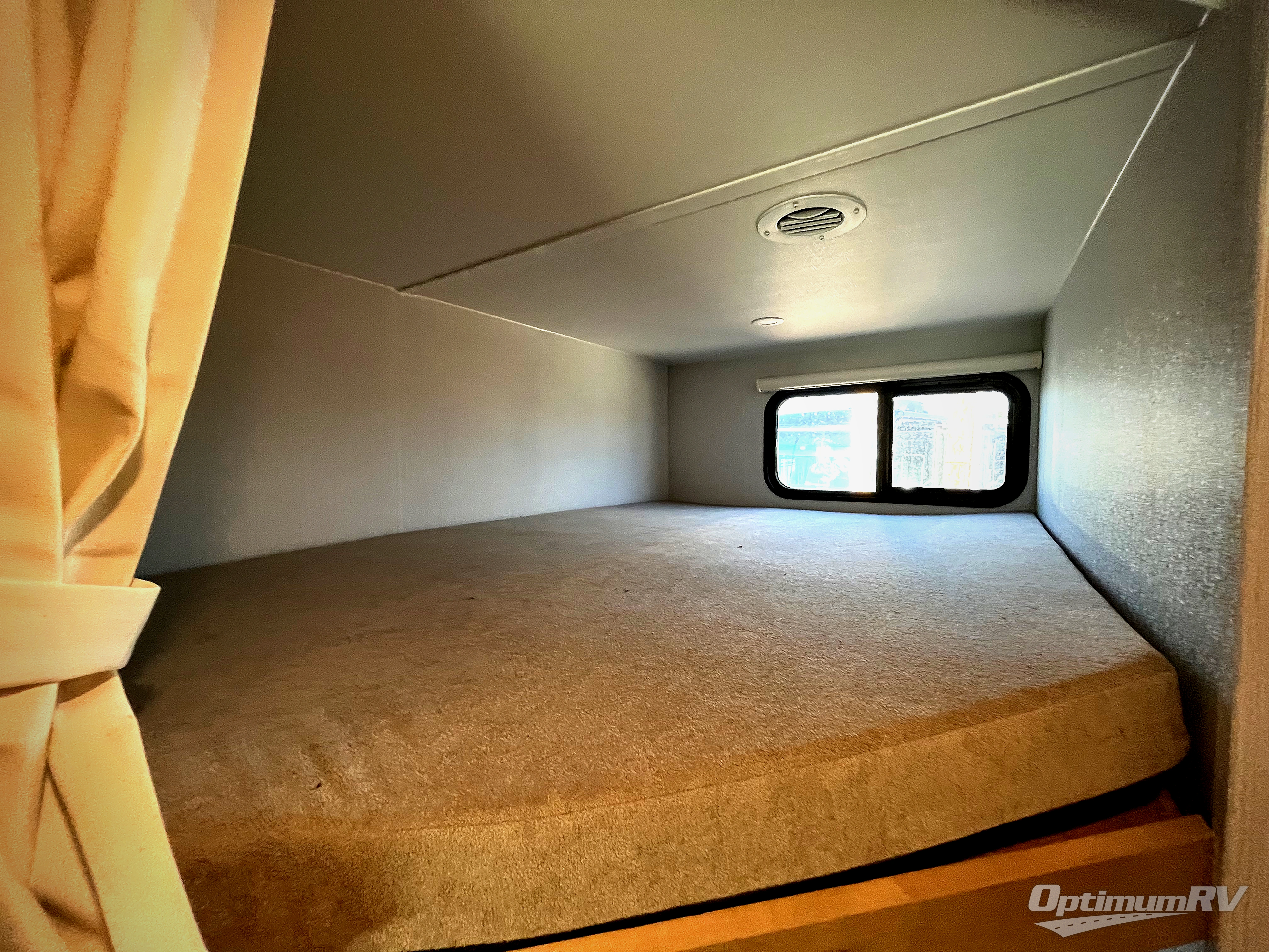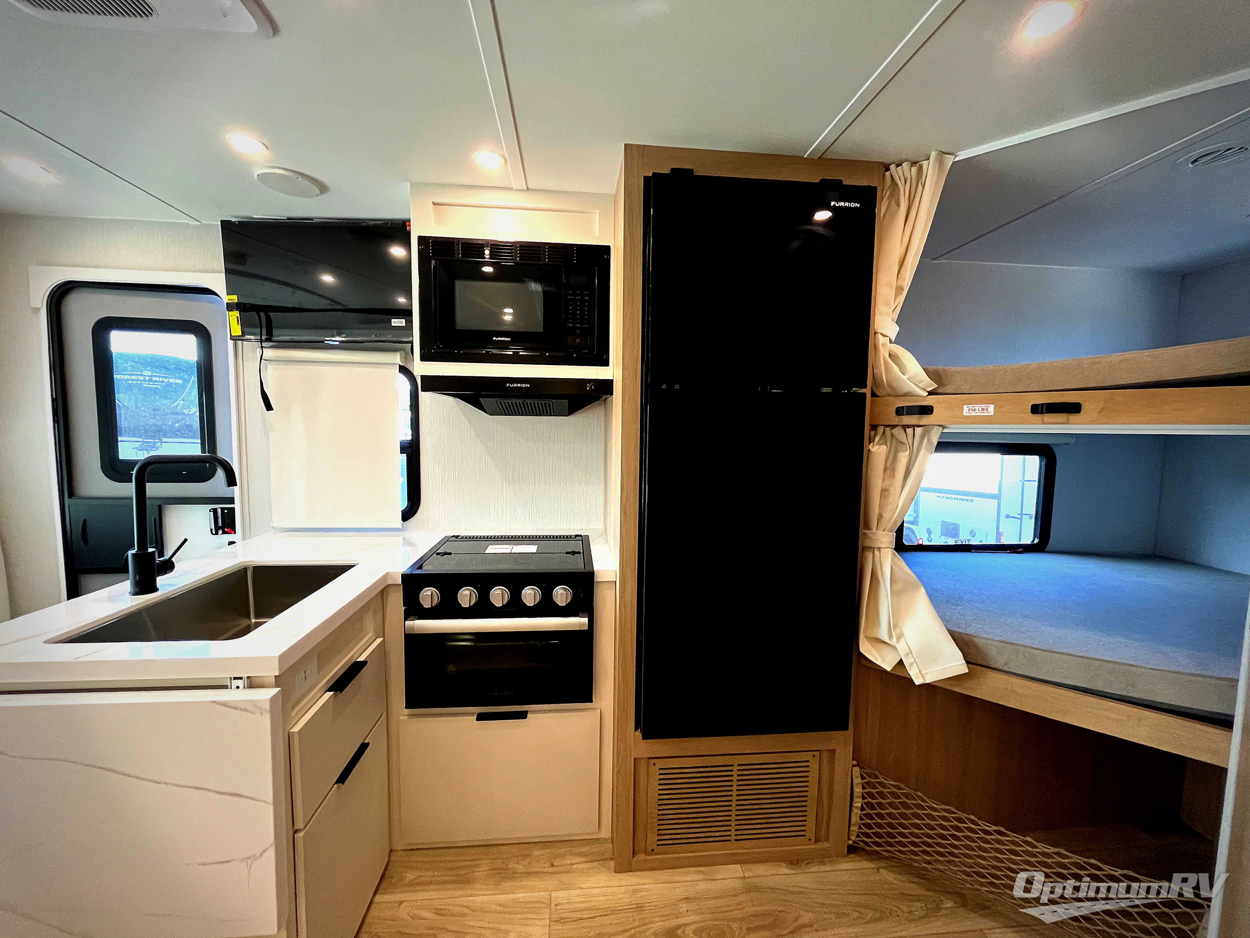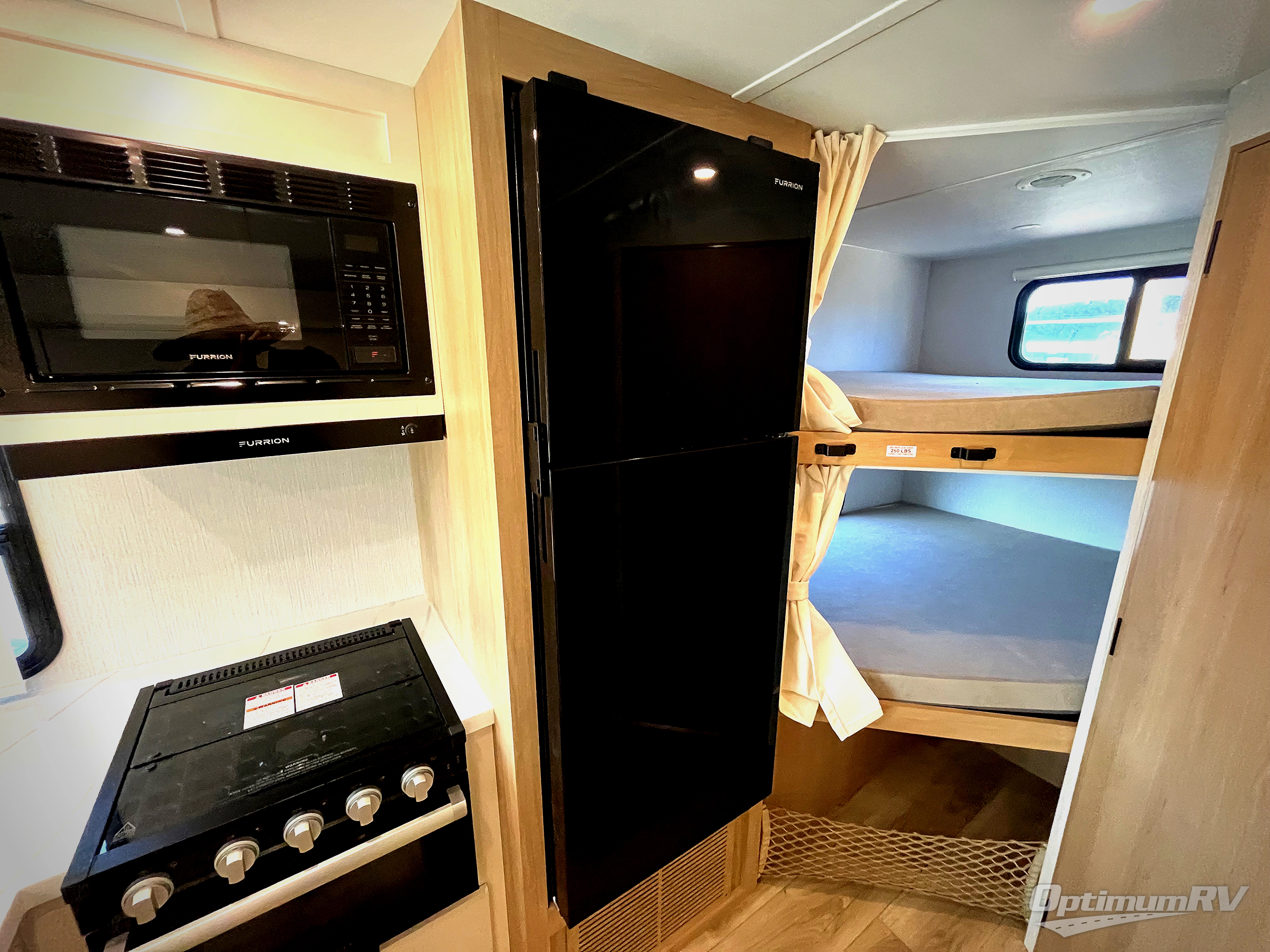 If you enjoy camping with a larger group, this travel trailer with double-size bunks is sure to be a fit! There is also a U-shaped dinette within a slide for more sleeping space, and you'll find the front king-size Murphy bed to be very versatile. A recessed three burner cooktop with an oven will let you make meals each day, and the 10.6 cu. ft. 12V refrigerator will keep your cold items fresh. There is also a countertop extension, giving you more space to prep meals. The full bath includes a power vent fan and a shower skylight that will give you additional lighting and extra head room as you get ready each day!