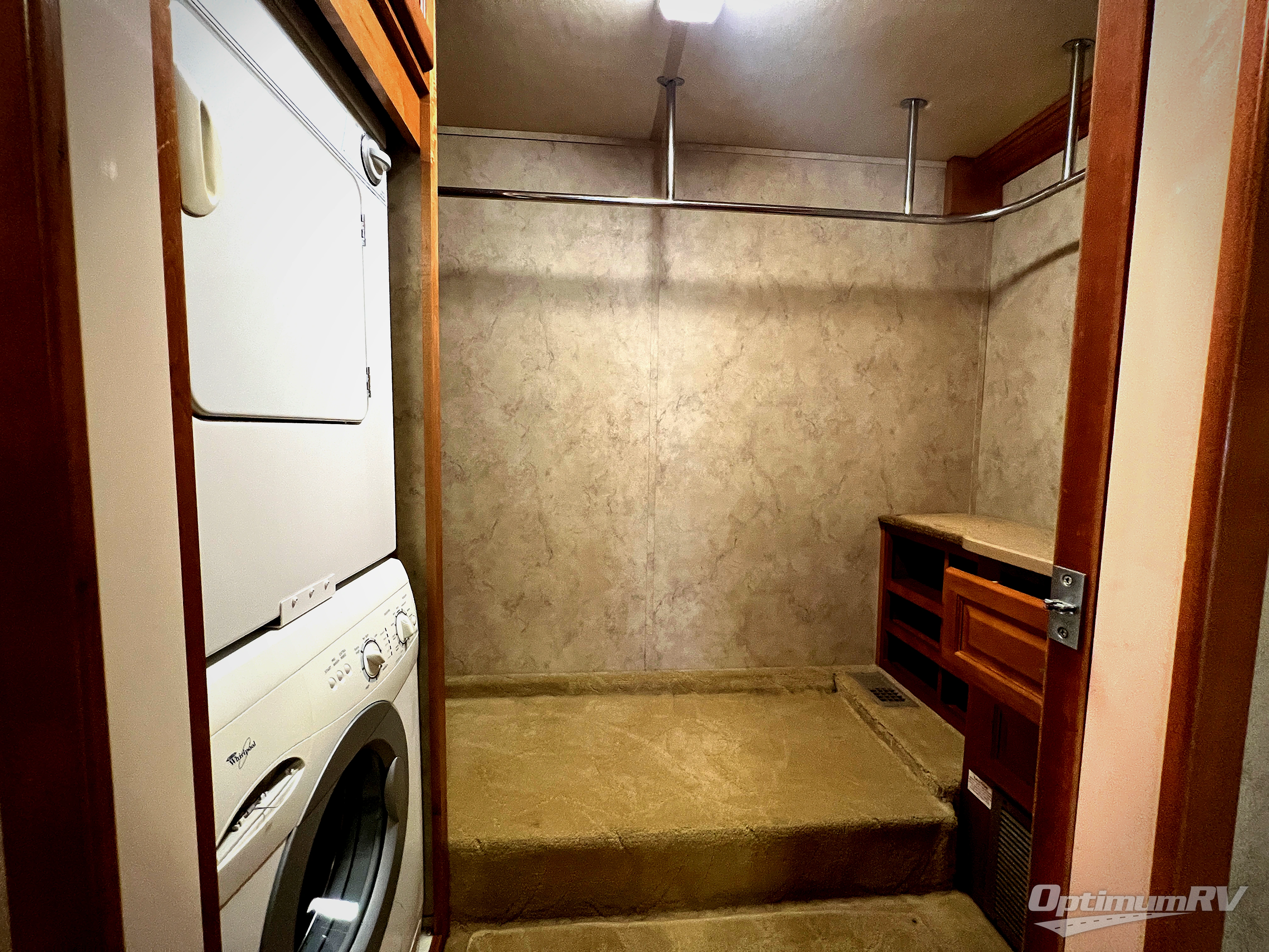 Triple Slideout, Rear Walk-In Closet w/Shirt Closet Rod Above w/Drawers Below, Shoe Rack, Stackable Washer/Dryer, Hamper, Lav., Front Queen Bed Slideout, 20" LCD TV Above Vanity Slideout, Stool Room w/Lav., Large Shower, Residential Side-By-Side Refrigerator, 3 Burner Range, Double Kitchen Sink, Free Standing Dinette/Computer Station & Hide-A-Bed Slideout, 2nd Sofa and Much More.