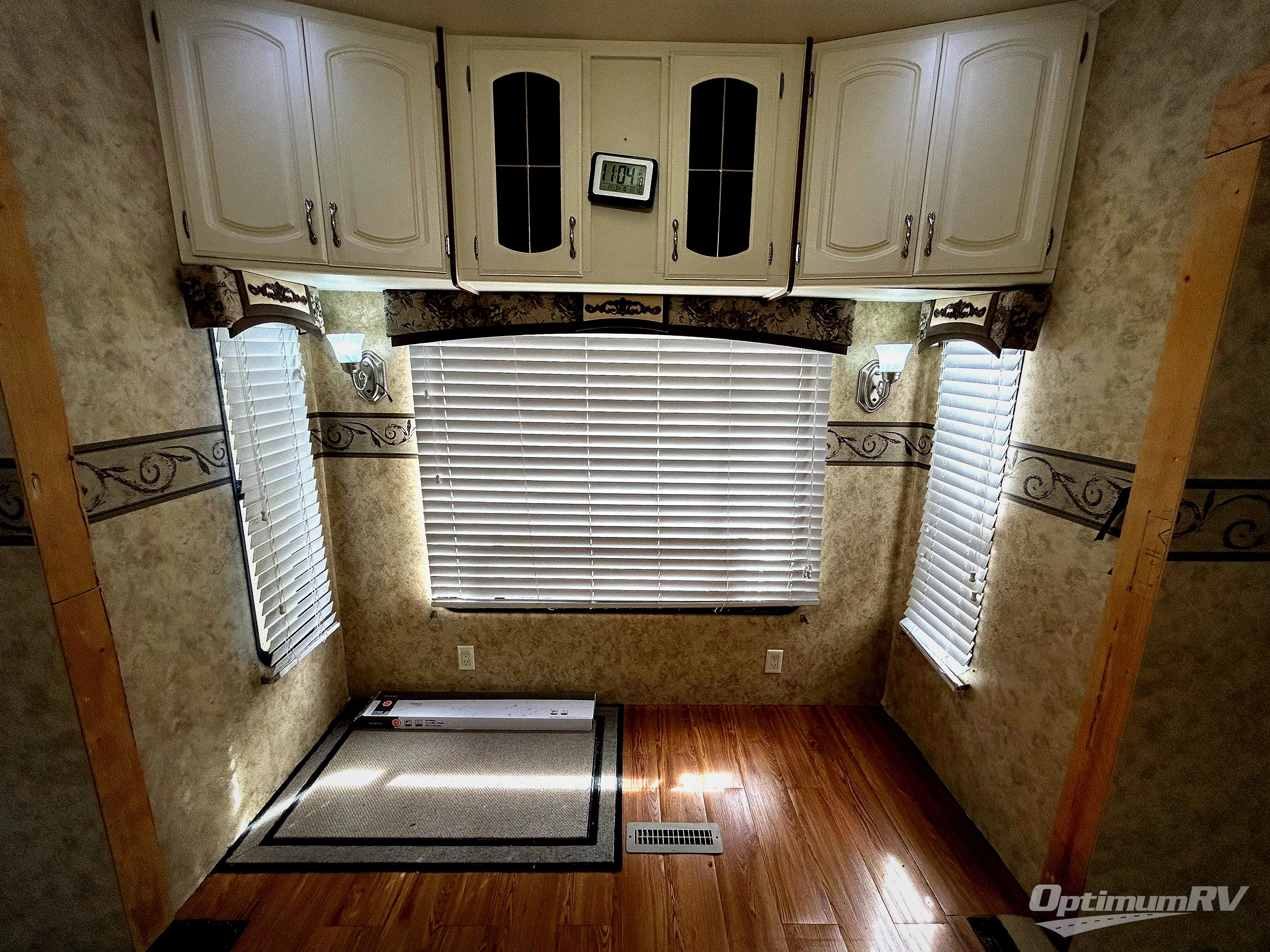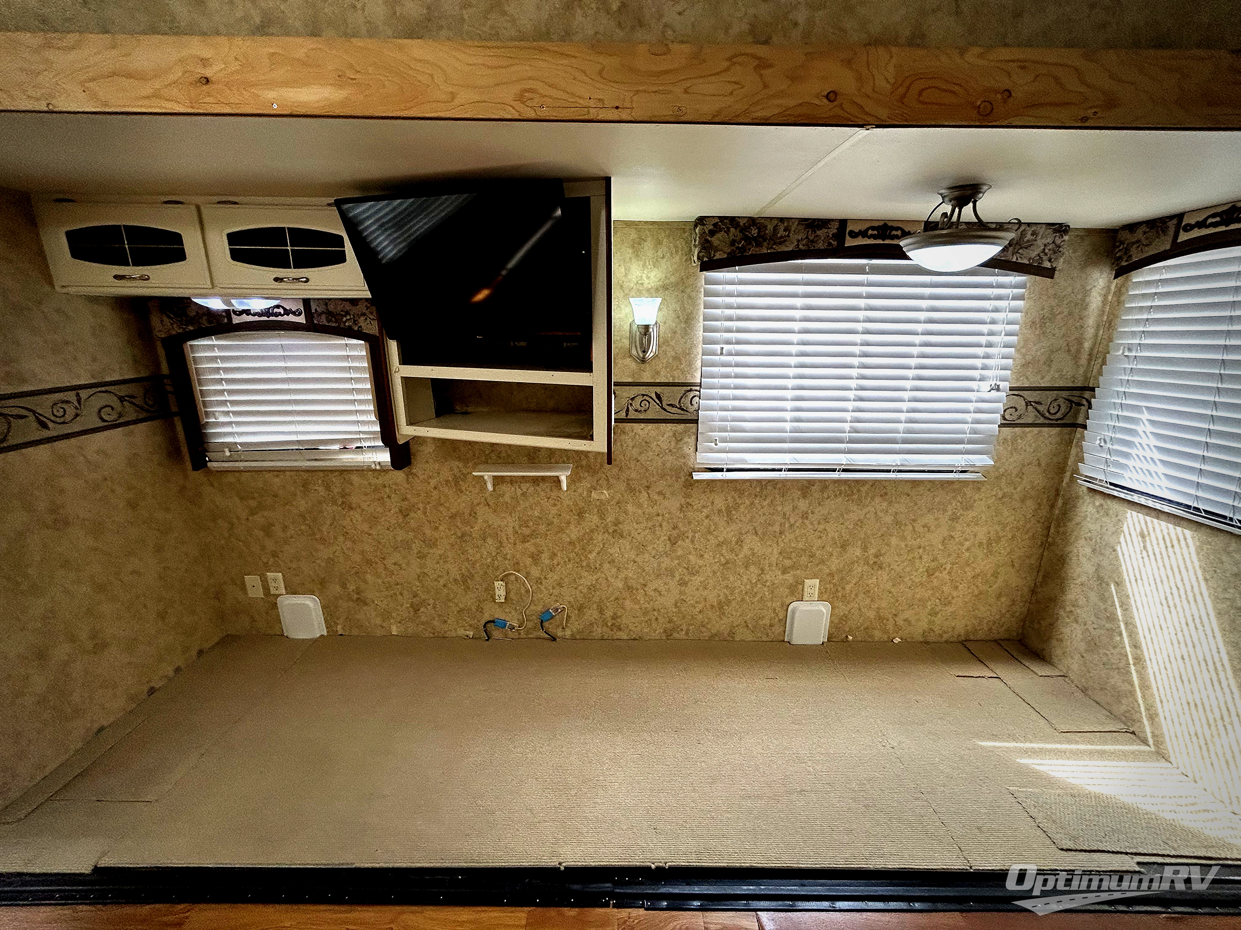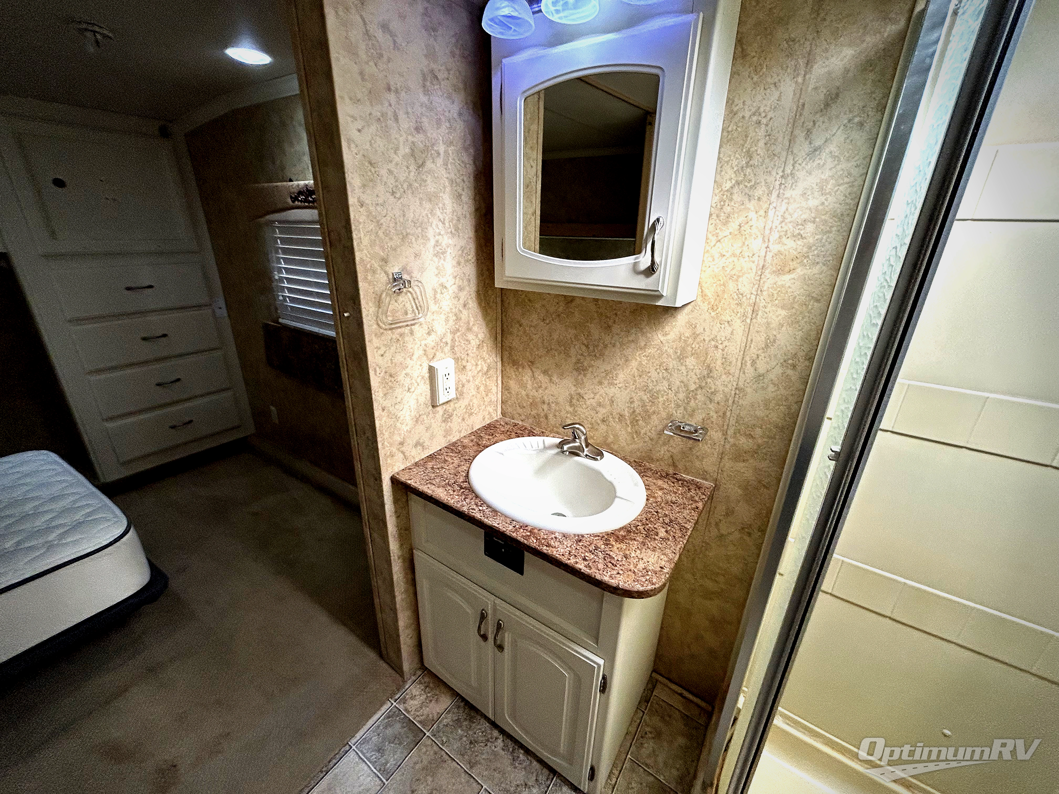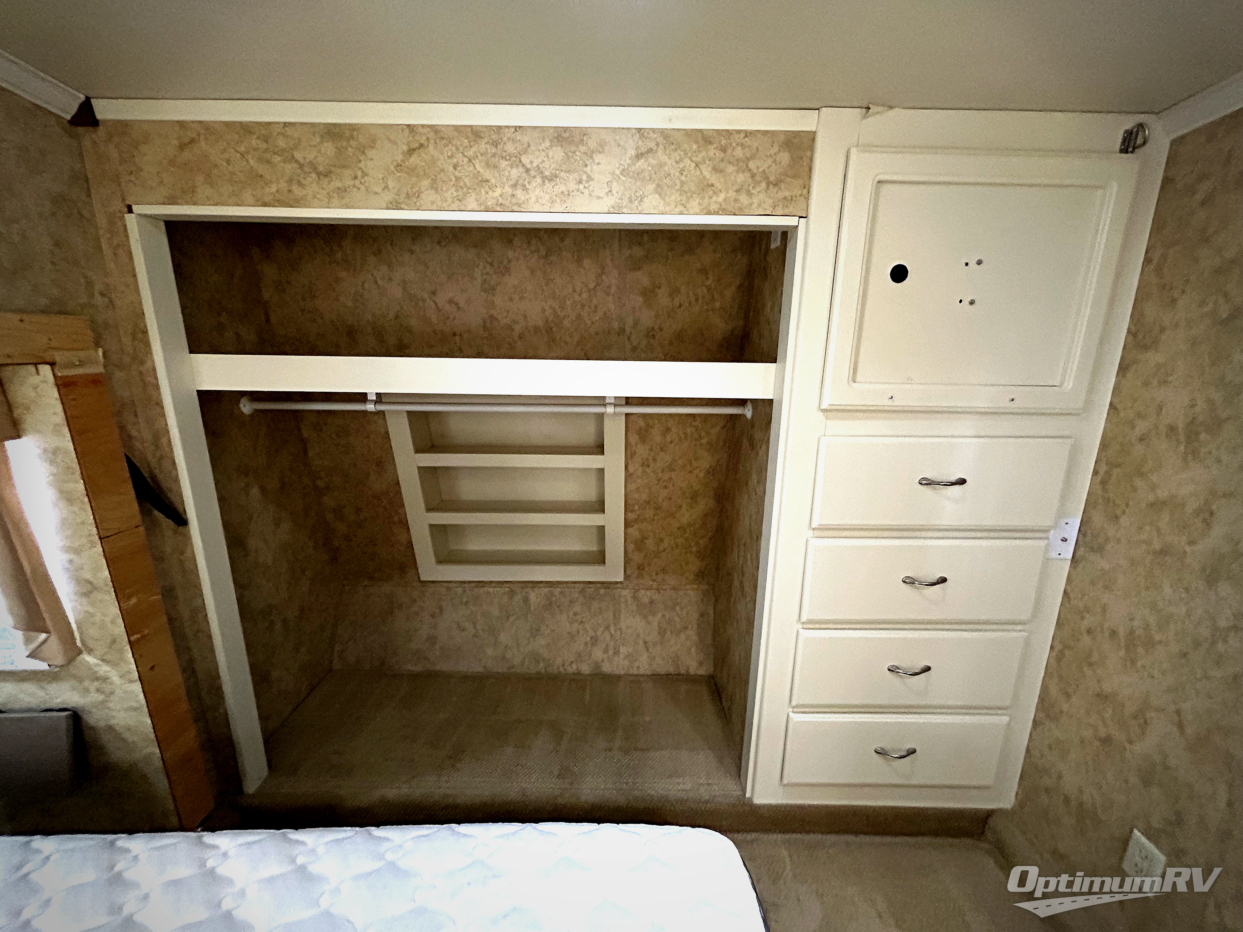 Triple Slide Fifth Wheel, Rear Living, Two Chairs, Slide Out Hide-A-Bed, Slide Out Ent Center/Desk/Booth Dinette, Double Kitchen Sink, 3 Burner Range, Refrigerator, Pantry, Closet, Shower, Private Toilet Area, Sink, Slide Out Queen Bed w/Storage Below, Chest, Closet, Cabinet, and More.