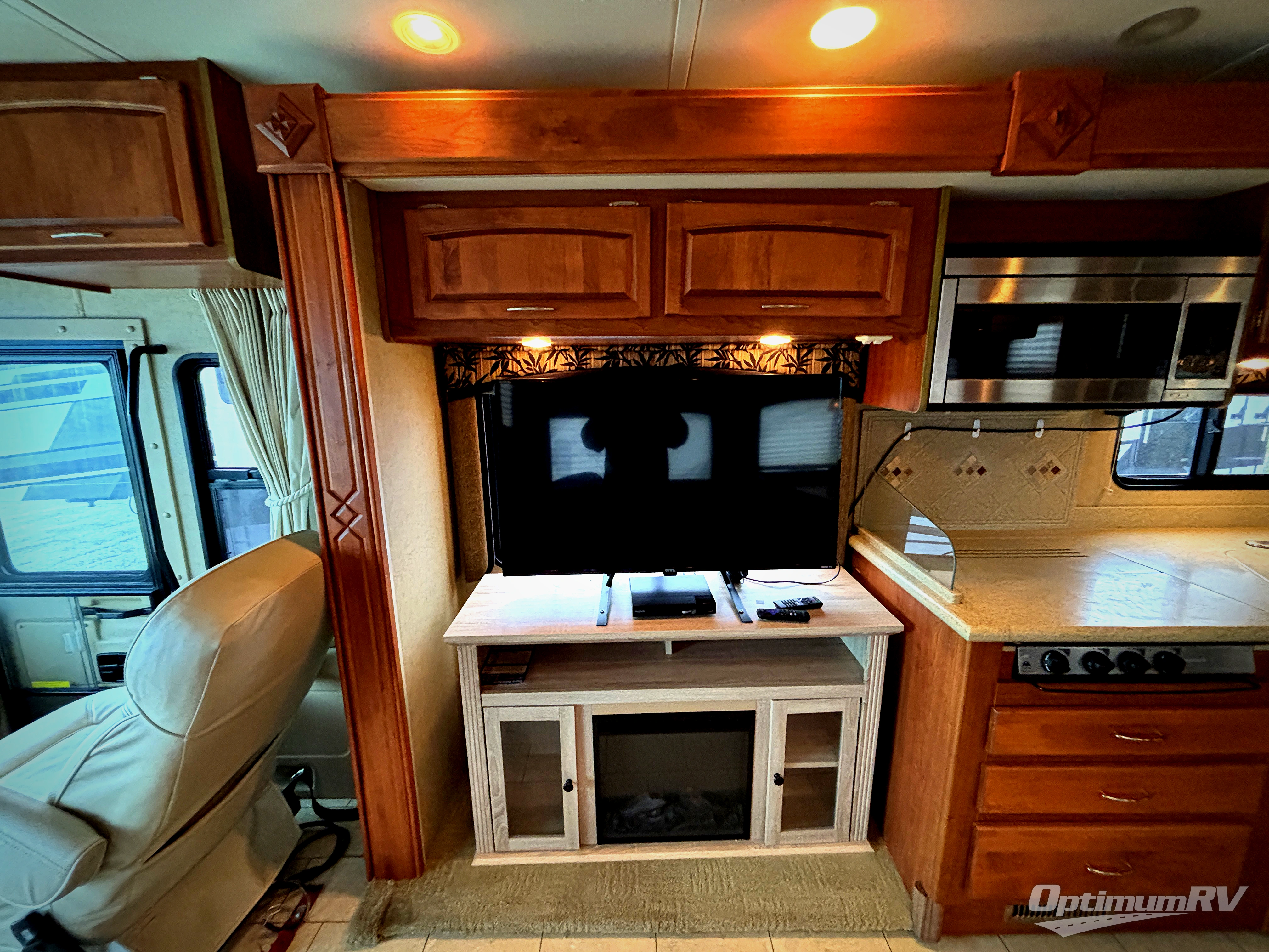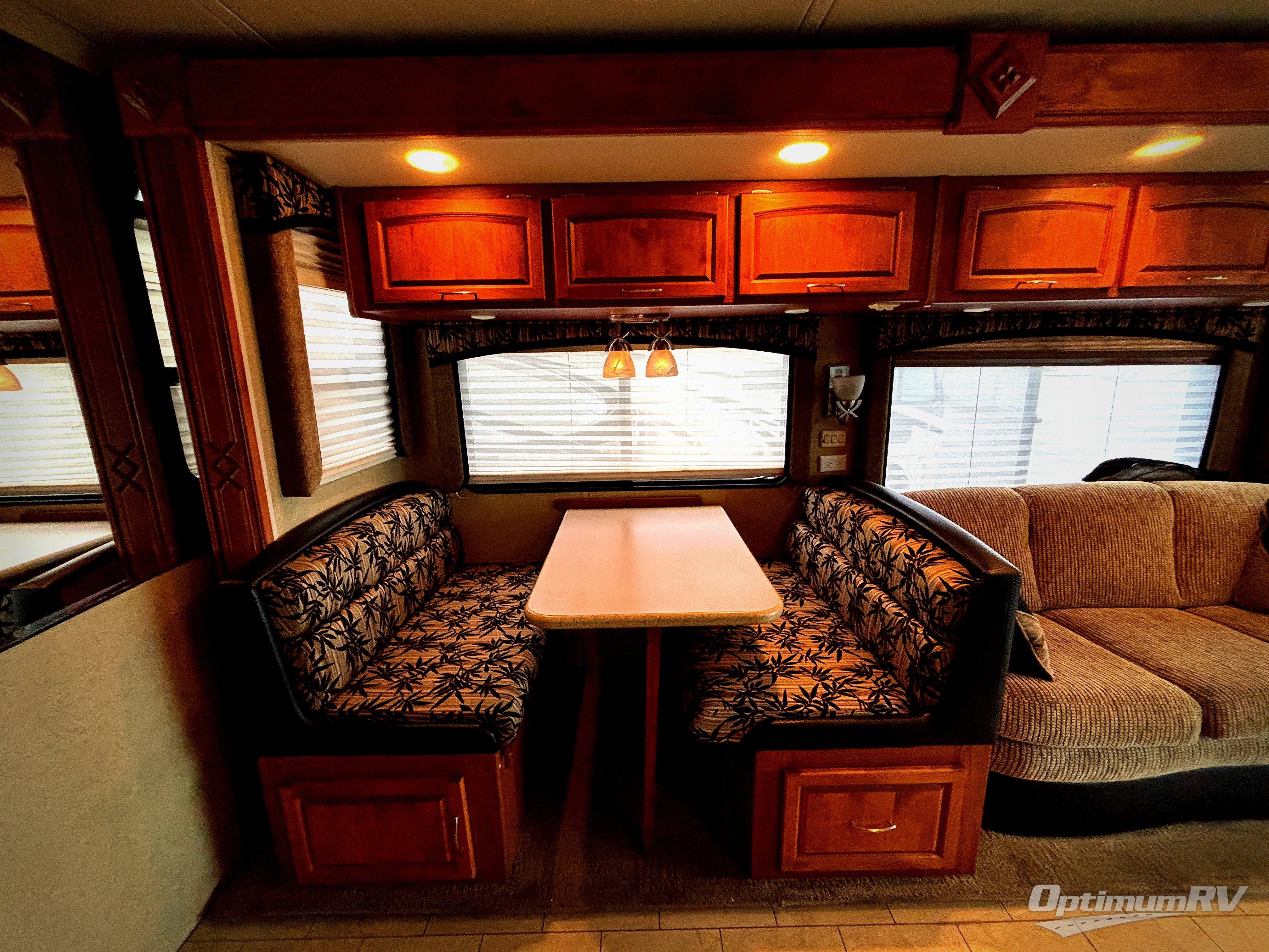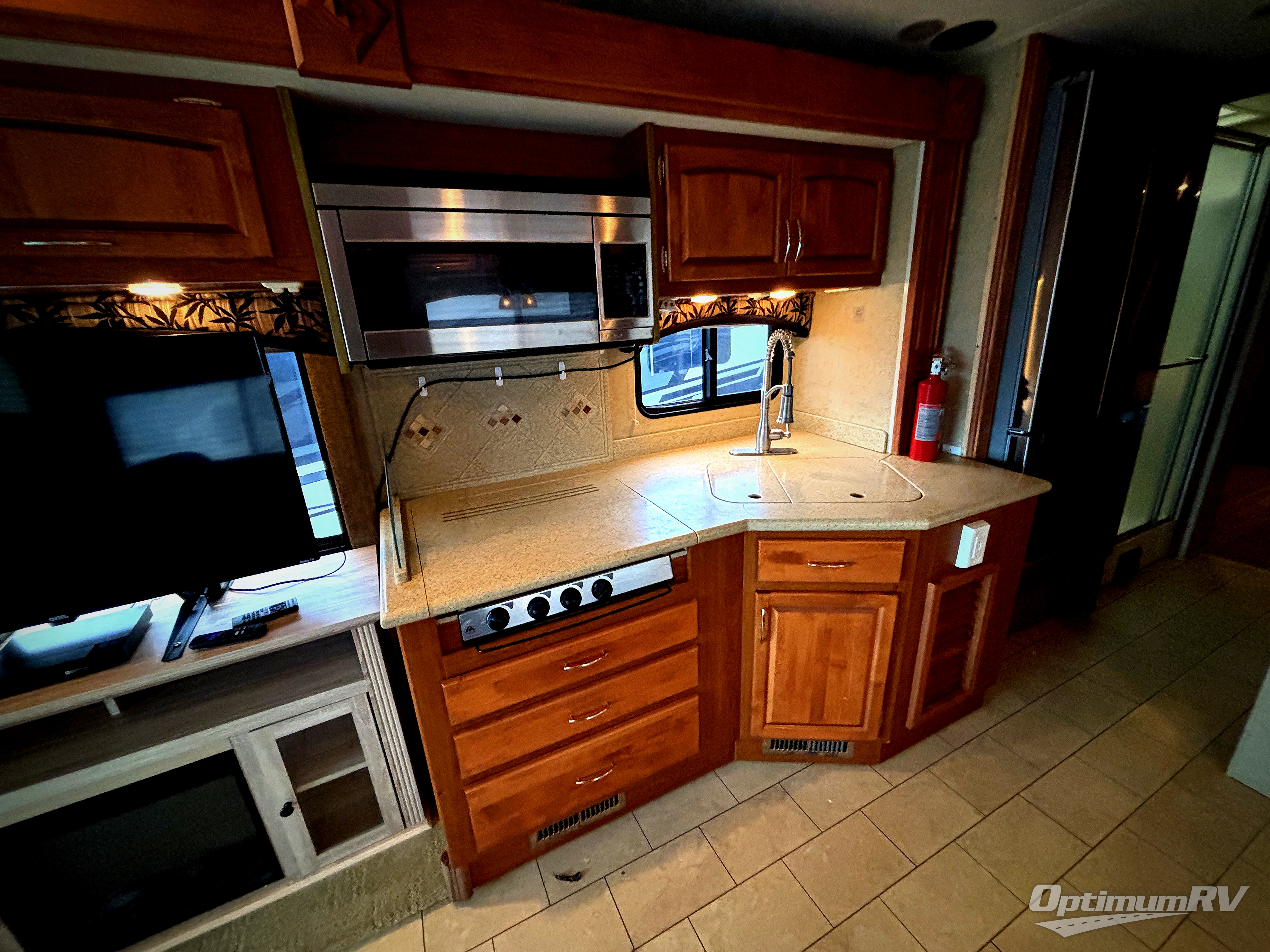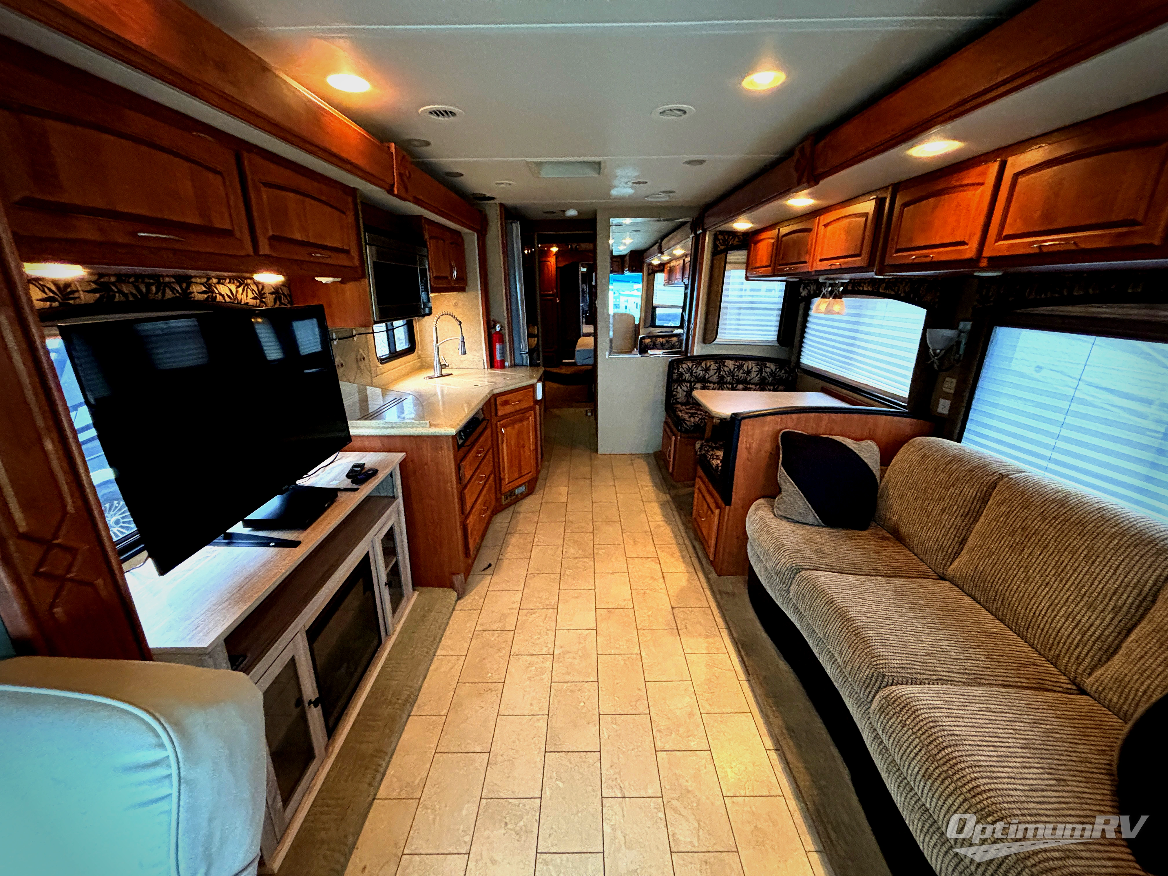 Quad Slide Cayman Class A Diesel by Monaco w/Rear Queen Bed Slide Including Nightstands, Wardrobe, Linen Closet w/Washer/Dryer Opt. Dresser w/Overhead Cabinet & TV Slide, Private Toilet Area w/Vanity & Sink, Shower, Pantry, Refrigerator, Booth Dinette & Sofa Slideout, TV Above Cab Area, 54" Sofa/3 Burner Range w/Microwave & Double Kitchen Sink Slide and More!