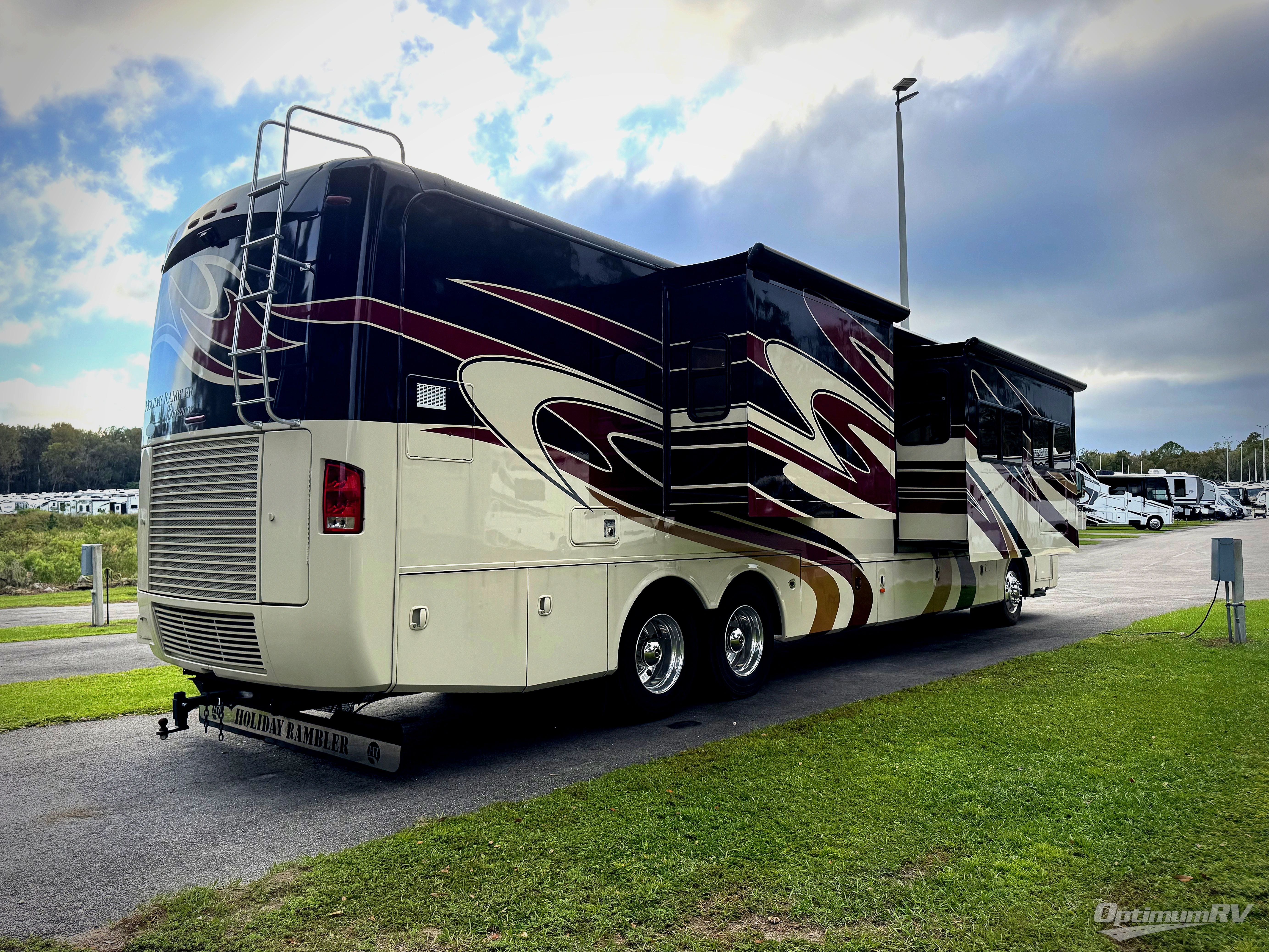 Holiday Rambler Endeavor Class A Diesel Motor Home w/Tag Axle & Full Wall Slideout, Rear Full Bath Including End Wall Wardrobe, Vanity w/Dbl. Sinks, Toilet & Corner Shower, 26" LCD TV/Dresser/Washer/Dryer Prep/Refrig./Dbl. Kitchen Sink/2 Burner Cooktop w/Microwave Above/Pull-Out Galley and 68" Sofa Full Slide, Overhead Storage Above Cab Area, 75" Sofa & Dinette w/Chairs & Overhead Cabinet Slide, 40" LCD TV, 1/2 Bath w/Sink and So Much More!