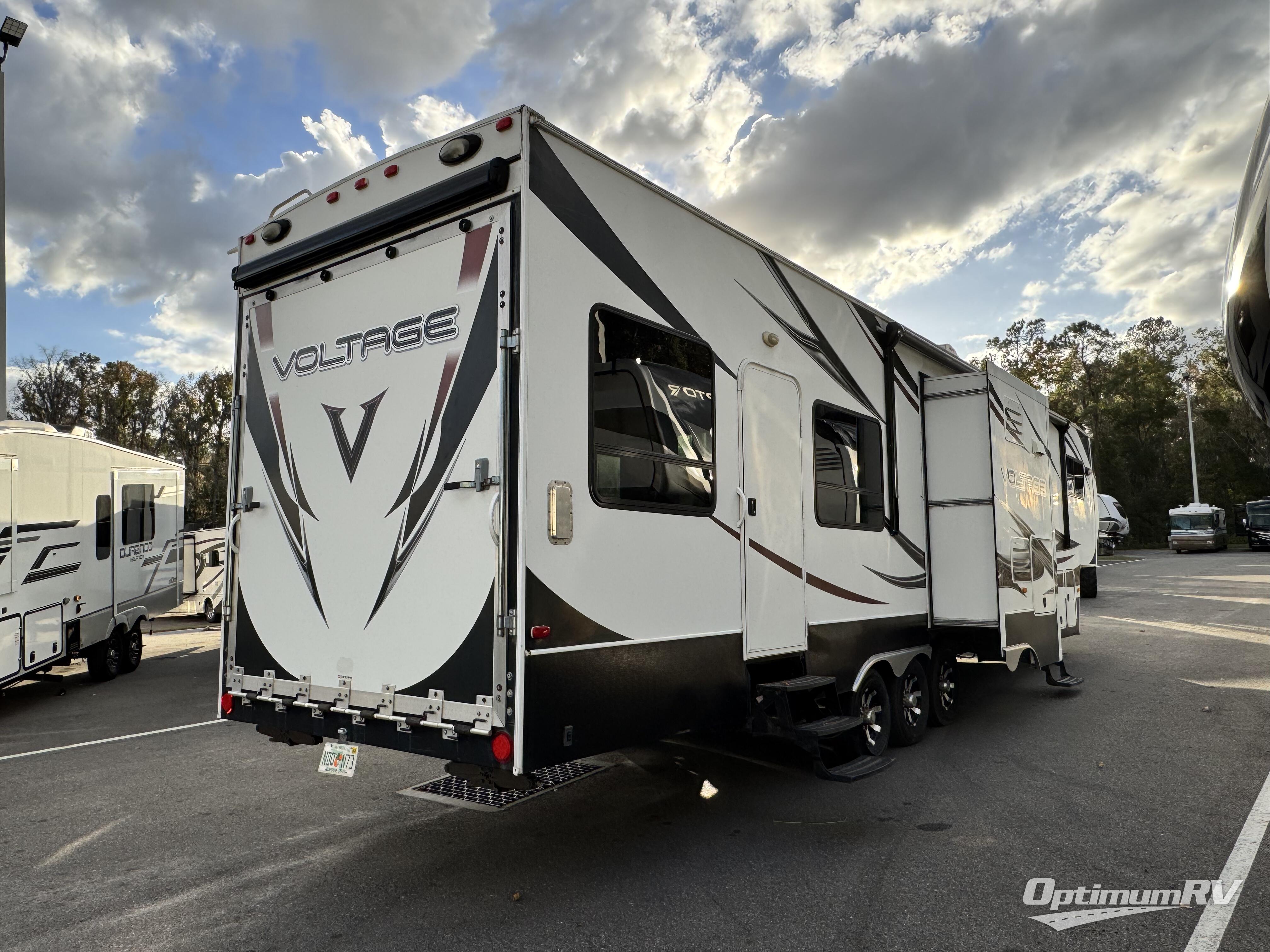 Voltage FW Toy Hauler w/Rear Spring Assist Ramp Door to Cargo Area w/Side Man Door, Queen Bed Loft, Overhead Cabinets, Glass Patio Door, Pantry, Pantry/Refrig.,/3 Burner Range Slide, Island w/Stools & Dbl. Kitchen Sink, 128" Dinette/Sofa Slide w/Table & 12" Sofa Extension, Ent. Center w/TV, Step Up to Side Aisle Bath w/Neo-Angle Shower, Toilet & Sink, Bench/Dresser/Closet, Slideout Queen Bed w/Hinged Top & Nightstand, Walk-In Cedar Lined Closet, Gasoline Pump Station & Much More!