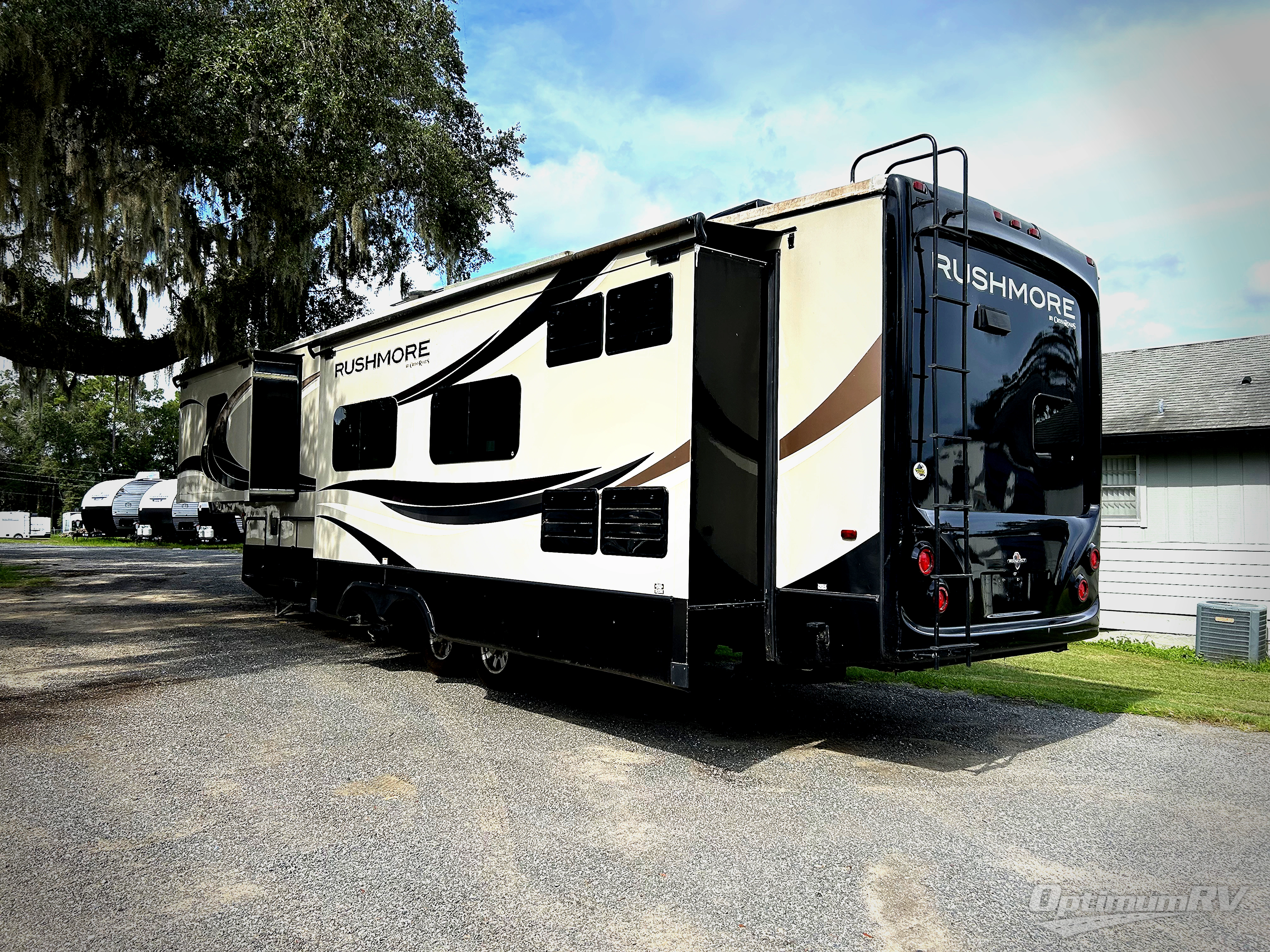 Quad Slide Rushmore Fifth Wheel, Rear Kitchen w/Pantry, 3-Burner Range, Microwave, Dbl. Kitchen Sink, Hutch/TV Slide, Free-Standing Table & Chairs, Refrigerator/Lounge Chair/Sofa Slide, Closet, Step Up To Bed/Bath, Toilet, Shower, lav., Linen/Vanity/TV Slide, Closet, Queen Bed Slide, Overhead Cabinets Throughout, Outside Kitchen w/Refrigerator, Entertainment Center. Available Options May Include: King Bed.