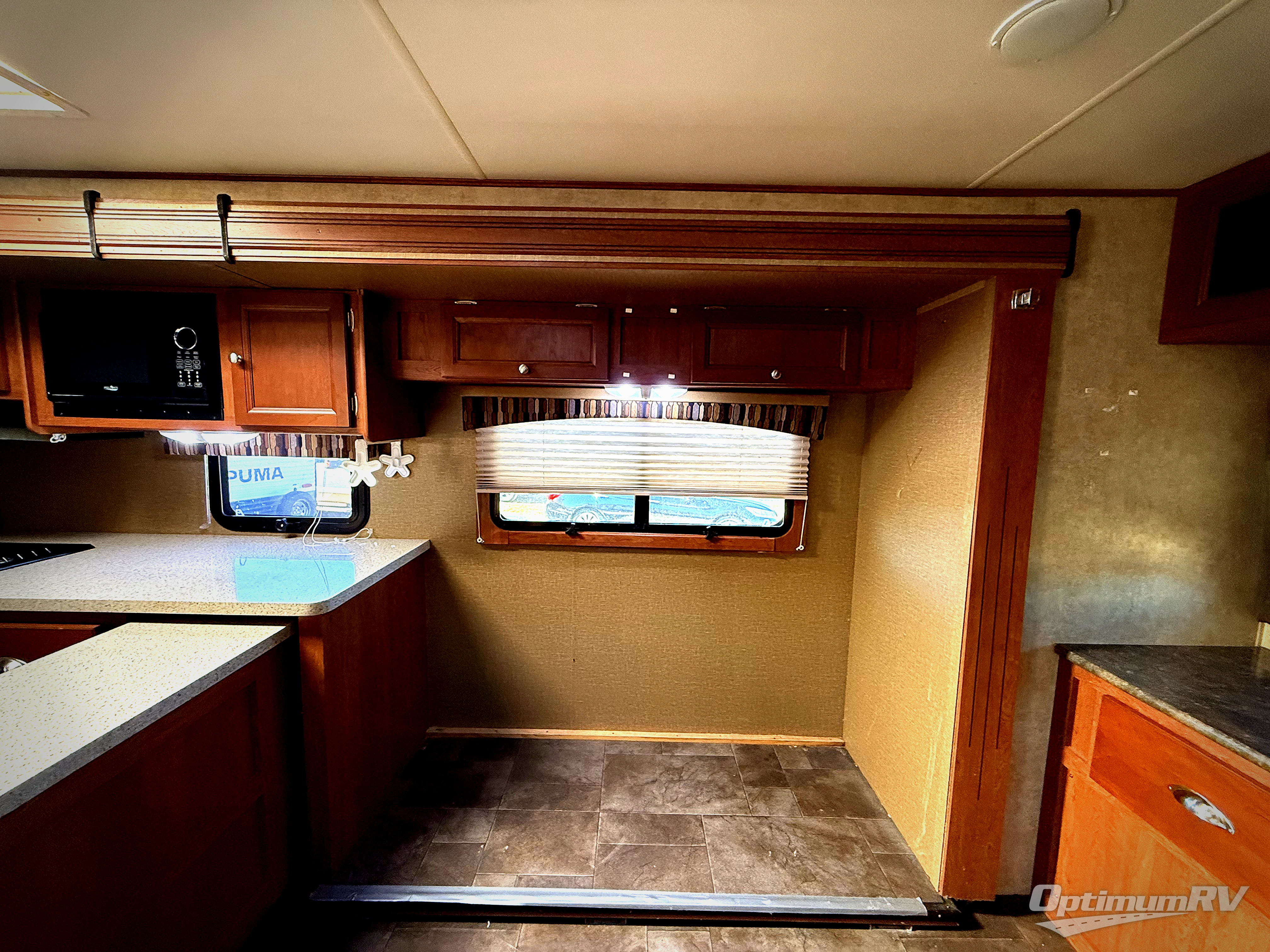 Coleman Travel Trailer w/Rear Entertainment w/Full Wall Unit w/Overhead Cabinets, LCD TV, Fireplace Below, Slideout w/Sofa/L-Counter w/Dbl. Kitchen Sink, 3 Burner Range, Microwave & Pantry, Slideout w/2 Lounge Chairs & Booth Dinette w/Overhead Storage, Side Aisle Bath w/Angle Shower, Toilet & Sink w/Linen Cabinet, Front Queen Bed w/Wardrobes Both Sides, Overhead and Front Exterior Storage and More!