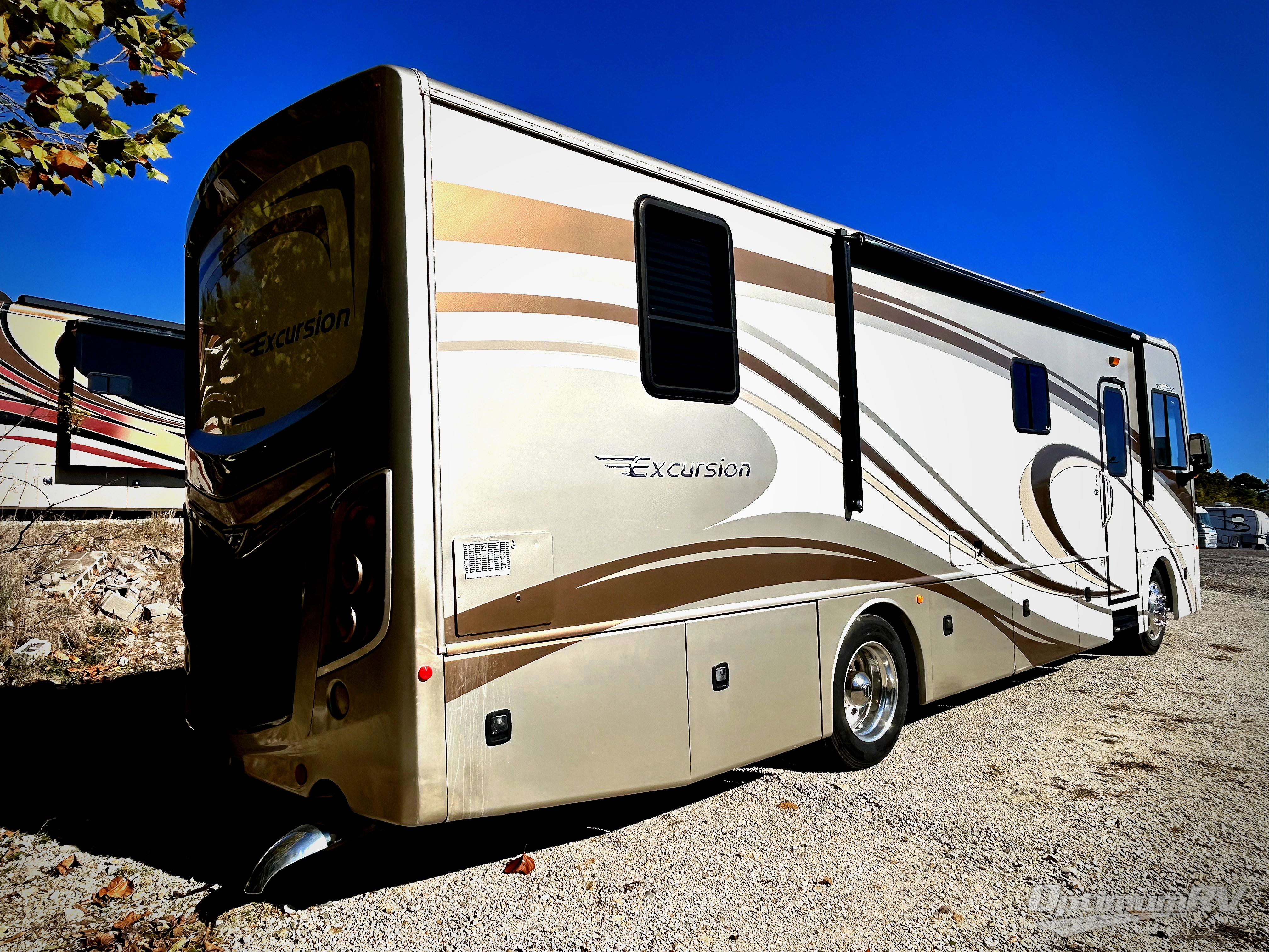 Single Slide Excursion Motor Home, Rear Queen Bed, Dbl. Nightstands, Wardrobe, Wardrobe w/Dresser, Washer/Dryer, 3-Burner Range, Microwave, Dbl. Kitchen Sink, Drop Down 40" LCD TV, End Table/L-Sofa/Dinette/Pantry/Refrigerator Slide, Toilet, Med. Cab., Lav., Shower, Overhead Cabinets Throughout & Much More. Available Options May Include: Bedroom 32" LCD TV, 3-Burner Range w/Oven, Washer/Dryer, Residential Refrigerator, Hide-a-Loft Drop Down Queen Bed.