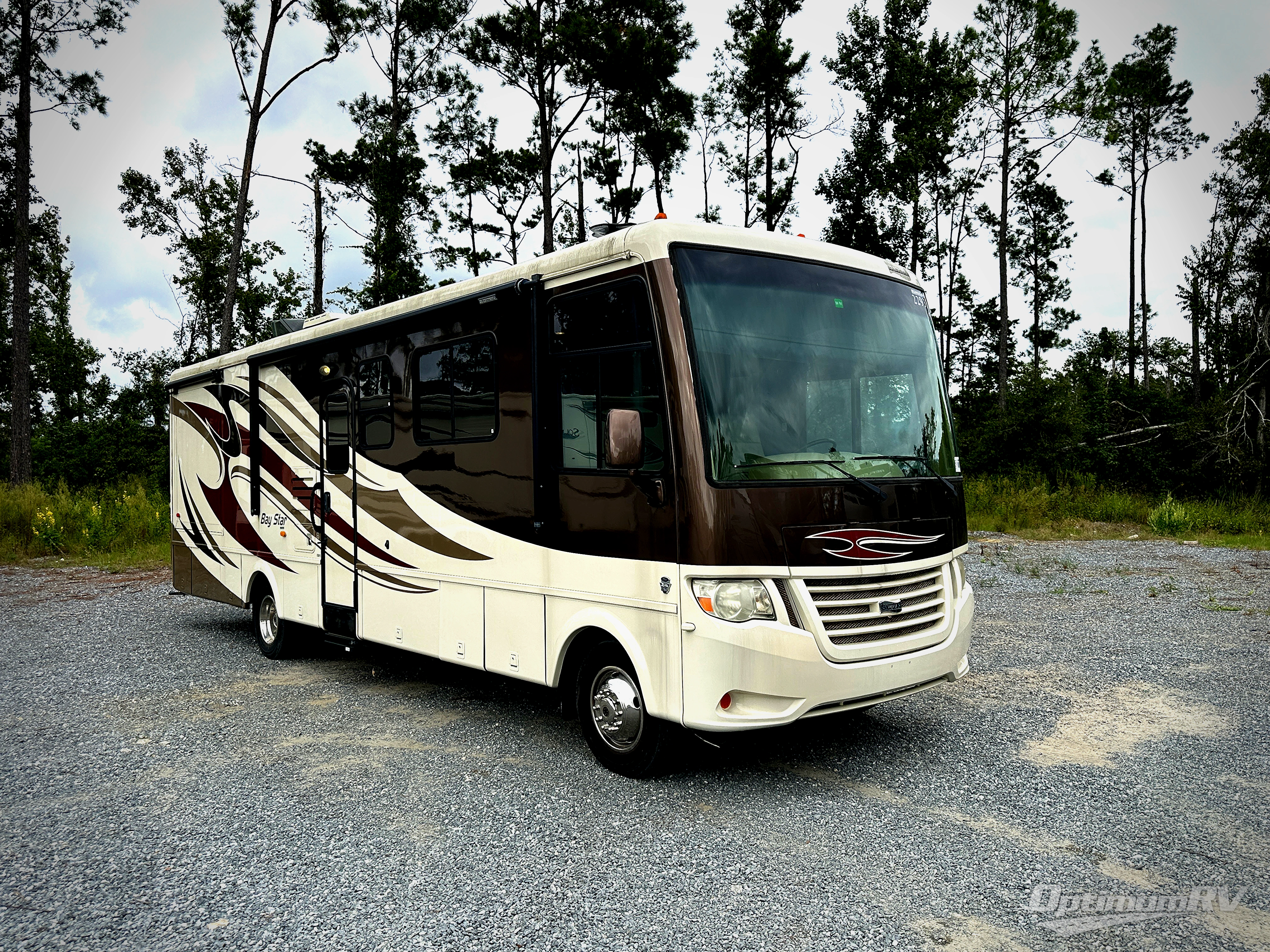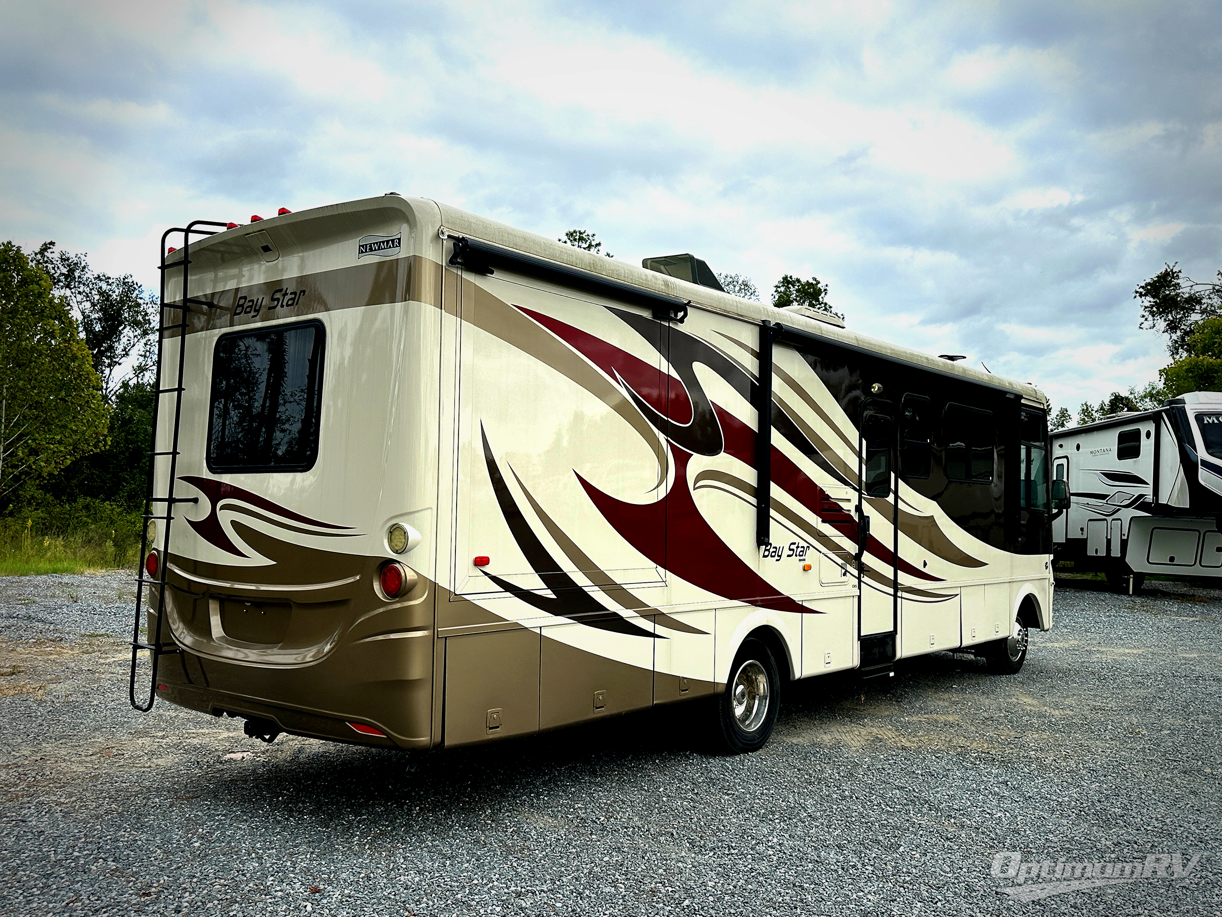 Double Slide Baystar Newmar Motor Home Class A, Rear Queen Bed Slide, Shirt Ward./Overhead Cab. w/TV/Shirt Ward./Ward./Pantry/3-Burner Range/Double Kitchen Sink/Dinette/Desk w/Folding Chair Slide, Jack-Knife Sofa, Chair, Refrigerator, Shower, Lav., Toilet, Overhead Cabinets Throughout, 17' Awning & Much More.