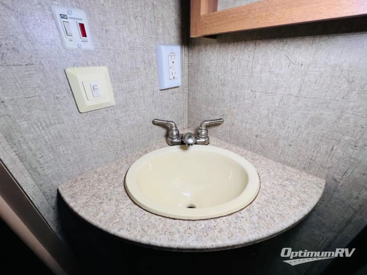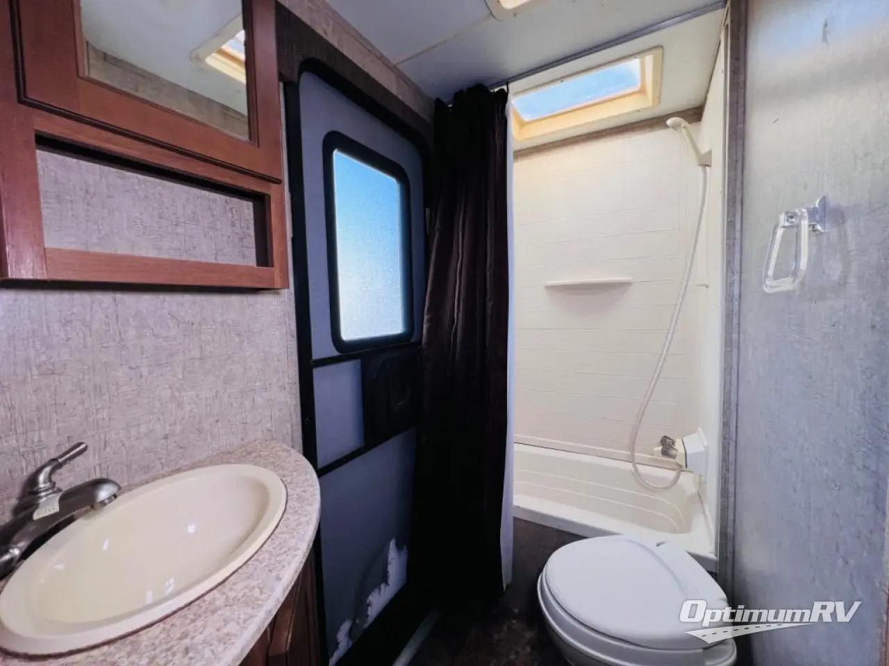 On the opposite side you will find a convenient bathroom with toilet, sink, tub/shower, and private entry. The separate entry makes it easy to access from outside the trailer when enjoying the outdoors.